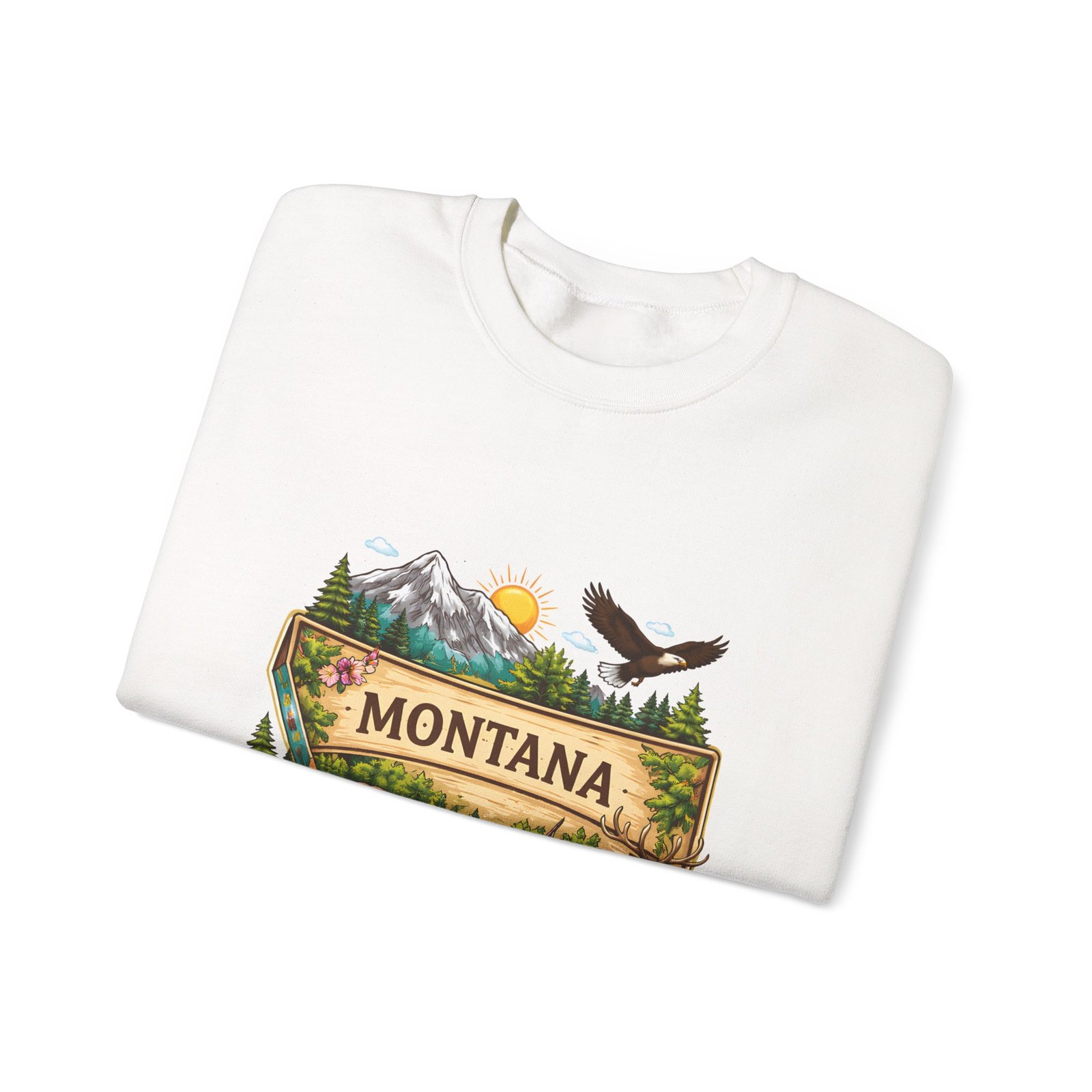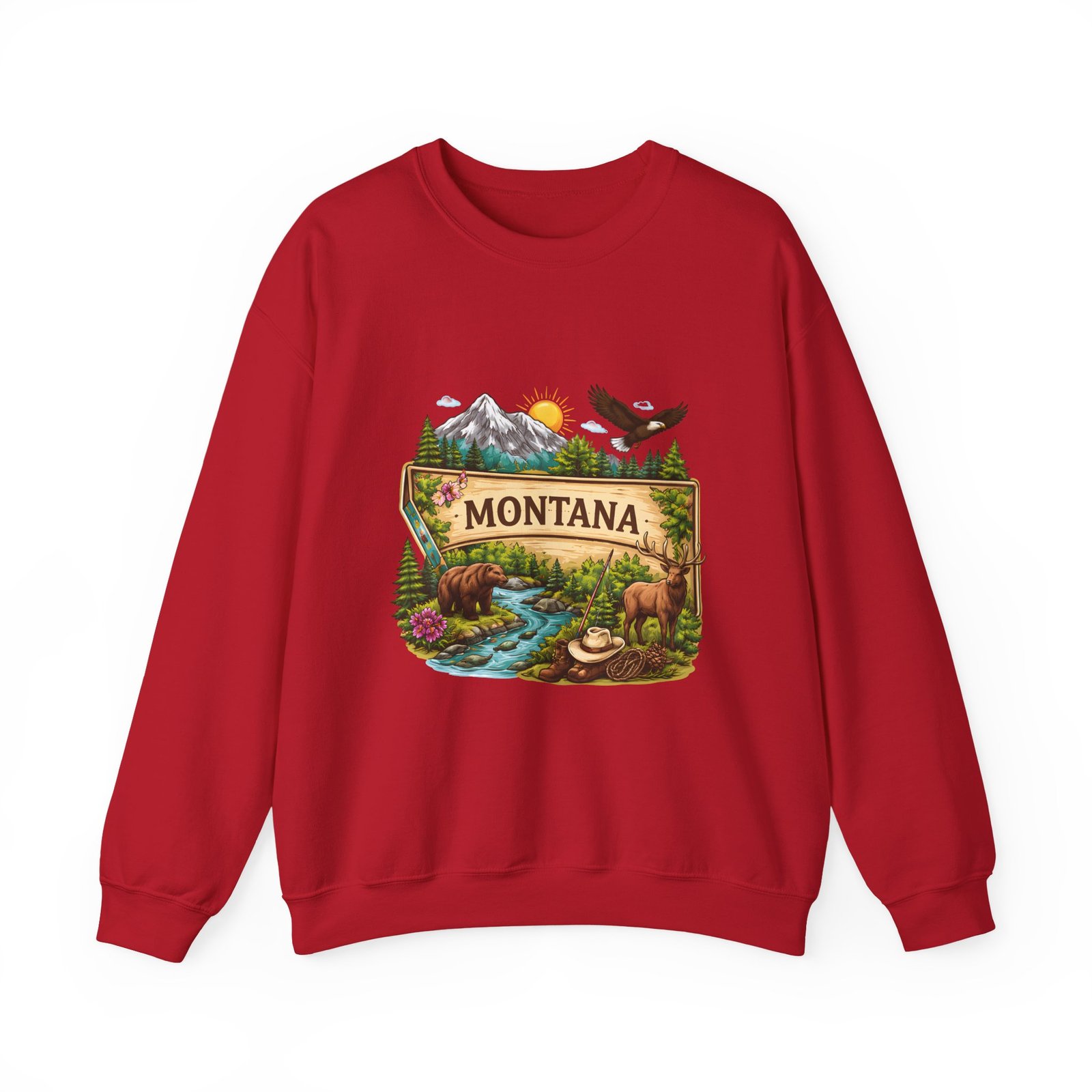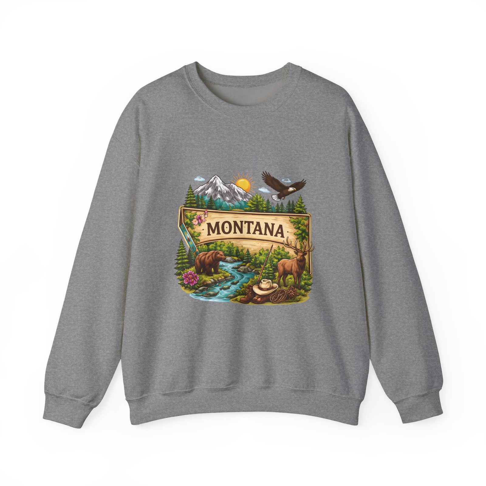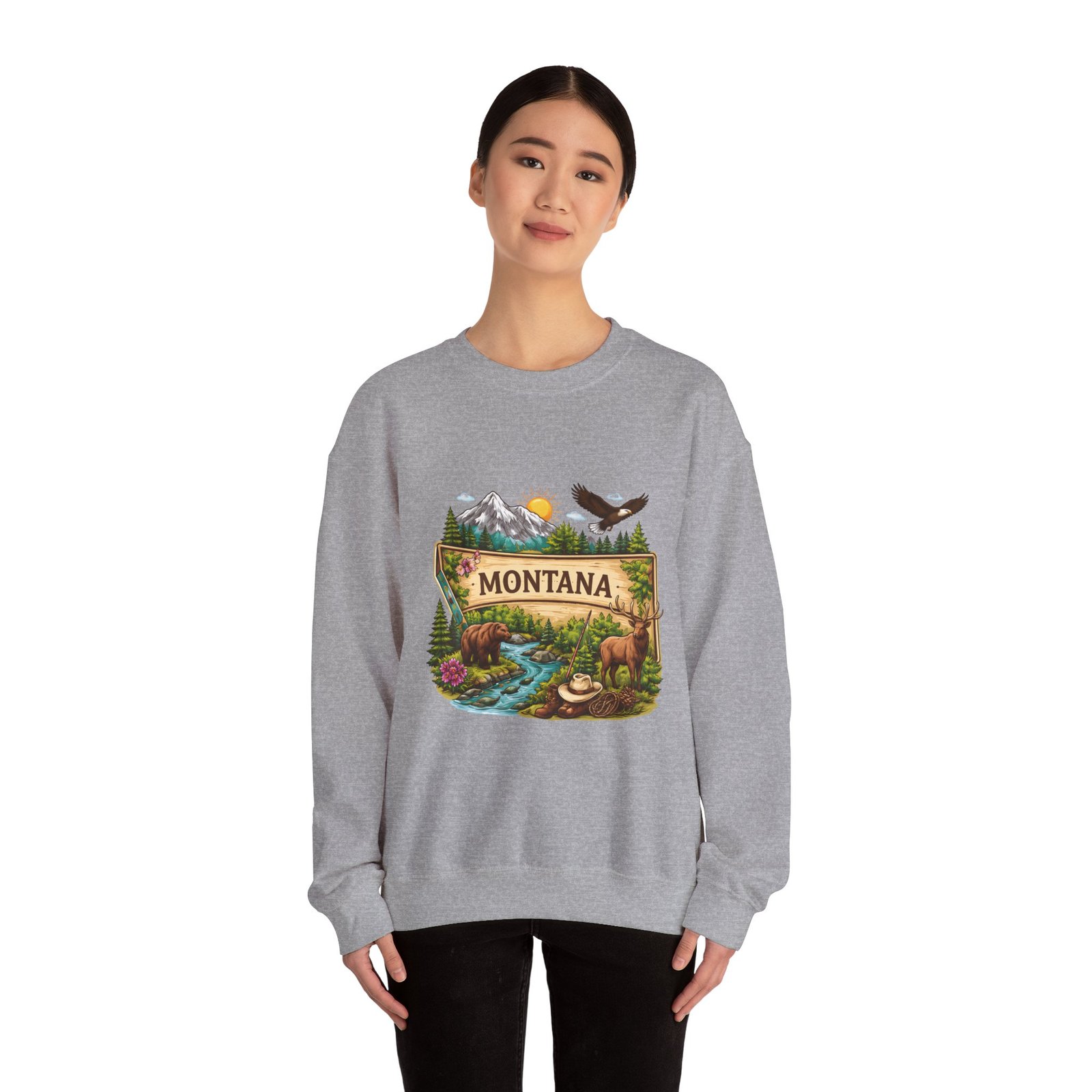 Montana Scenic Crewneck Sweatshirt — Mountain, Wildlife & River Graphic