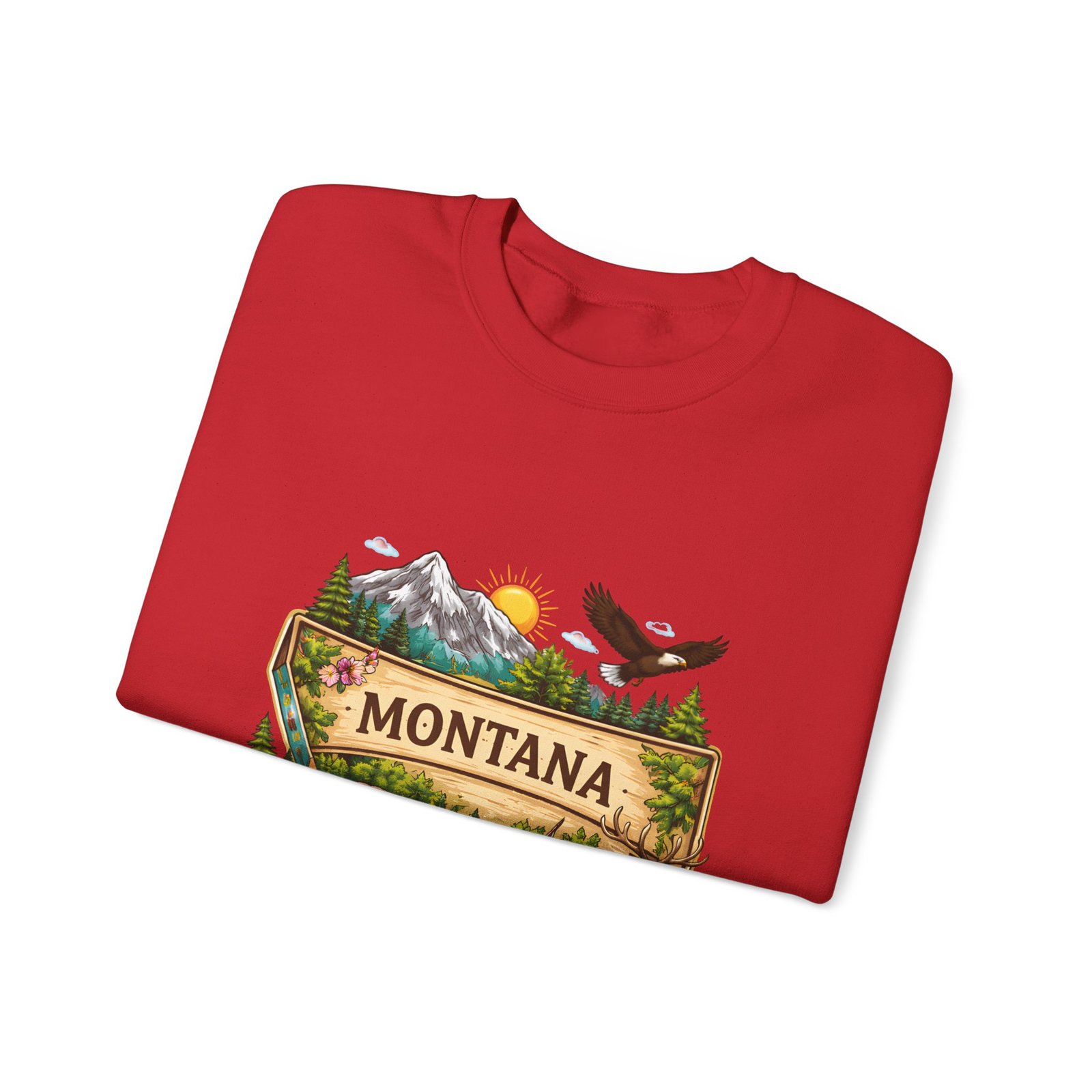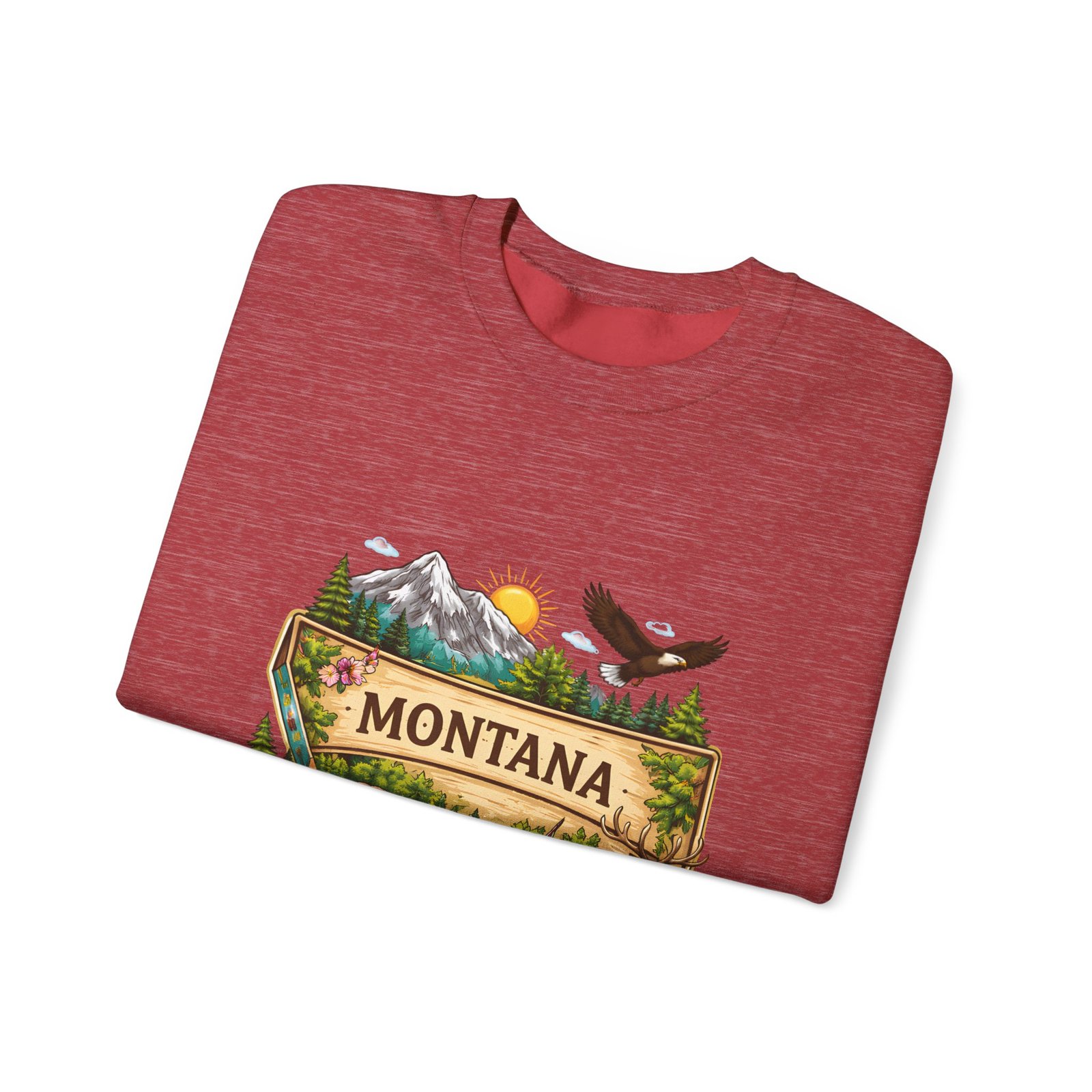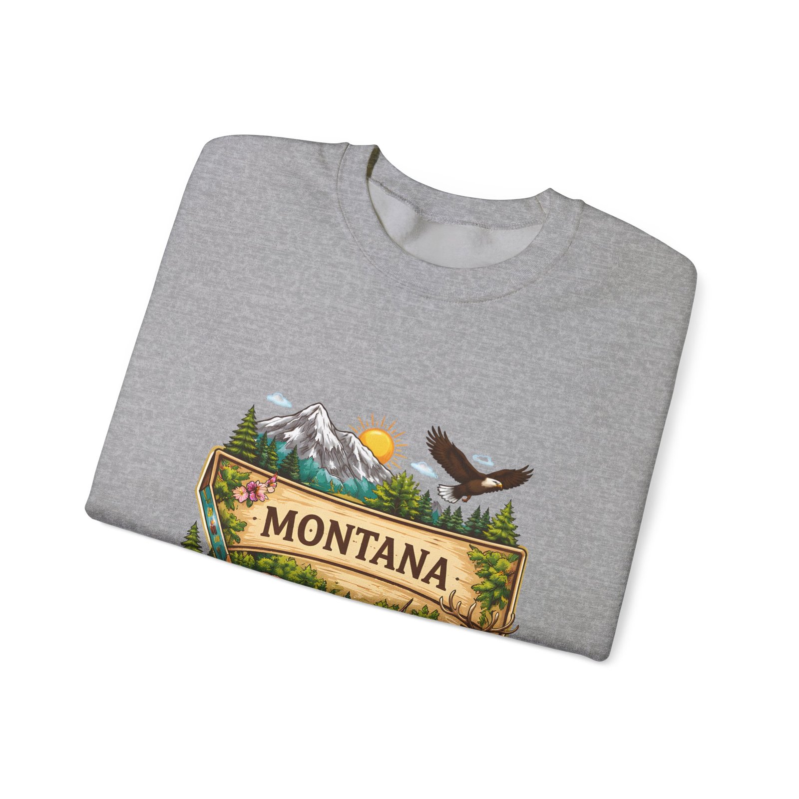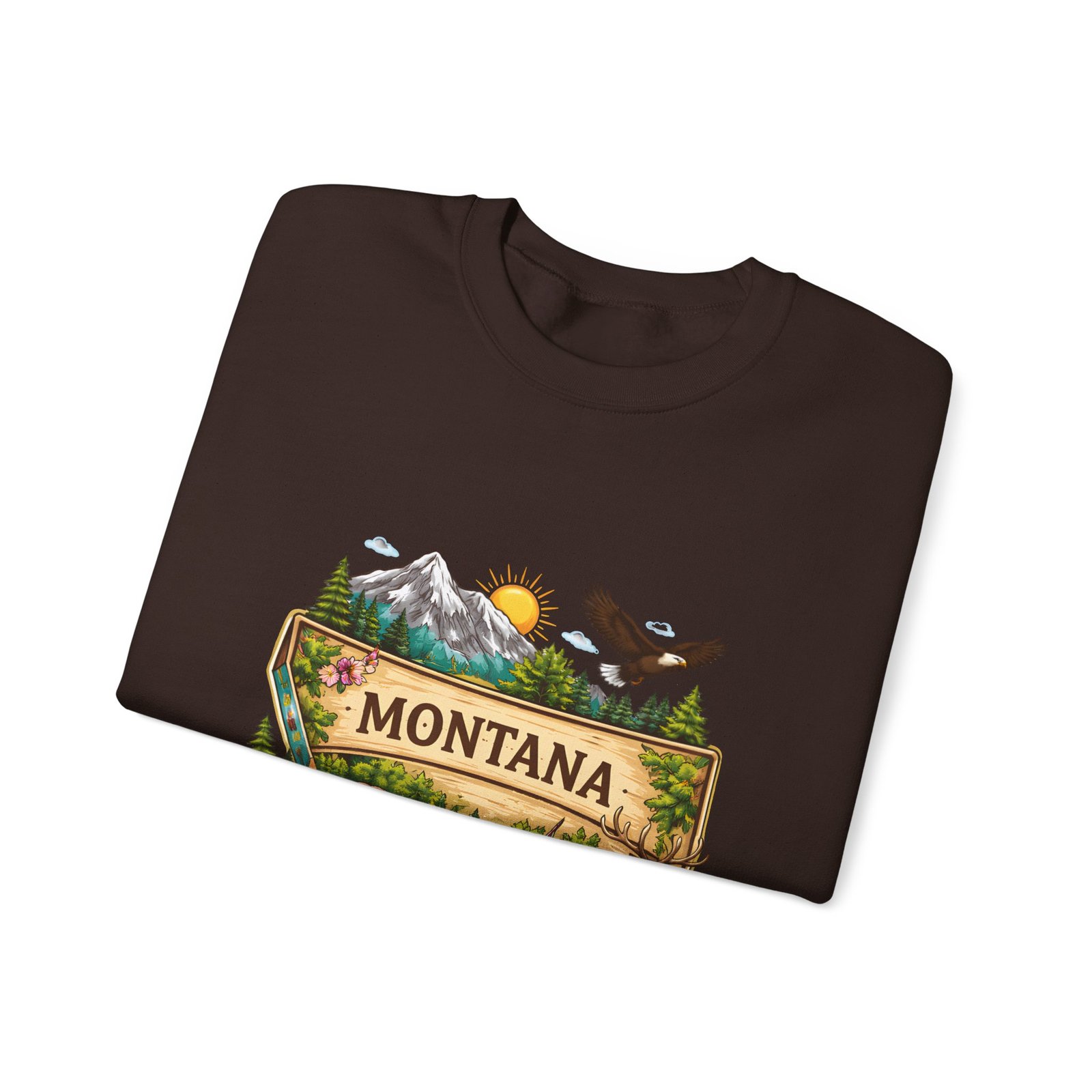 Montana Scenic Crewneck Sweatshirt — Mountain, Wildlife & River Graphic