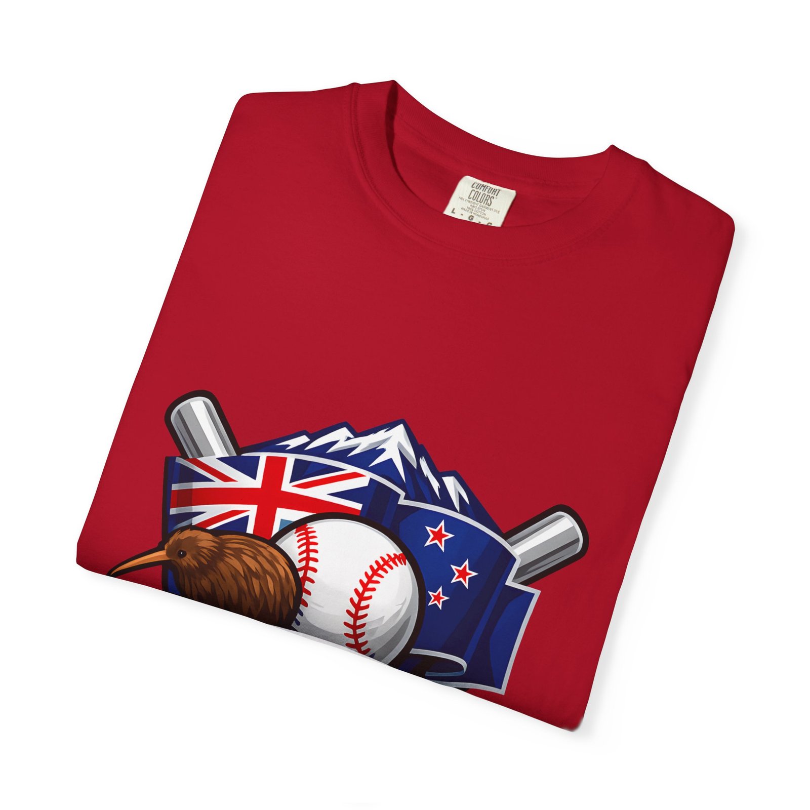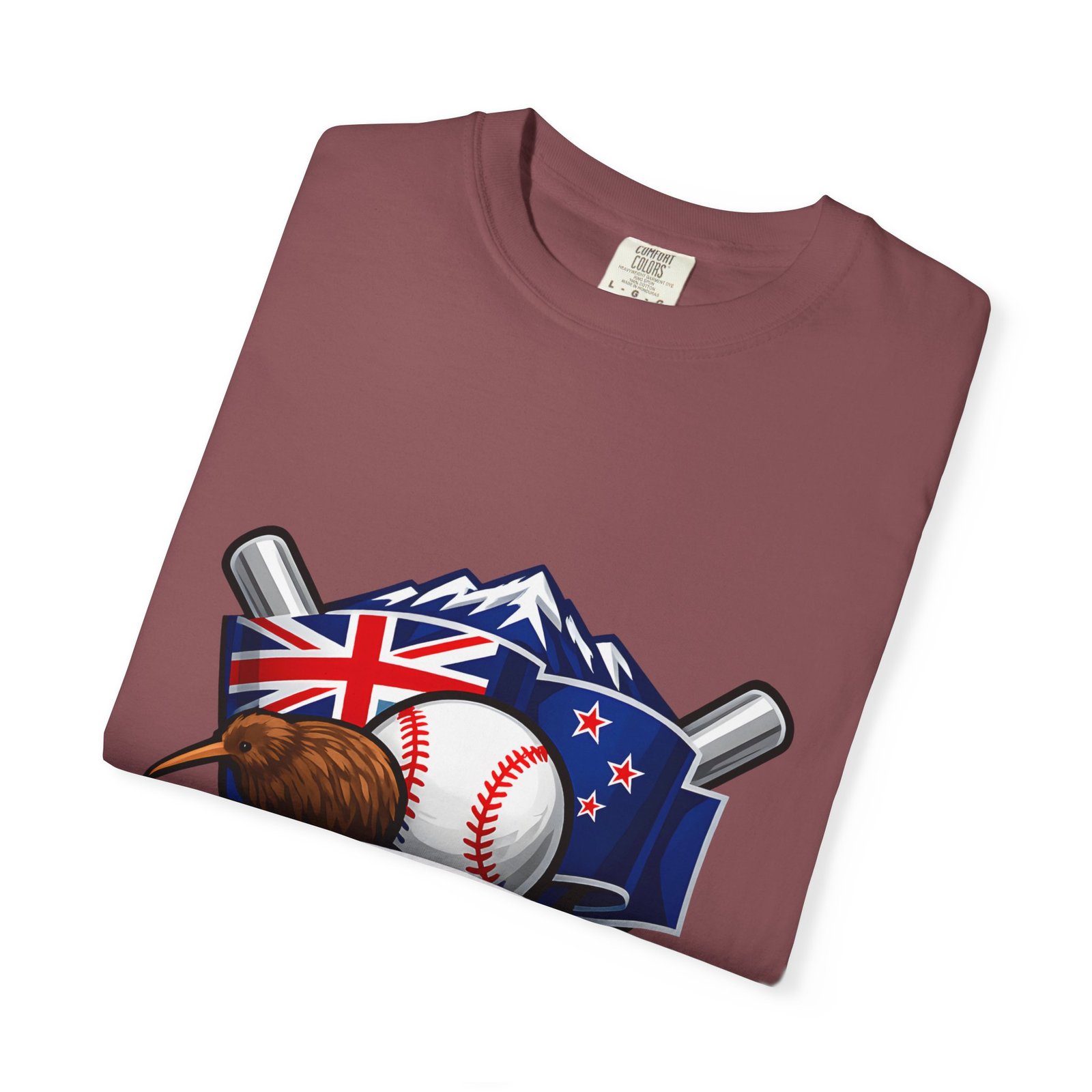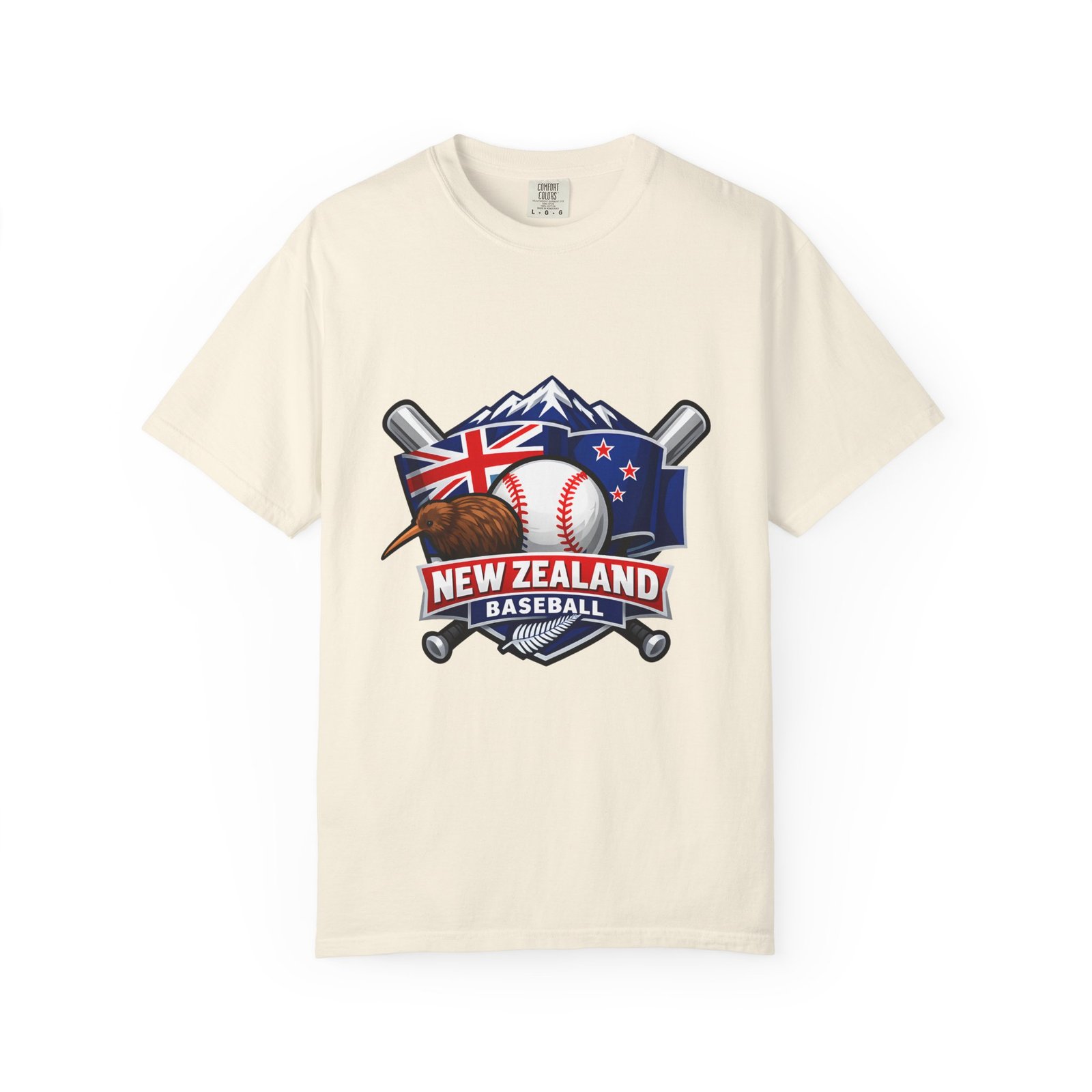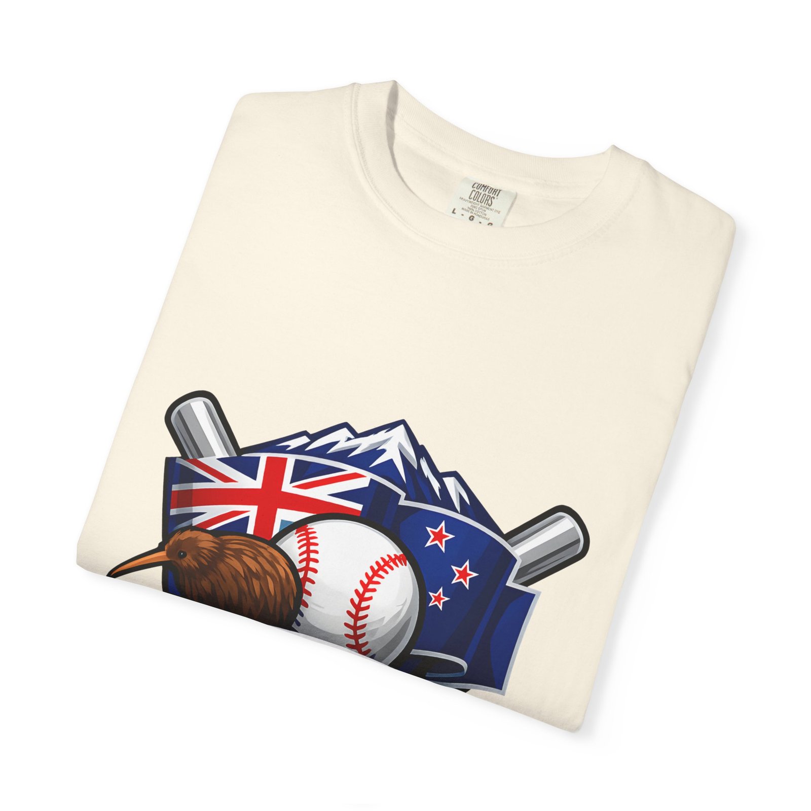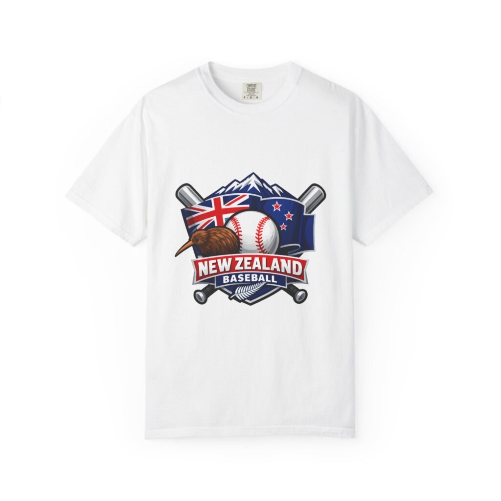This heavyweight garment-dyed tee carries a bold New Zealand baseball crest across the chest — a stitched-together symbol of mountains, the silver fern flag, and a well-worn ball and bats. The fabric feels broken-in from the first wear: softly textured, slightly faded color from the post-construction dye, and built to age gracefully. The relaxed cut and substantial 6.1 oz cotton body make it a go-to for weekend practices, post-game hangs, and chilled evenings at the diamond. It sits naturally on the shoulders, moves with you, and keeps its shape thanks to double-needle seams and pre-shrunk ring-spun cotton. Choose from many colors and sizes to match team gear or everyday wear.