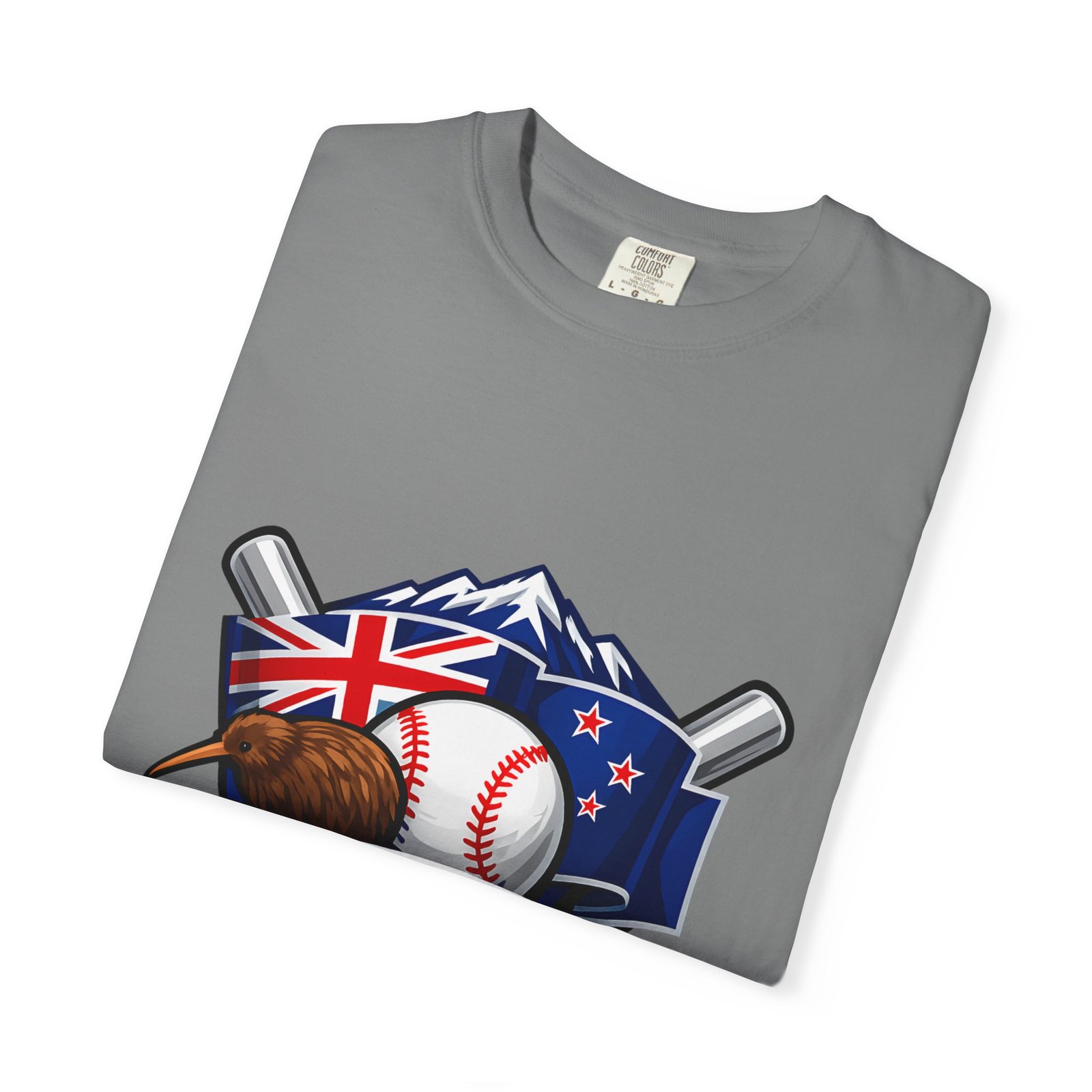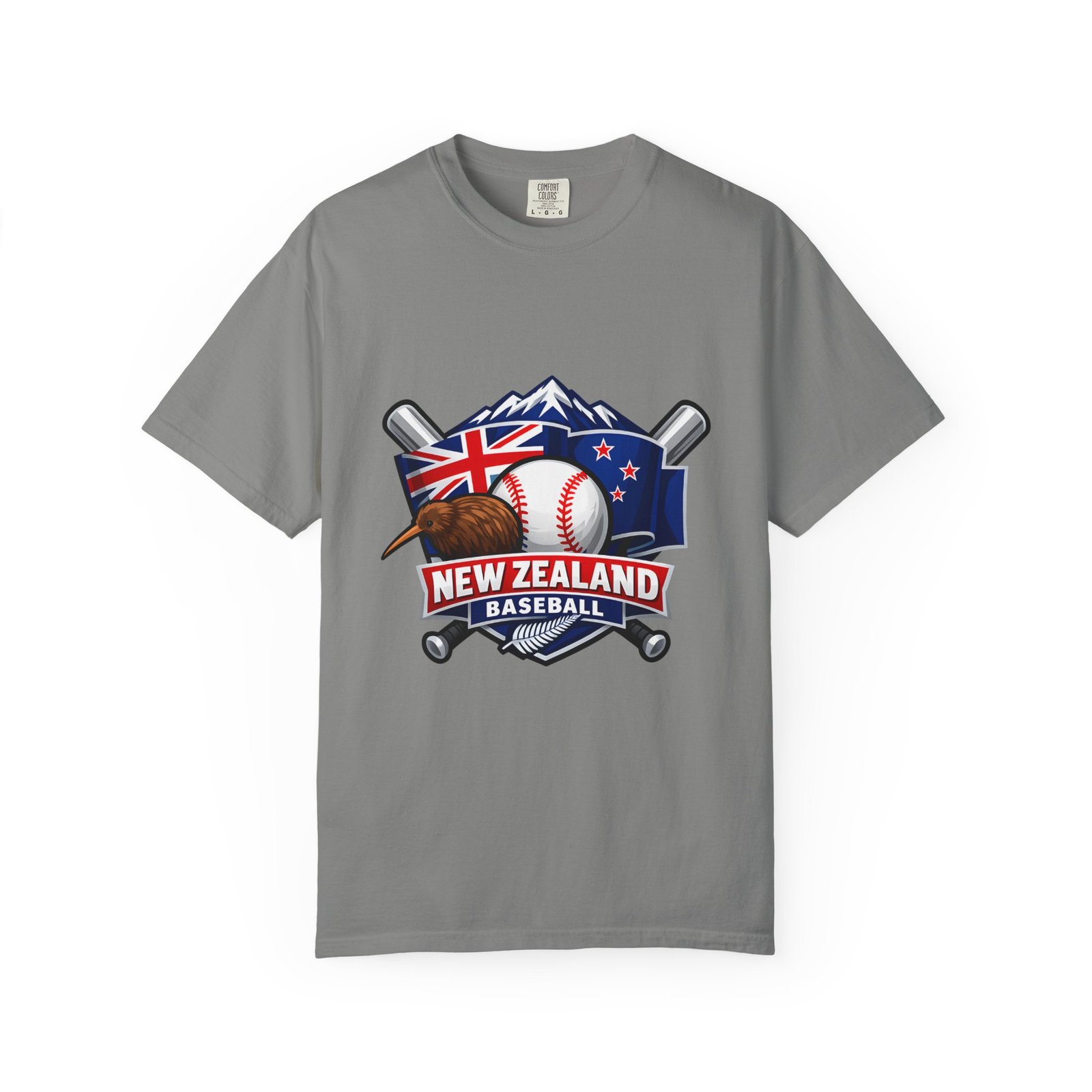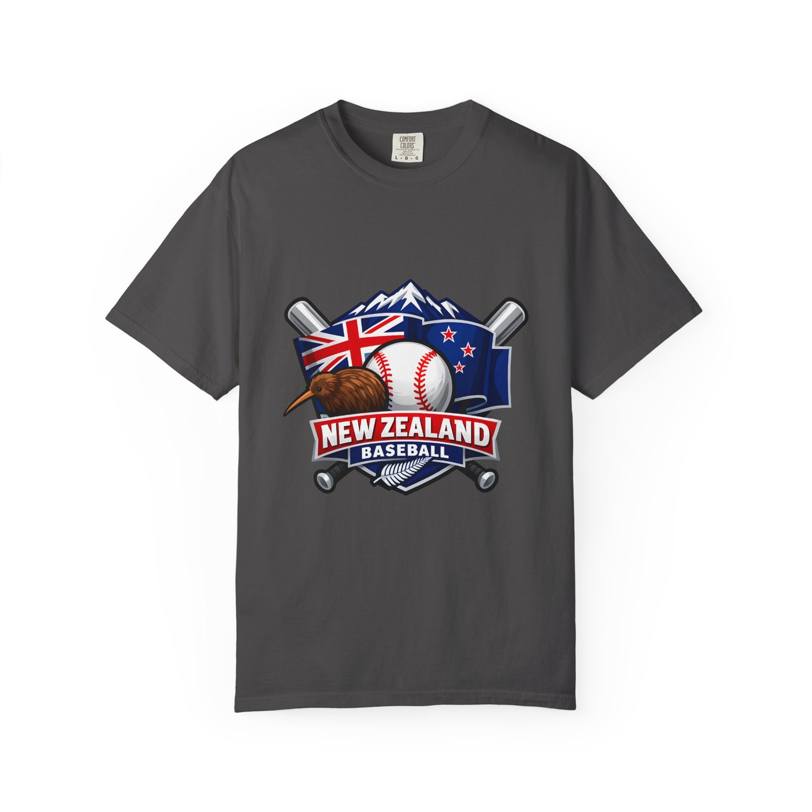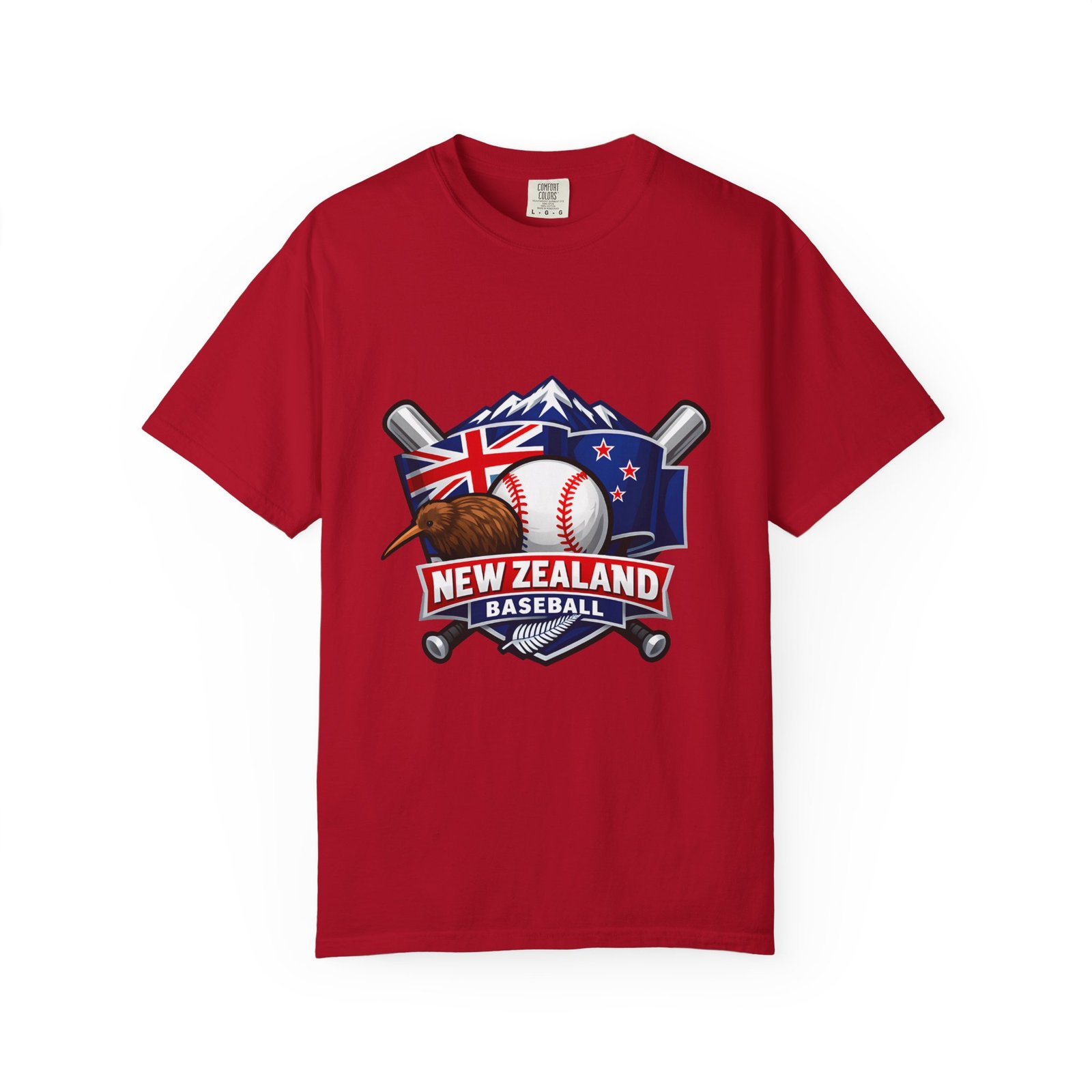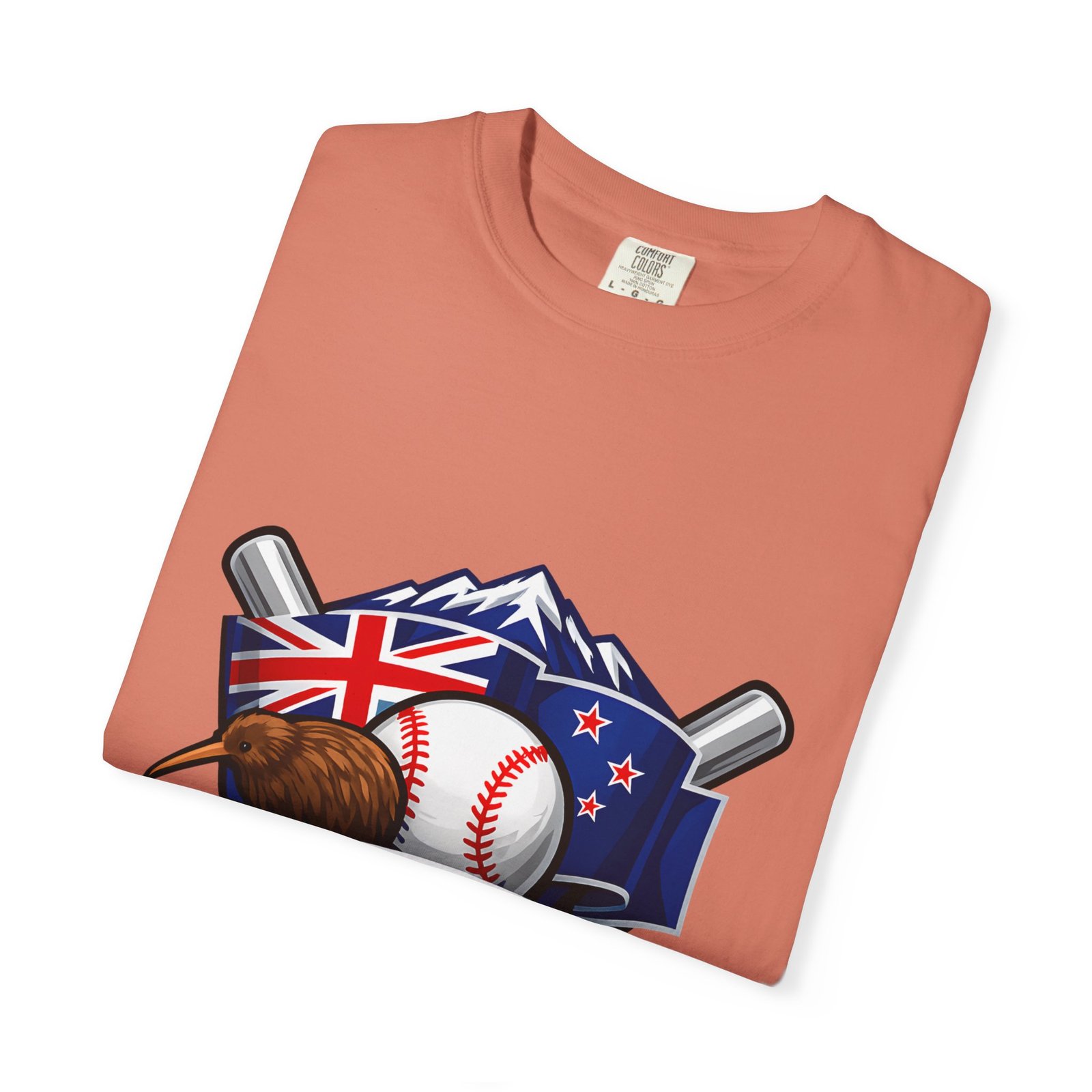 This heavyweight garment-dyed tee carries a bold New Zealand baseball crest across the chest — a stitched-together symbol of mountains, the silver fern flag, and a well-worn ball and bats. The fabric feels broken-in from the first wear: softly textured, slightly faded color from the post-construction dye, and built to age gracefully. The relaxed cut and substantial 6.1 oz cotton body make it a go-to for weekend practices, post-game hangs, and chilled evenings at the diamond. It sits naturally on the shoulders, moves with you, and keeps its shape thanks to double-needle seams and pre-shrunk ring-spun cotton. Choose from many colors and sizes to match team gear or everyday wear.