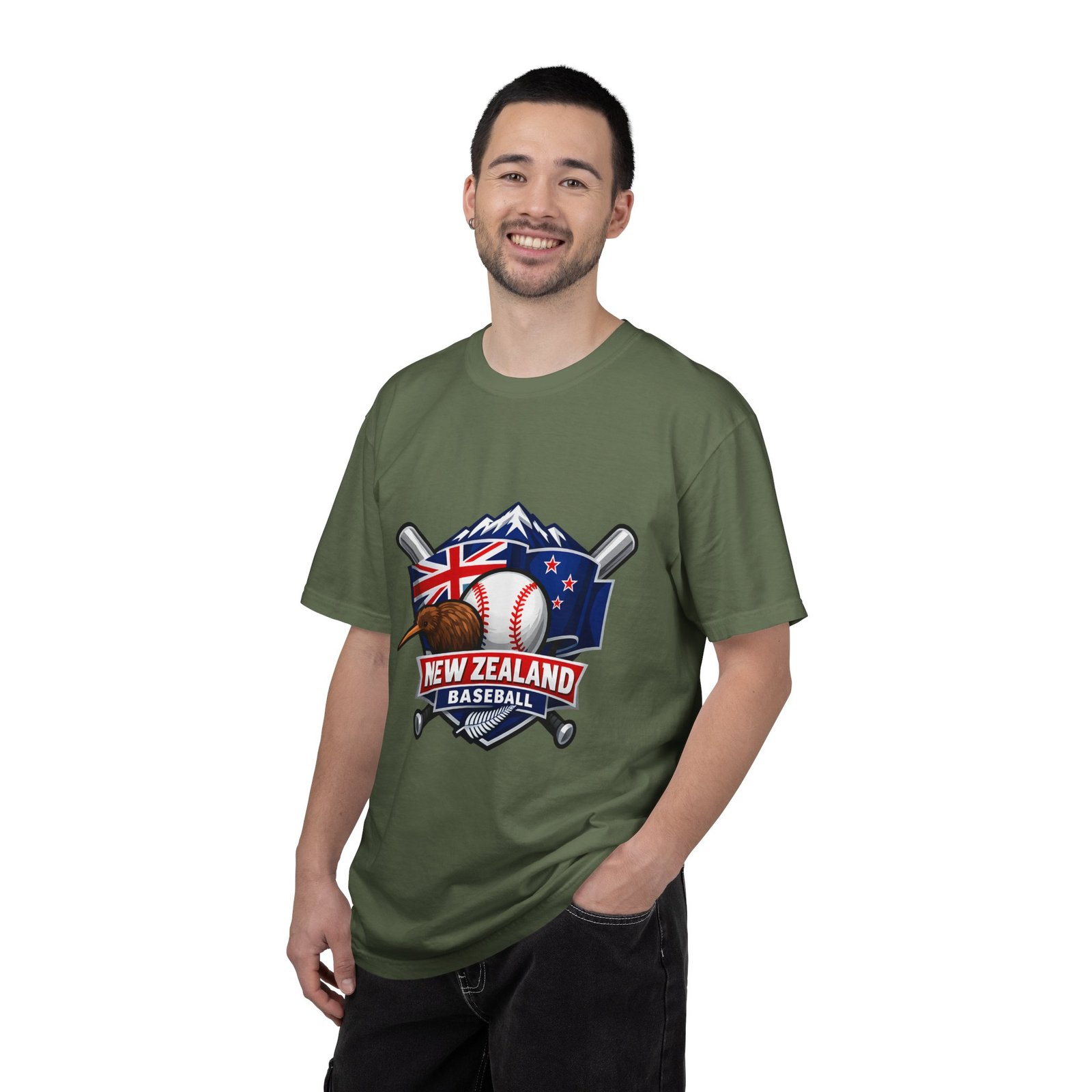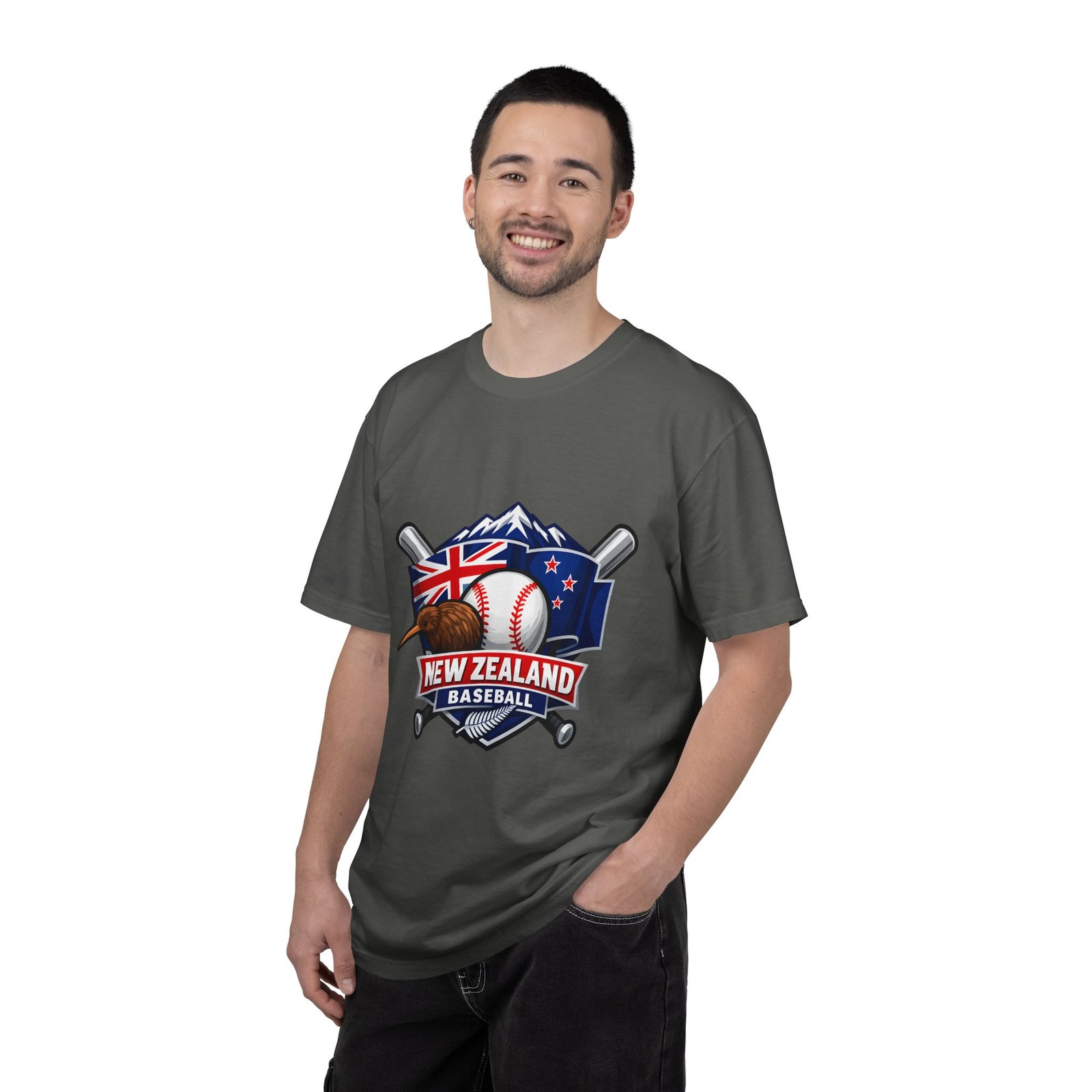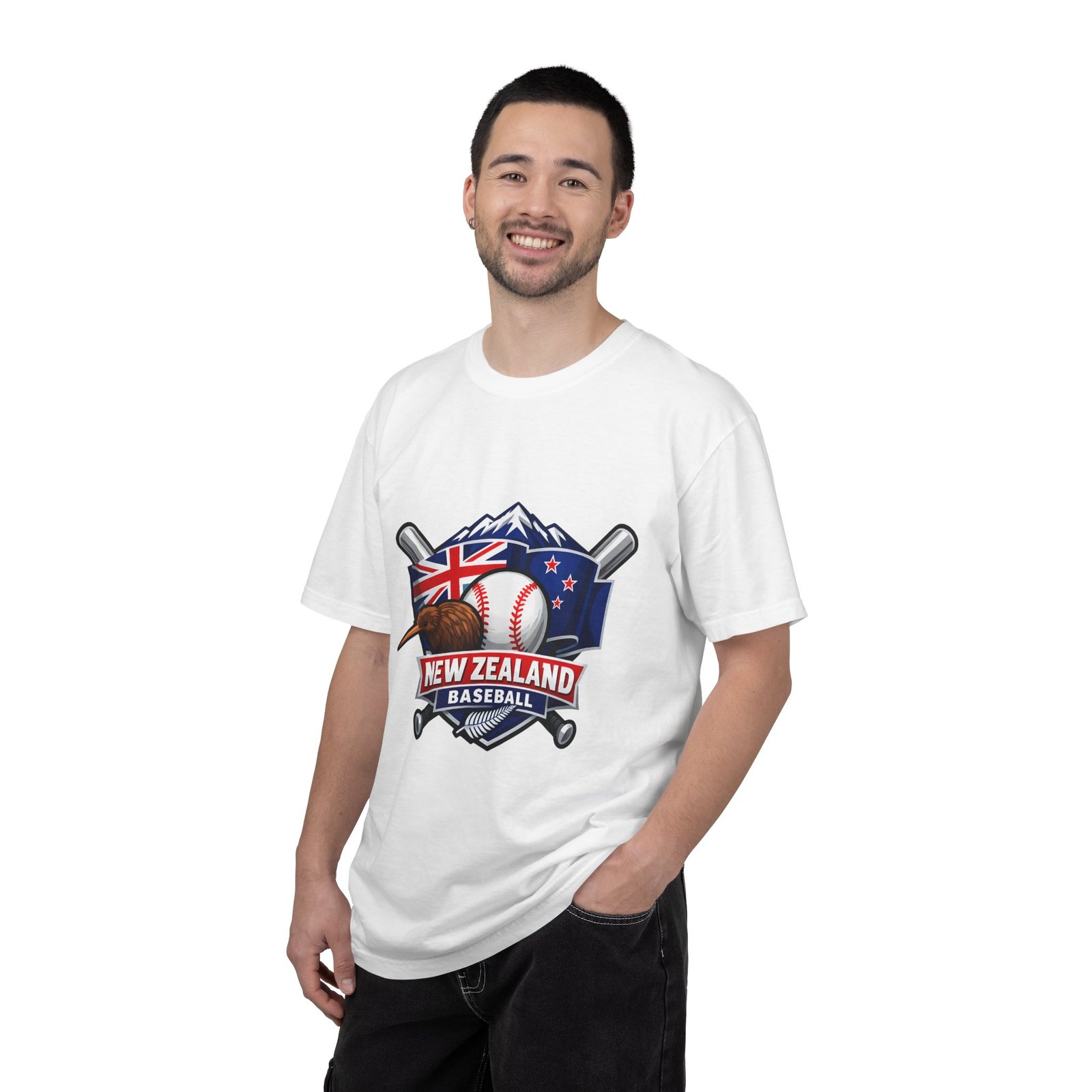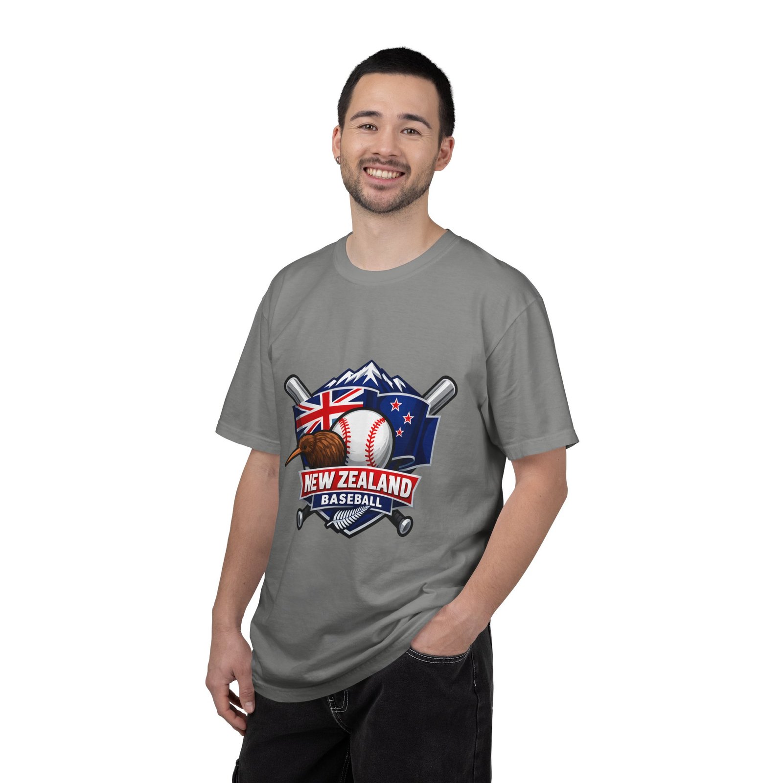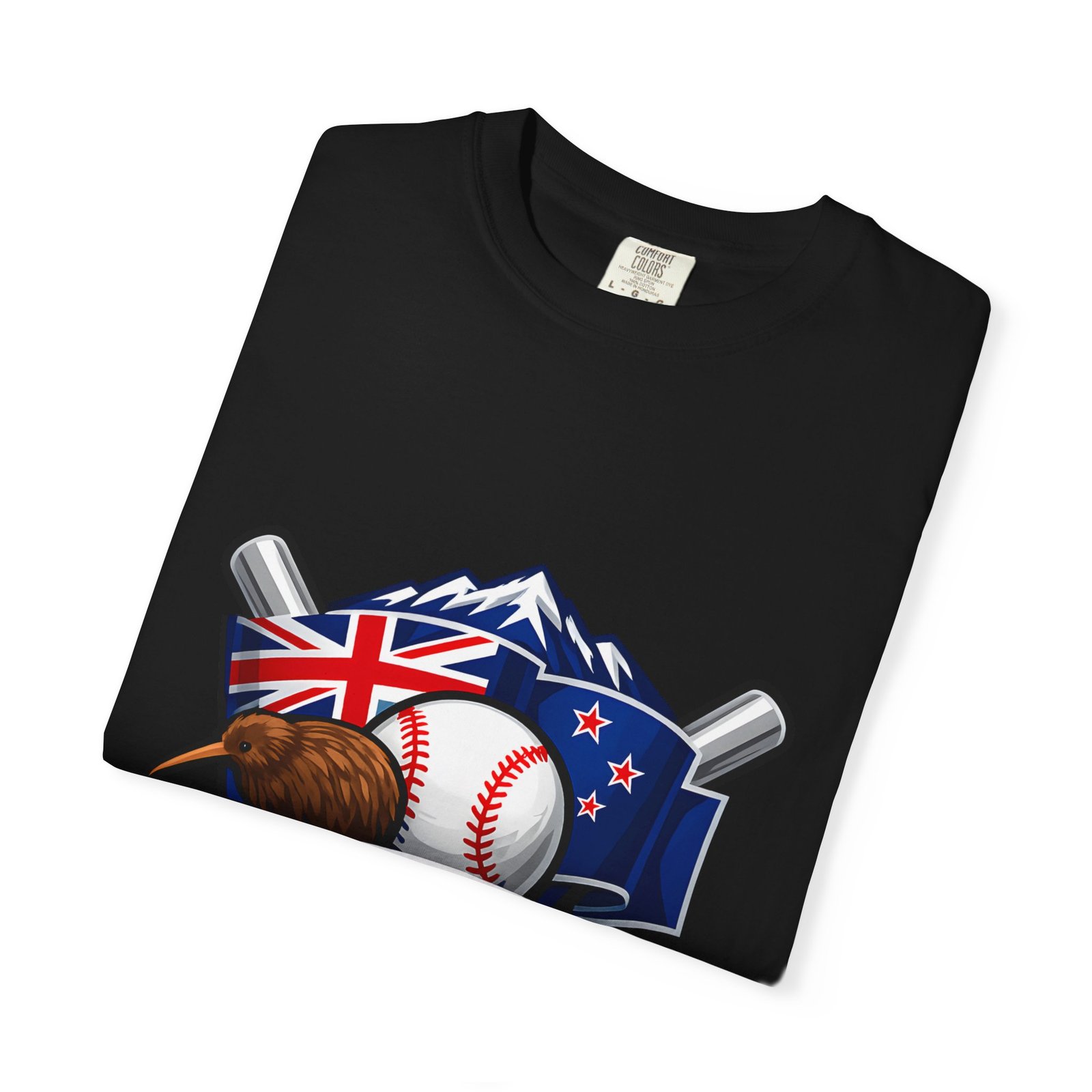 This heavyweight garment-dyed tee carries a bold New Zealand baseball crest across the chest — a stitched-together symbol of mountains, the silver fern flag, and a well-worn ball and bats. The fabric feels broken-in from the first wear: softly textured, slightly faded color from the post-construction dye, and built to age gracefully. The relaxed cut and substantial 6.1 oz cotton body make it a go-to for weekend practices, post-game hangs, and chilled evenings at the diamond. It sits naturally on the shoulders, moves with you, and keeps its shape thanks to double-needle seams and pre-shrunk ring-spun cotton. Choose from many colors and sizes to match team gear or everyday wear.