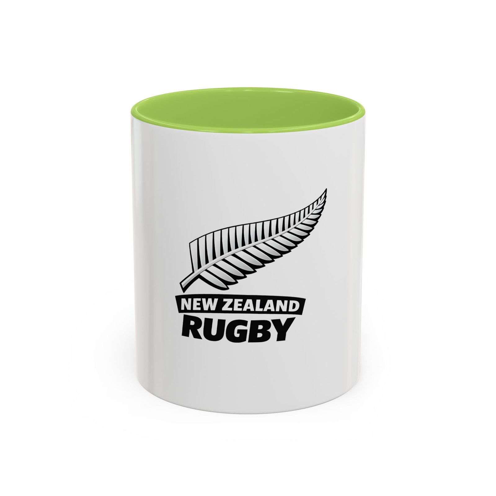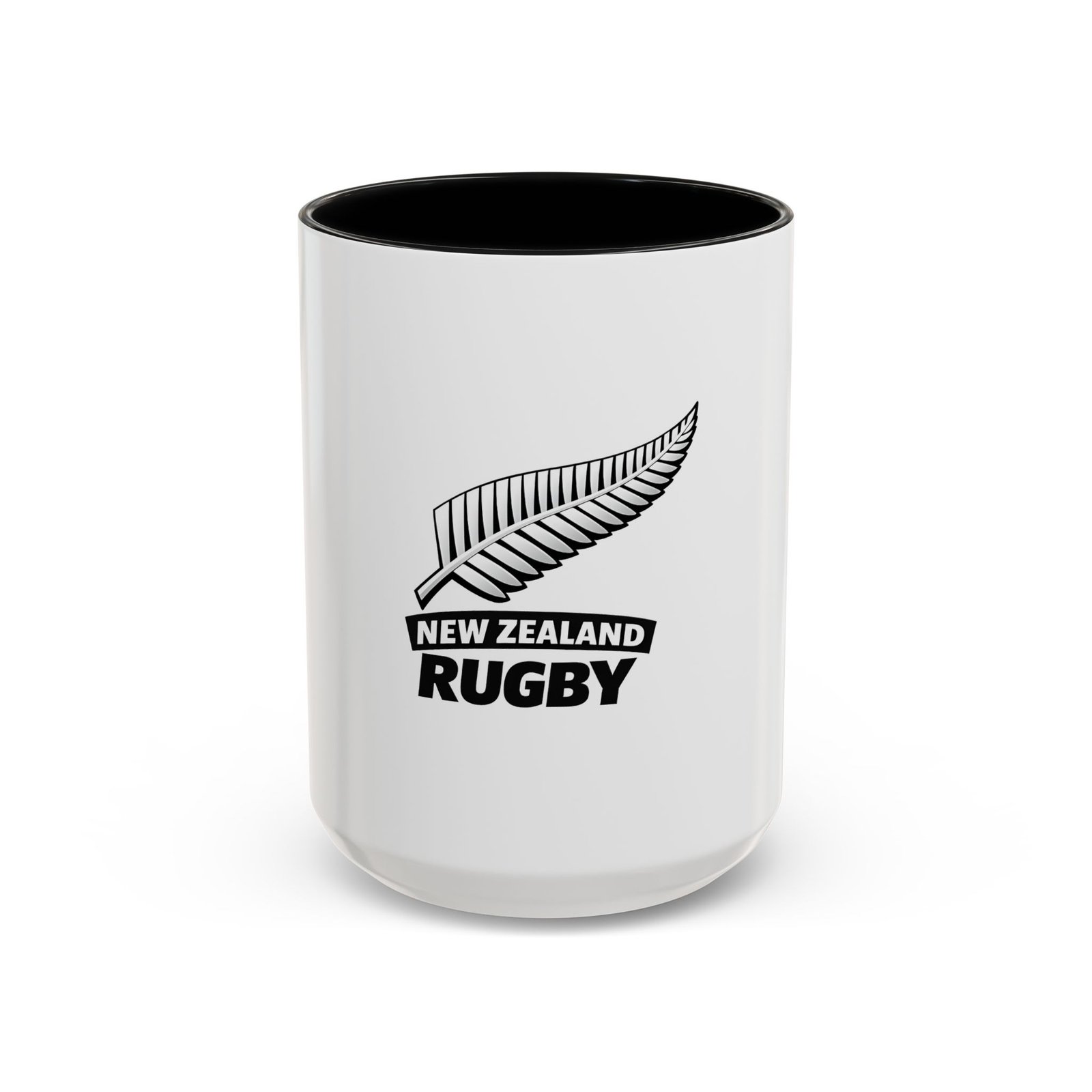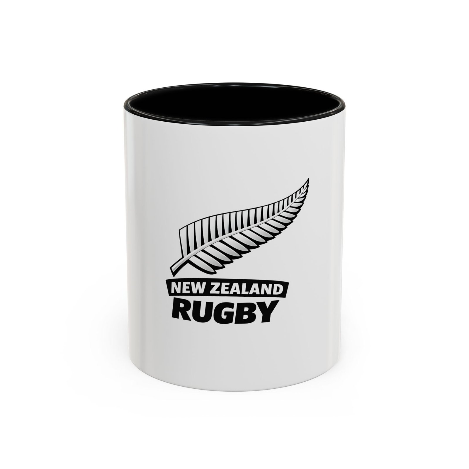 This ceramic accent mug brings a quiet, confident nod to rugby culture into your morning routine. Clean white ceramic with a contrasting black interior and handle makes the monochrome fern-and-type design stand out without shouting. It feels sturdy in the hand — the C-shaped handle gives good grip while you stir, and the glossy finish keeps the print bright after many washes. Use it for strong coffee before a weekend match, a slow afternoon tea while poring over stats, or as a desk companion that quietly shows where your loyalties lie. The simple, athletic look blends with both a minimalist kitchen and a shelf of match-day memorabilia.
