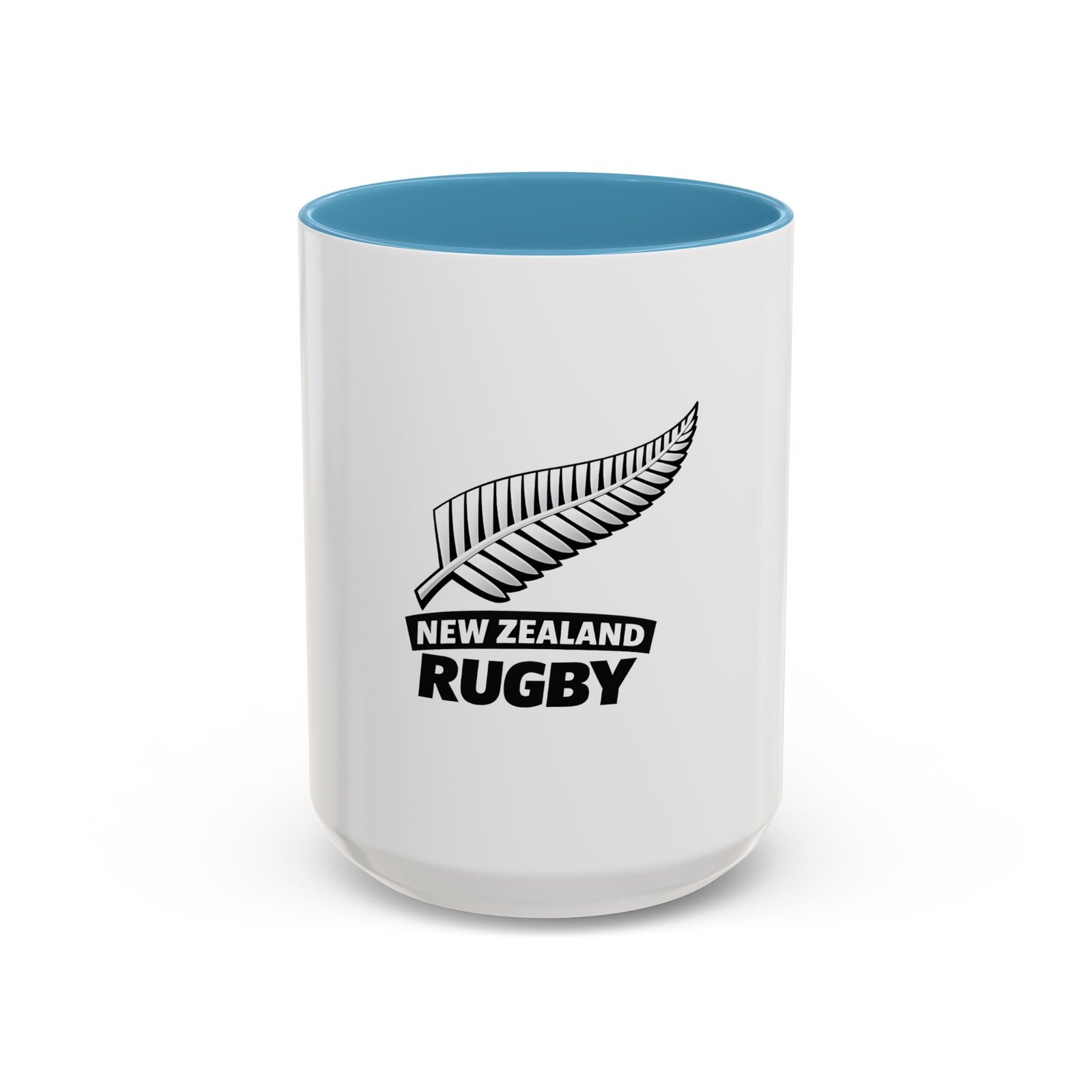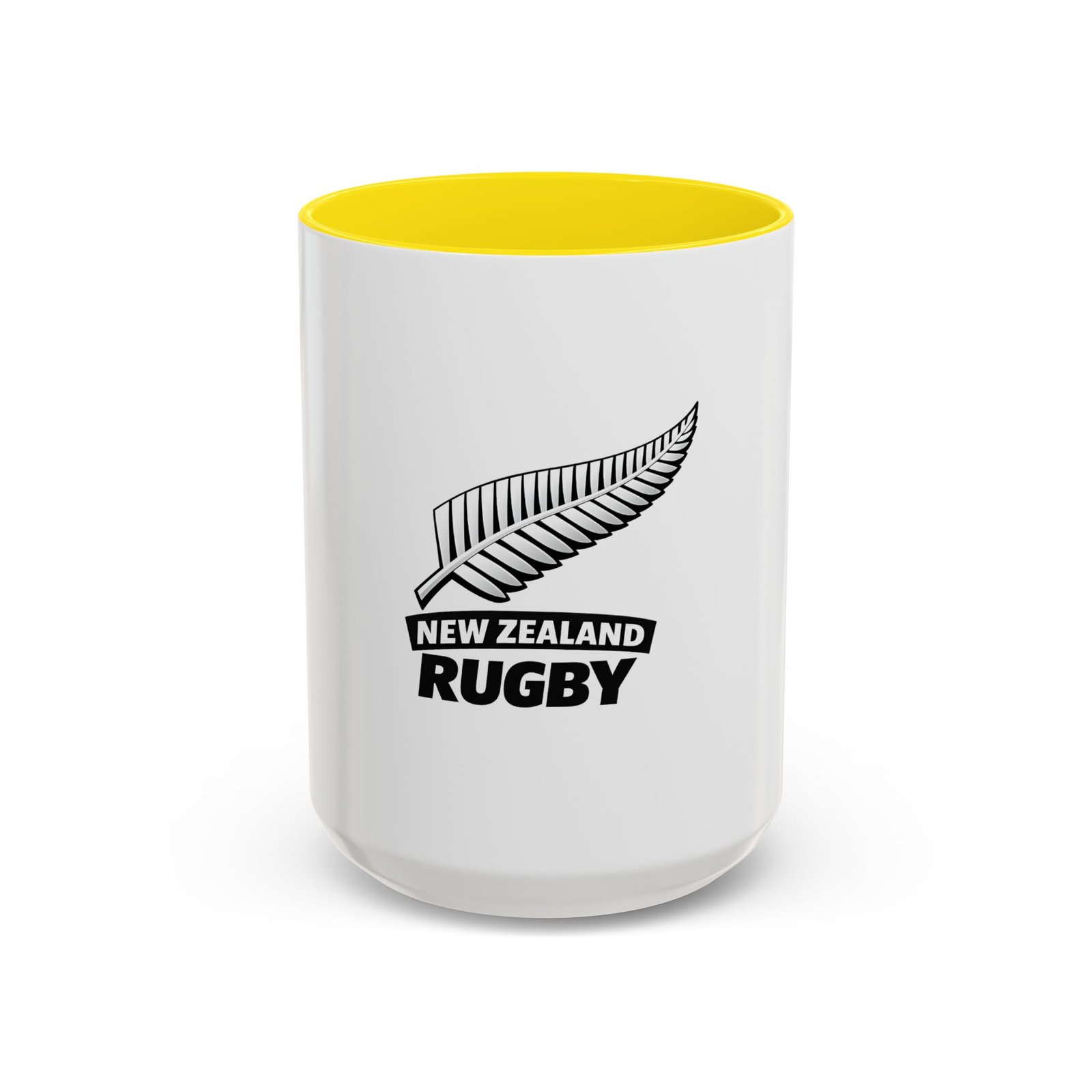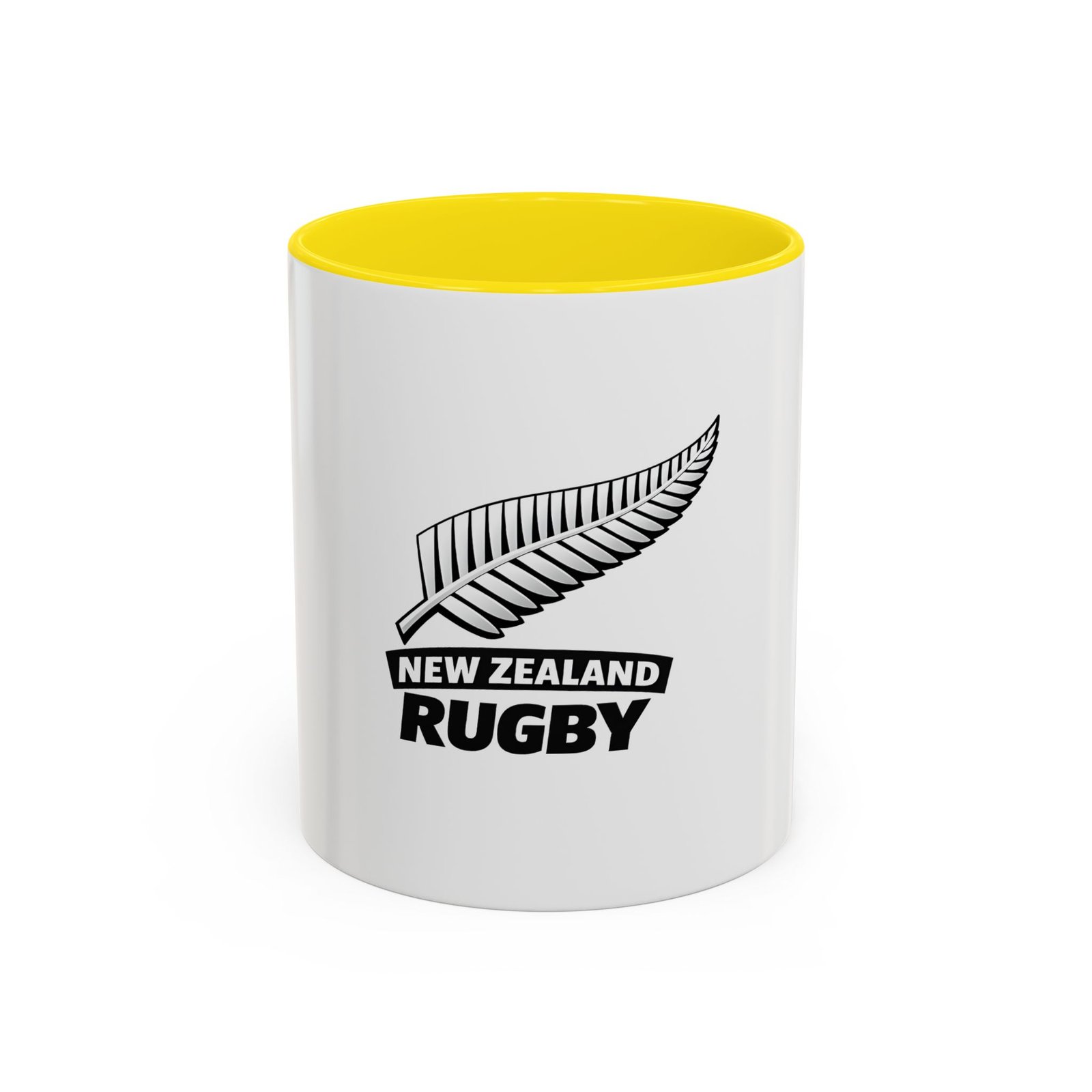 This ceramic accent mug brings a quiet, confident nod to rugby culture into your morning routine. Clean white ceramic with a contrasting black interior and handle makes the monochrome fern-and-type design stand out without shouting. It feels sturdy in the hand — the C-shaped handle gives good grip while you stir, and the glossy finish keeps the print bright after many washes. Use it for strong coffee before a weekend match, a slow afternoon tea while poring over stats, or as a desk companion that quietly shows where your loyalties lie. The simple, athletic look blends with both a minimalist kitchen and a shelf of match-day memorabilia.