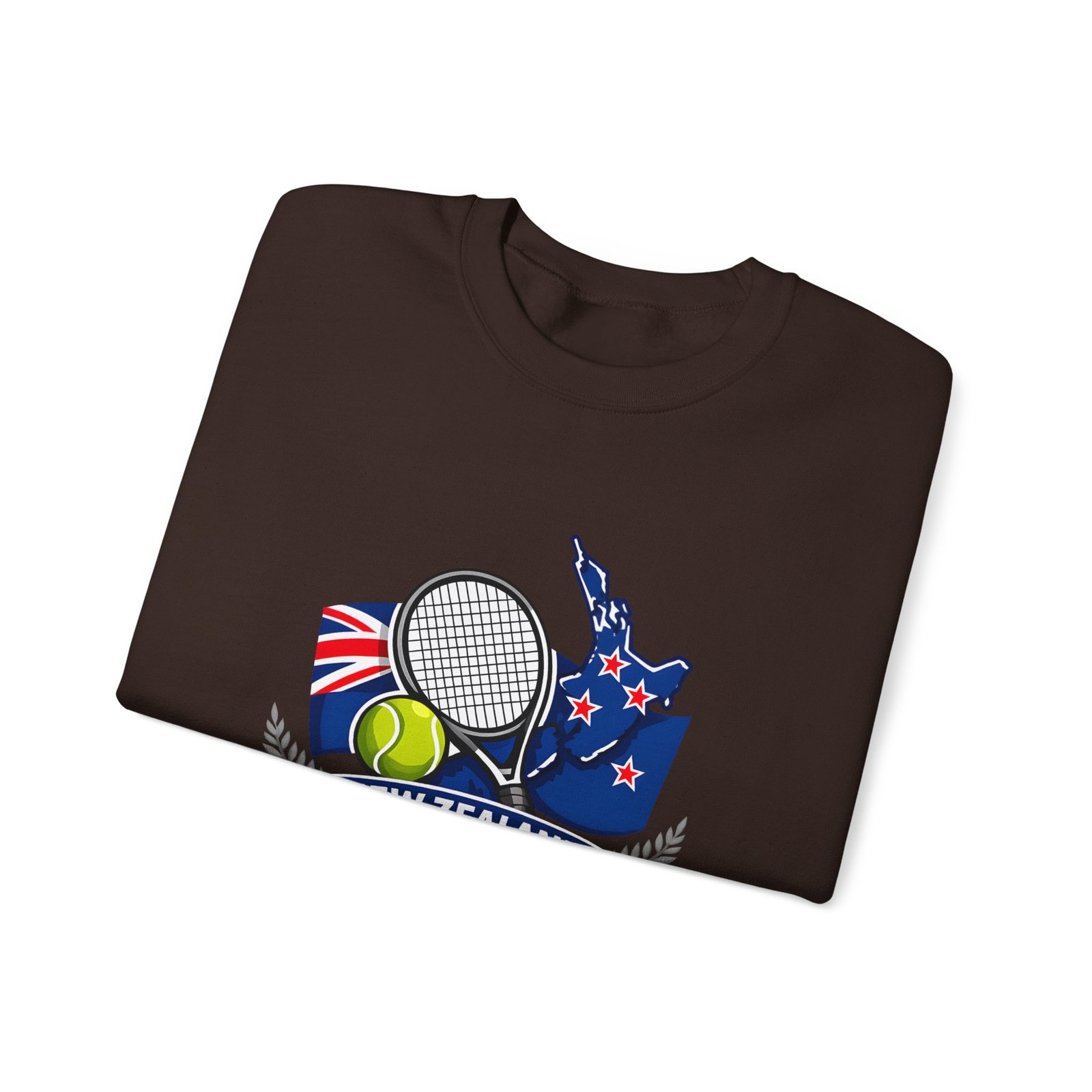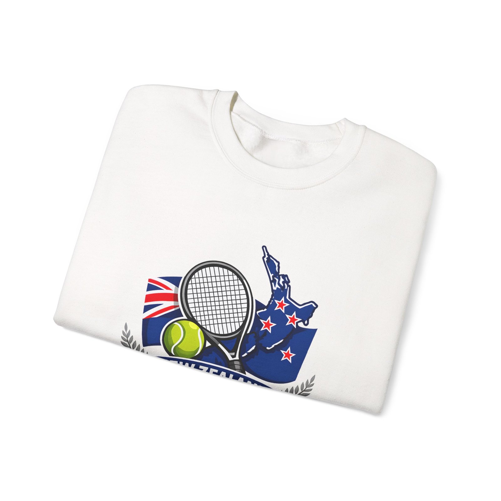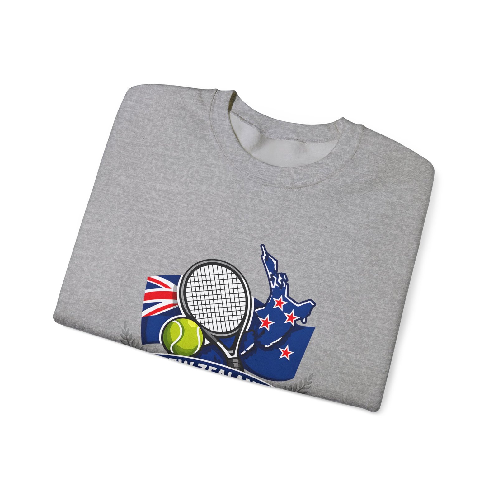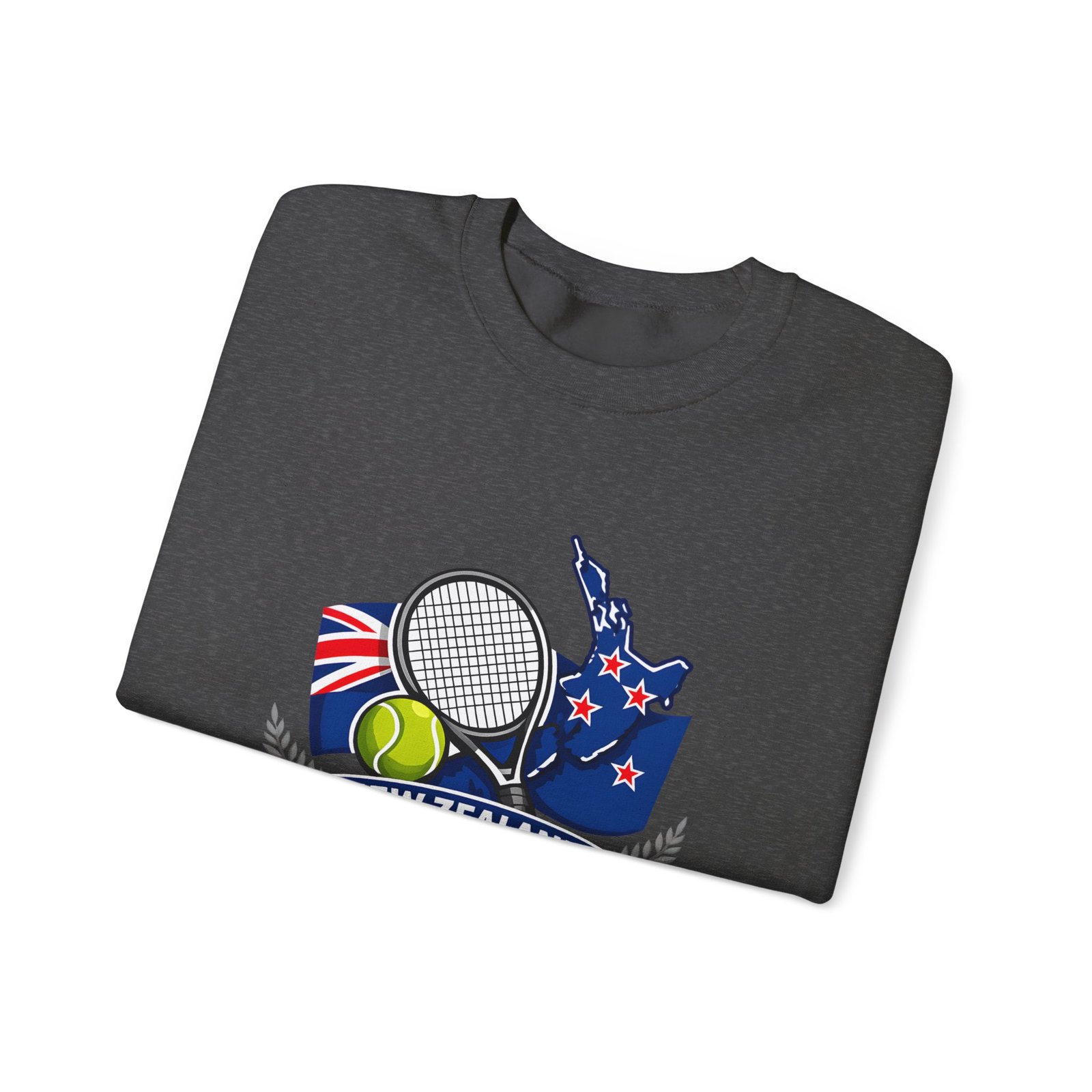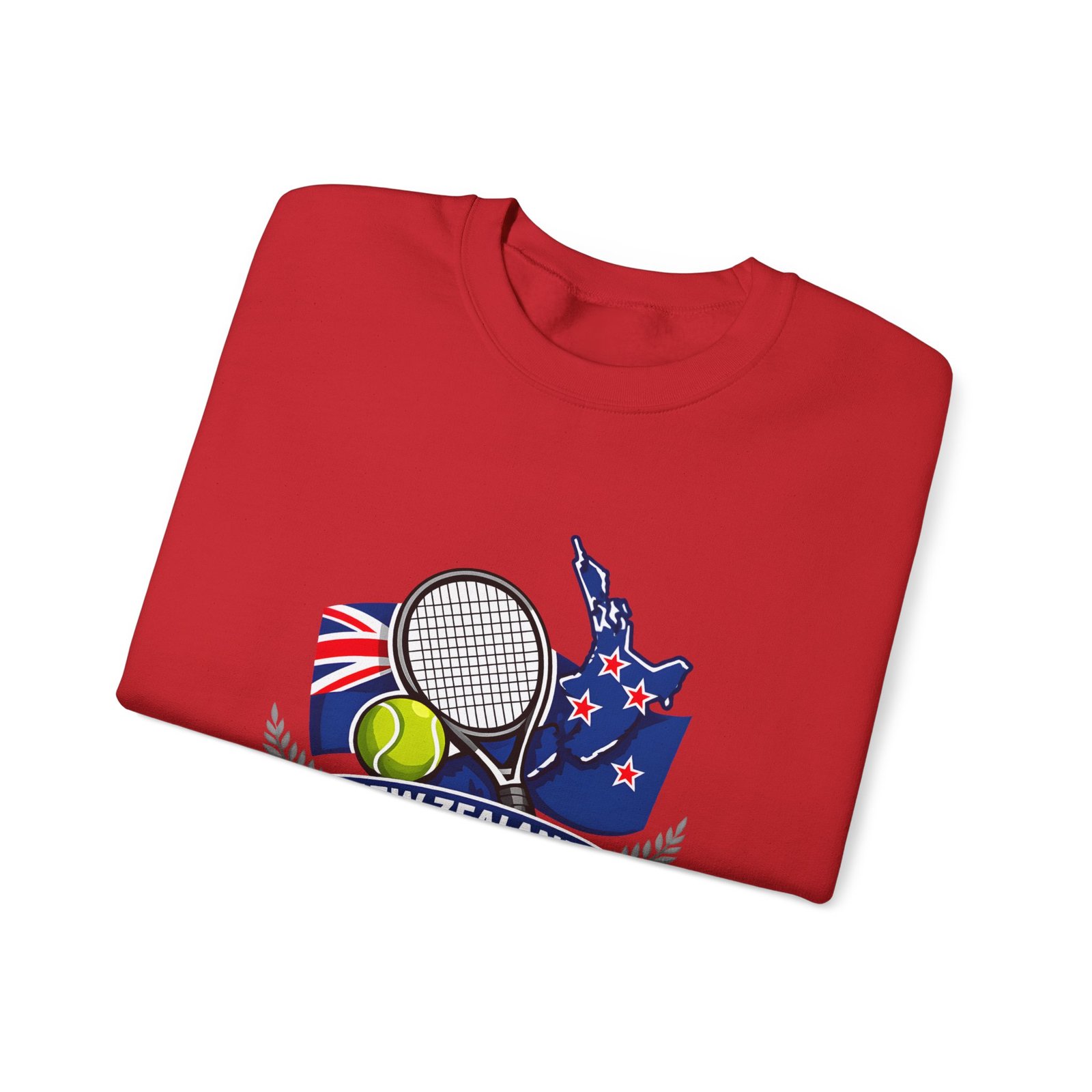 This cozy crewneck brings the court to the everyday — a medium-weight sweatshirt that reads like a quiet nod to Kiwi tennis pride. The front sports a crisp embroidered graphic: a racket, tennis ball, and the outline of New Zealand framed by subtle flag accents and laurel sprigs. It feels lived-in from the first wear: soft against skin, structured at the collar, and built to hold its shape through seasons of practice, travel, and weekend hangs. Wear it to early-morning drills, casual club nights, or while watching a match with friends — it fits into the rhythm of players and fans who value comfort, craftsmanship, and understated team spirit.