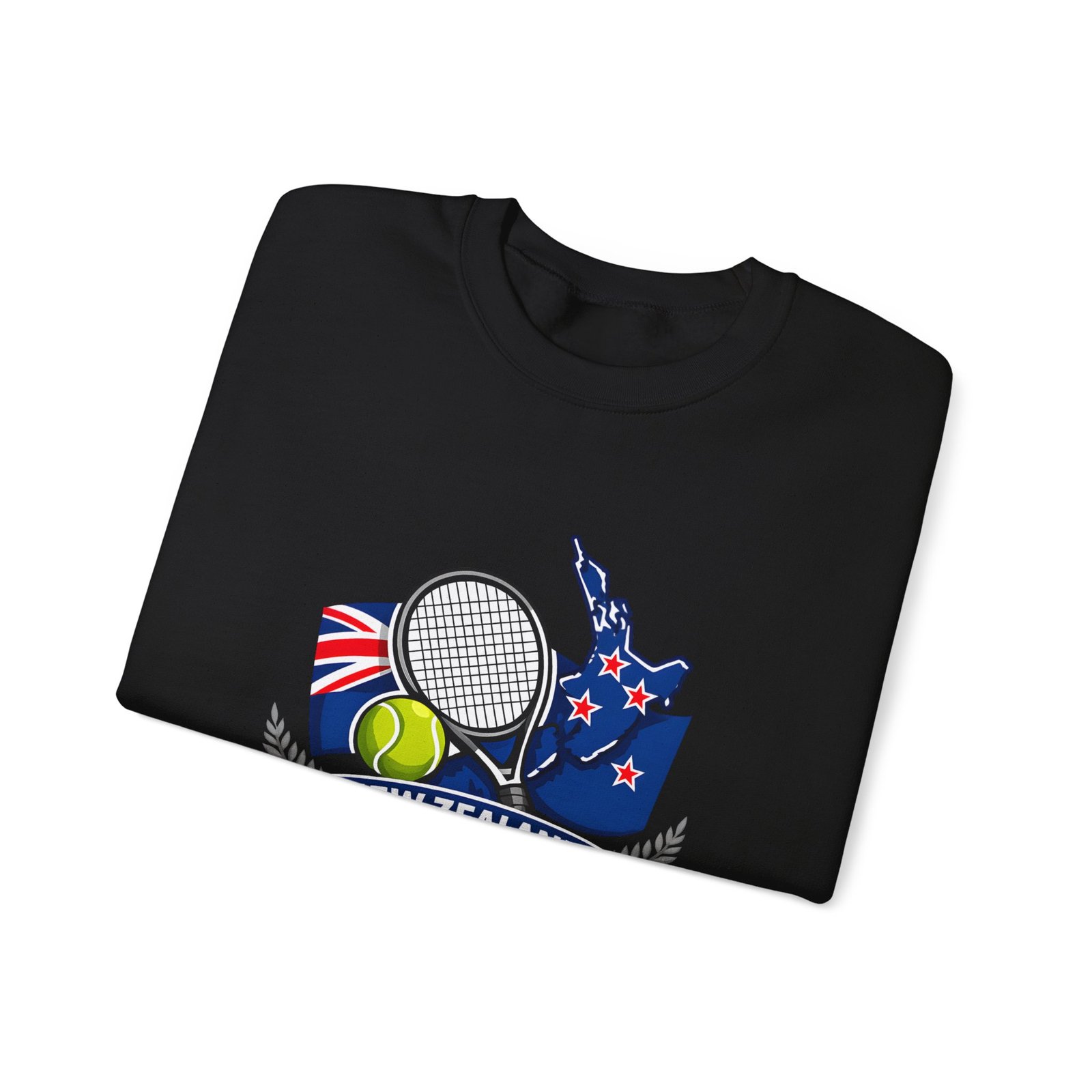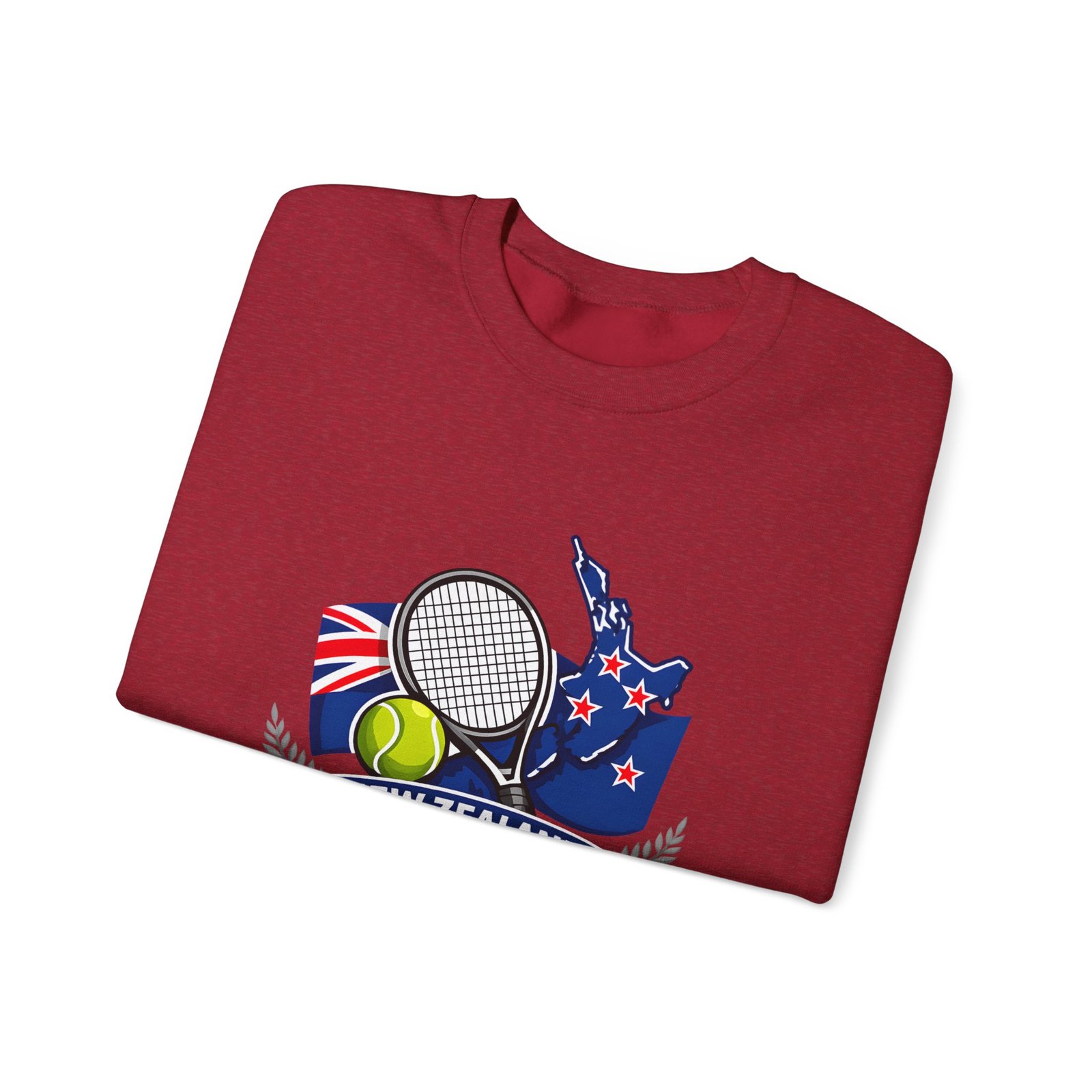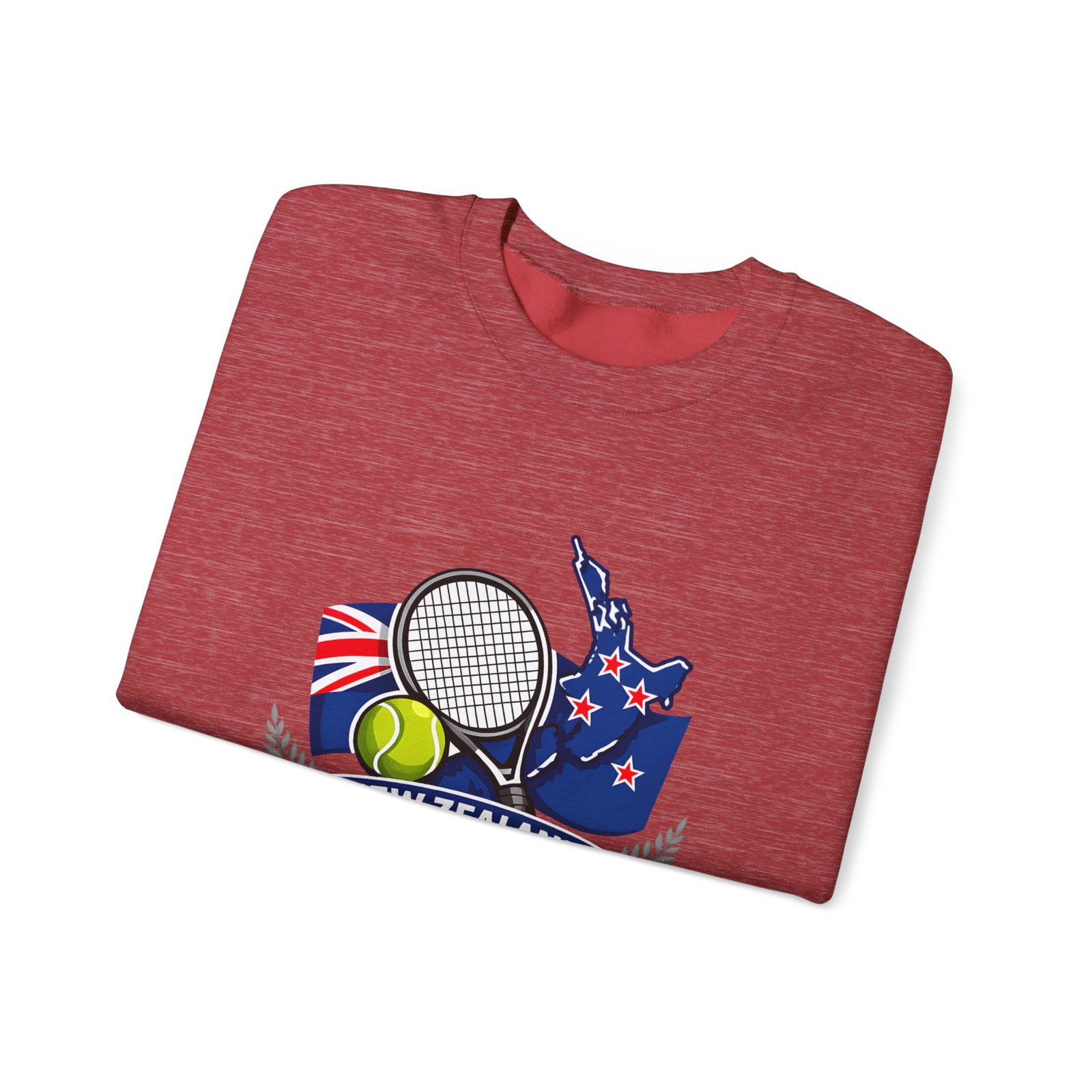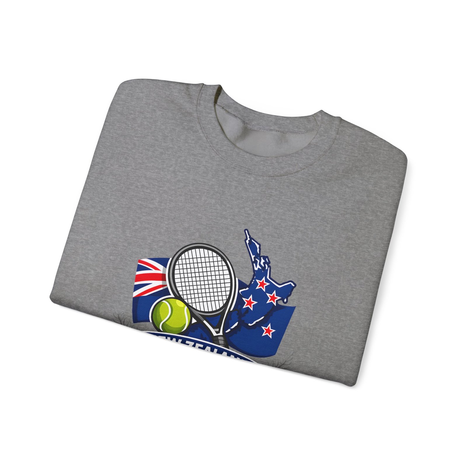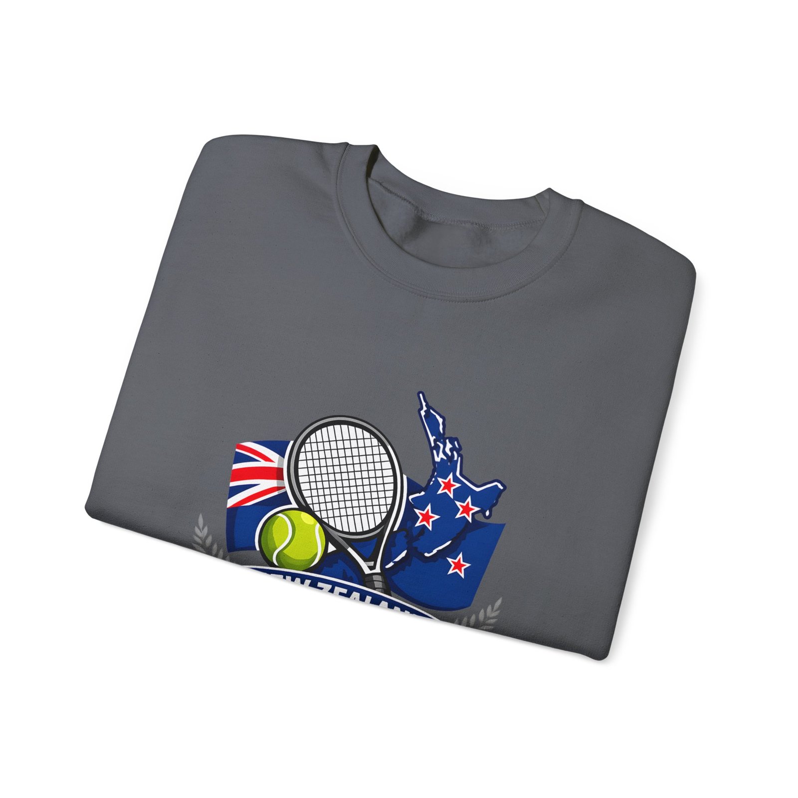 This cozy crewneck brings the court to the everyday — a medium-weight sweatshirt that reads like a quiet nod to Kiwi tennis pride. The front sports a crisp embroidered graphic: a racket, tennis ball, and the outline of New Zealand framed by subtle flag accents and laurel sprigs. It feels lived-in from the first wear: soft against skin, structured at the collar, and built to hold its shape through seasons of practice, travel, and weekend hangs. Wear it to early-morning drills, casual club nights, or while watching a match with friends — it fits into the rhythm of players and fans who value comfort, craftsmanship, and understated team spirit.