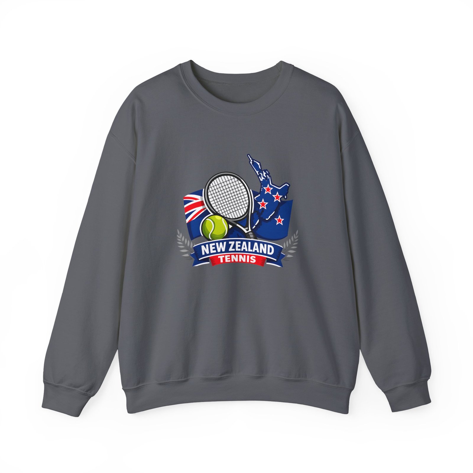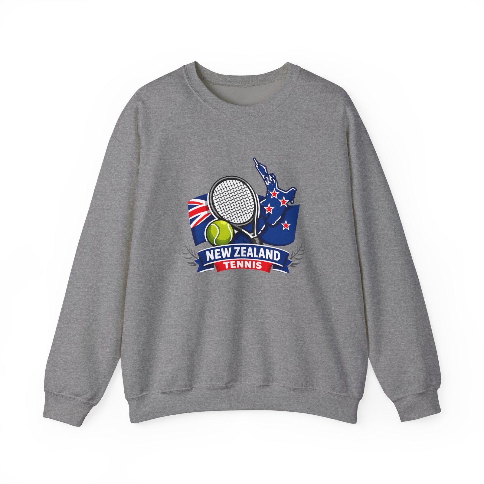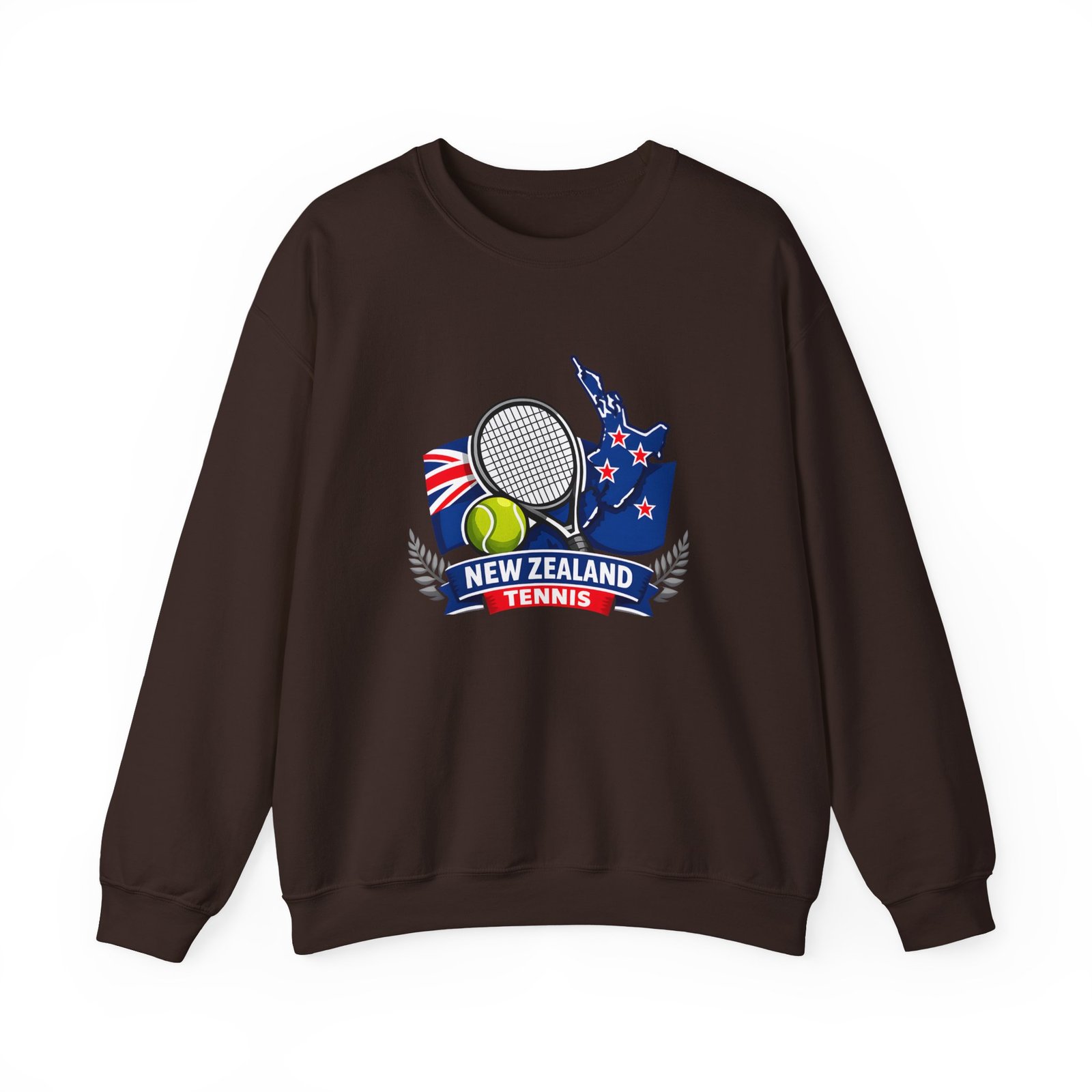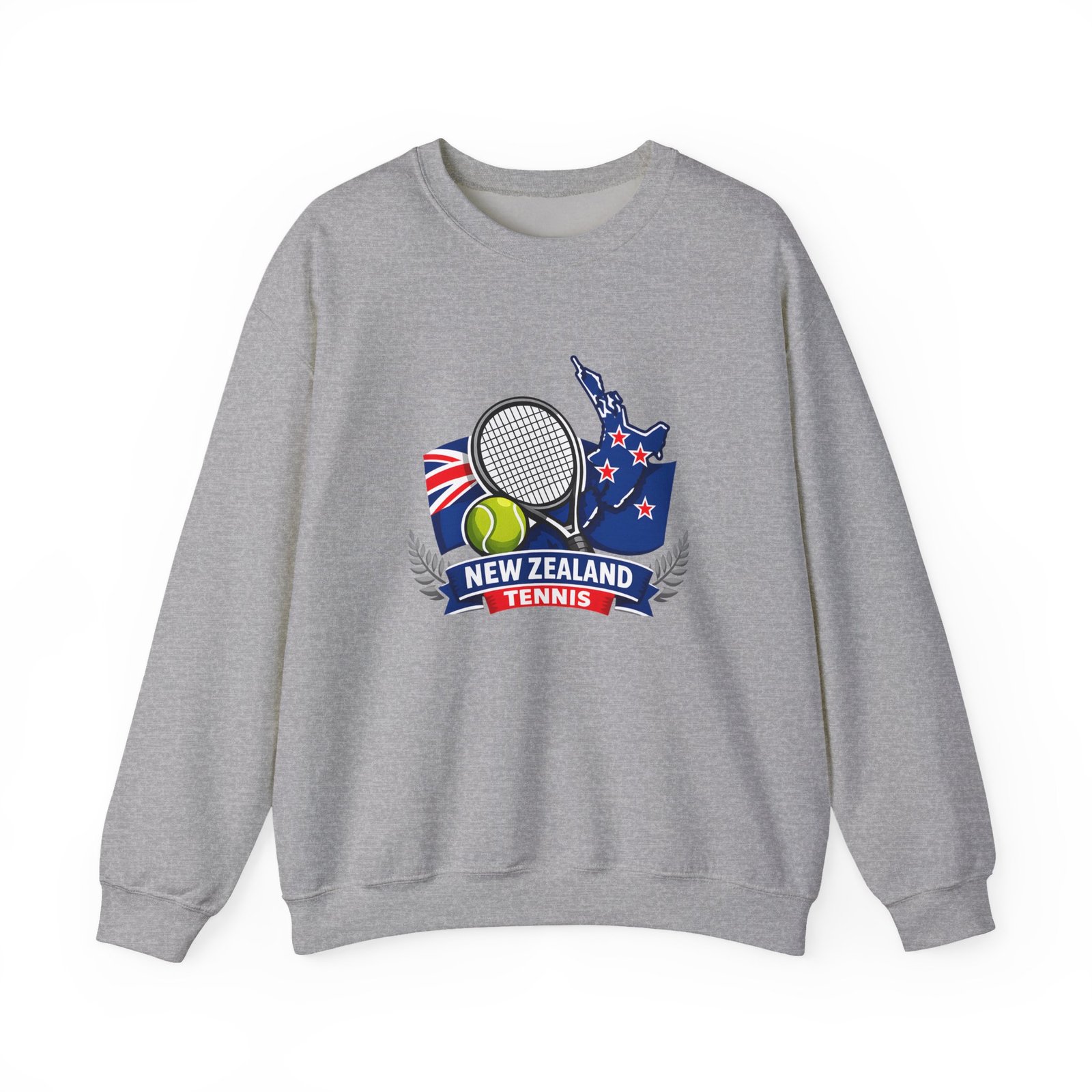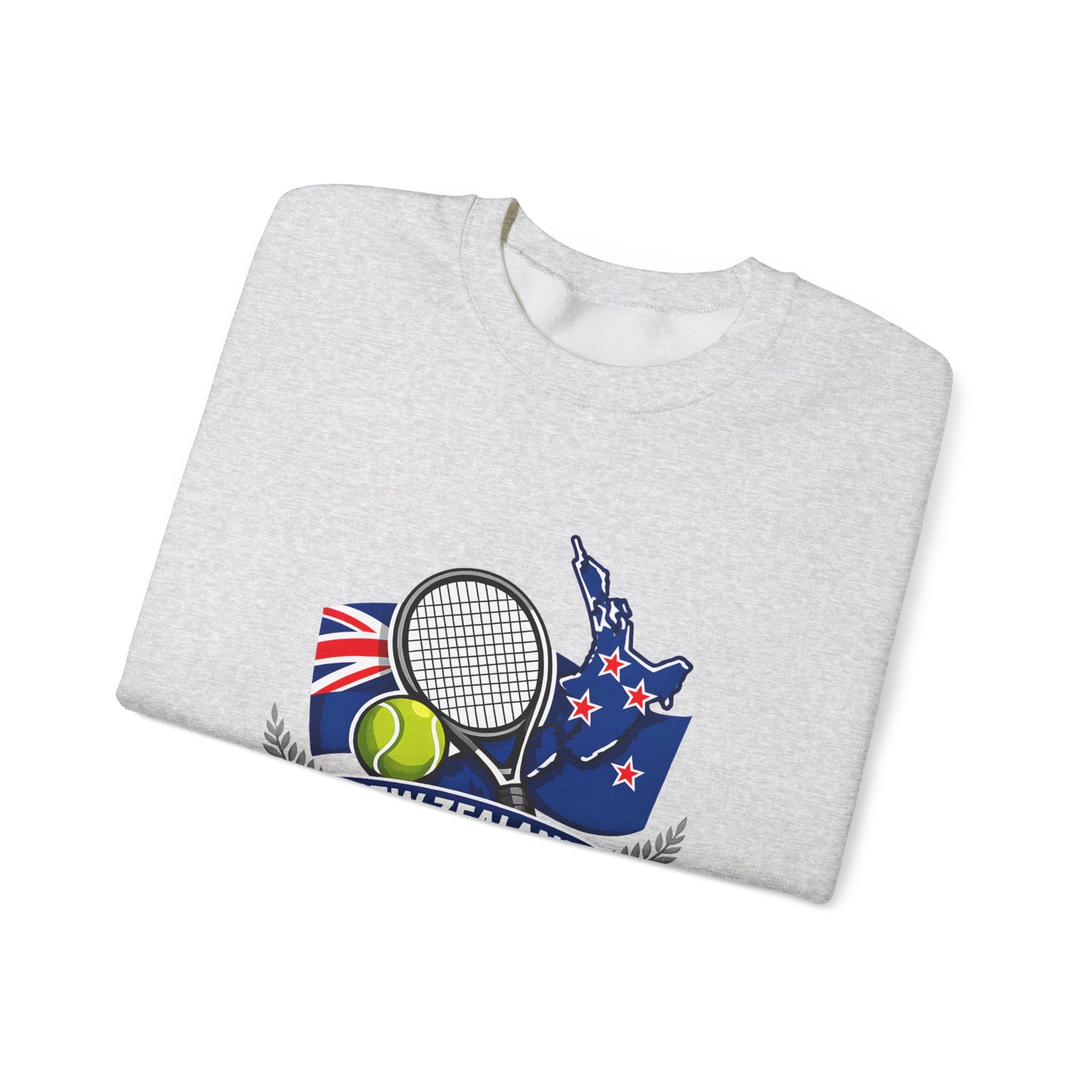 This cozy crewneck brings the court to the everyday — a medium-weight sweatshirt that reads like a quiet nod to Kiwi tennis pride. The front sports a crisp embroidered graphic: a racket, tennis ball, and the outline of New Zealand framed by subtle flag accents and laurel sprigs. It feels lived-in from the first wear: soft against skin, structured at the collar, and built to hold its shape through seasons of practice, travel, and weekend hangs. Wear it to early-morning drills, casual club nights, or while watching a match with friends — it fits into the rhythm of players and fans who value comfort, craftsmanship, and understated team spirit.