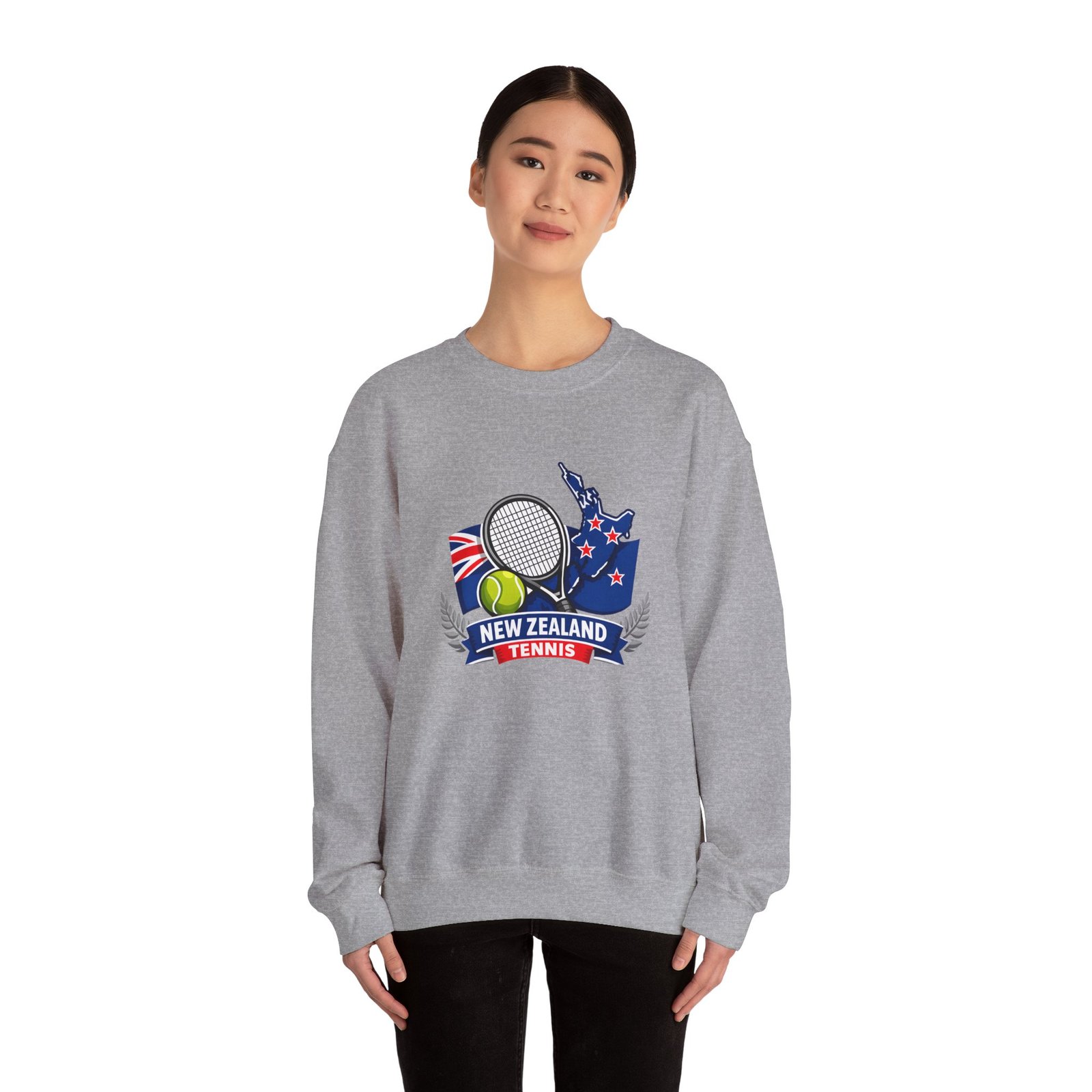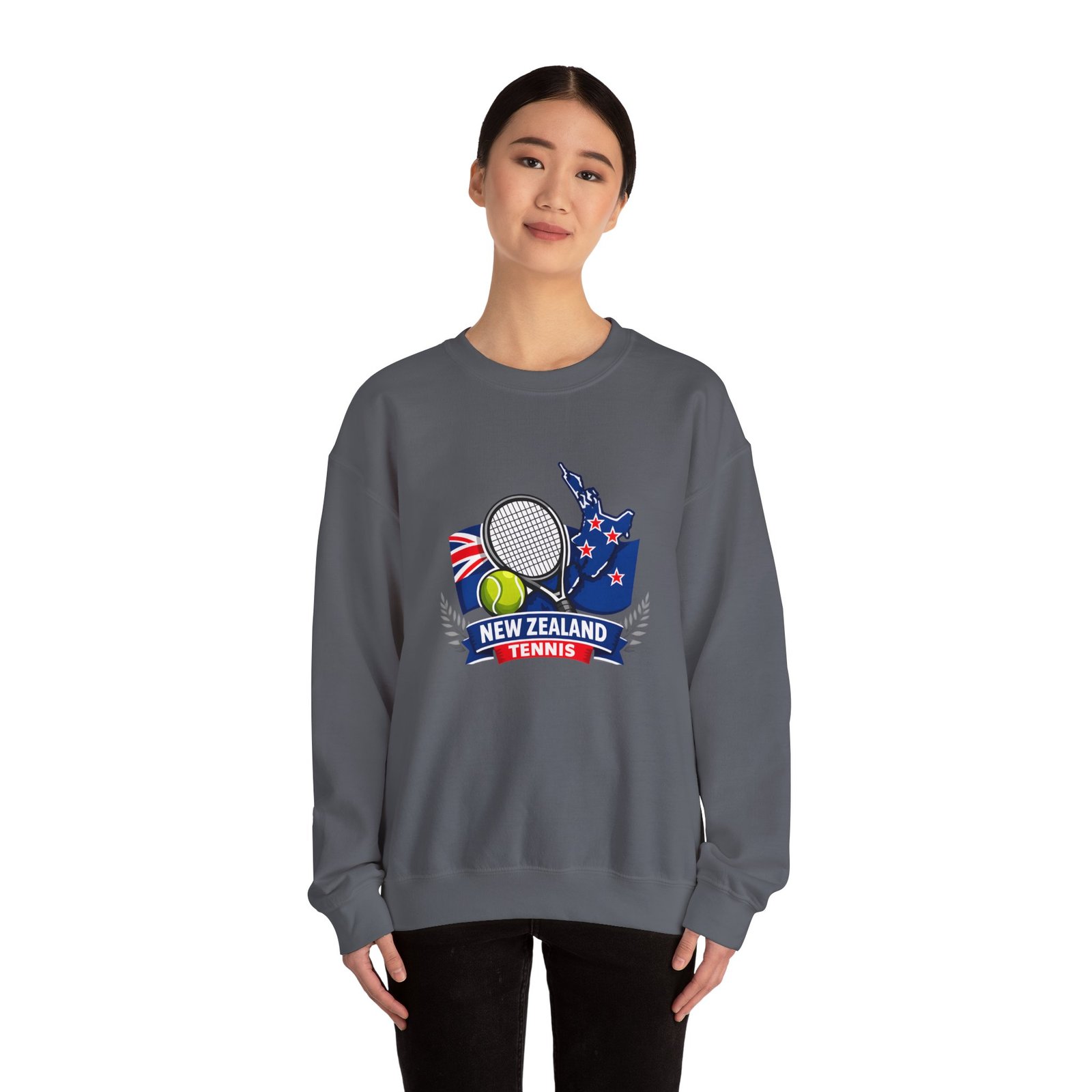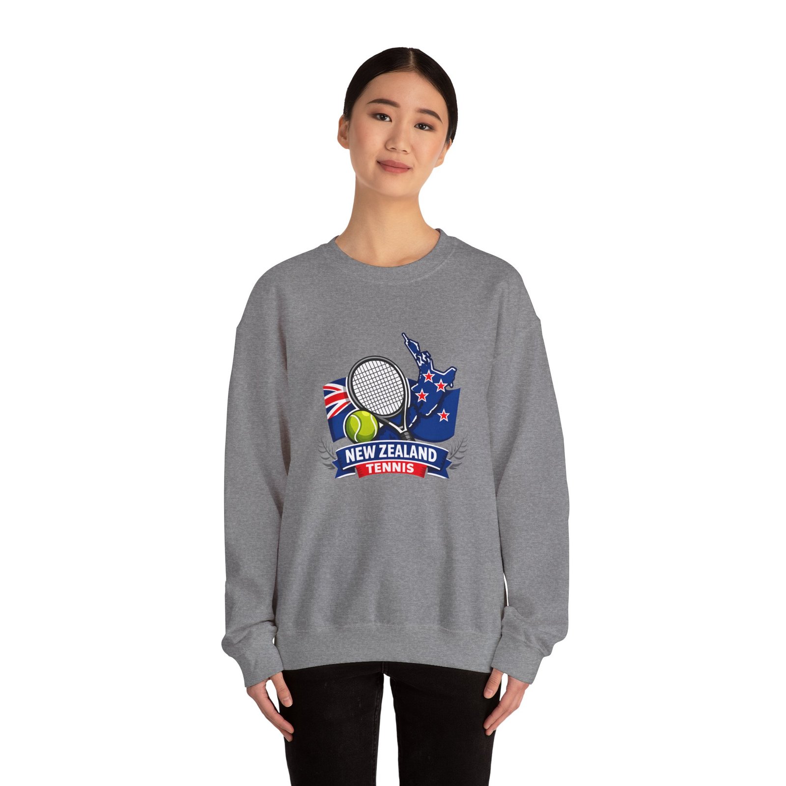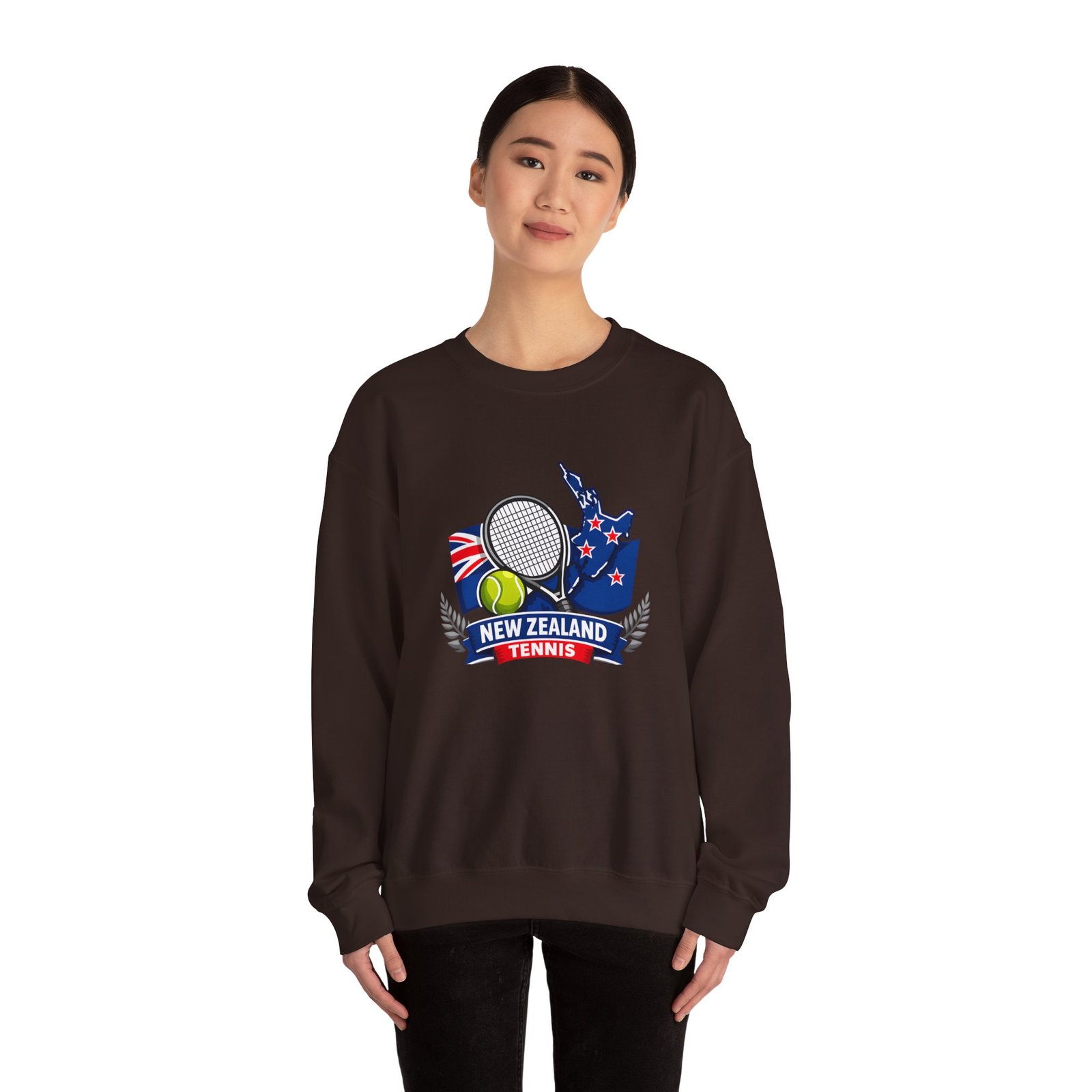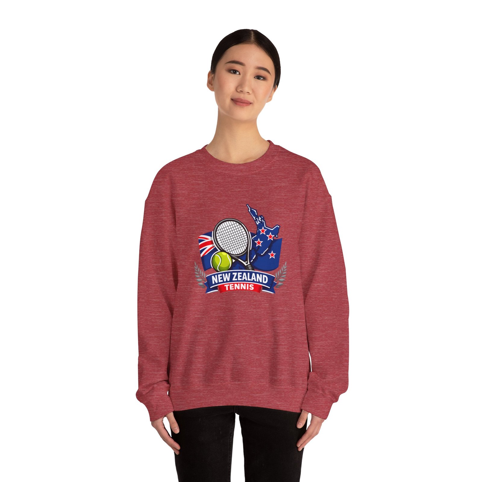 This cozy crewneck brings the court to the everyday — a medium-weight sweatshirt that reads like a quiet nod to Kiwi tennis pride. The front sports a crisp embroidered graphic: a racket, tennis ball, and the outline of New Zealand framed by subtle flag accents and laurel sprigs. It feels lived-in from the first wear: soft against skin, structured at the collar, and built to hold its shape through seasons of practice, travel, and weekend hangs. Wear it to early-morning drills, casual club nights, or while watching a match with friends — it fits into the rhythm of players and fans who value comfort, craftsmanship, and understated team spirit.