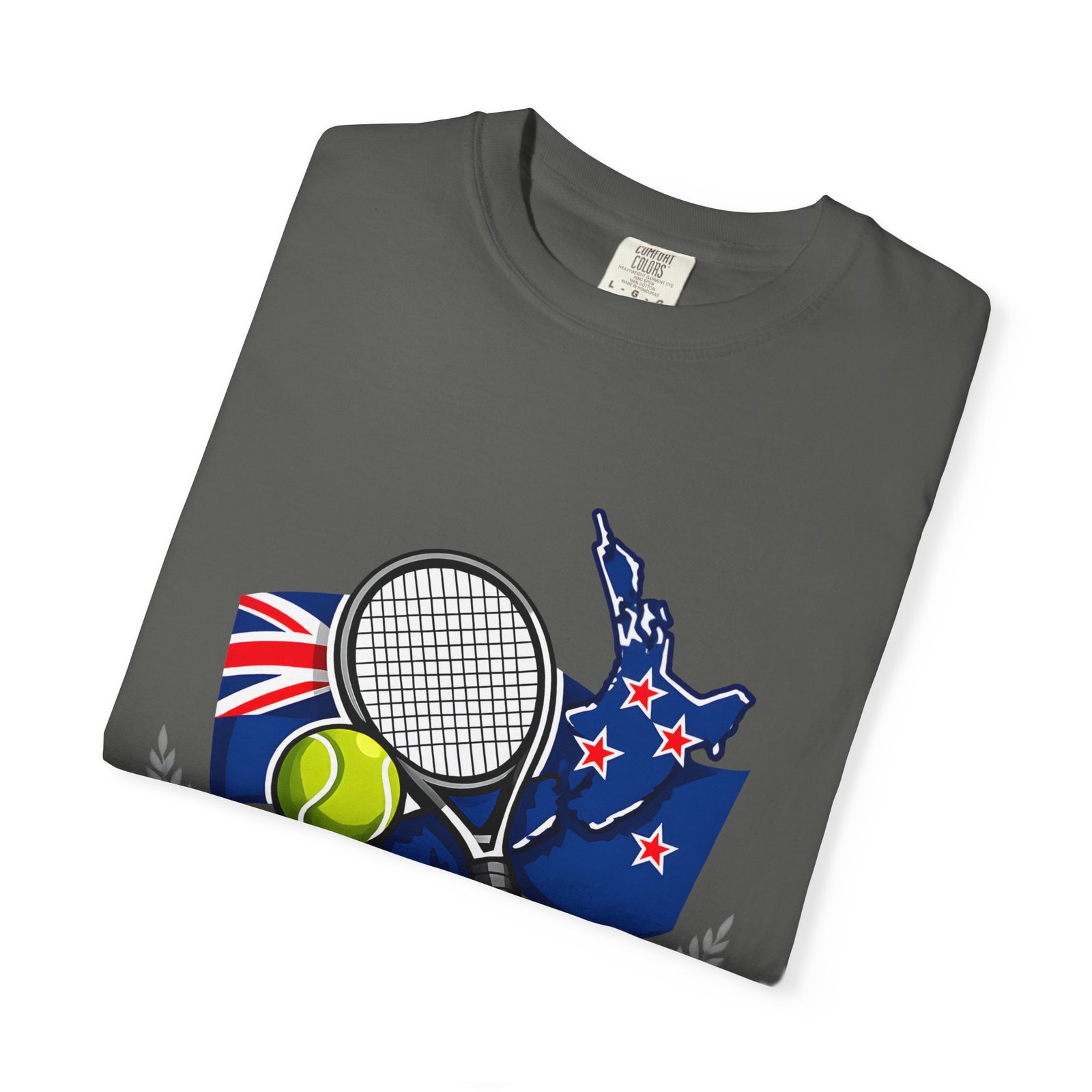 Be the first to review “New Zealand Tennis T-Shirt — NZ Flag Tennis Racket & Ball Tee”