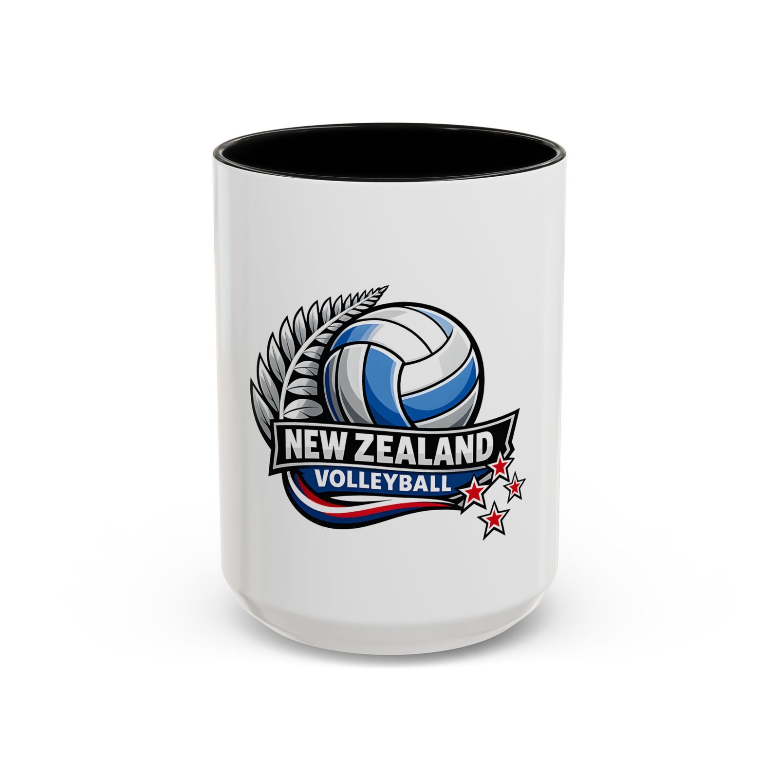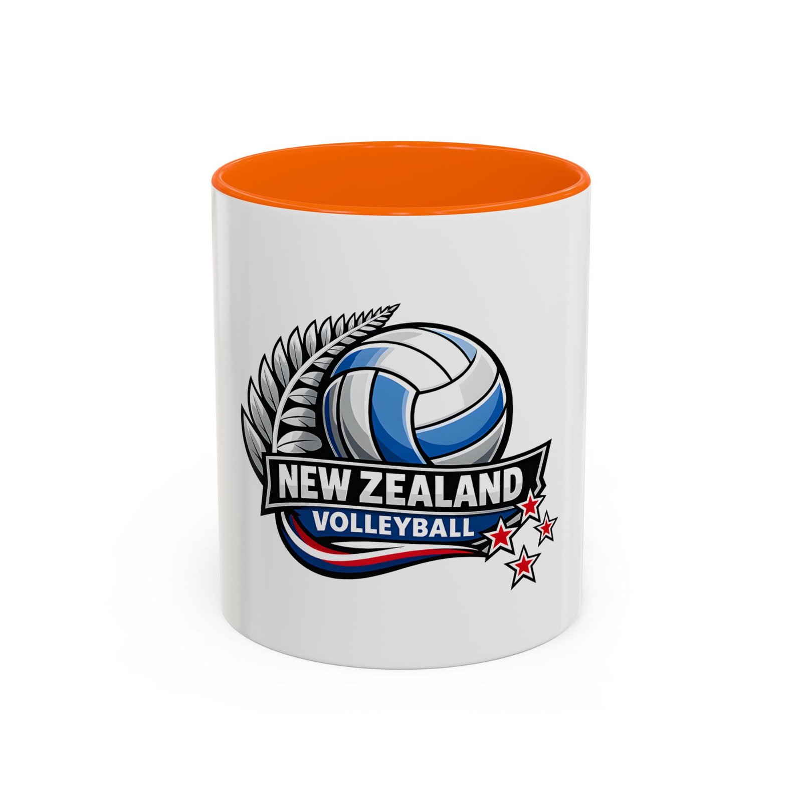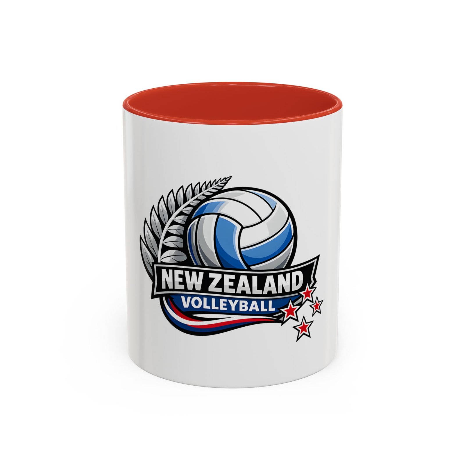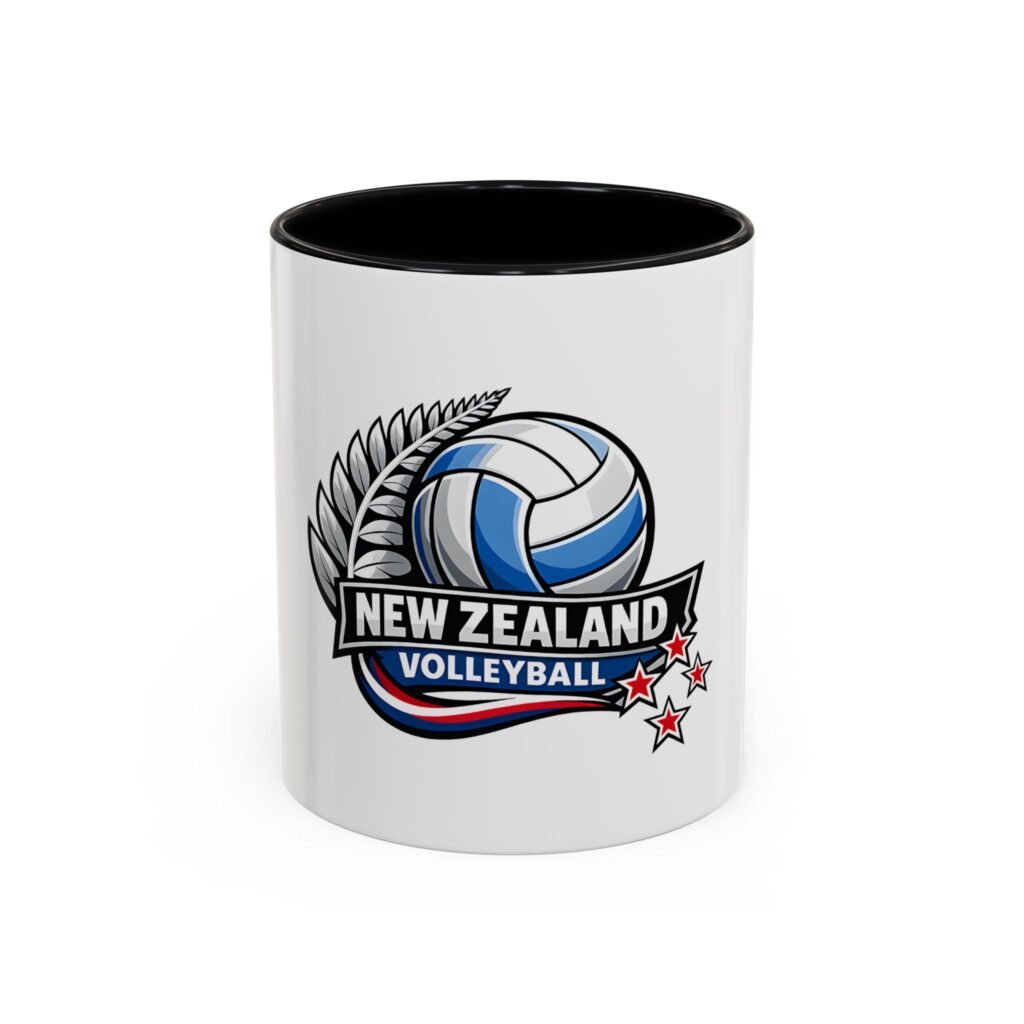 A bold, energetic mug that brings the thrill of the court to every morning ritual. Clean white ceramic contrasts with a colored interior and handle, framing a dynamic New Zealand volleyball emblem — a soaring ball, silver fern, and red stars that speak to team pride and national spirit. It feels right in the hands of players, coaches, and fans: sturdy, glossy, and vivid. Use it before practice, at halftime, or while rewatching match footage. The C-shaped handle sits comfortably whether you’re sipping a quick espresso or nursing a larger pour, and the bright print keeps its impact through regular dishwashing and microwave runs. This mug turns ordinary coffee breaks into a small celebration of the game and the community around it.