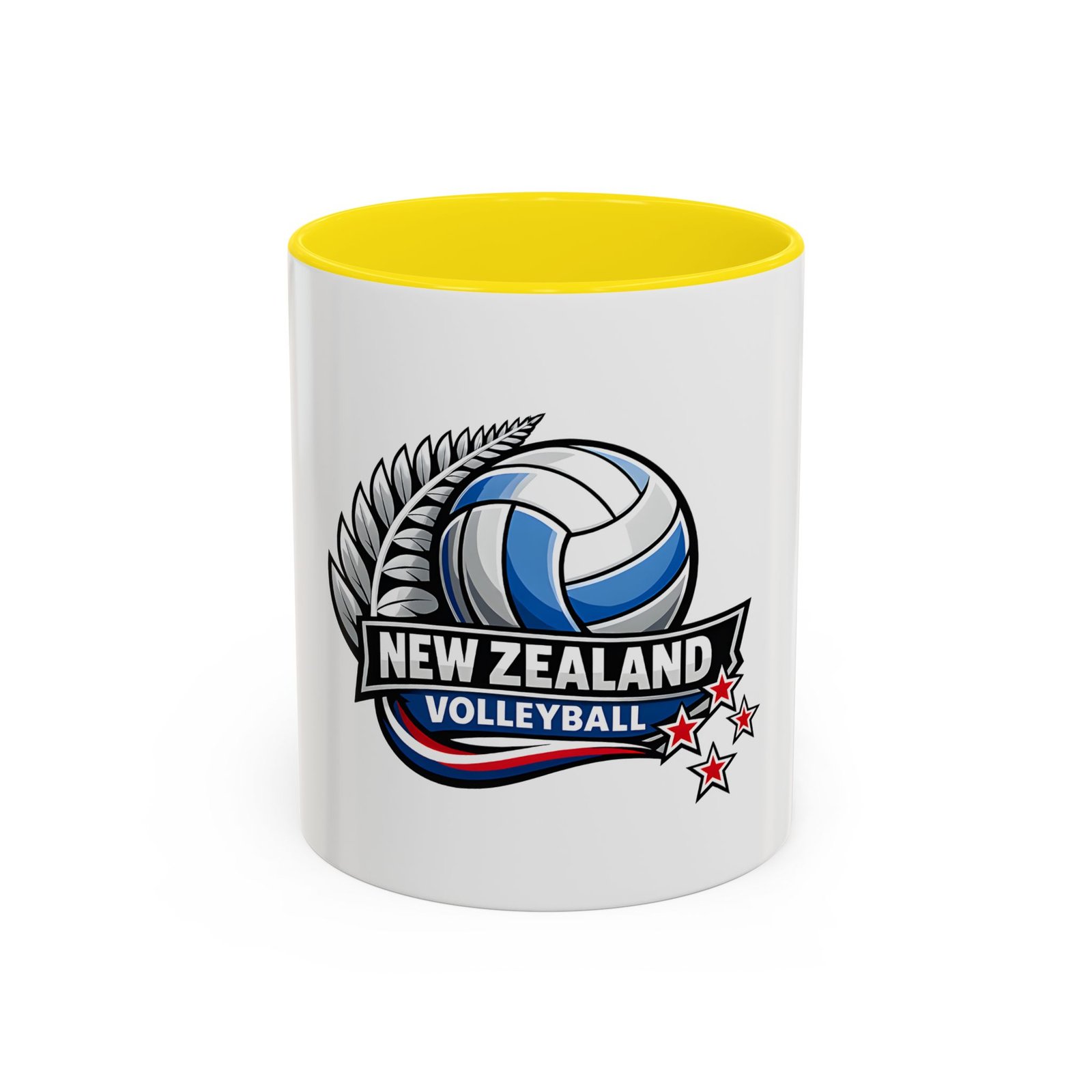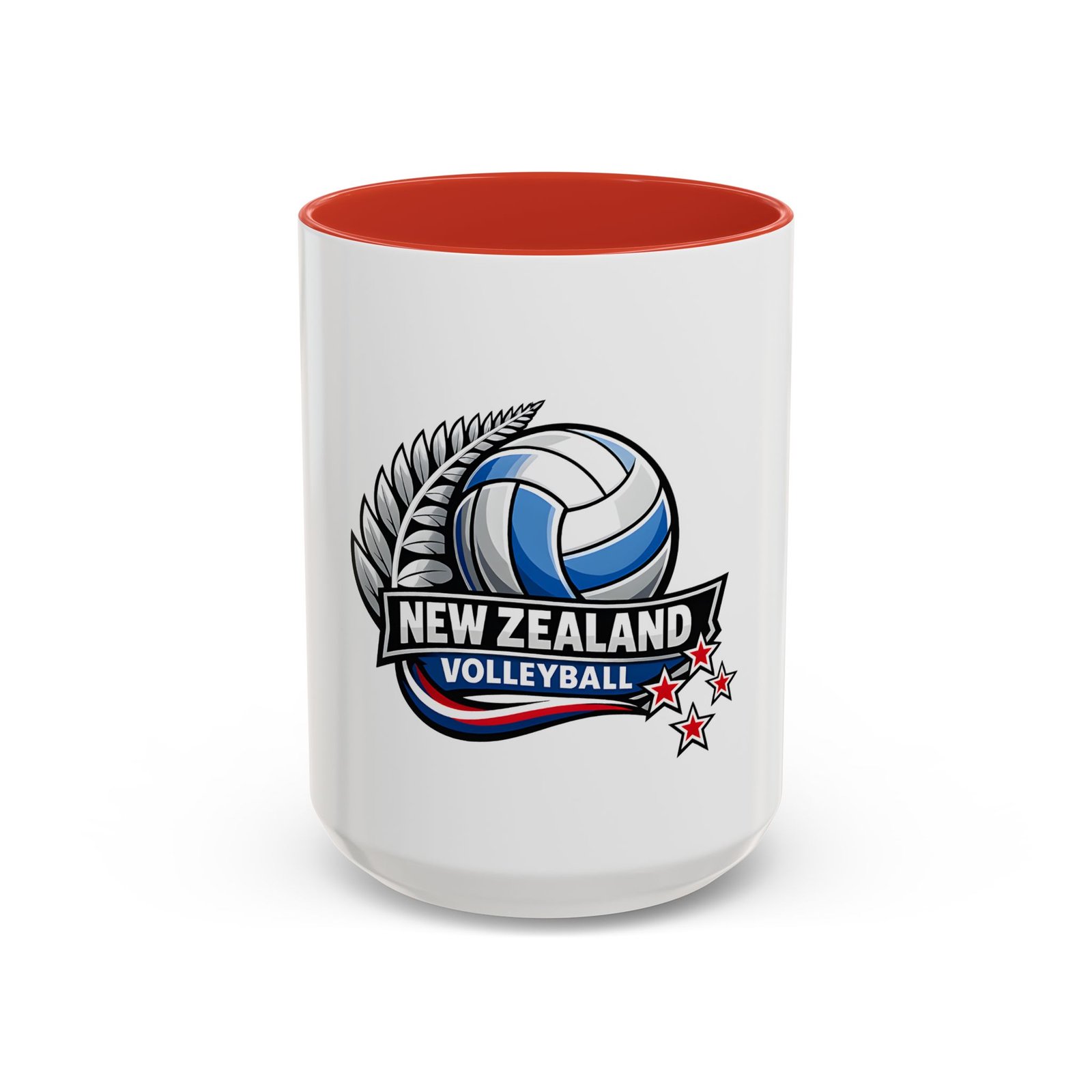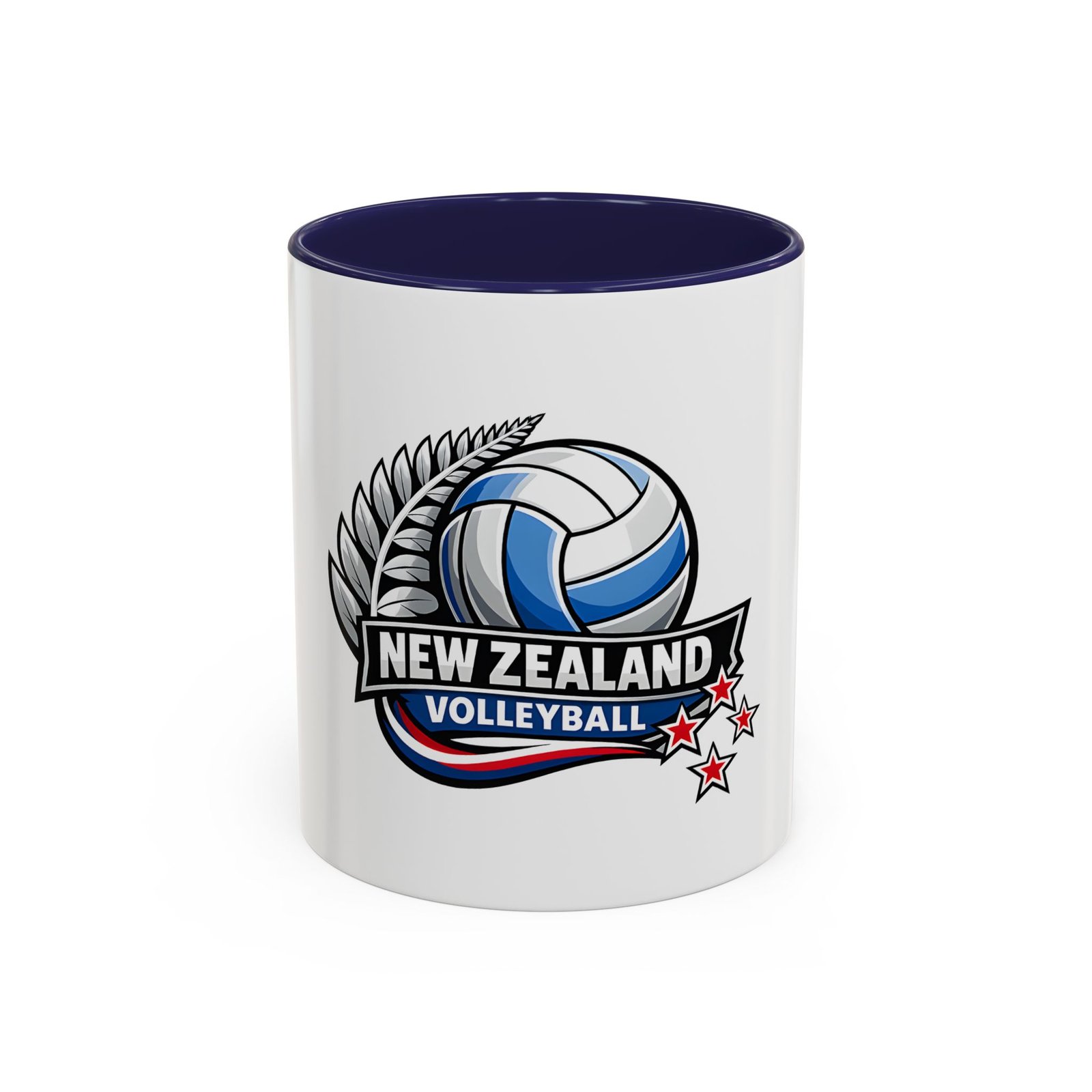 A bold, energetic mug that brings the thrill of the court to every morning ritual. Clean white ceramic contrasts with a colored interior and handle, framing a dynamic New Zealand volleyball emblem — a soaring ball, silver fern, and red stars that speak to team pride and national spirit. It feels right in the hands of players, coaches, and fans: sturdy, glossy, and vivid. Use it before practice, at halftime, or while rewatching match footage. The C-shaped handle sits comfortably whether you’re sipping a quick espresso or nursing a larger pour, and the bright print keeps its impact through regular dishwashing and microwave runs. This mug turns ordinary coffee breaks into a small celebration of the game and the community around it.