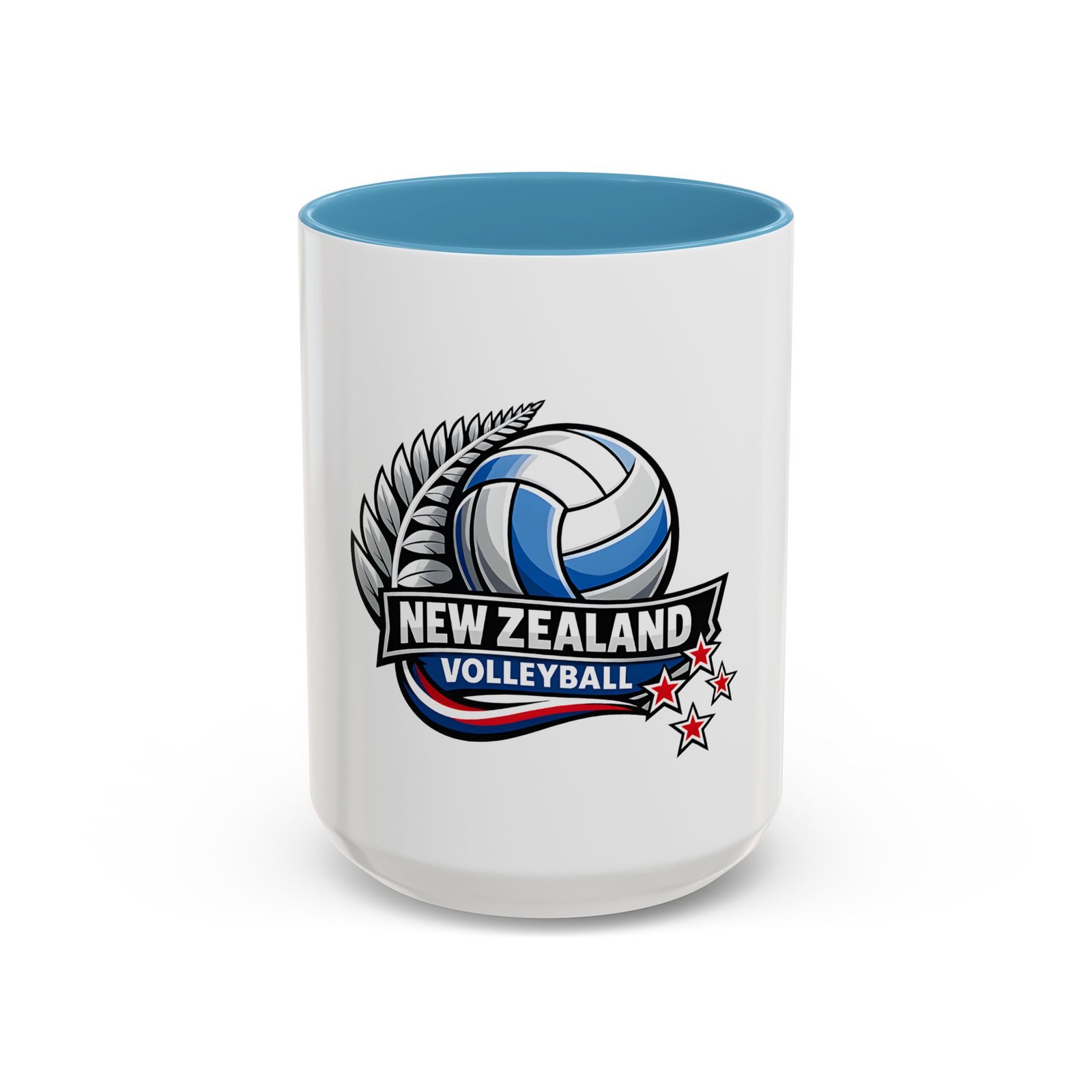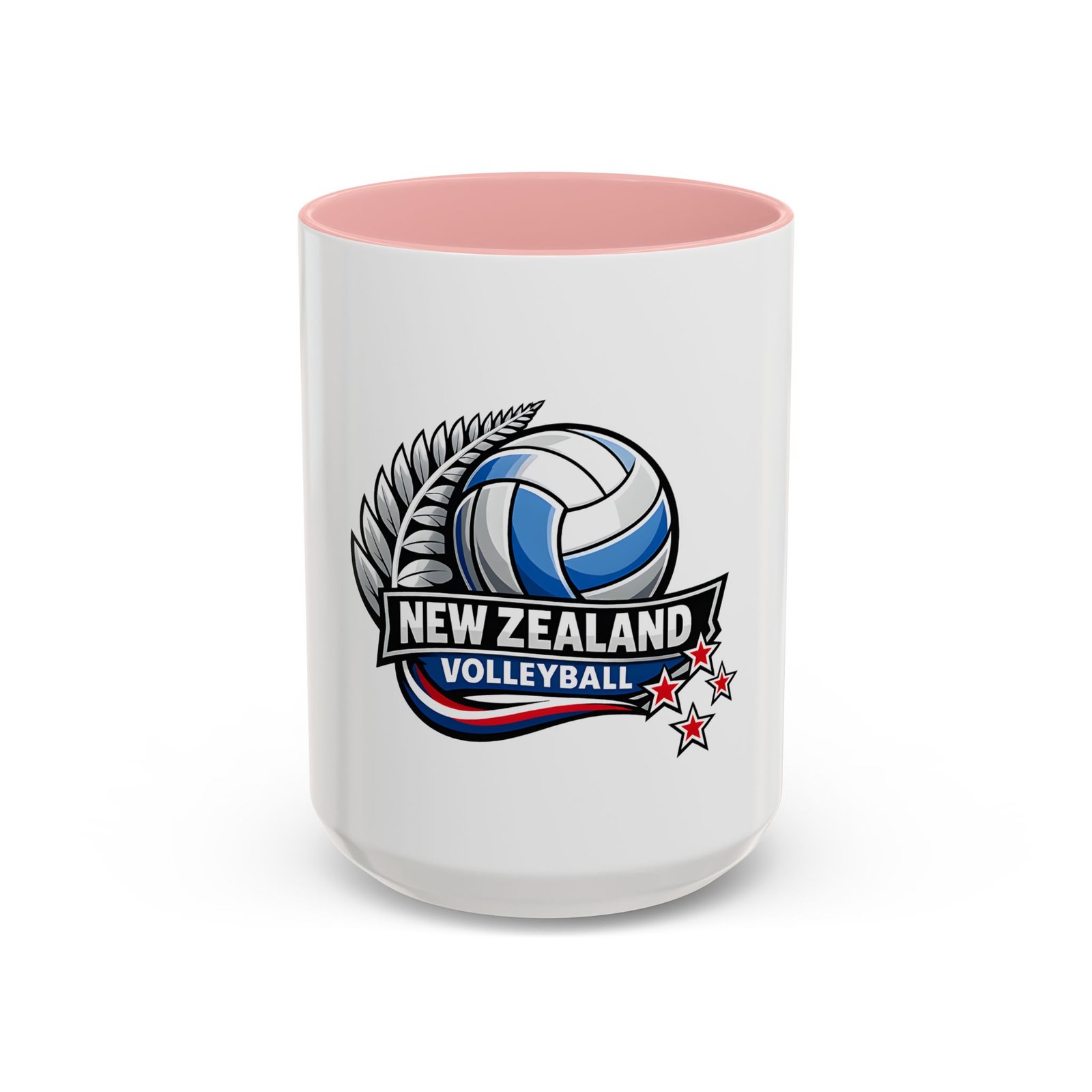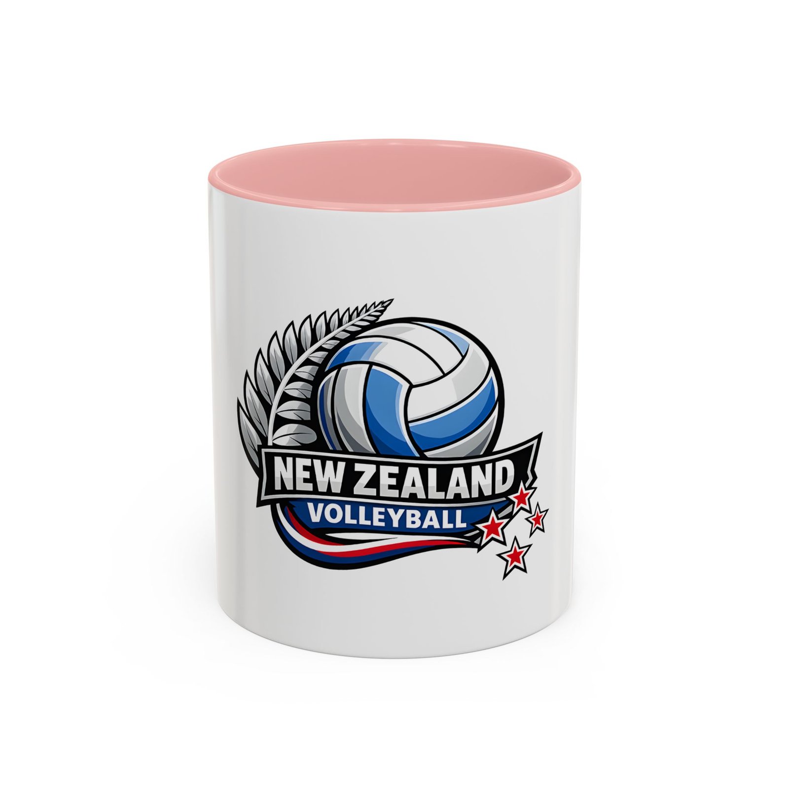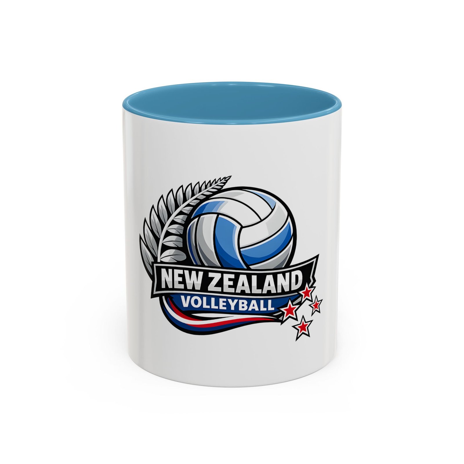 A bold, energetic mug that brings the thrill of the court to every morning ritual. Clean white ceramic contrasts with a colored interior and handle, framing a dynamic New Zealand volleyball emblem — a soaring ball, silver fern, and red stars that speak to team pride and national spirit. It feels right in the hands of players, coaches, and fans: sturdy, glossy, and vivid. Use it before practice, at halftime, or while rewatching match footage. The C-shaped handle sits comfortably whether you’re sipping a quick espresso or nursing a larger pour, and the bright print keeps its impact through regular dishwashing and microwave runs. This mug turns ordinary coffee breaks into a small celebration of the game and the community around it.