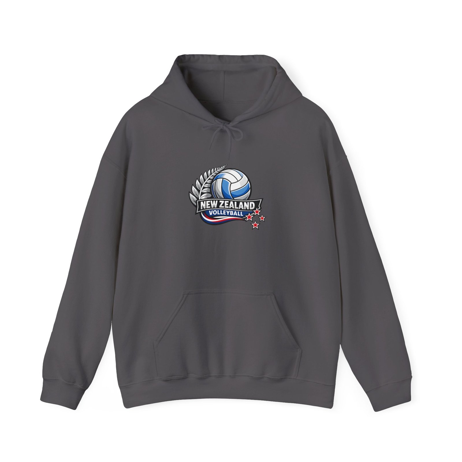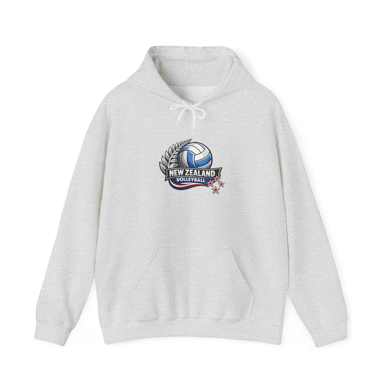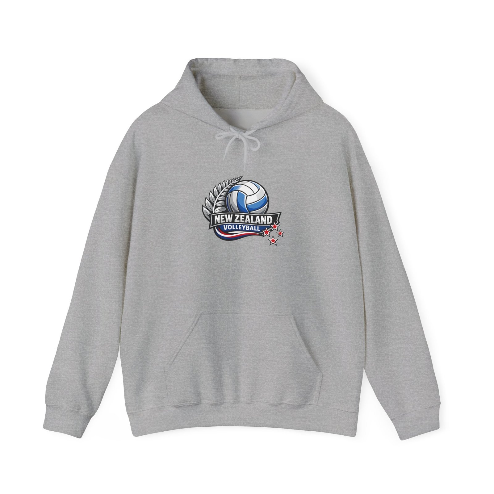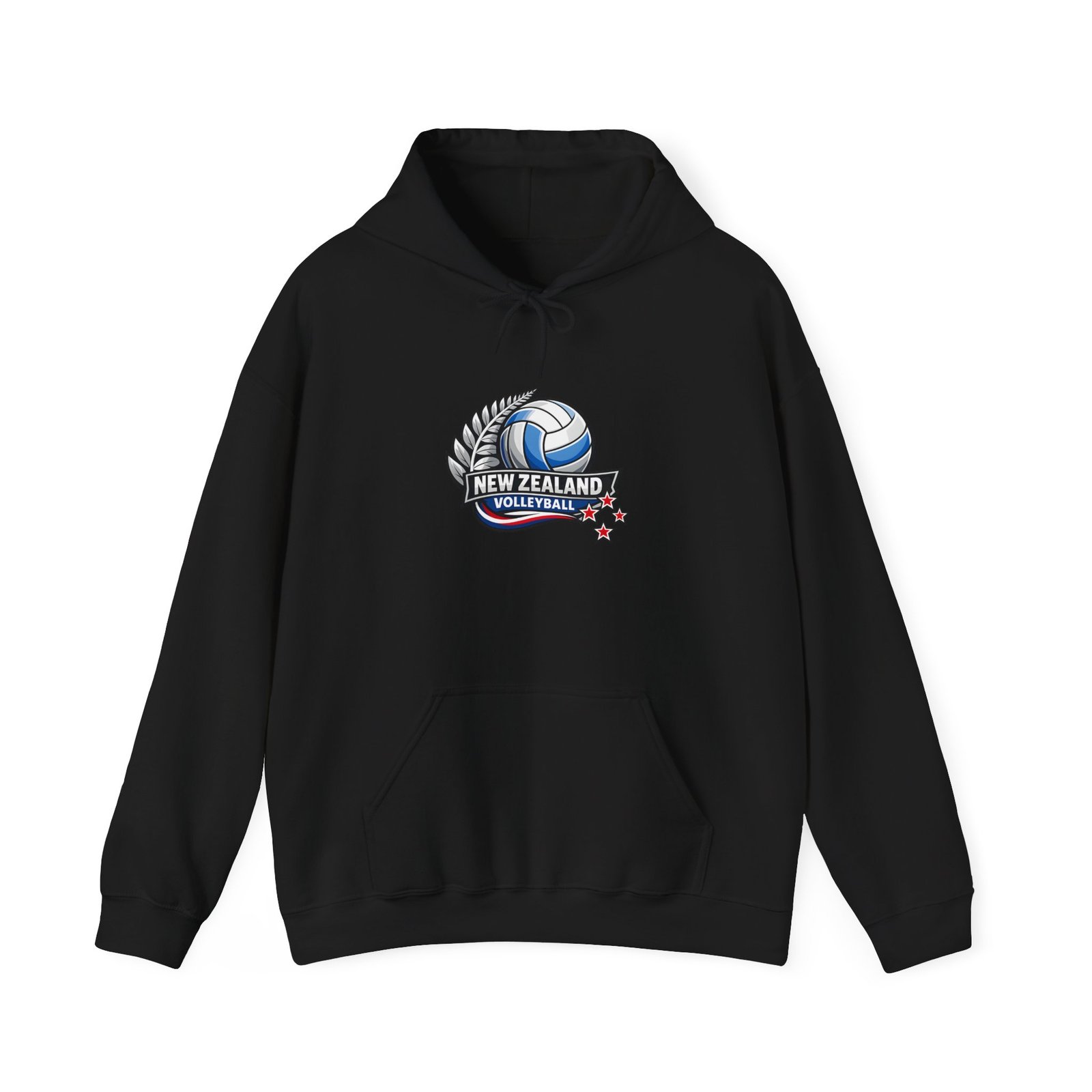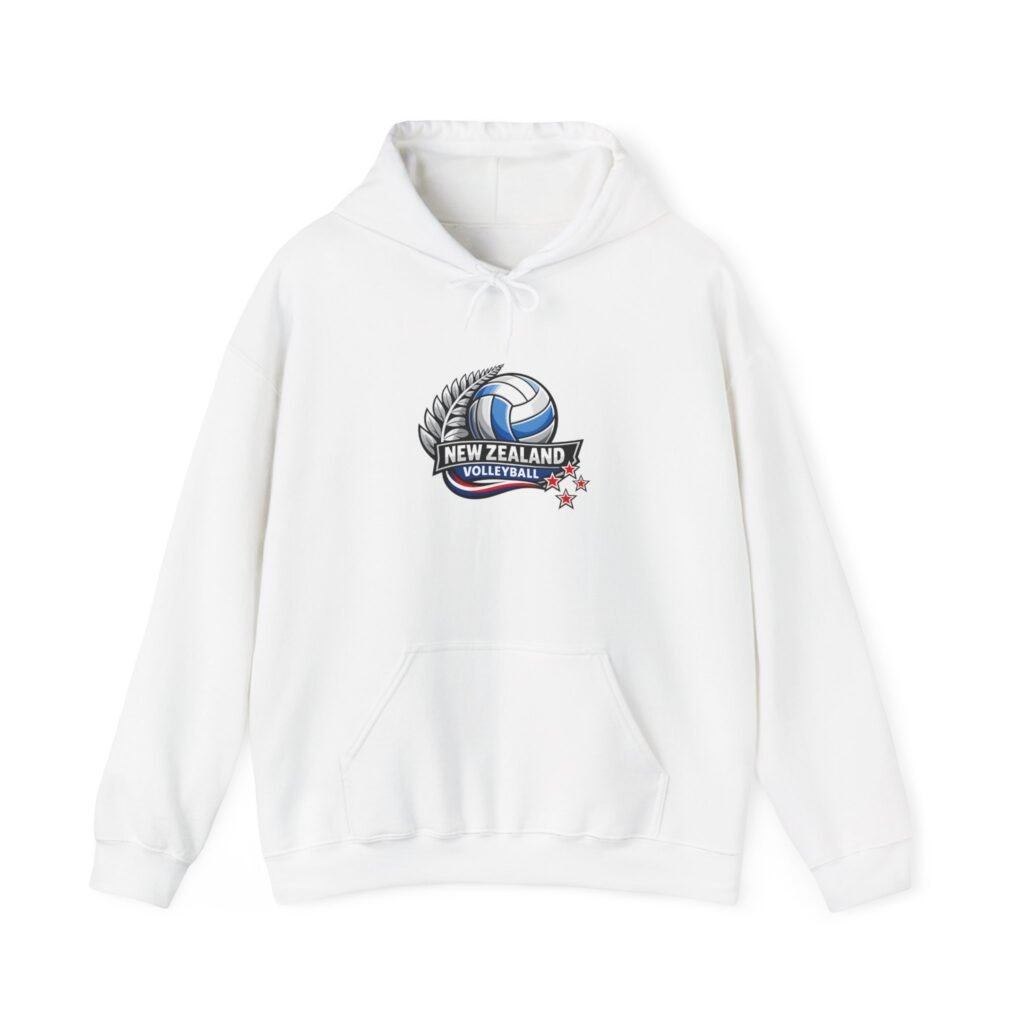 Pull on this warm, mid-weight hoodie and carry a little piece of Kiwi court pride with you. The soft 50/50 cotton–poly blend holds vibrant prints and stays cozy on cool mornings after practice or when cheering from the sidelines. A double-lined hood with a color-matched drawcord and a roomy kangaroo pocket make it easy to stash your phone or warm your hands between sets. The small New Zealand volleyball crest on the chest keeps the look sporty and understated — wear it layered to training, to the match, or to weekend meetups with teammates.