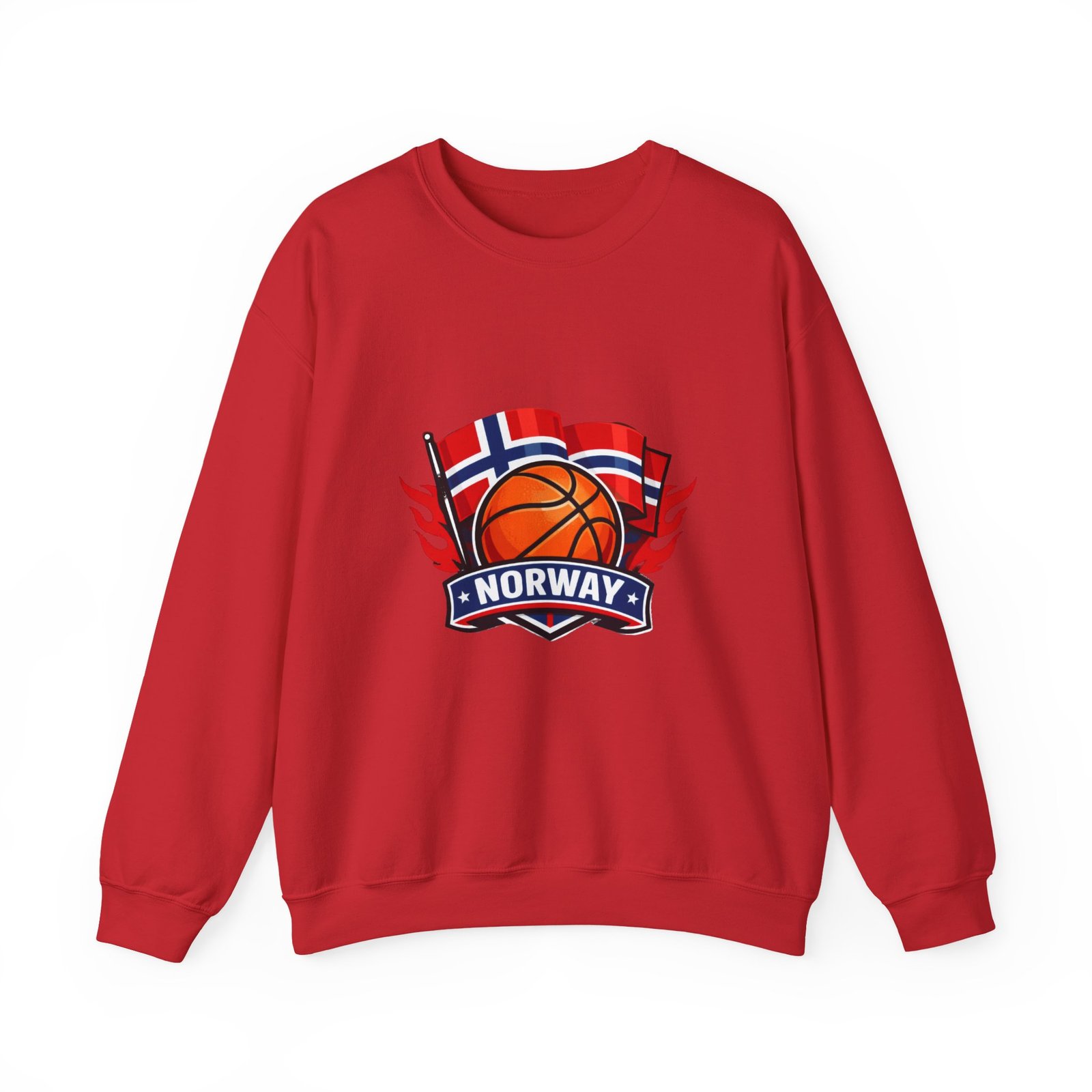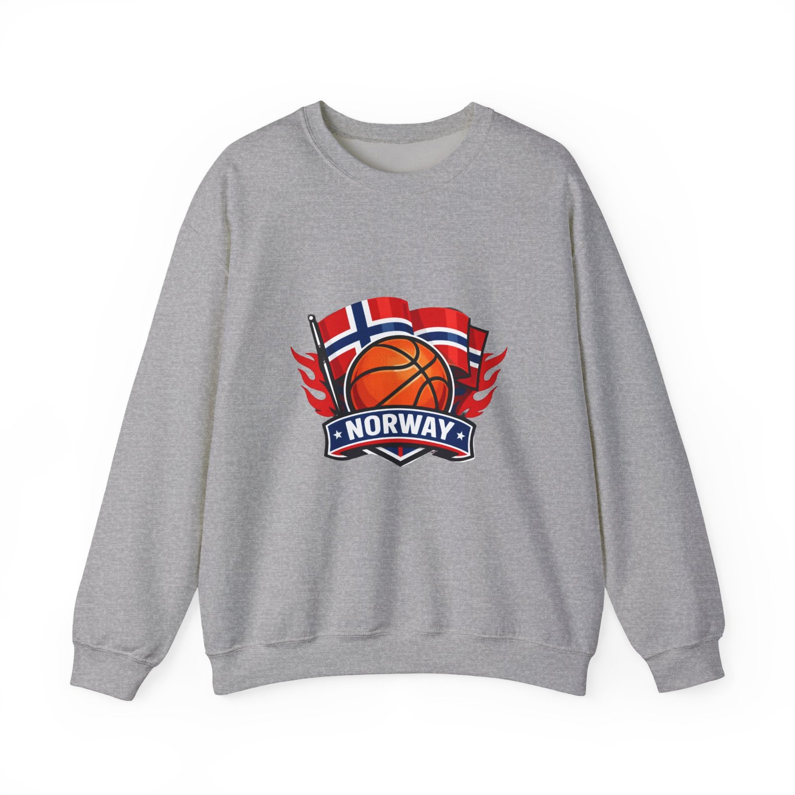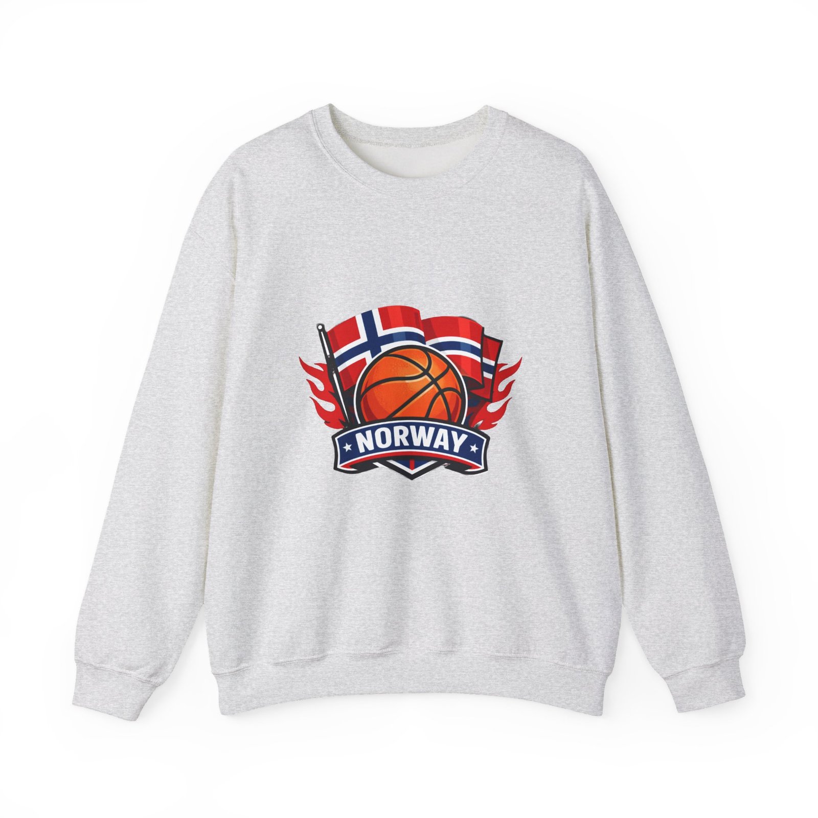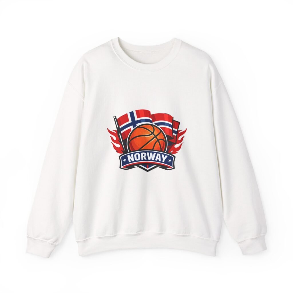 This soft, mid-weight crewneck brings a quiet, sporty pride to everyday wear. A clean white canvas features a bold embroidered emblem: a basketball framed by waving Norwegian flags and a ribbon reading “NORWAY.” The sweatshirt sits with a classic, roomy cut that layers easily over tees or under coats. It feels lived-in from the first wear — warm without bulk, with a smooth inner face and the reliable stretch of a ribbed collar and cuffs. Thoughtful construction (tubular knit, tear-away neck label, double-needle stitching) keeps the silhouette neat wash after wash, while OEKO-TEX dyes and ethically sourced cotton give it a responsible footprint. Wear it to local courts, weekend travel, or casual meetups to show low-key national pride and sporty energy.