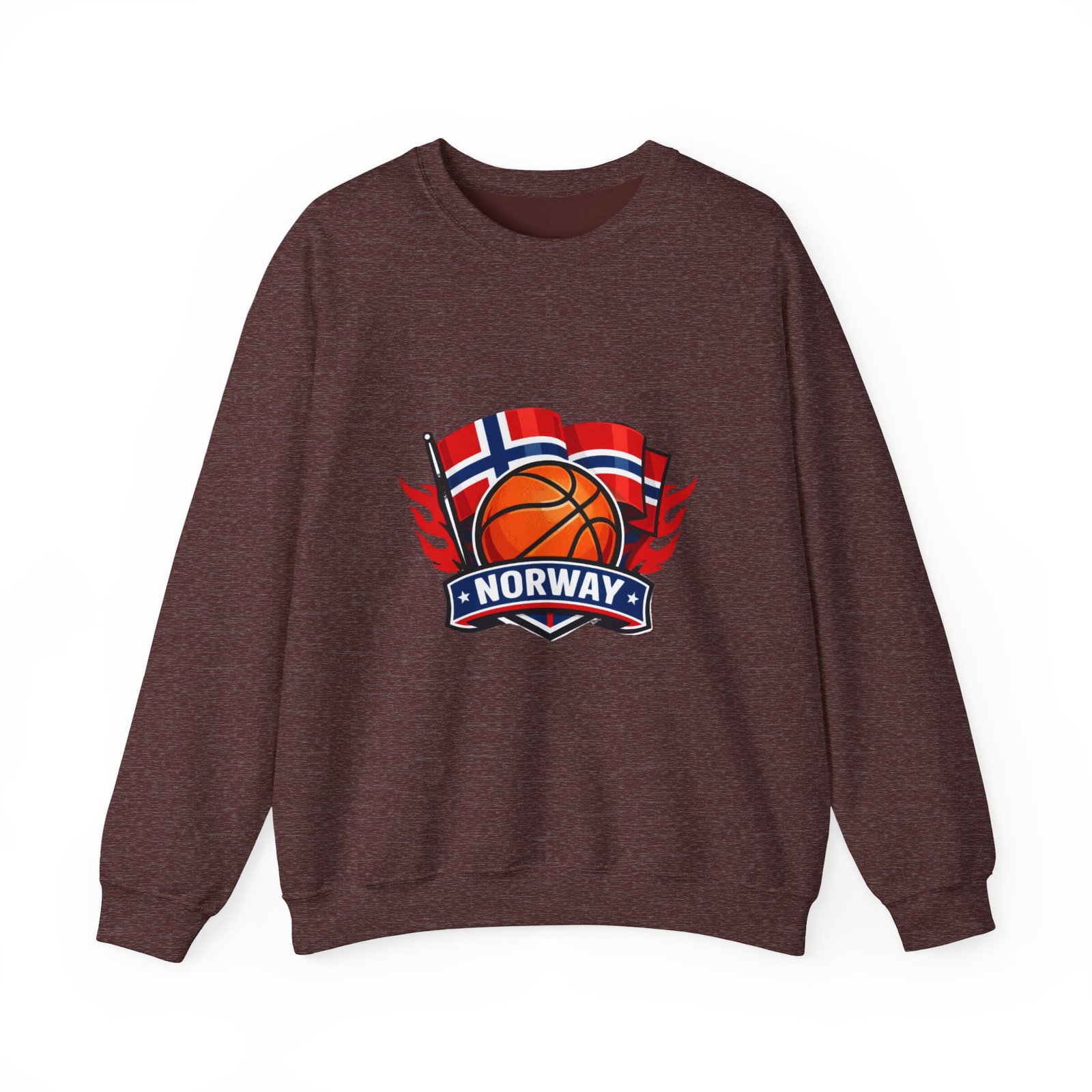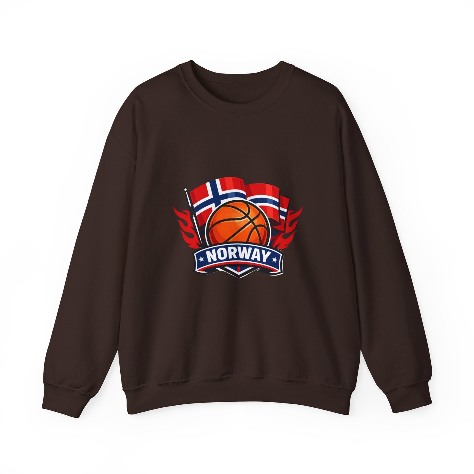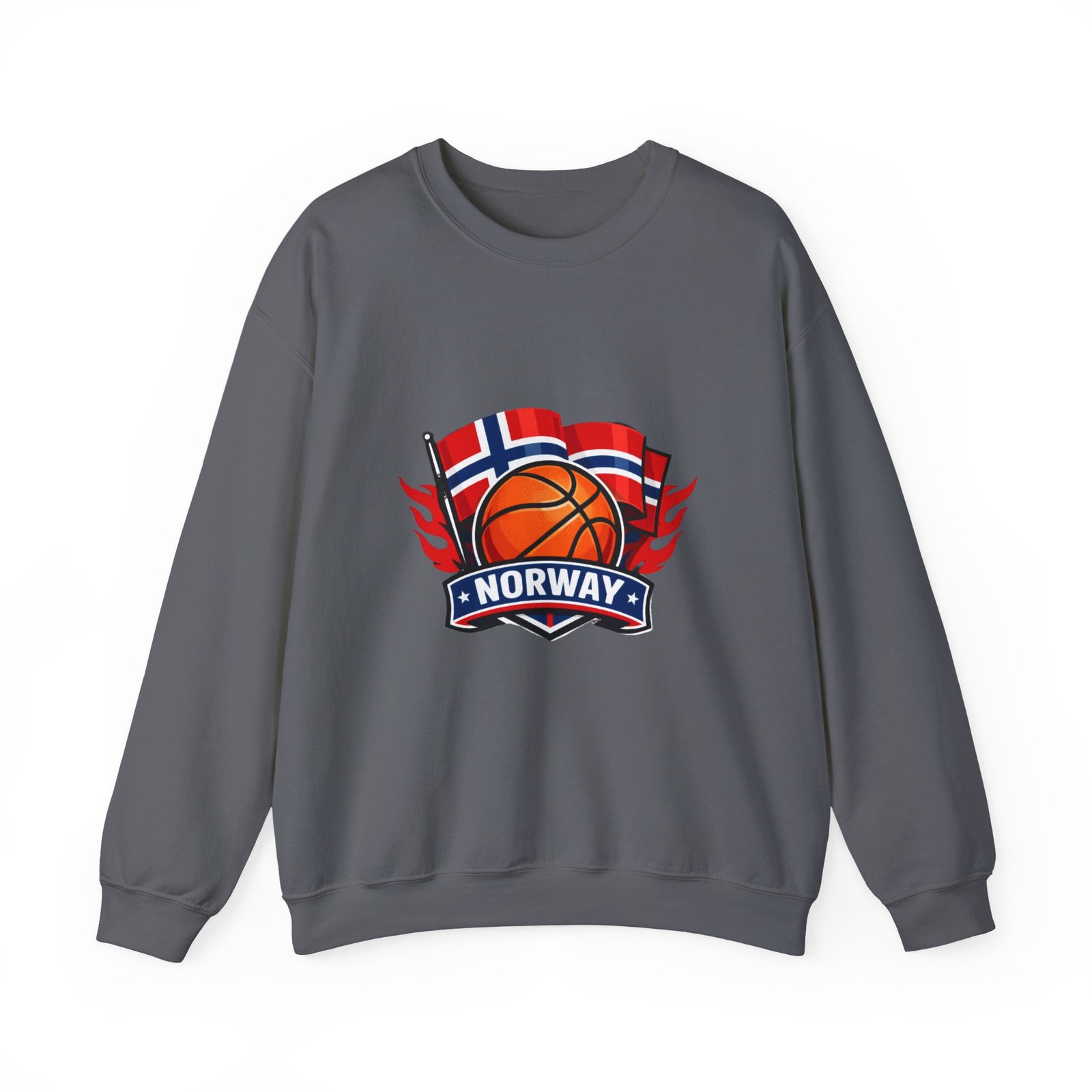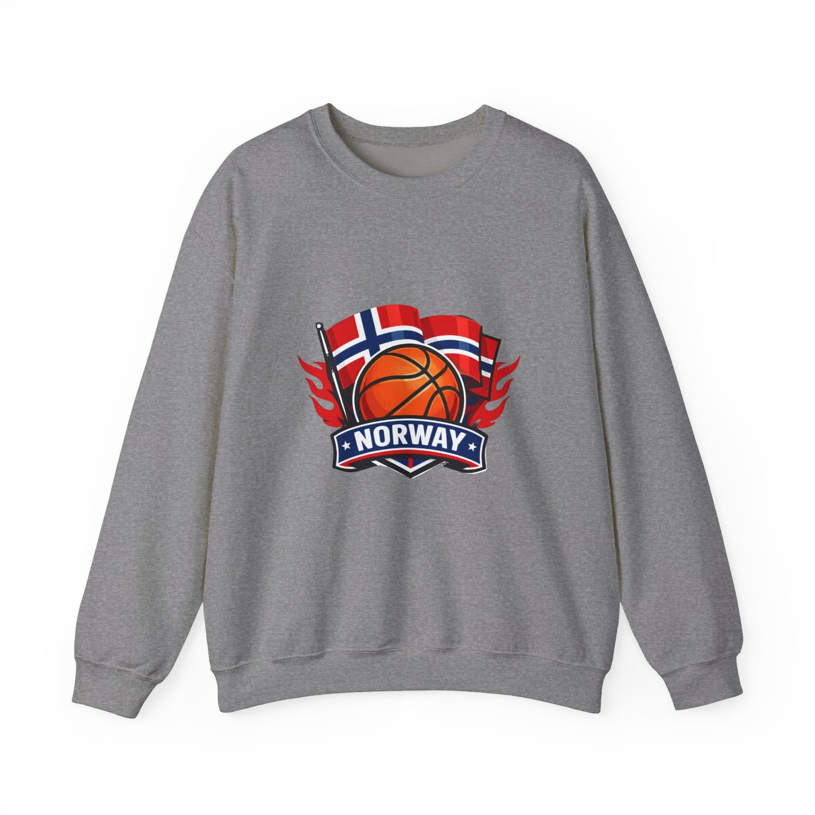 This soft, mid-weight crewneck brings a quiet, sporty pride to everyday wear. A clean white canvas features a bold embroidered emblem: a basketball framed by waving Norwegian flags and a ribbon reading “NORWAY.” The sweatshirt sits with a classic, roomy cut that layers easily over tees or under coats. It feels lived-in from the first wear — warm without bulk, with a smooth inner face and the reliable stretch of a ribbed collar and cuffs. Thoughtful construction (tubular knit, tear-away neck label, double-needle stitching) keeps the silhouette neat wash after wash, while OEKO-TEX dyes and ethically sourced cotton give it a responsible footprint. Wear it to local courts, weekend travel, or casual meetups to show low-key national pride and sporty energy.