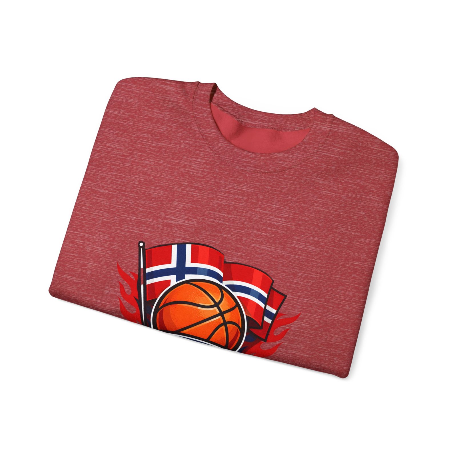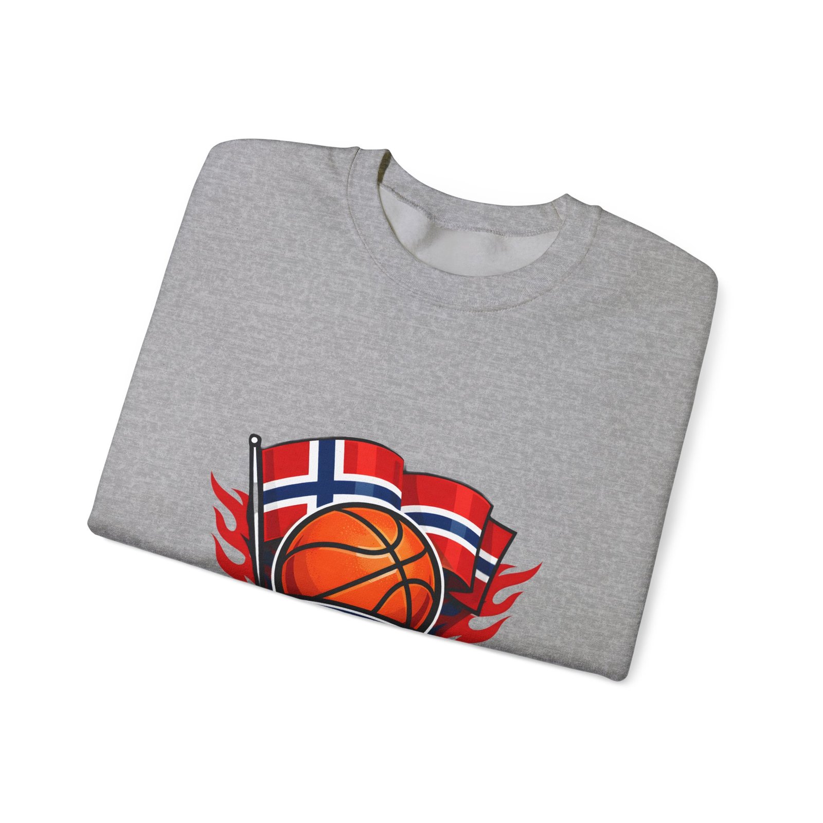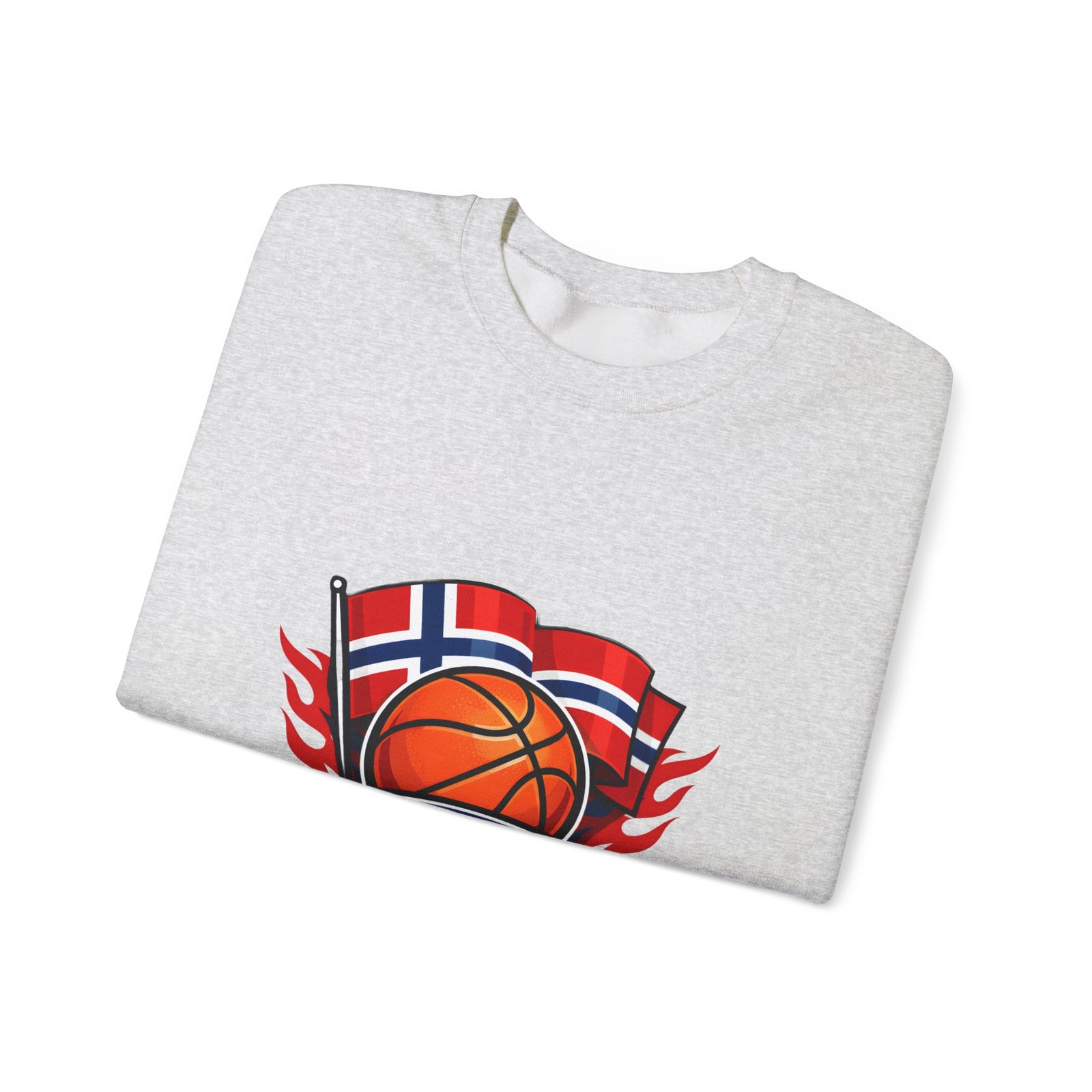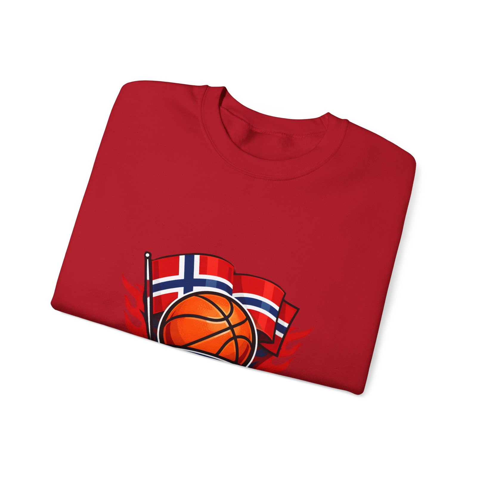 Soft, warm, and quietly bold — this crewneck brings together basketball energy and a subtle nod to Norway in a clean, wearable design. The mid-weight cotton-poly blend drapes comfortably for everyday wear and holds up to repeated wear thanks to reinforced seams. Embroidered chest artwork gives the central emblem depth, while the ribbed collar and cuffs keep everything feeling snug without constriction. Wear it post-practice, on chilly travel days, or layered for a city stroll — it settles into routines and moments, not shout for attention. The muted white background makes the orange basketball and waving Norwegian flags pop, creating a look that feels sporty and personal at once.