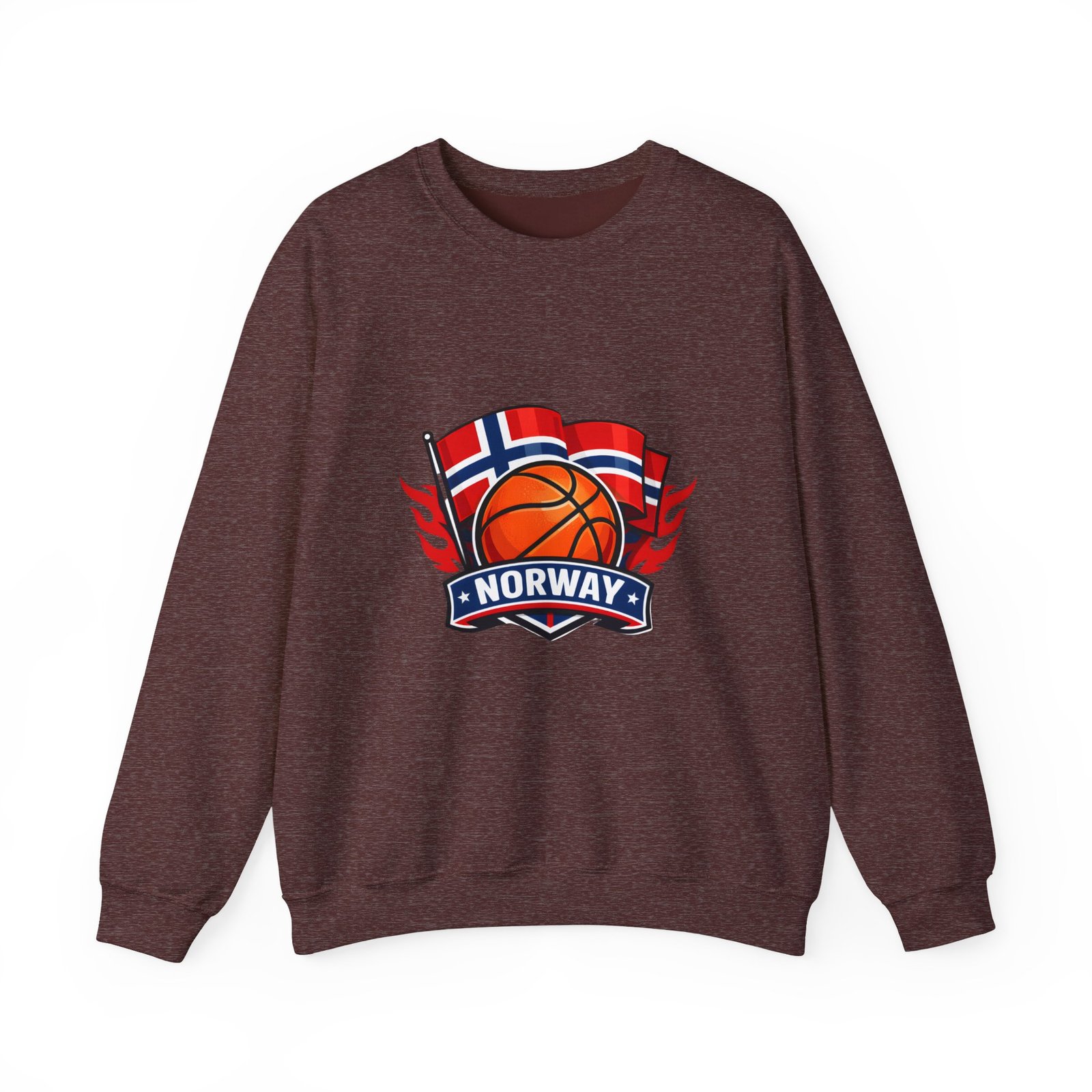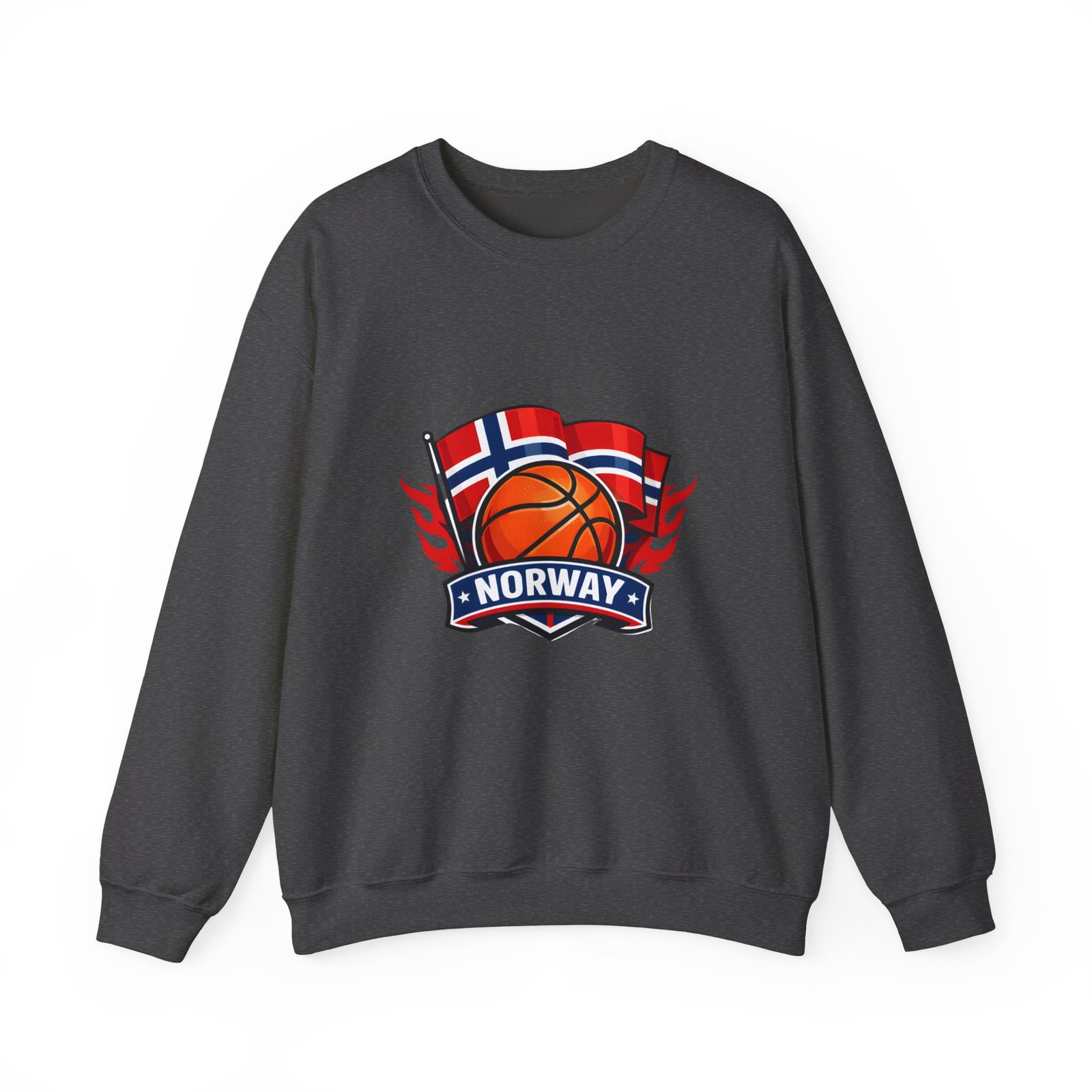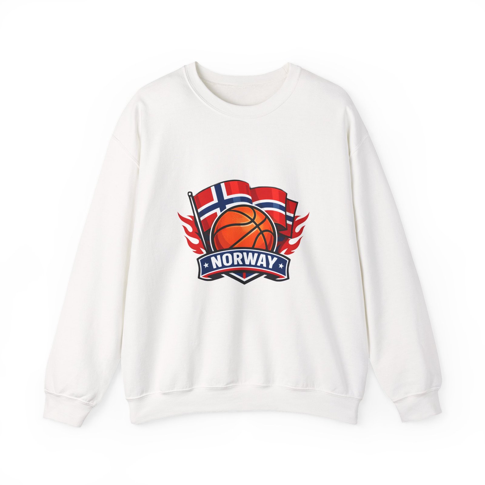 Soft, warm, and quietly bold — this crewneck brings together basketball energy and a subtle nod to Norway in a clean, wearable design. The mid-weight cotton-poly blend drapes comfortably for everyday wear and holds up to repeated wear thanks to reinforced seams. Embroidered chest artwork gives the central emblem depth, while the ribbed collar and cuffs keep everything feeling snug without constriction. Wear it post-practice, on chilly travel days, or layered for a city stroll — it settles into routines and moments, not shout for attention. The muted white background makes the orange basketball and waving Norwegian flags pop, creating a look that feels sporty and personal at once.