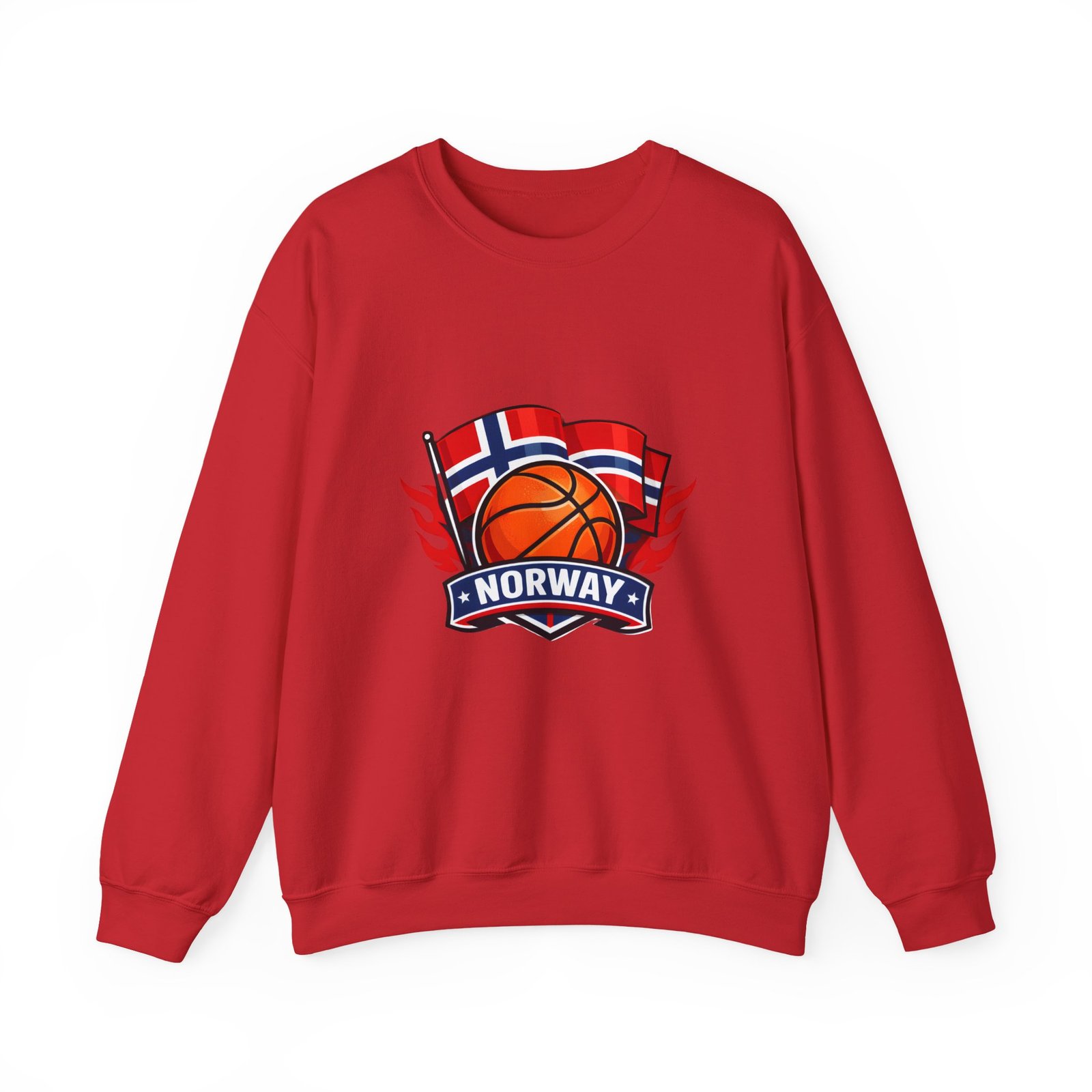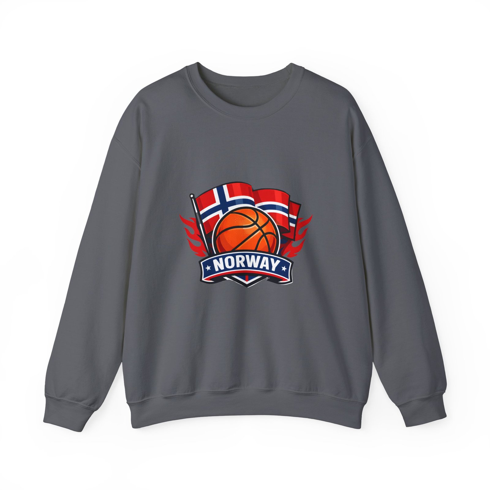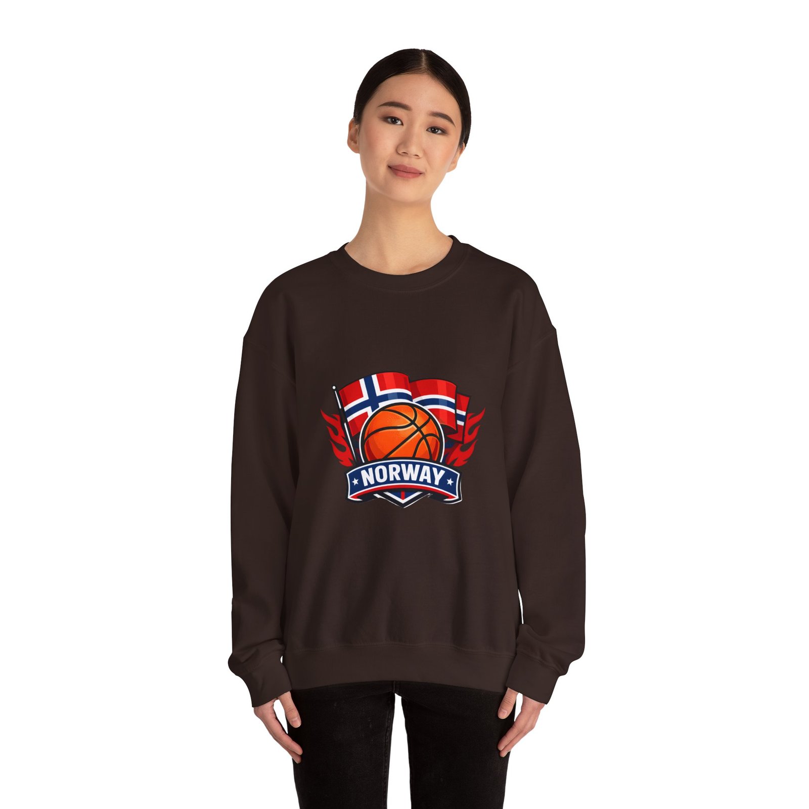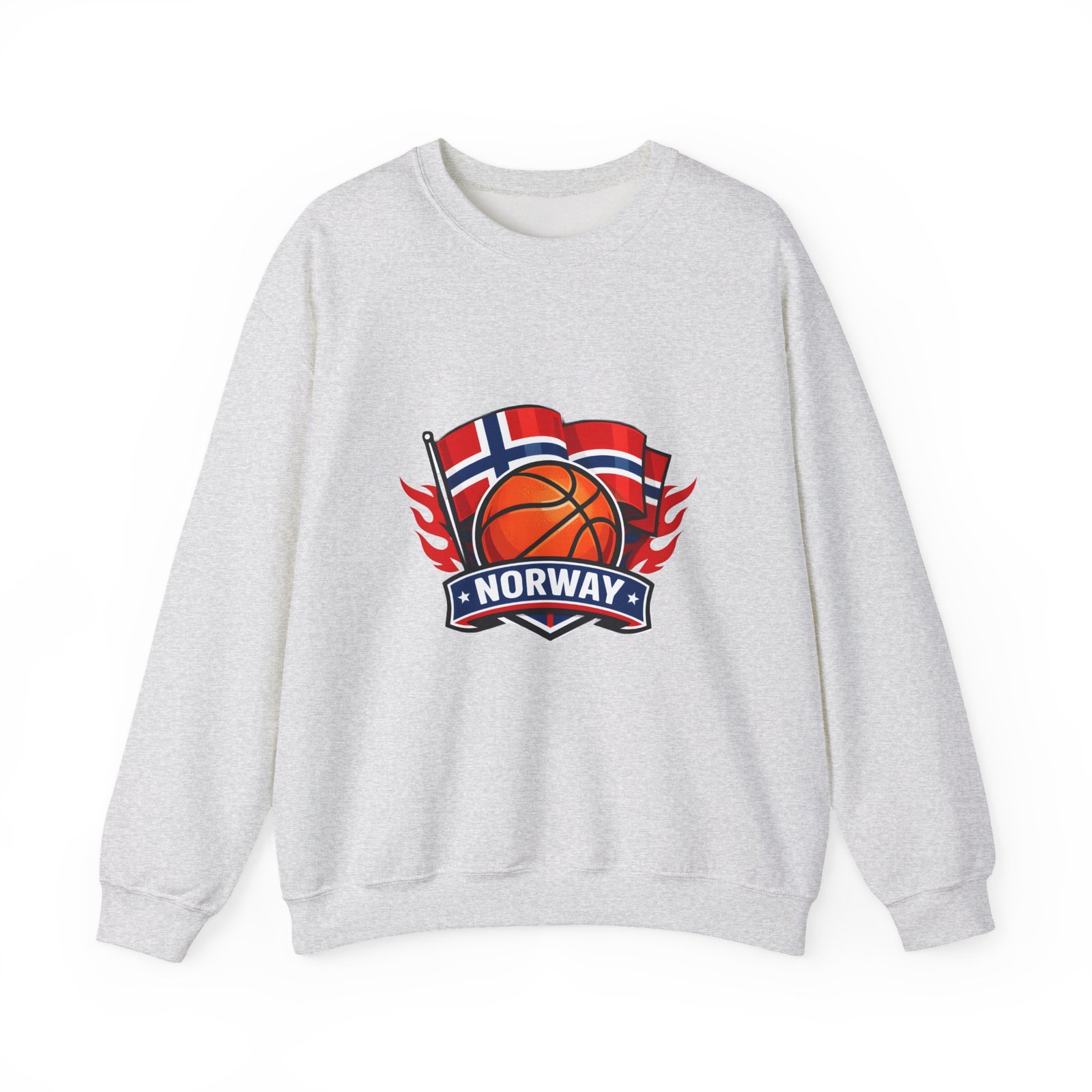 Soft, warm, and quietly bold — this crewneck brings together basketball energy and a subtle nod to Norway in a clean, wearable design. The mid-weight cotton-poly blend drapes comfortably for everyday wear and holds up to repeated wear thanks to reinforced seams. Embroidered chest artwork gives the central emblem depth, while the ribbed collar and cuffs keep everything feeling snug without constriction. Wear it post-practice, on chilly travel days, or layered for a city stroll — it settles into routines and moments, not shout for attention. The muted white background makes the orange basketball and waving Norwegian flags pop, creating a look that feels sporty and personal at once.
