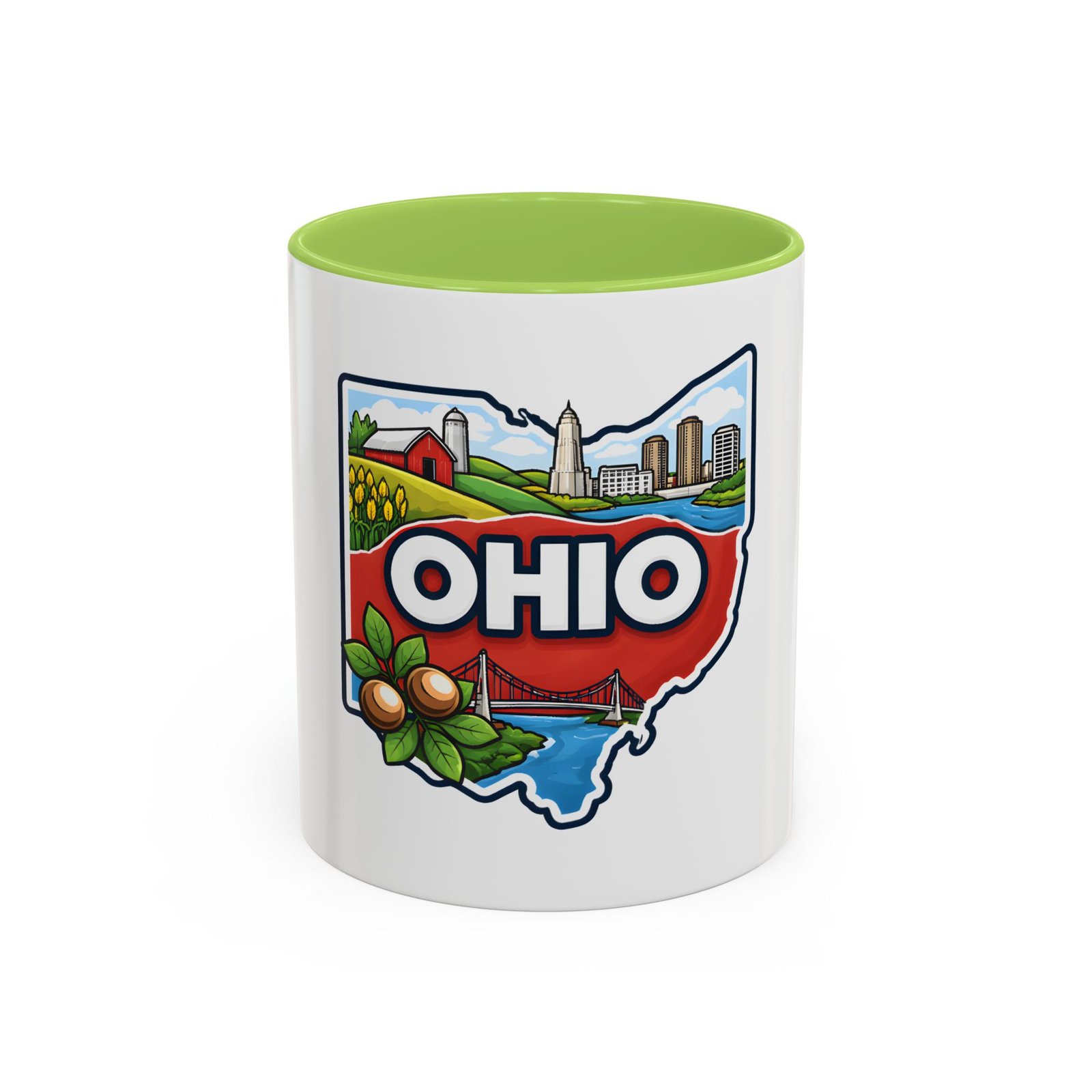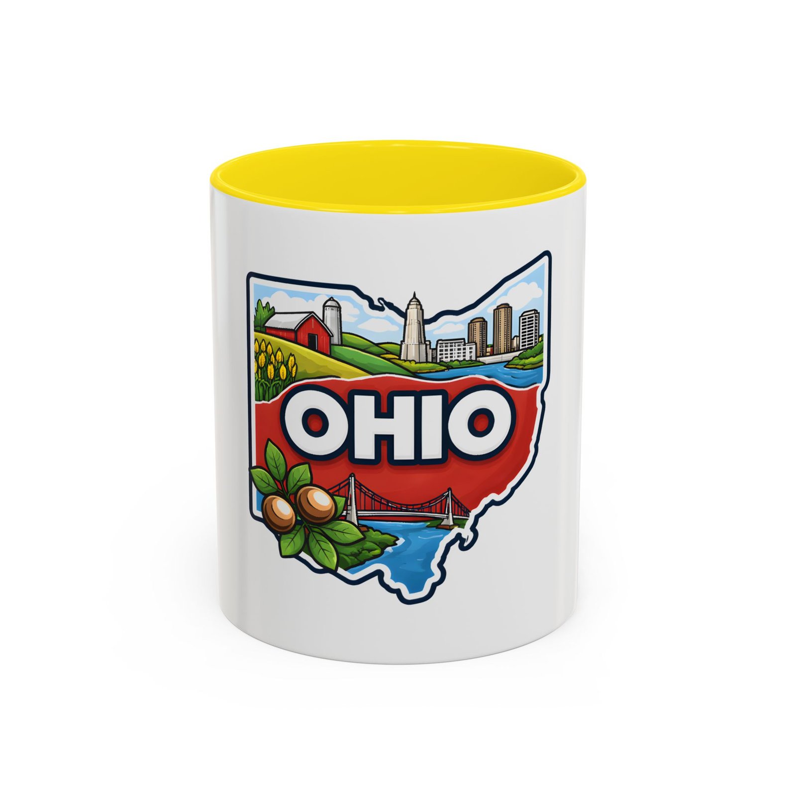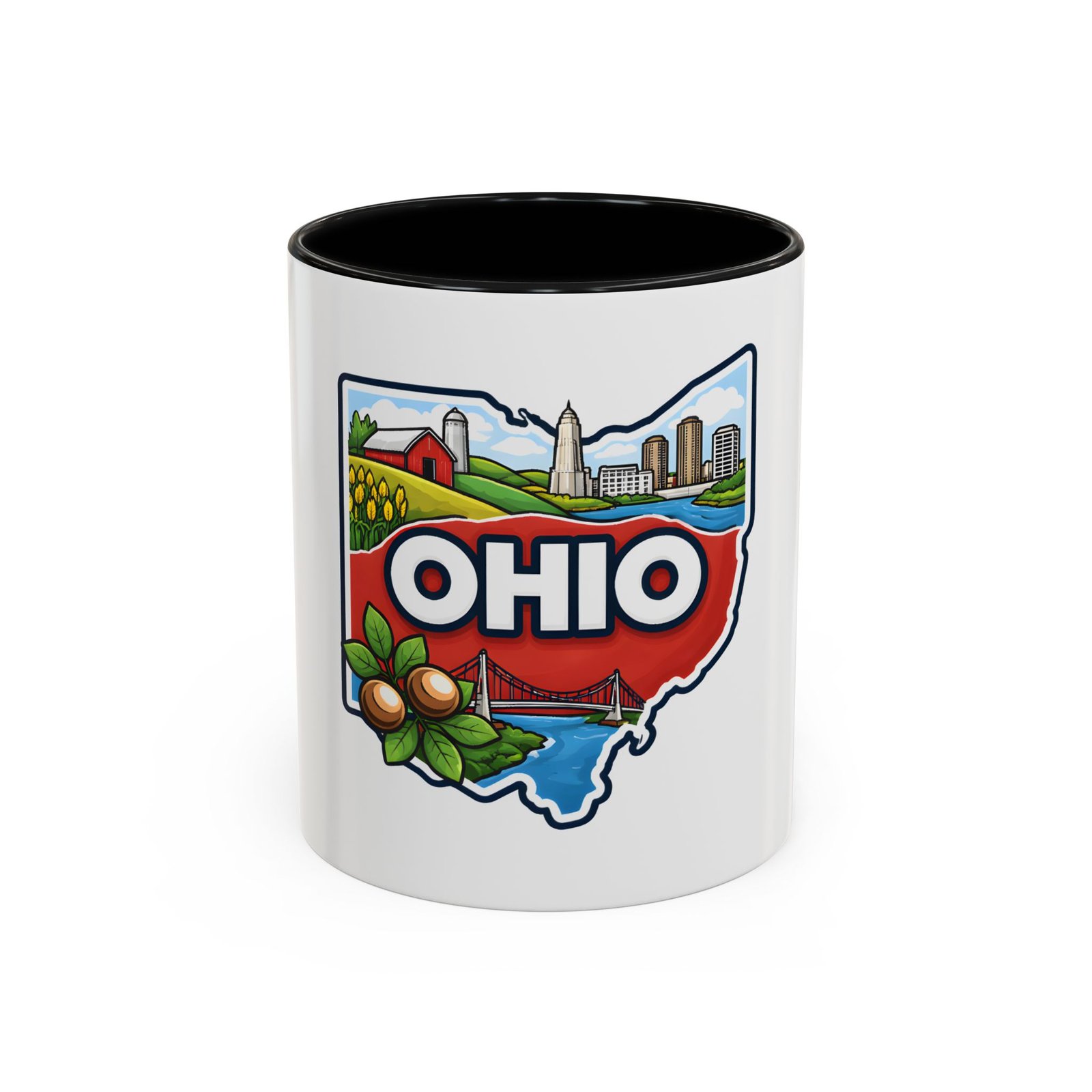 Wake up to a cup that feels like home. This ceramic mug wears Ohio’s familiar silhouette like a warm postcard — rolling farms, city skyline, and the river bridge come together in bright, cheerful colors that catch your eye every morning. The colored interior and handle add a playful contrast against the glossy white body, while the generous 11oz or 15oz size holds your favorite brew, tea, or hot cocoa. It’s sturdy, easy to care for, and made to last through daily rituals — whether you’re sipping at the kitchen counter, taking a quiet moment on the porch, or bringing a bit of state pride to the office desk. Carry a piece of Ohio with you in every comforting sip.