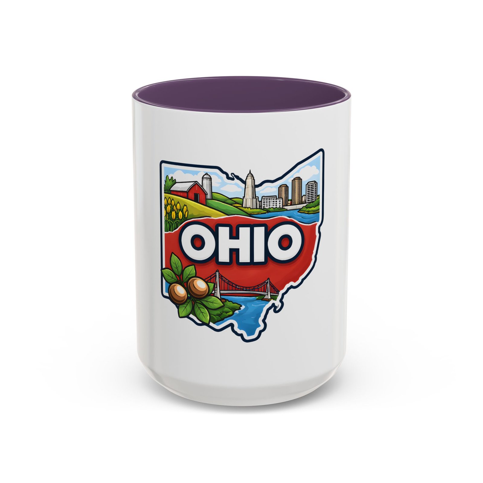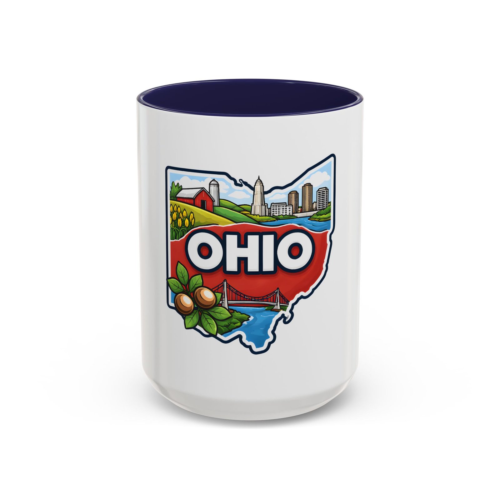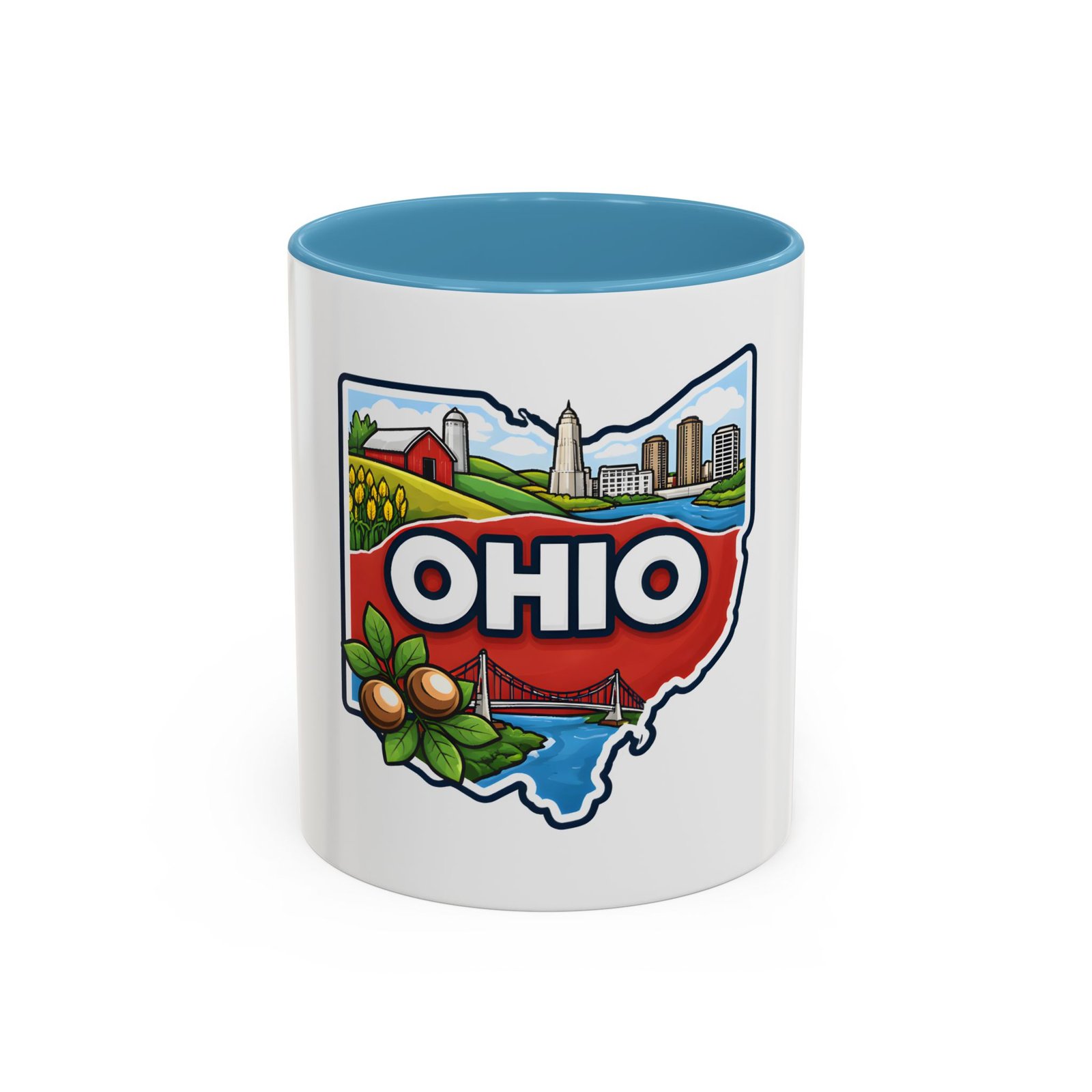 Wake up to a cup that feels like home. This ceramic mug wears Ohio’s familiar silhouette like a warm postcard — rolling farms, city skyline, and the river bridge come together in bright, cheerful colors that catch your eye every morning. The colored interior and handle add a playful contrast against the glossy white body, while the generous 11oz or 15oz size holds your favorite brew, tea, or hot cocoa. It’s sturdy, easy to care for, and made to last through daily rituals — whether you’re sipping at the kitchen counter, taking a quiet moment on the porch, or bringing a bit of state pride to the office desk. Carry a piece of Ohio with you in every comforting sip.