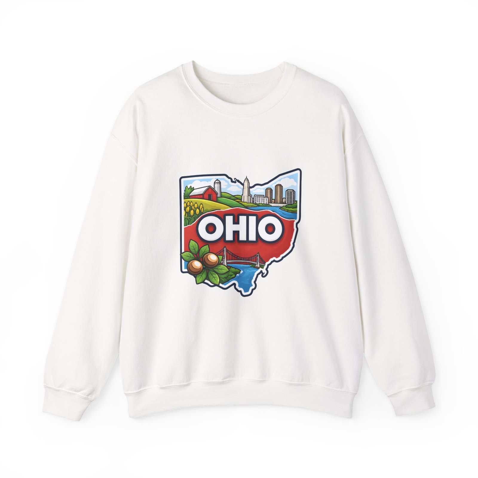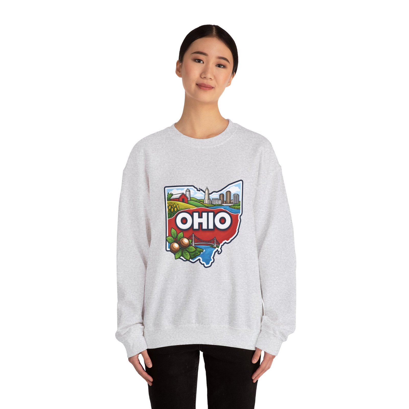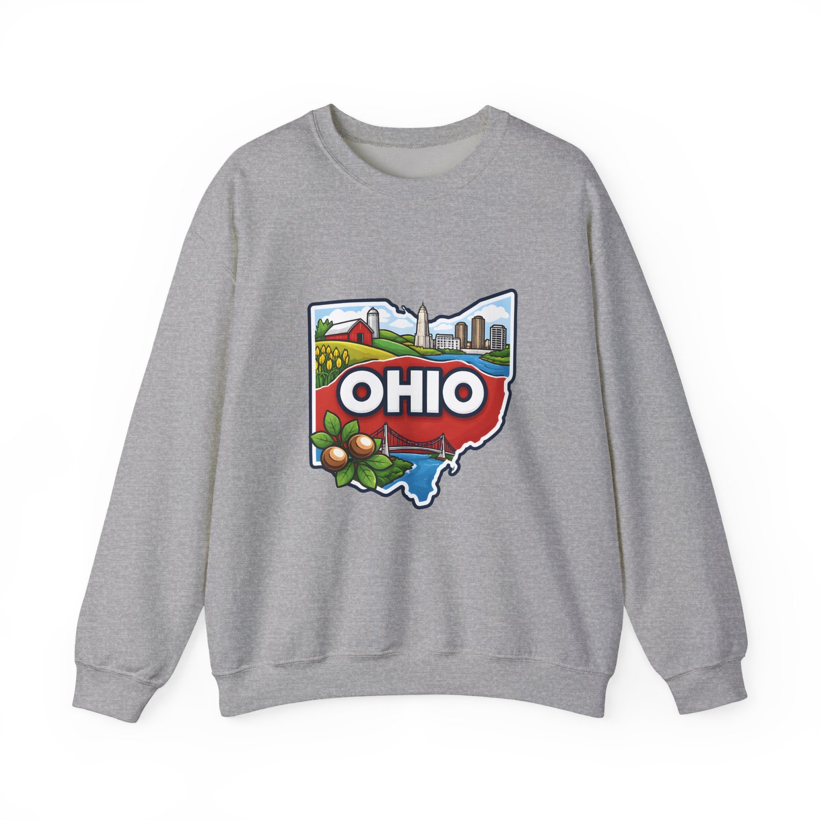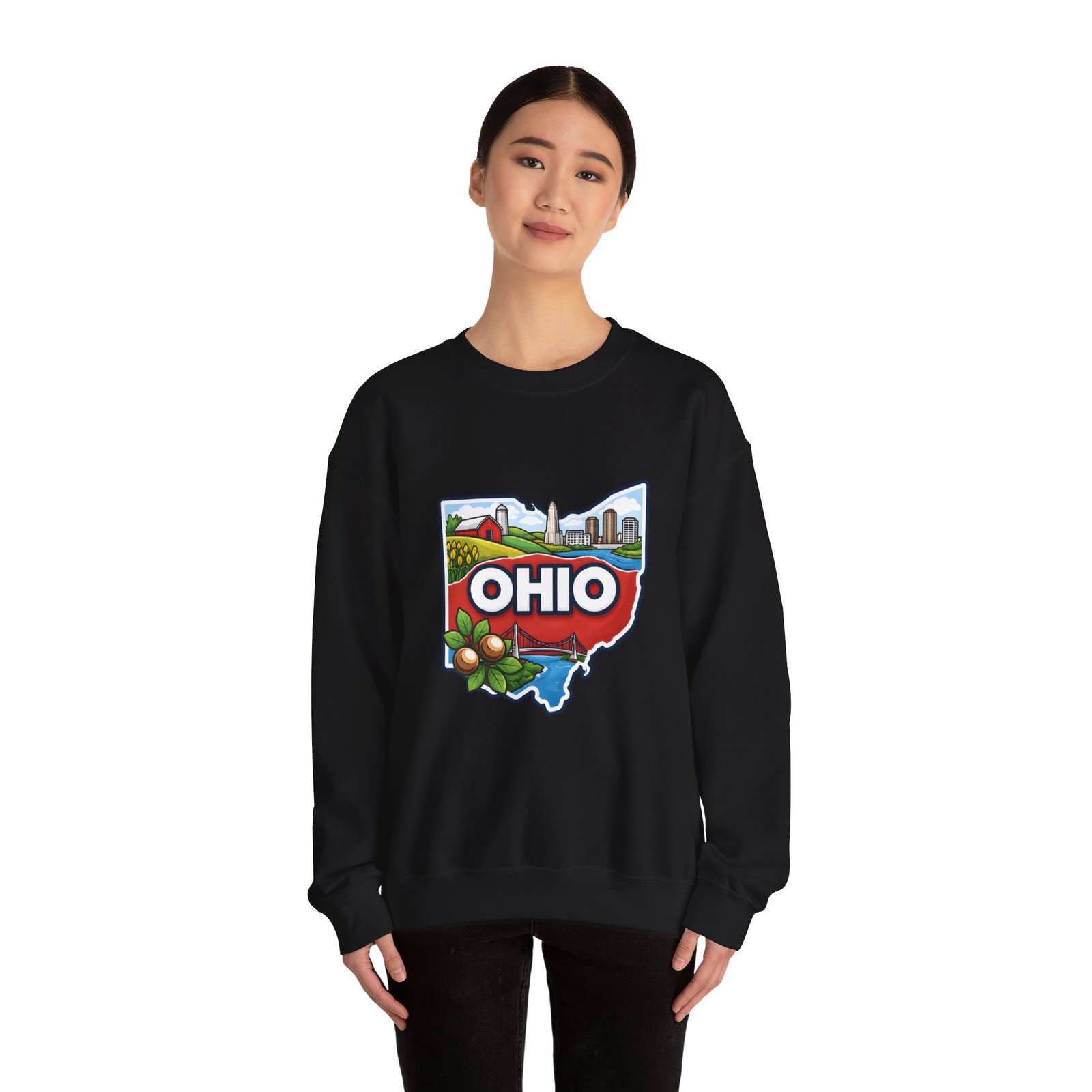 Ohio State Outline Sweatshirt — Scenic Ohio Design with "OHIO" TextOhio State Outline Sweatshirt — Scenic Ohio Design with “OHIO” Text