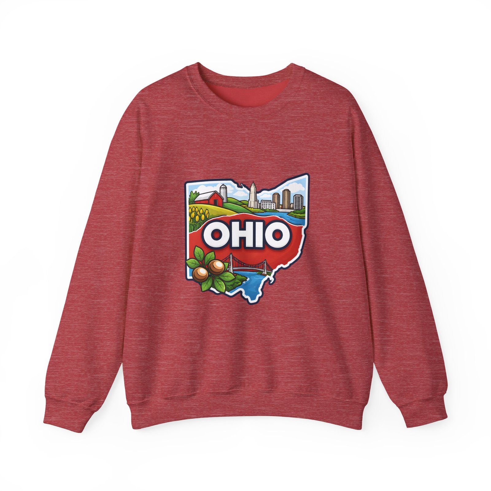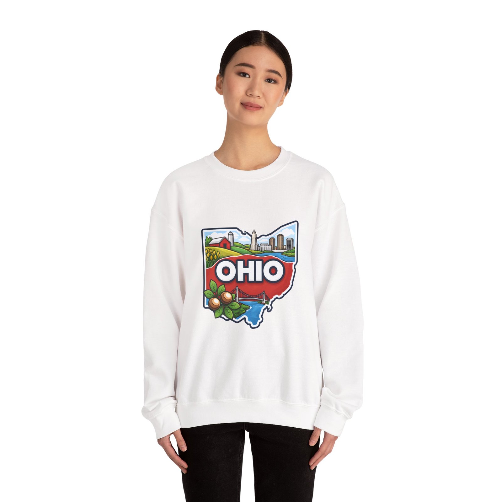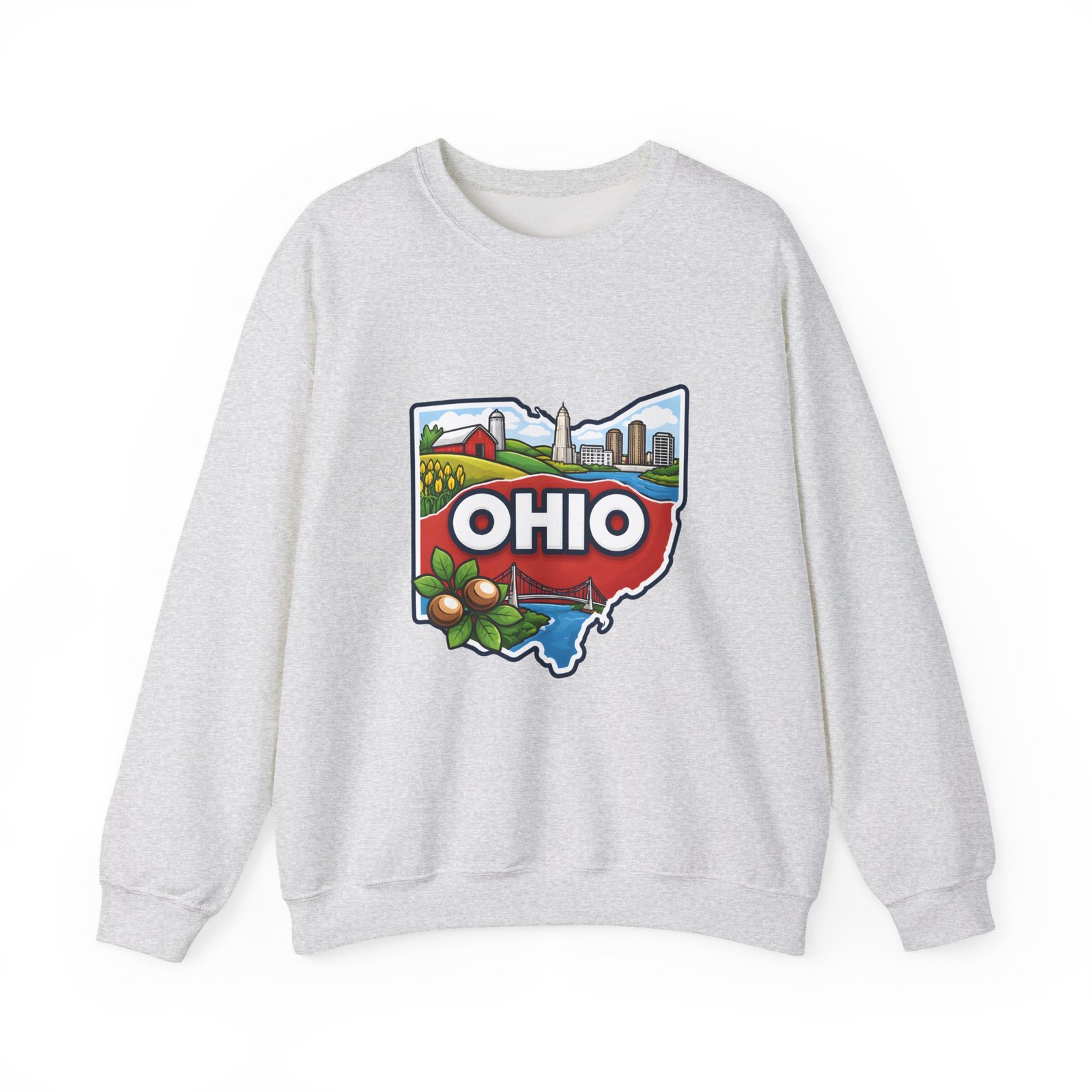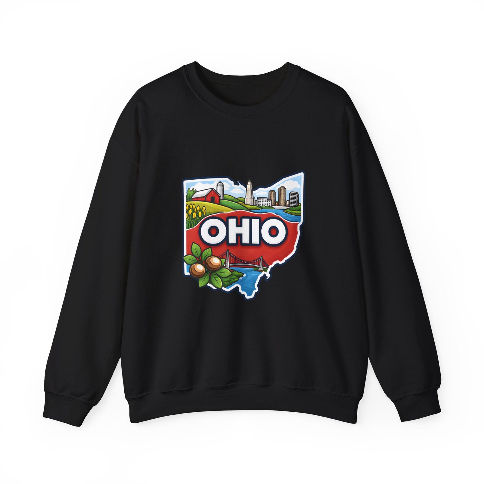 Ohio State Outline Sweatshirt — Scenic Ohio Design with "OHIO" TextOhio State Outline Sweatshirt — Scenic Ohio Design with “OHIO” Text