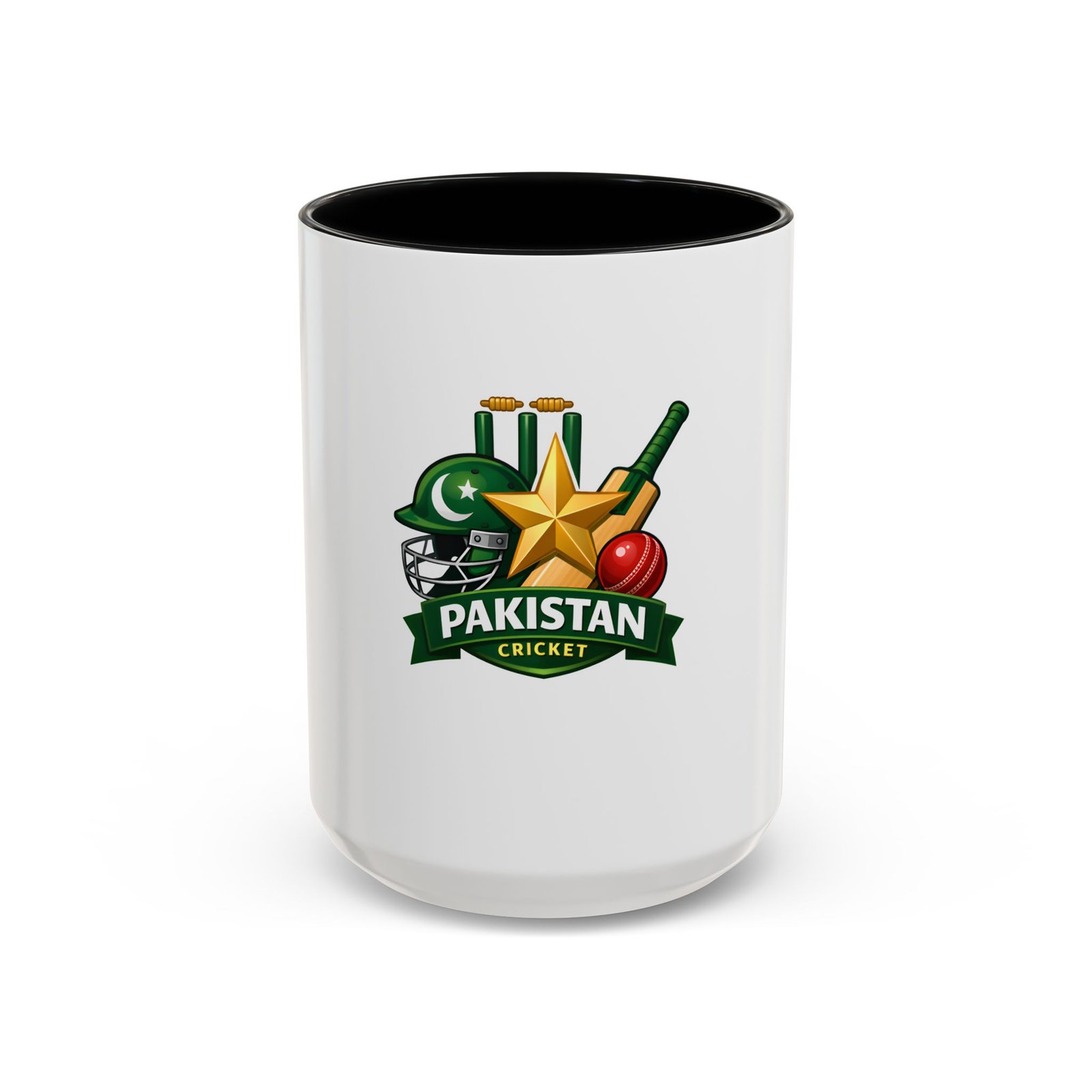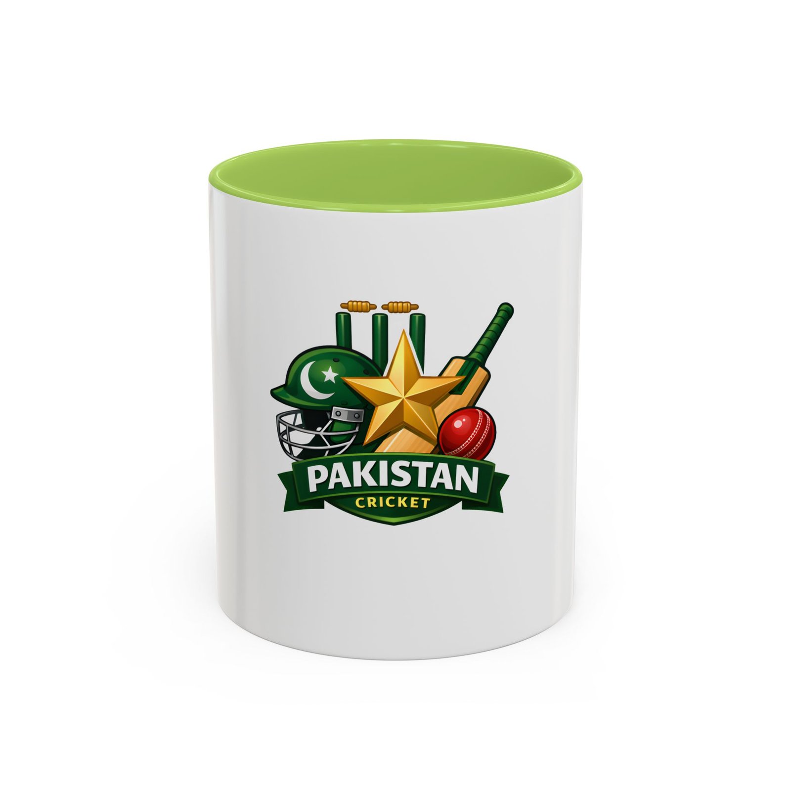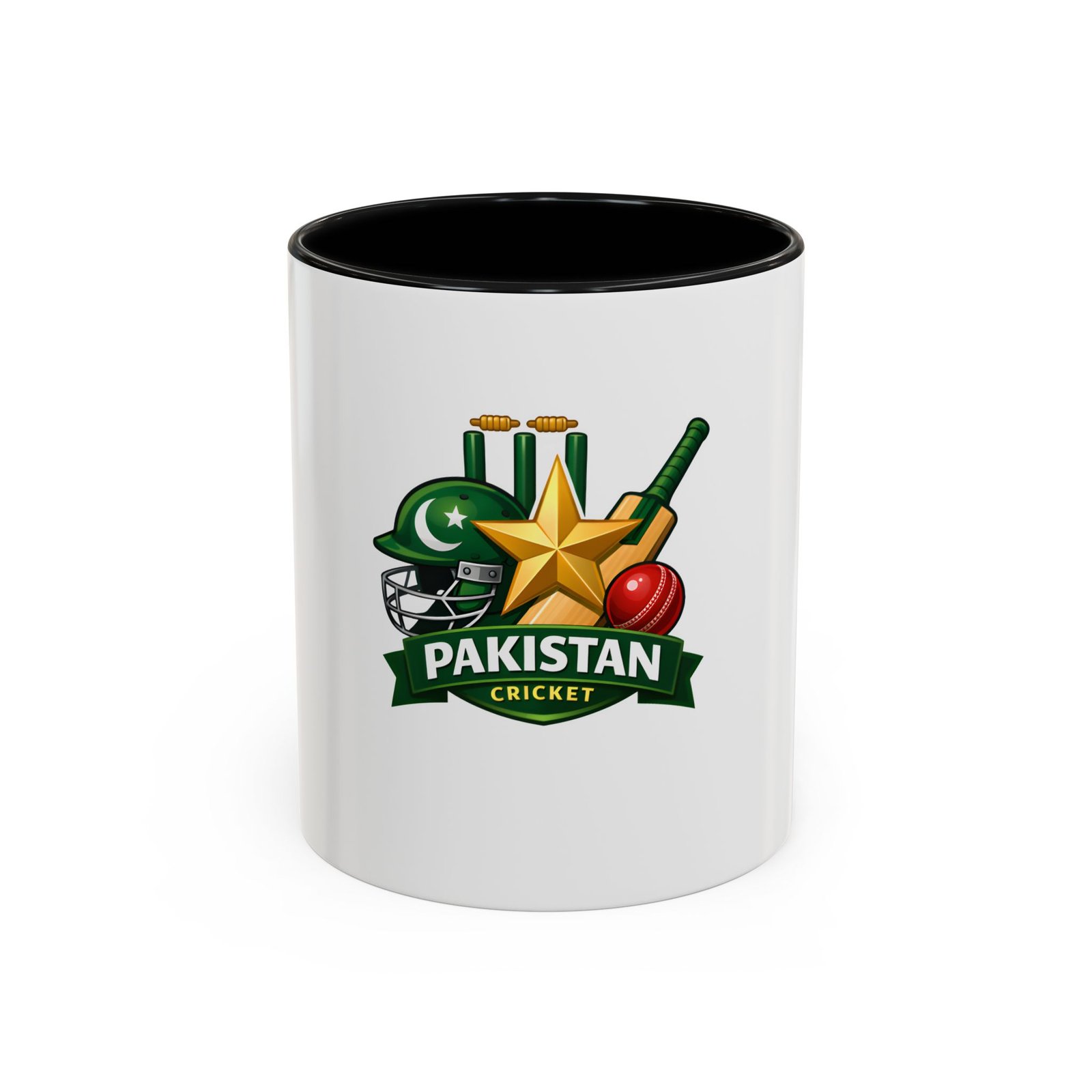 Wake up to match-day energy with this vibrant Pakistan cricket mug. Bright, glossy colors bring the helmet, star, bat and ball artwork to life against a crisp white ceramic backdrop. The colored interior and handle add a sporty pop that feels celebratory every time you reach for it. It’s sturdy enough for early-morning tea or late-night match replays, and the comfortable C-shaped handle keeps the focus on the game. Whether you’re settling in to watch an overseas test or sharing banter with friends, this mug carries the familiar pride of green and gold in every sip.