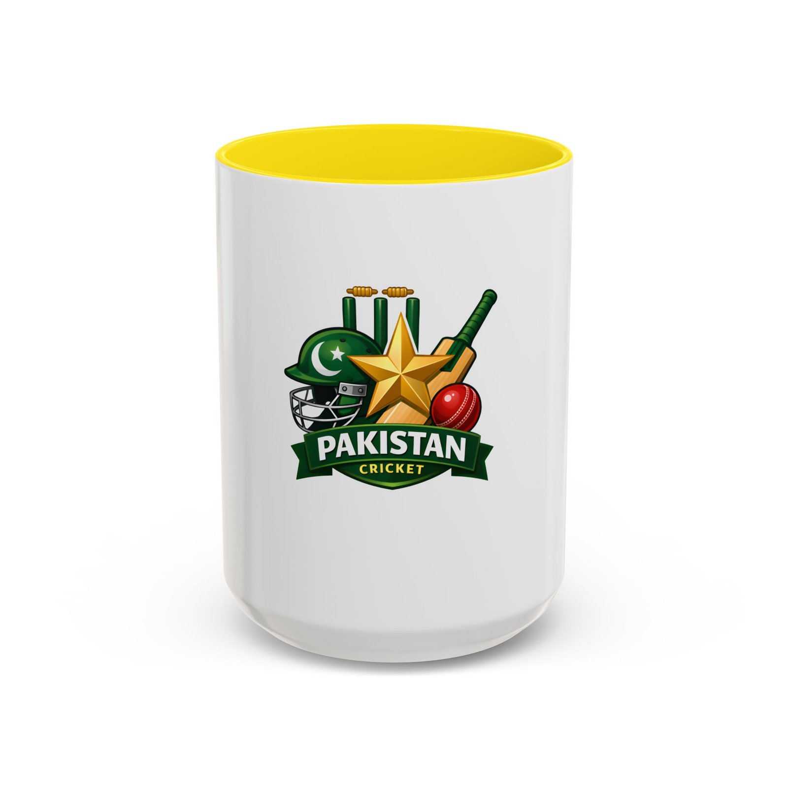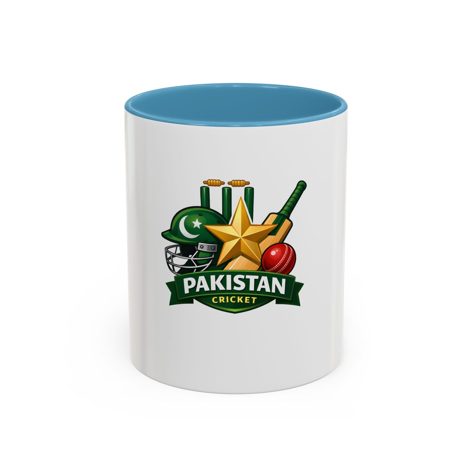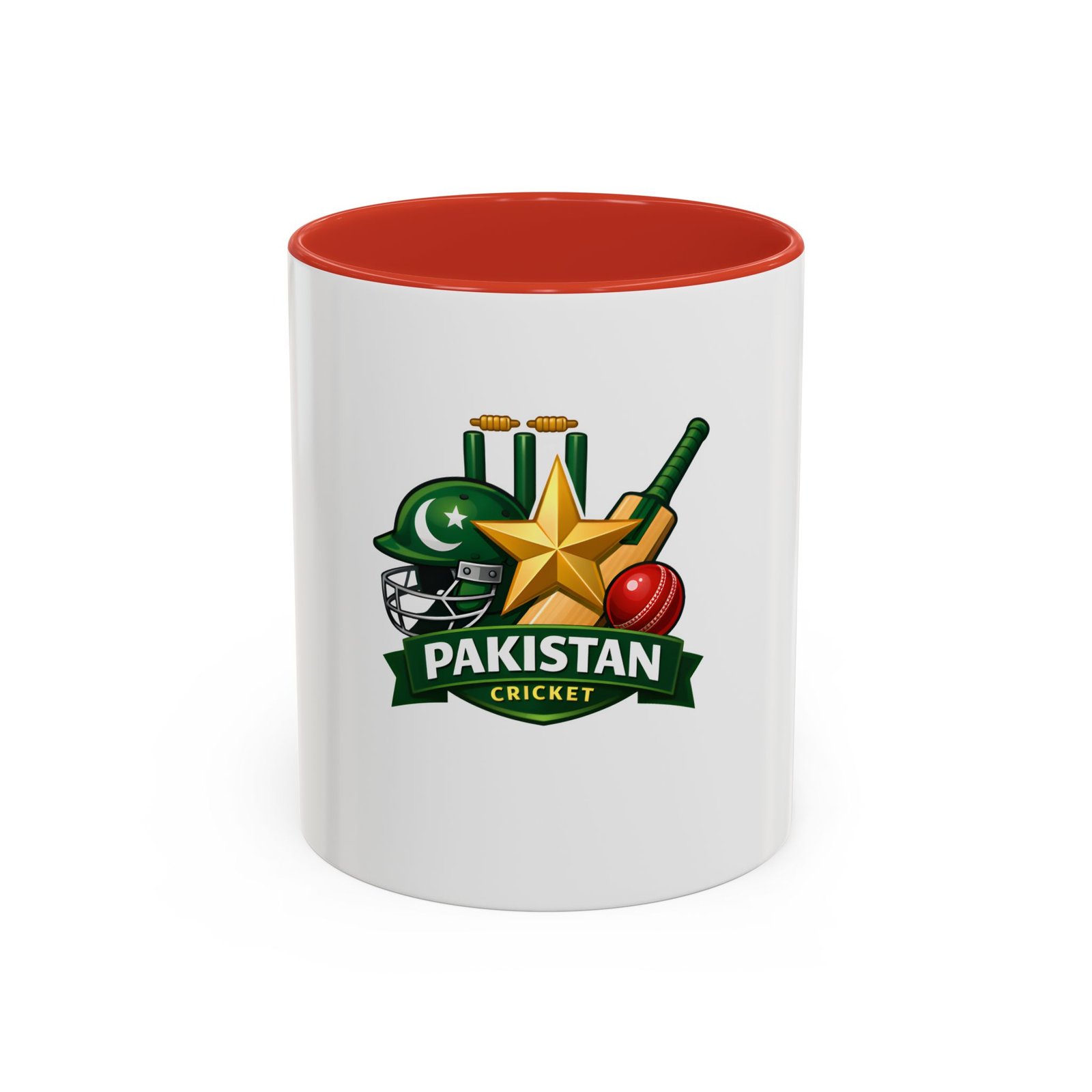 Wake up to match-day energy with this vibrant Pakistan cricket mug. Bright, glossy colors bring the helmet, star, bat and ball artwork to life against a crisp white ceramic backdrop. The colored interior and handle add a sporty pop that feels celebratory every time you reach for it. It’s sturdy enough for early-morning tea or late-night match replays, and the comfortable C-shaped handle keeps the focus on the game. Whether you’re settling in to watch an overseas test or sharing banter with friends, this mug carries the familiar pride of green and gold in every sip.