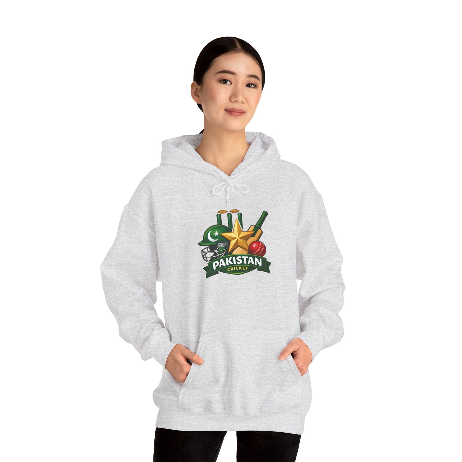 Soft, roomy hoodie with a bold cricket-and-flag design that carries quiet pride. The mid-weight fleece holds shape and color through seasons, while the double-lined hood and color-matched drawcord add a finished, durable feel. Wear it to watch a match, meet friends for chai, or wander the city — it settles in like a familiar companion and announces allegiance with subtle, sporty style.