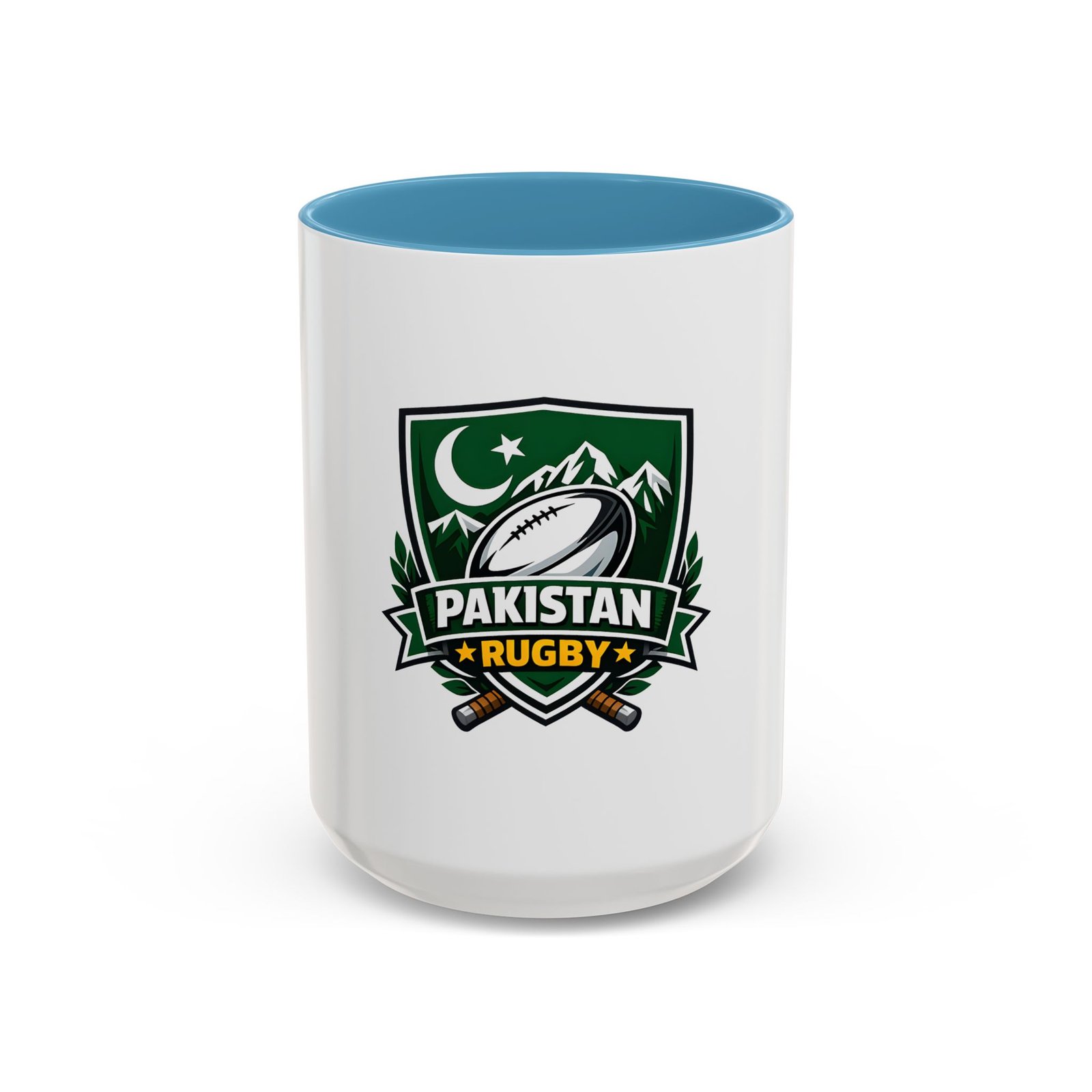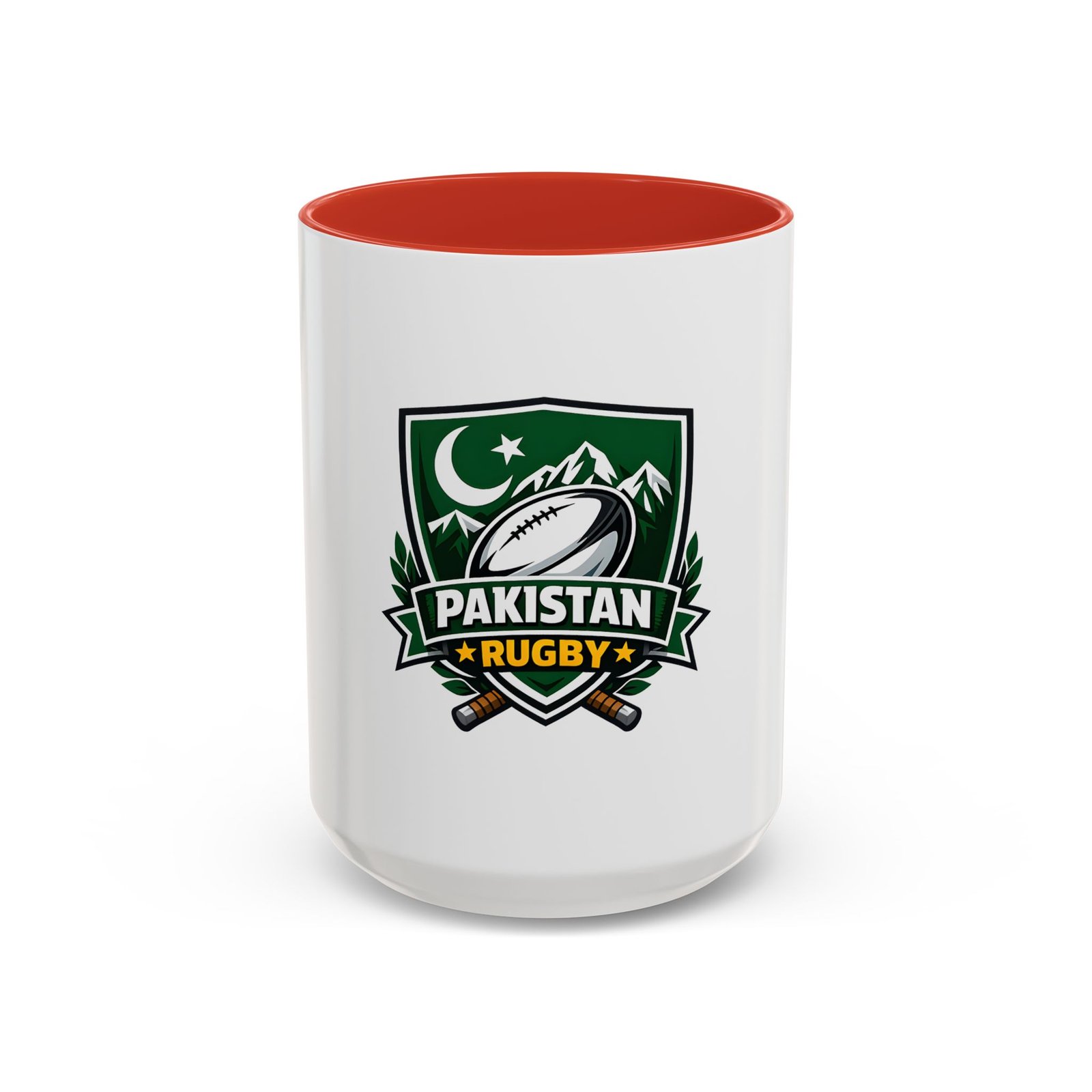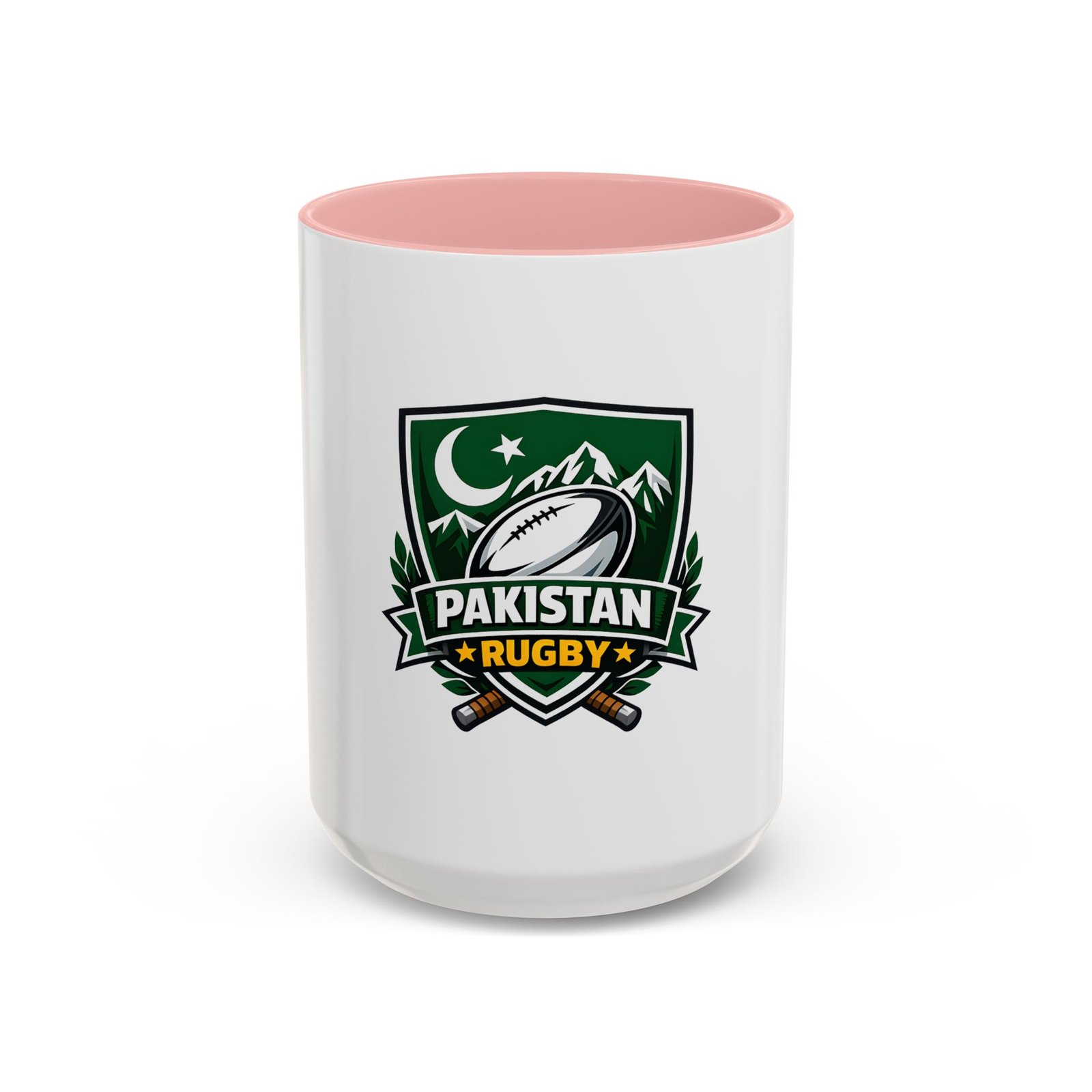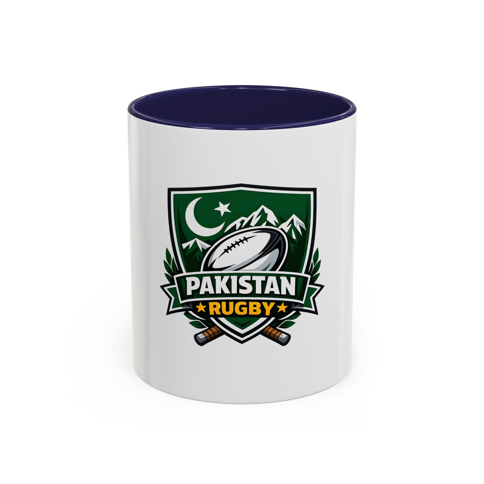 Start your day with a bold nod to the green and white. This ceramic accent mug brings Pakistan rugby spirit to your morning coffee or late-night tea. The emblem — a rugby ball framed by mountains, crescent, and crossed goalposts — feels like a rallying cry: quiet pride, team grit, and a love of the game. Bright, crisp printing on glossy white ceramic highlights the dark-green crest, while the colored interior and handle add a punch of contrast every time you lift it. It’s comfortable to hold, easy to clean, and built to handle everyday use at home, in the club lounge, or tucked into a player’s gear bag between training sessions.