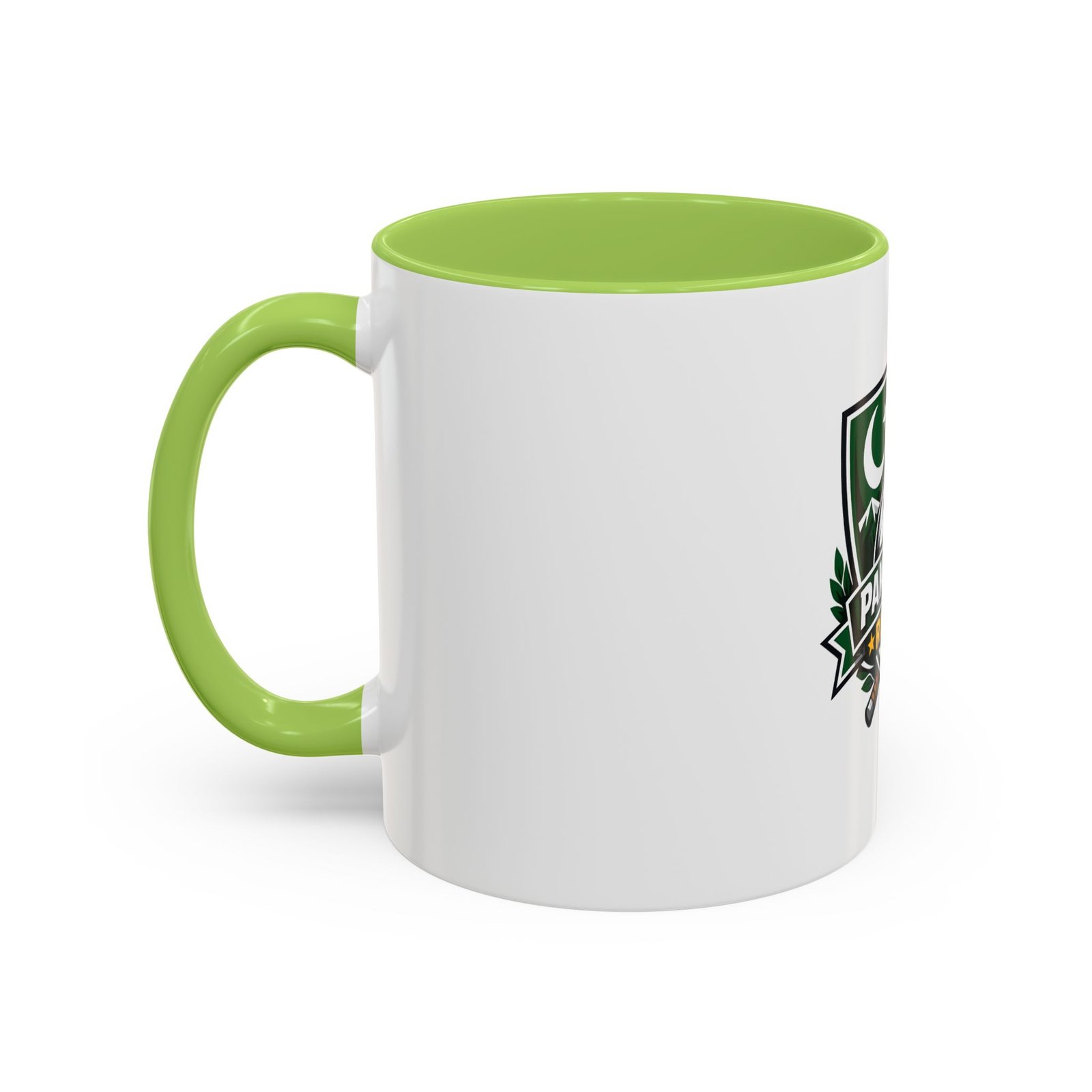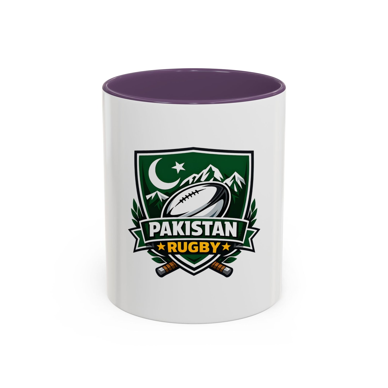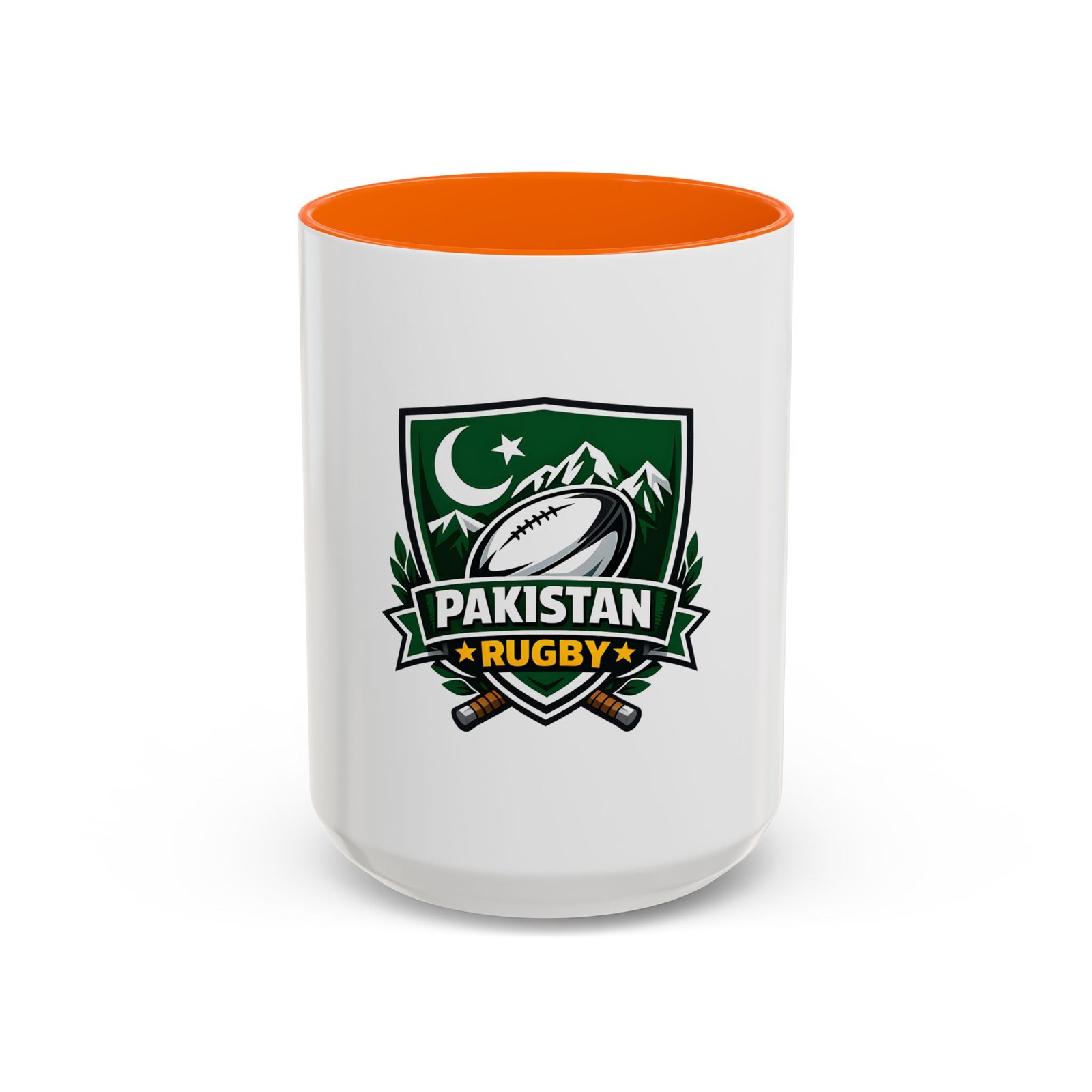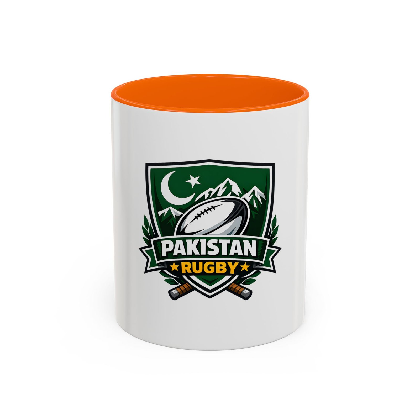Start your day with a bold nod to the green and white. This ceramic accent mug brings Pakistan rugby spirit to your morning coffee or late-night tea. The emblem — a rugby ball framed by mountains, crescent, and crossed goalposts — feels like a rallying cry: quiet pride, team grit, and a love of the game. Bright, crisp printing on glossy white ceramic highlights the dark-green crest, while the colored interior and handle add a punch of contrast every time you lift it. It’s comfortable to hold, easy to clean, and built to handle everyday use at home, in the club lounge, or tucked into a player’s gear bag between training sessions.