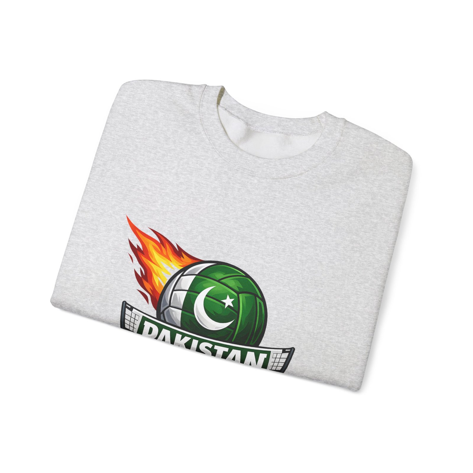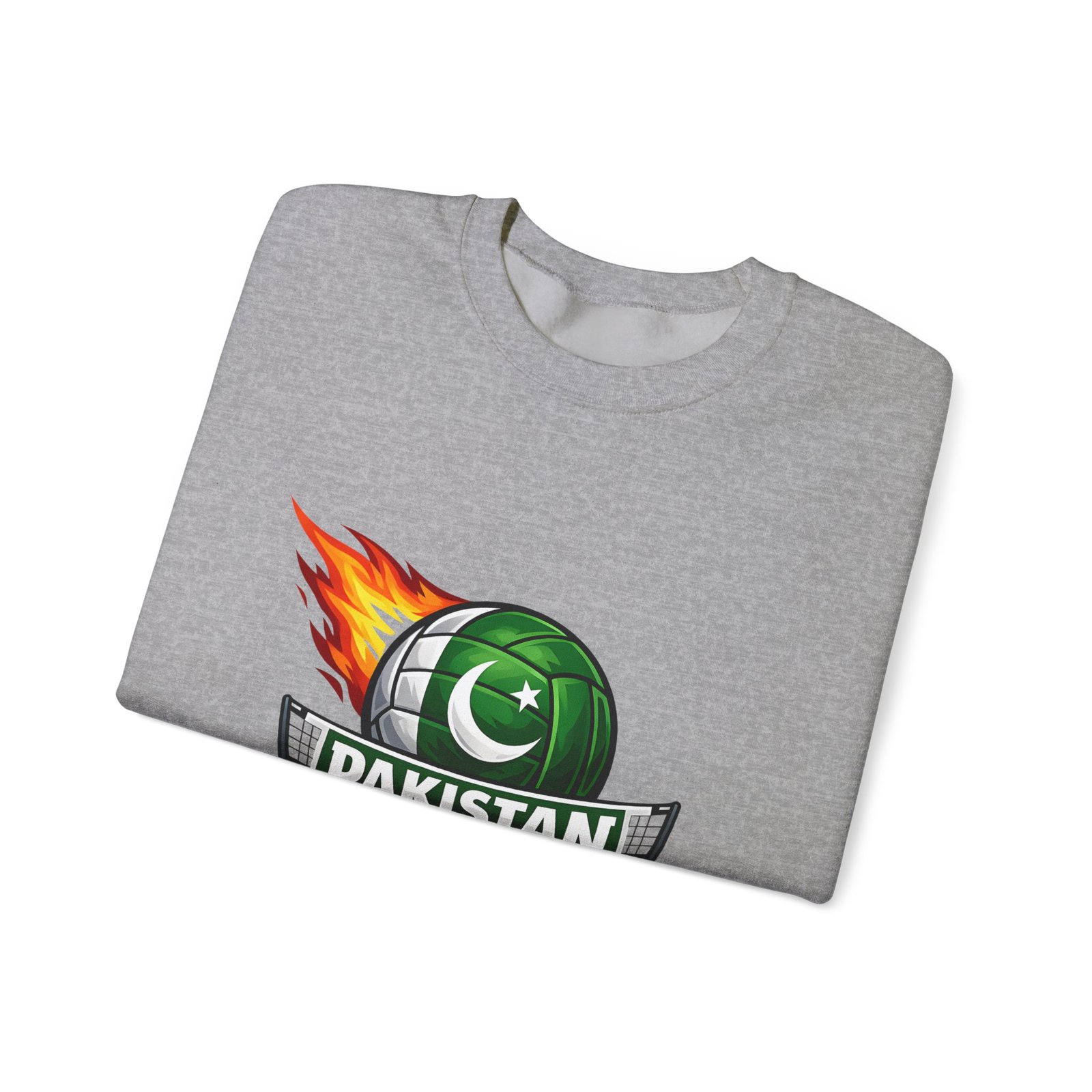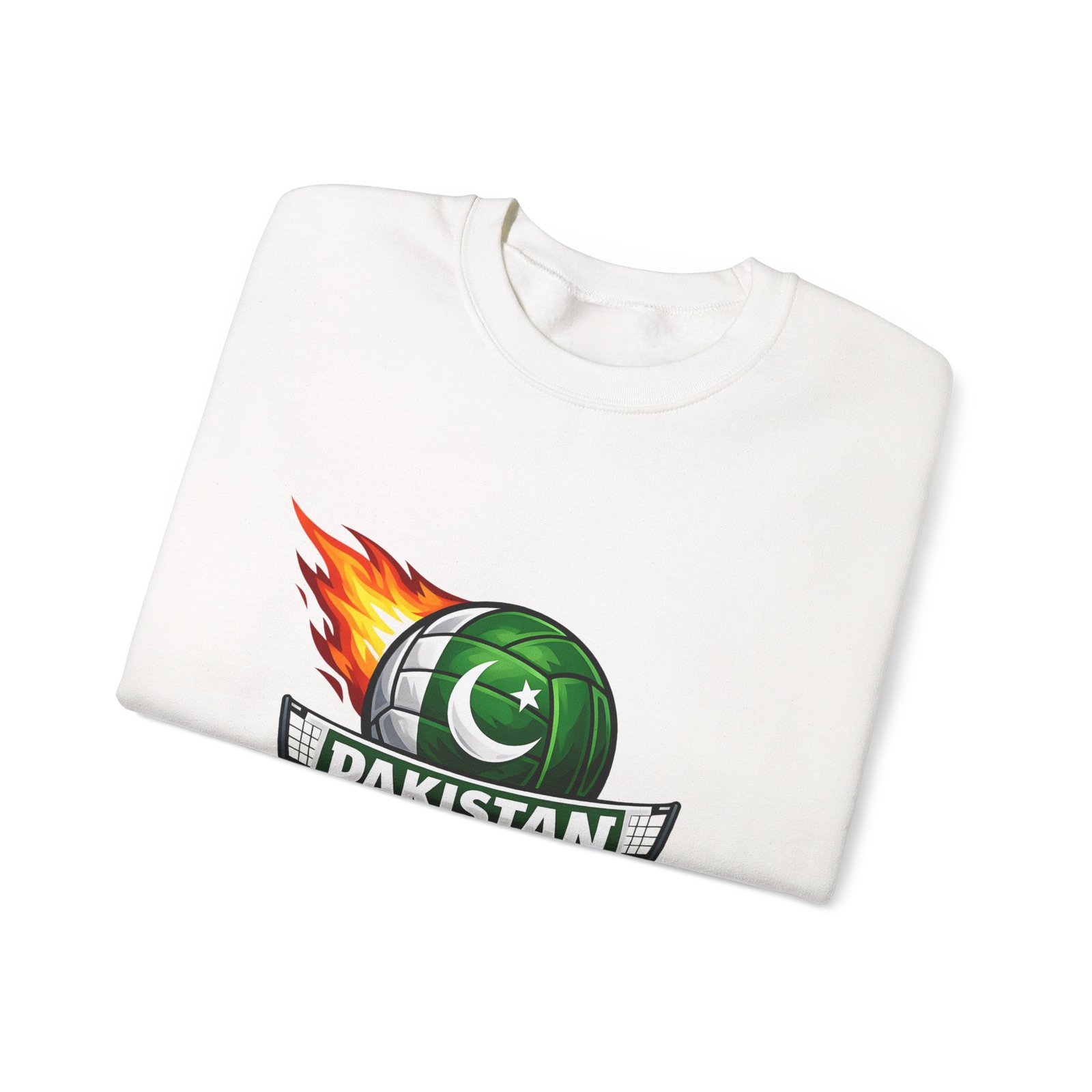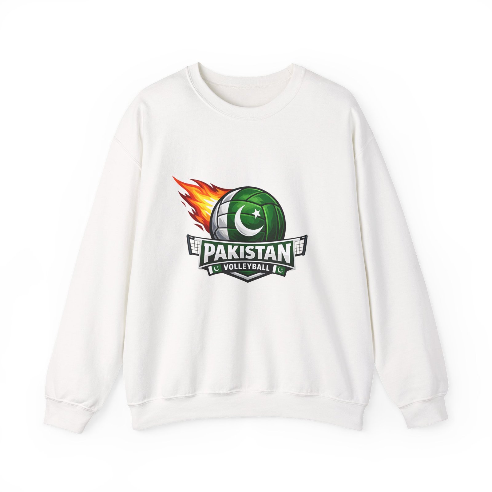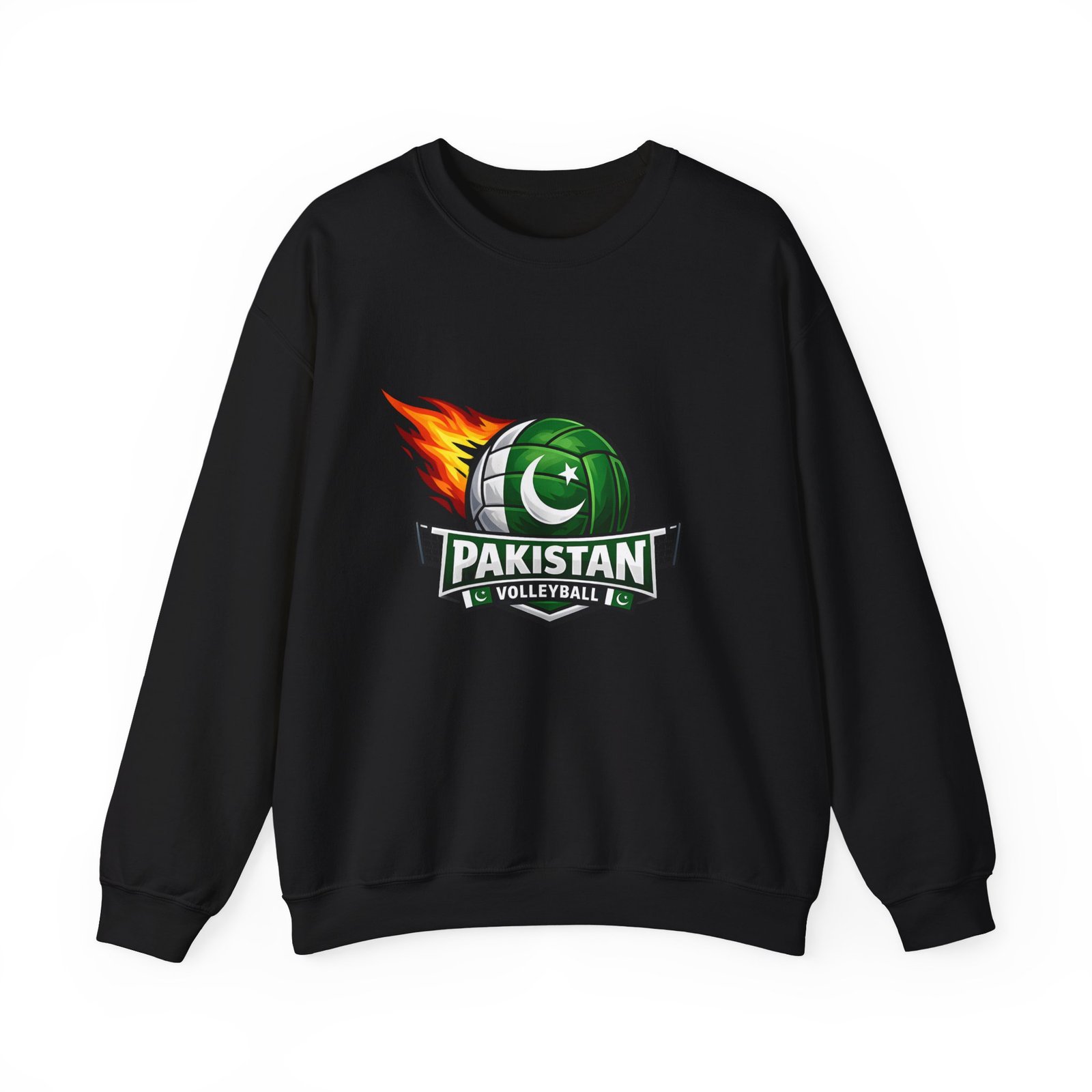 Carry the energy of the game and the pride of Pakistan in a soft, dependable sweatshirt. This medium-heavy crewneck wraps you in warmth without feeling bulky. A bold volleyball emblem — a green ball marked with the crescent and star and a streak of flame — sits at the chest, announcing team spirit and movement. Wear it to morning practices, spirited watch parties, or low-key city strolls. The classic cut layers easily over tees and hoodies. Attention to detail shows in the ribbed collar, durable double-needle stitching, and tear-away label that keeps the neck comfortable. It’s built to move with you, season after season.