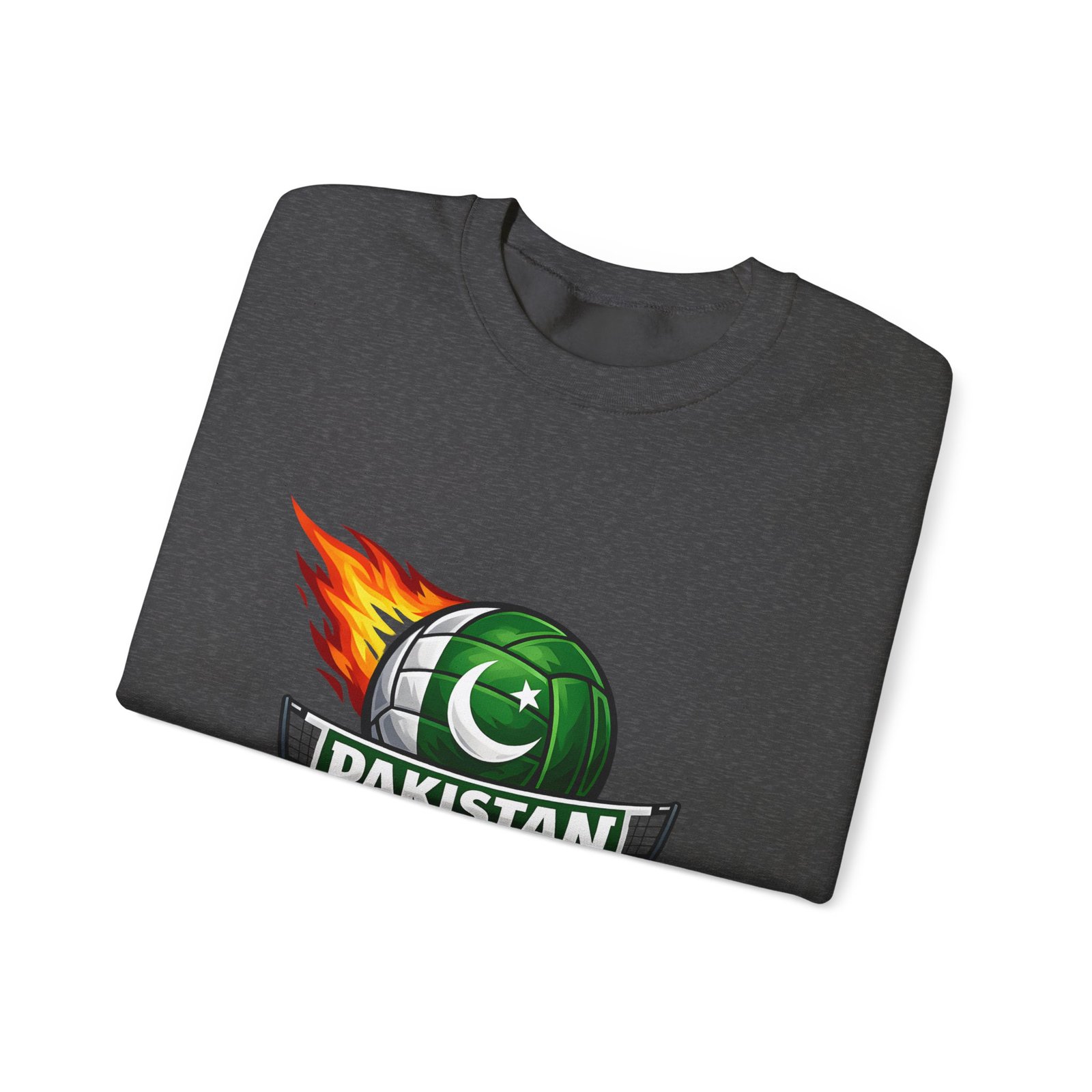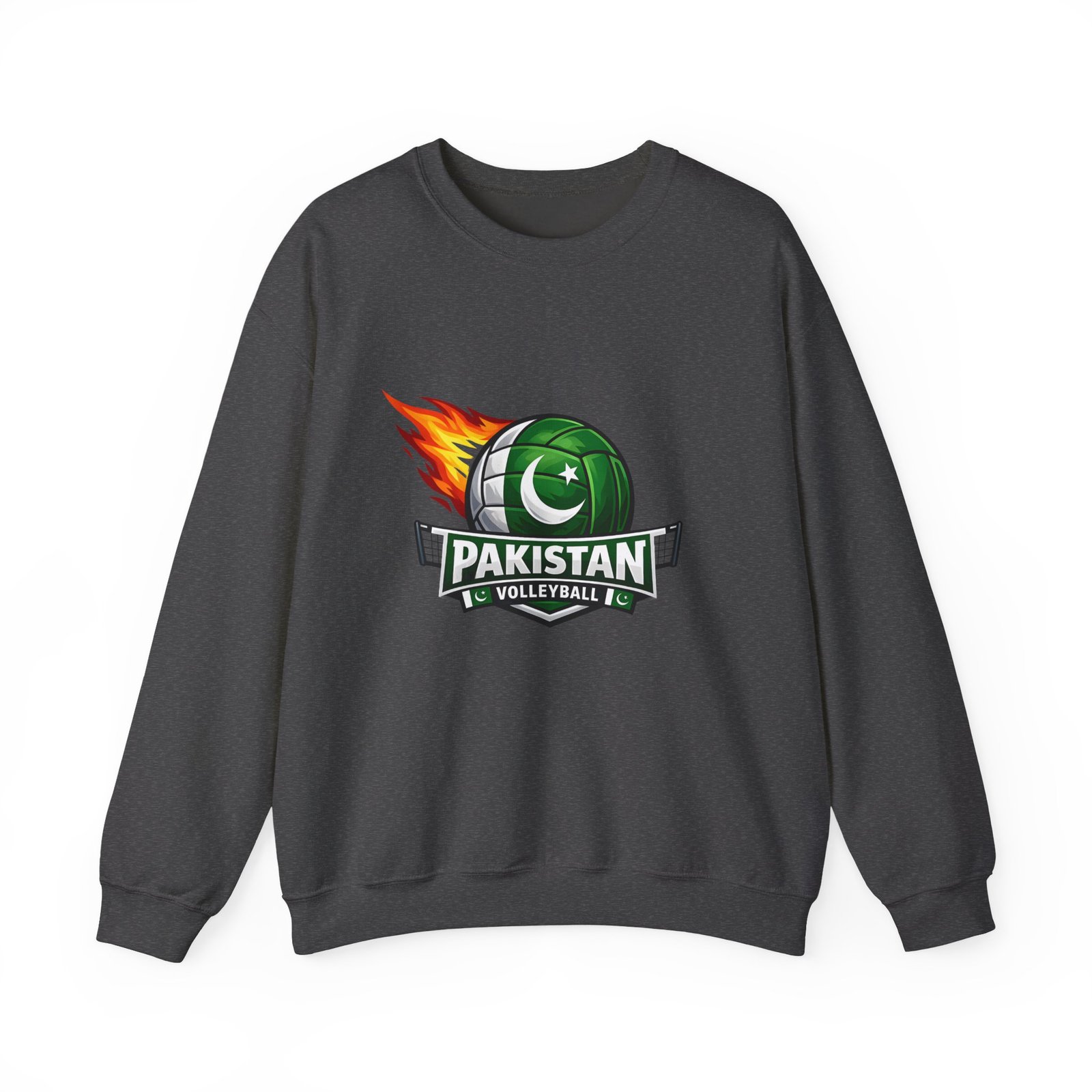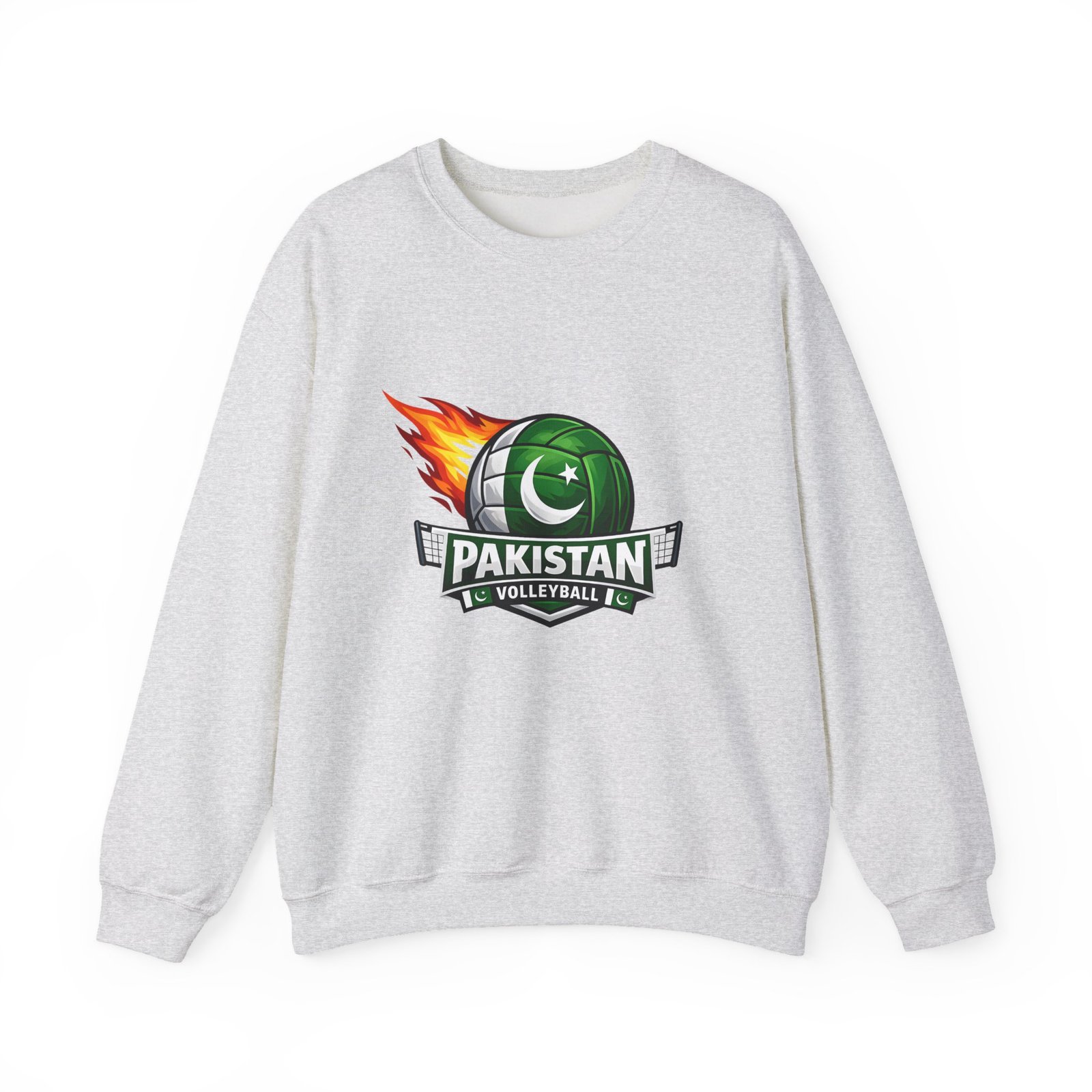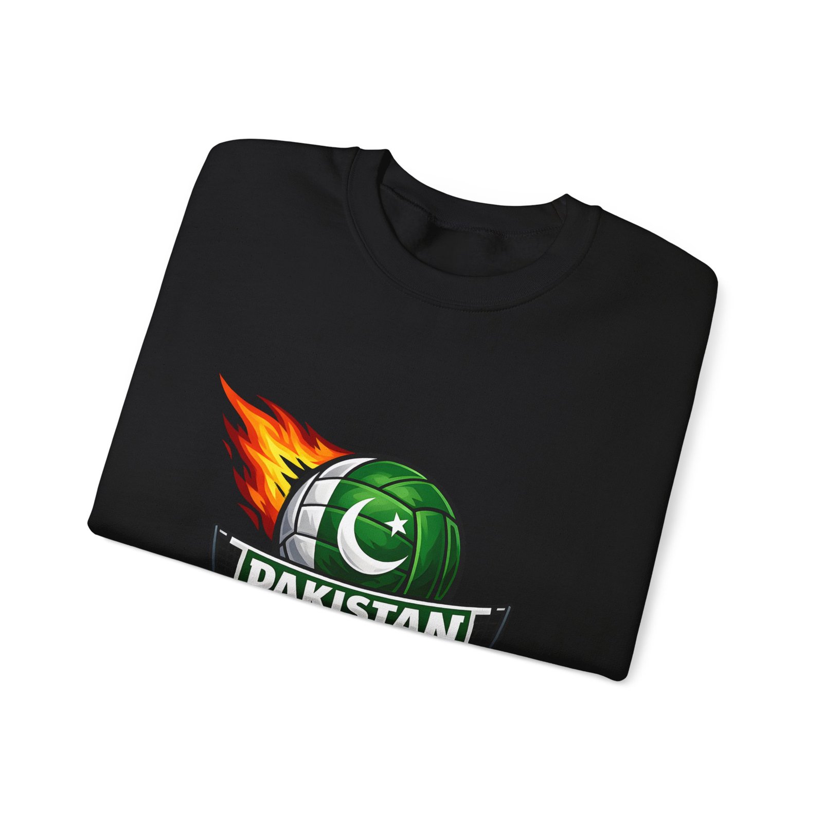 Carry the energy of the game and the pride of Pakistan in a soft, dependable sweatshirt. This medium-heavy crewneck wraps you in warmth without feeling bulky. A bold volleyball emblem — a green ball marked with the crescent and star and a streak of flame — sits at the chest, announcing team spirit and movement. Wear it to morning practices, spirited watch parties, or low-key city strolls. The classic cut layers easily over tees and hoodies. Attention to detail shows in the ribbed collar, durable double-needle stitching, and tear-away label that keeps the neck comfortable. It’s built to move with you, season after season.