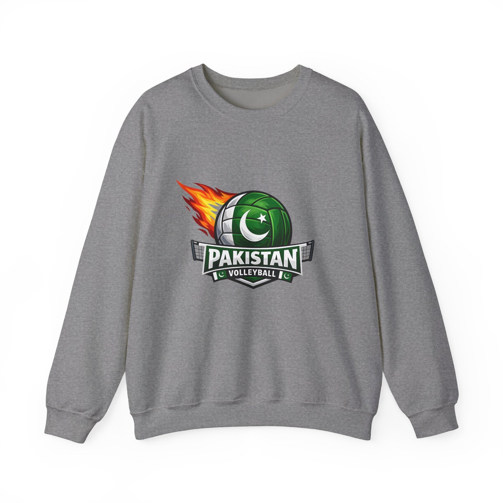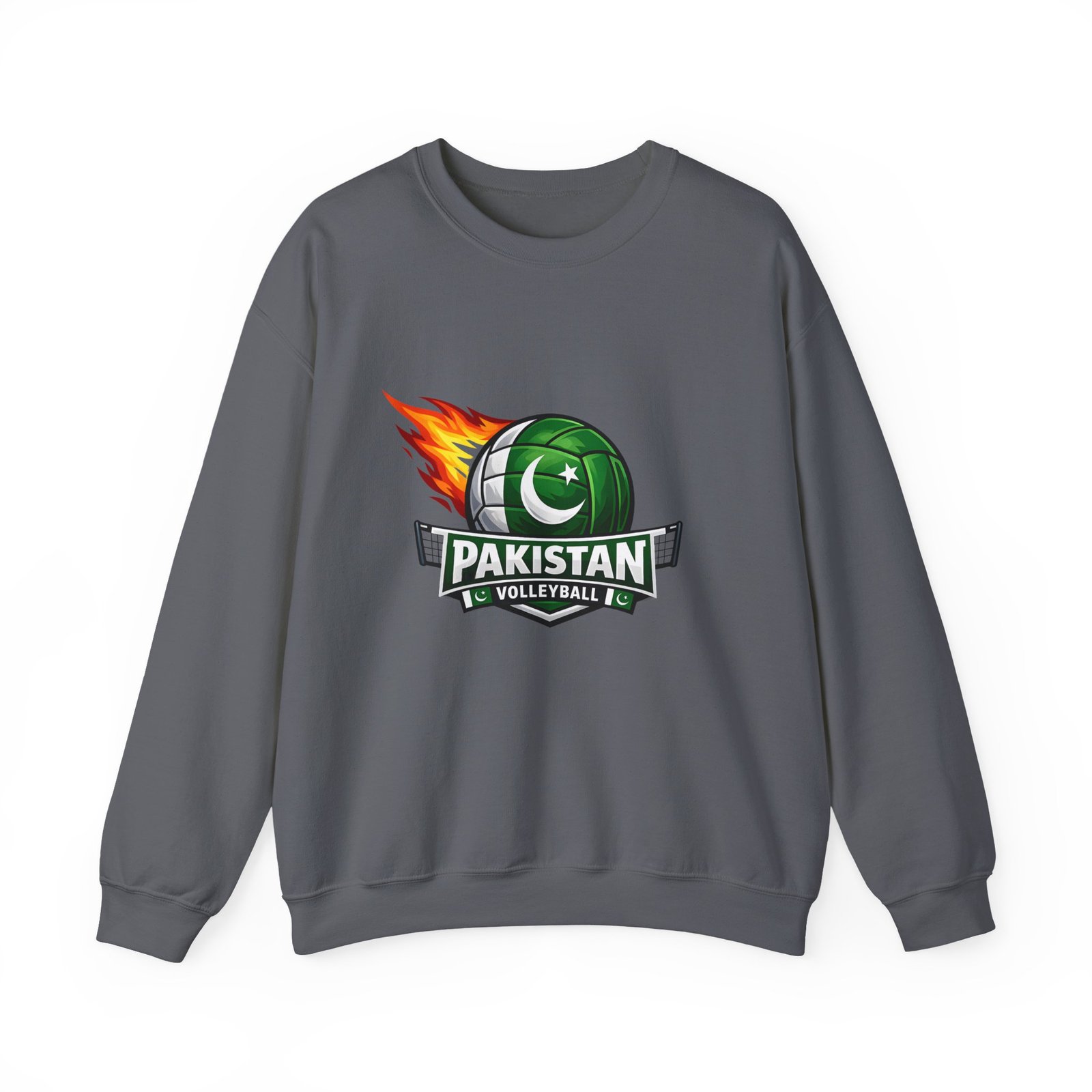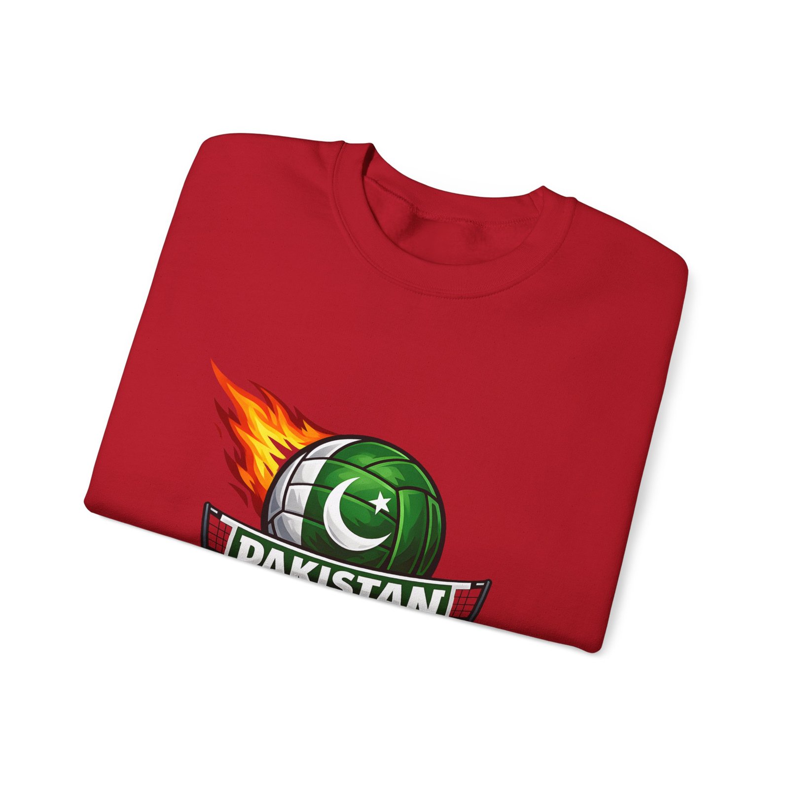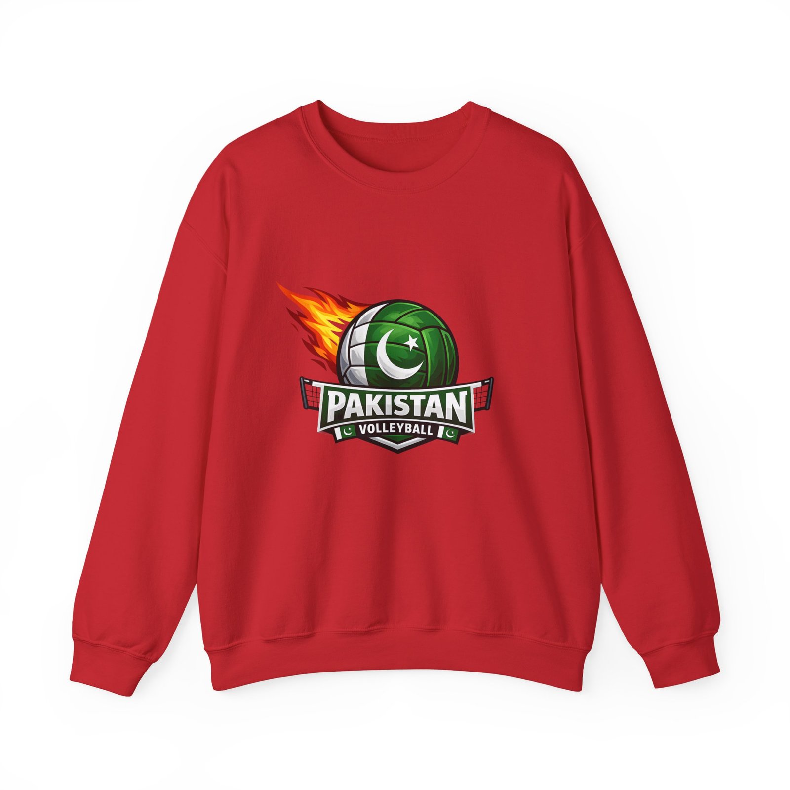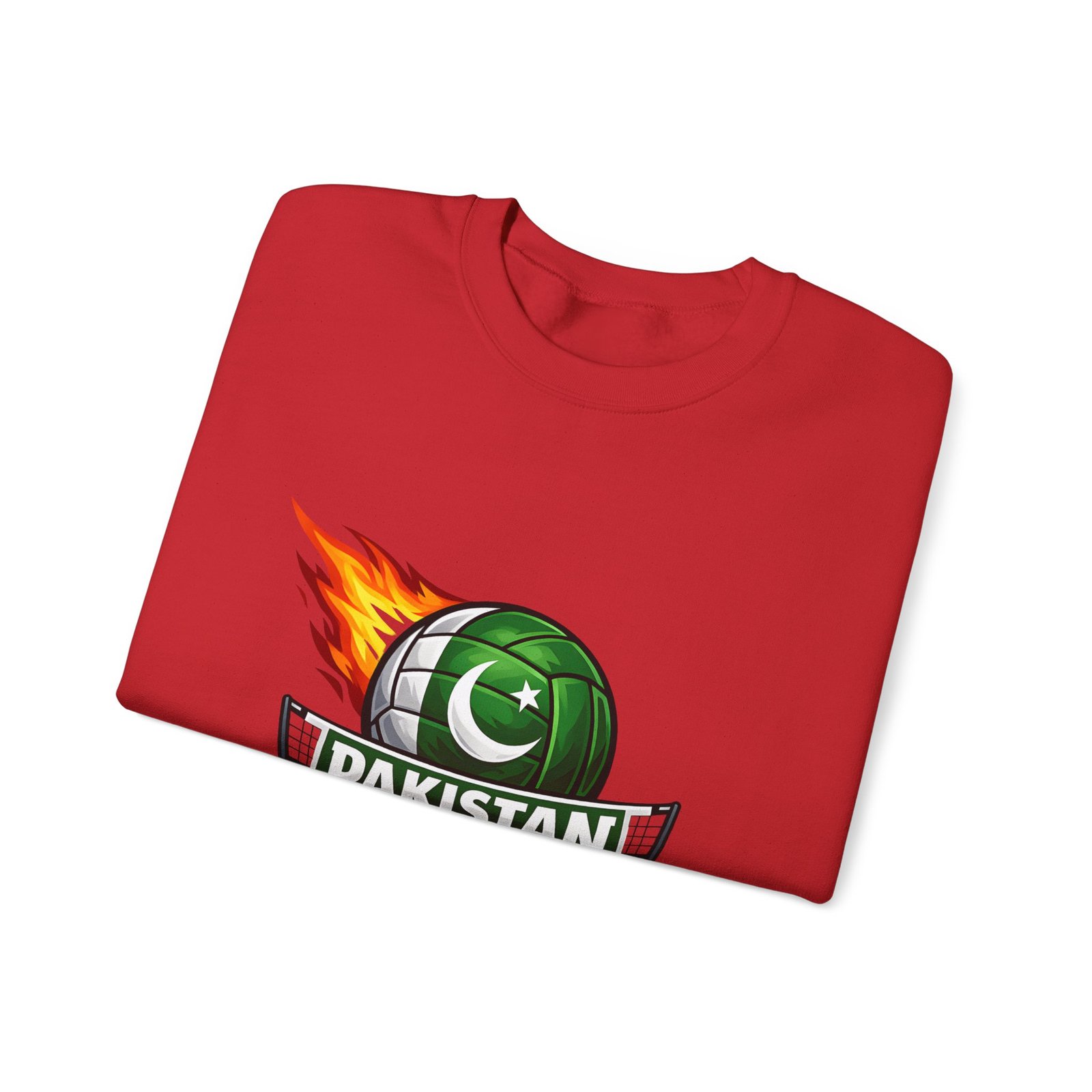Carry the energy of the game and the pride of Pakistan in a soft, dependable sweatshirt. This medium-heavy crewneck wraps you in warmth without feeling bulky. A bold volleyball emblem — a green ball marked with the crescent and star and a streak of flame — sits at the chest, announcing team spirit and movement. Wear it to morning practices, spirited watch parties, or low-key city strolls. The classic cut layers easily over tees and hoodies. Attention to detail shows in the ribbed collar, durable double-needle stitching, and tear-away label that keeps the neck comfortable. It’s built to move with you, season after season.