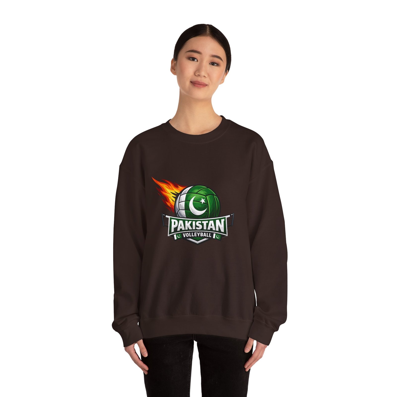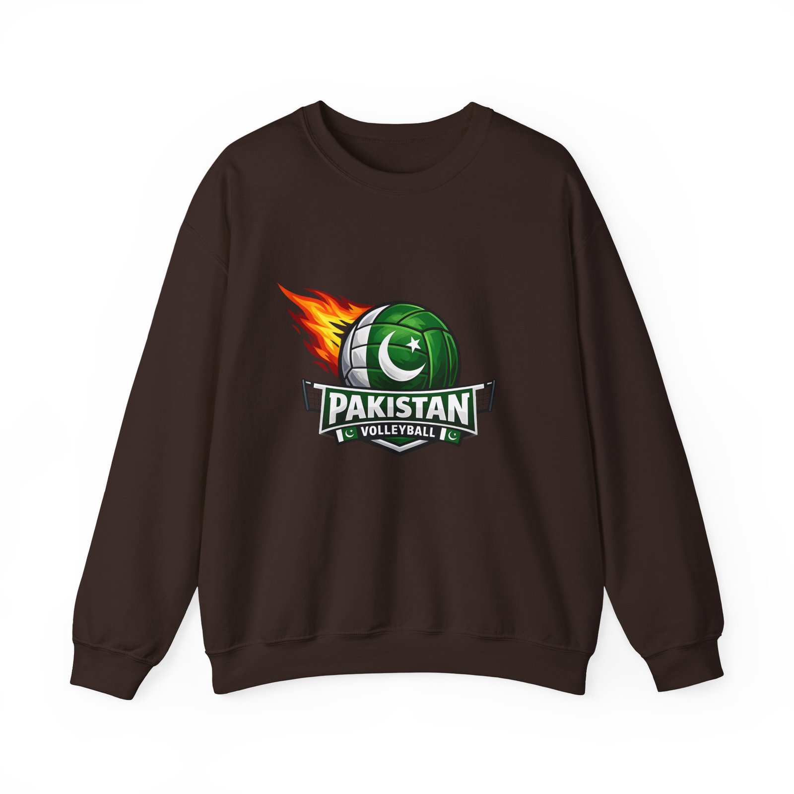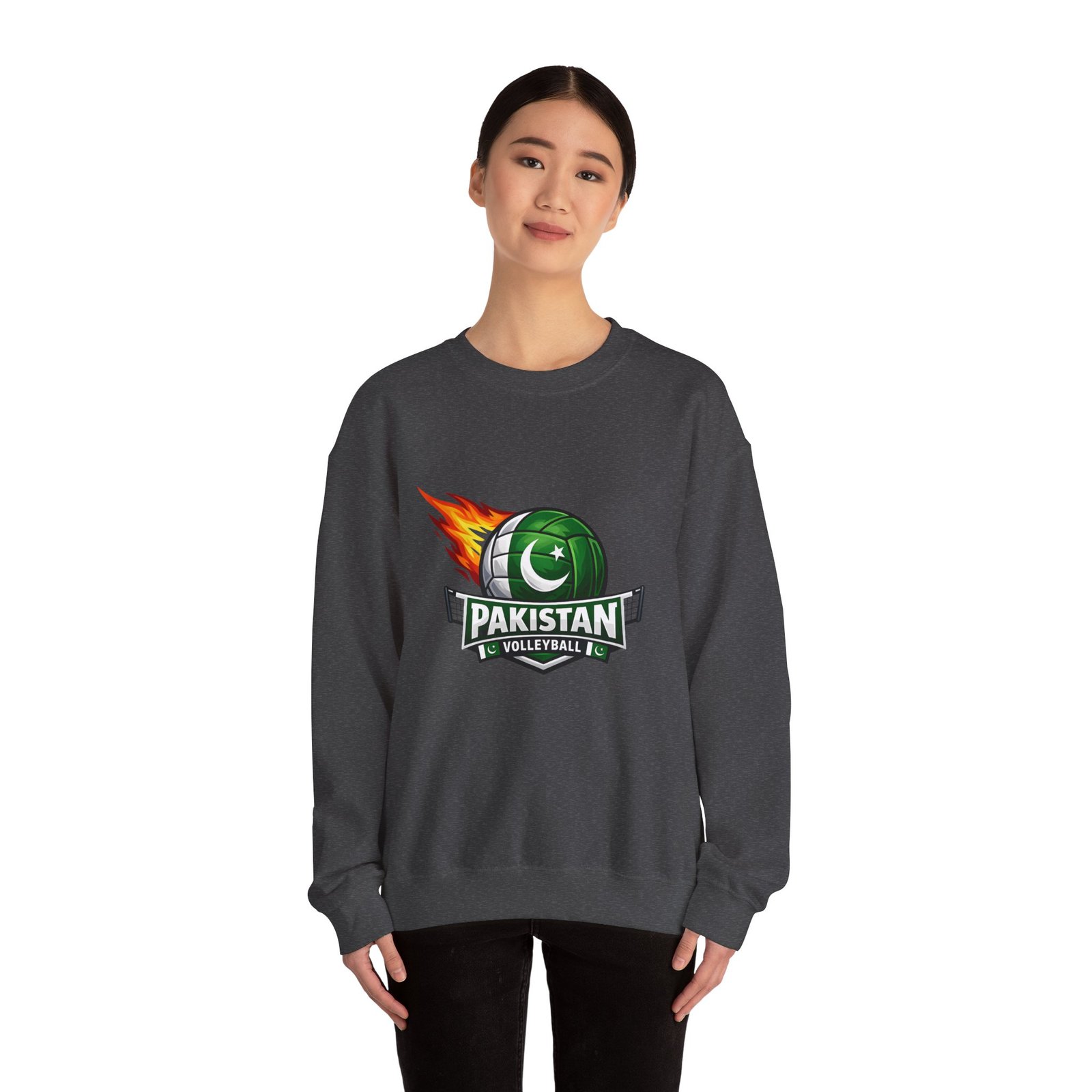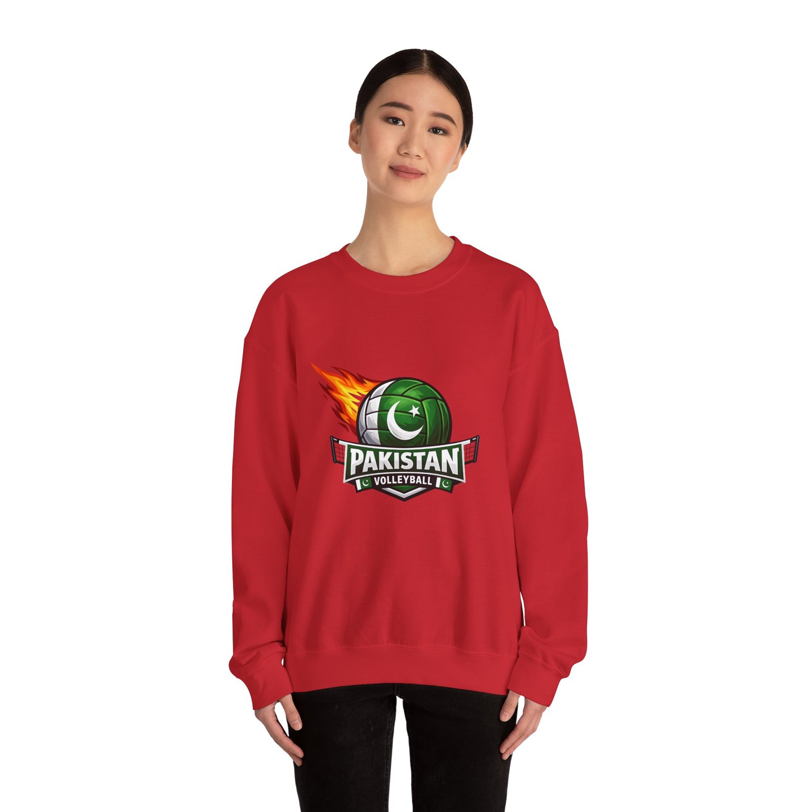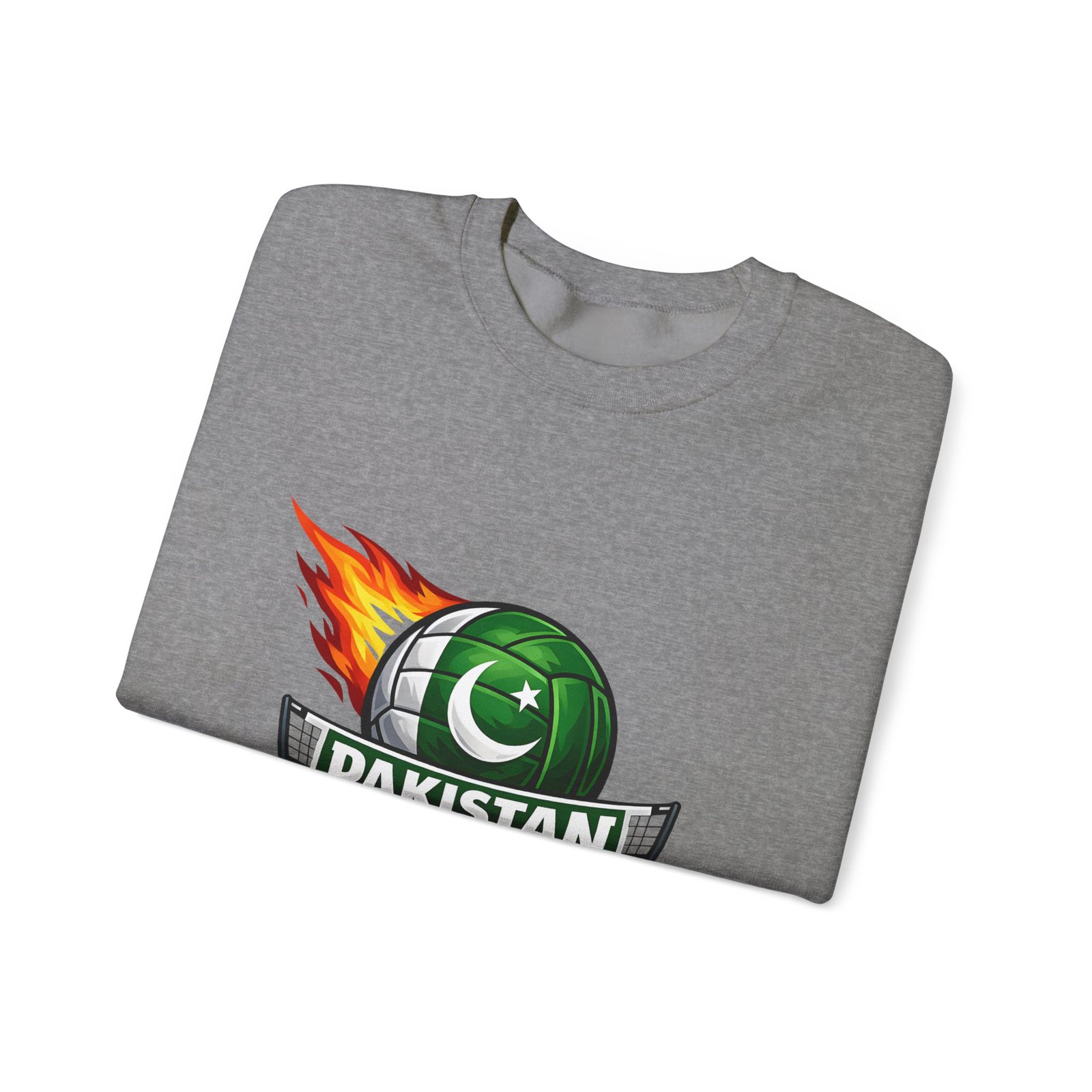 Carry the energy of the game and the pride of Pakistan in a soft, dependable sweatshirt. This medium-heavy crewneck wraps you in warmth without feeling bulky. A bold volleyball emblem — a green ball marked with the crescent and star and a streak of flame — sits at the chest, announcing team spirit and movement. Wear it to morning practices, spirited watch parties, or low-key city strolls. The classic cut layers easily over tees and hoodies. Attention to detail shows in the ribbed collar, durable double-needle stitching, and tear-away label that keeps the neck comfortable. It’s built to move with you, season after season.