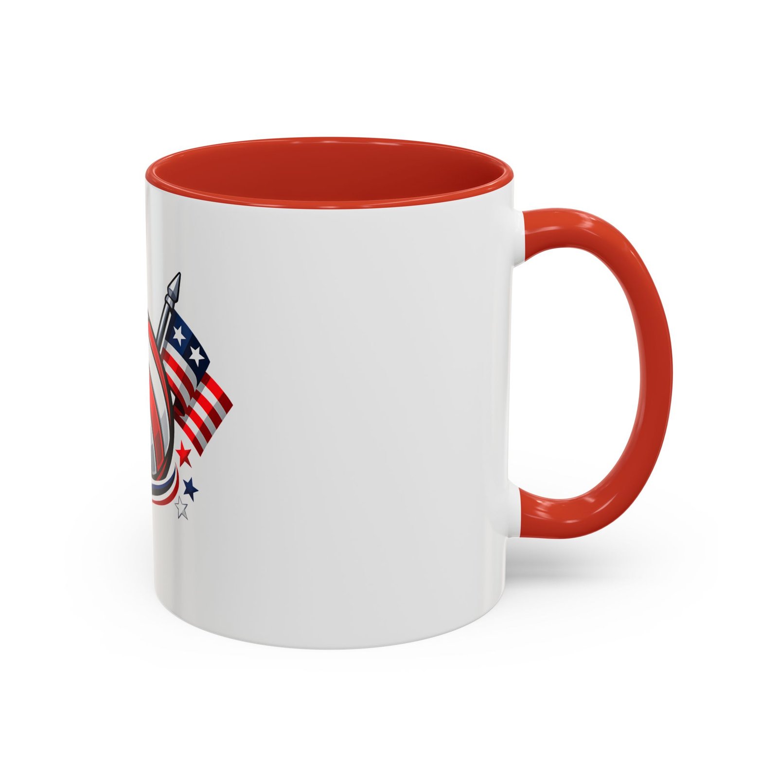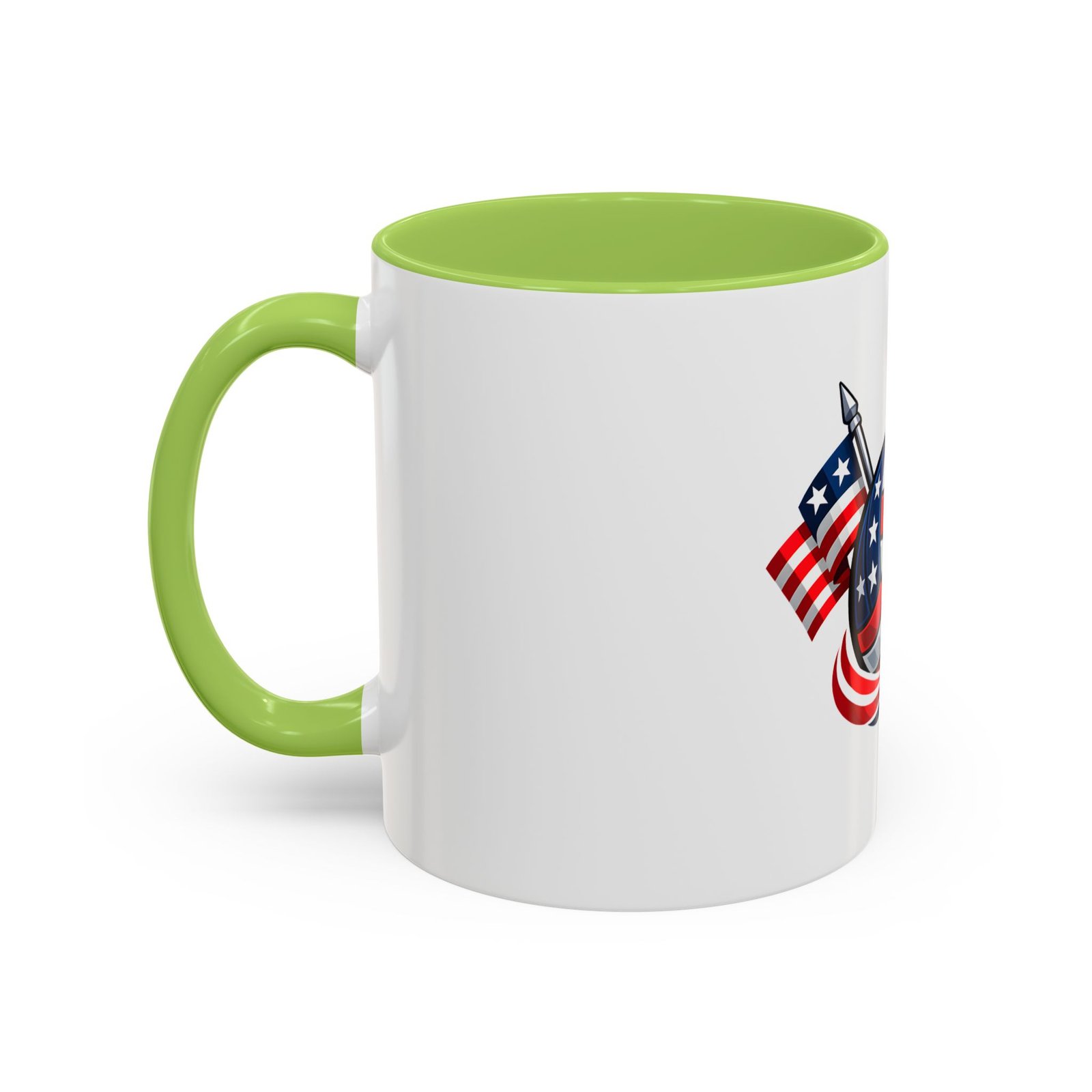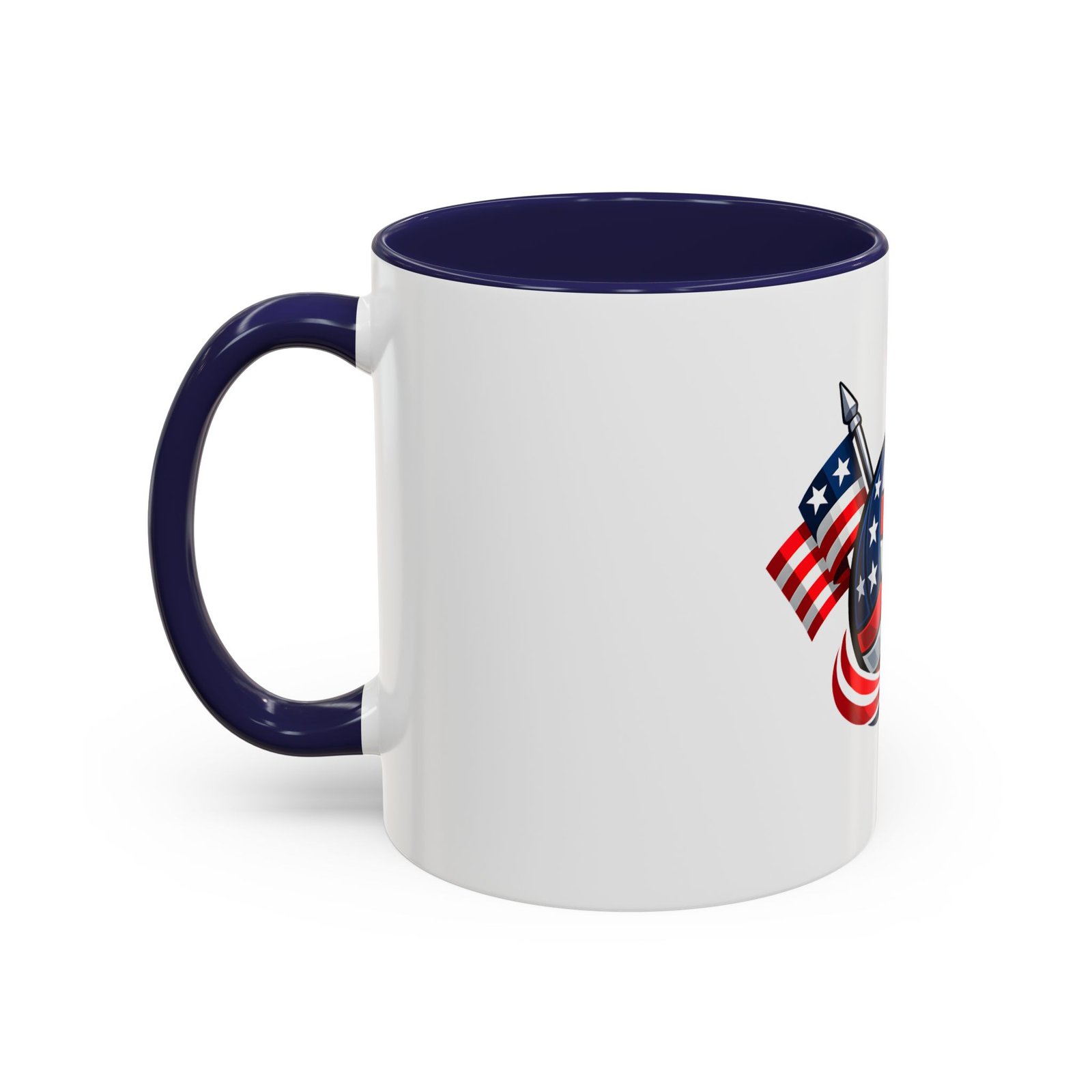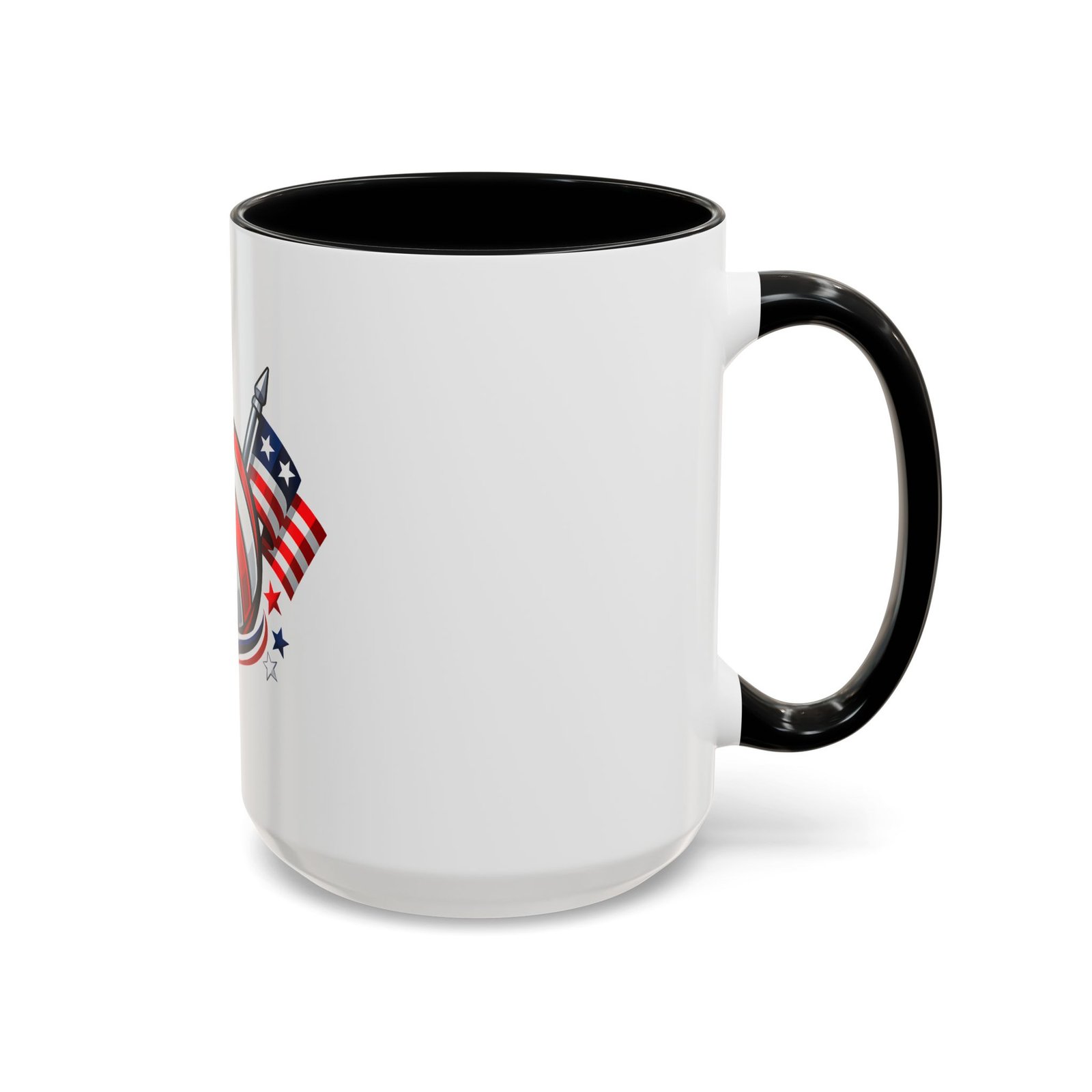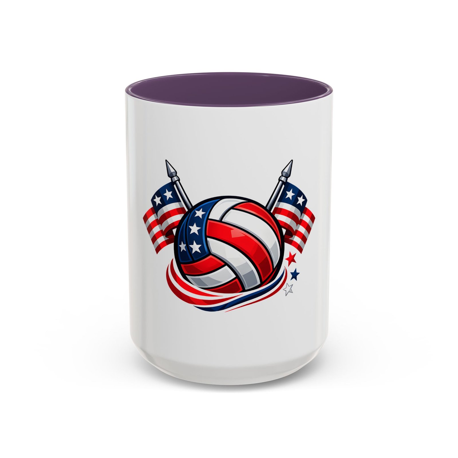 Bright morning energy wrapped in red, white, and blue. This ceramic coffee mug pairs a glossy black interior and handle with a bold patriotic volleyball illustration — stars and stripes woven into the ball with two flags behind it. It feels lively on the counter and confident in your hands: the C-shaped handle gives a familiar grip while the glossy finish makes the colors pop. Use it to celebrate match mornings, team rallies, or quiet moments of pride between practices.