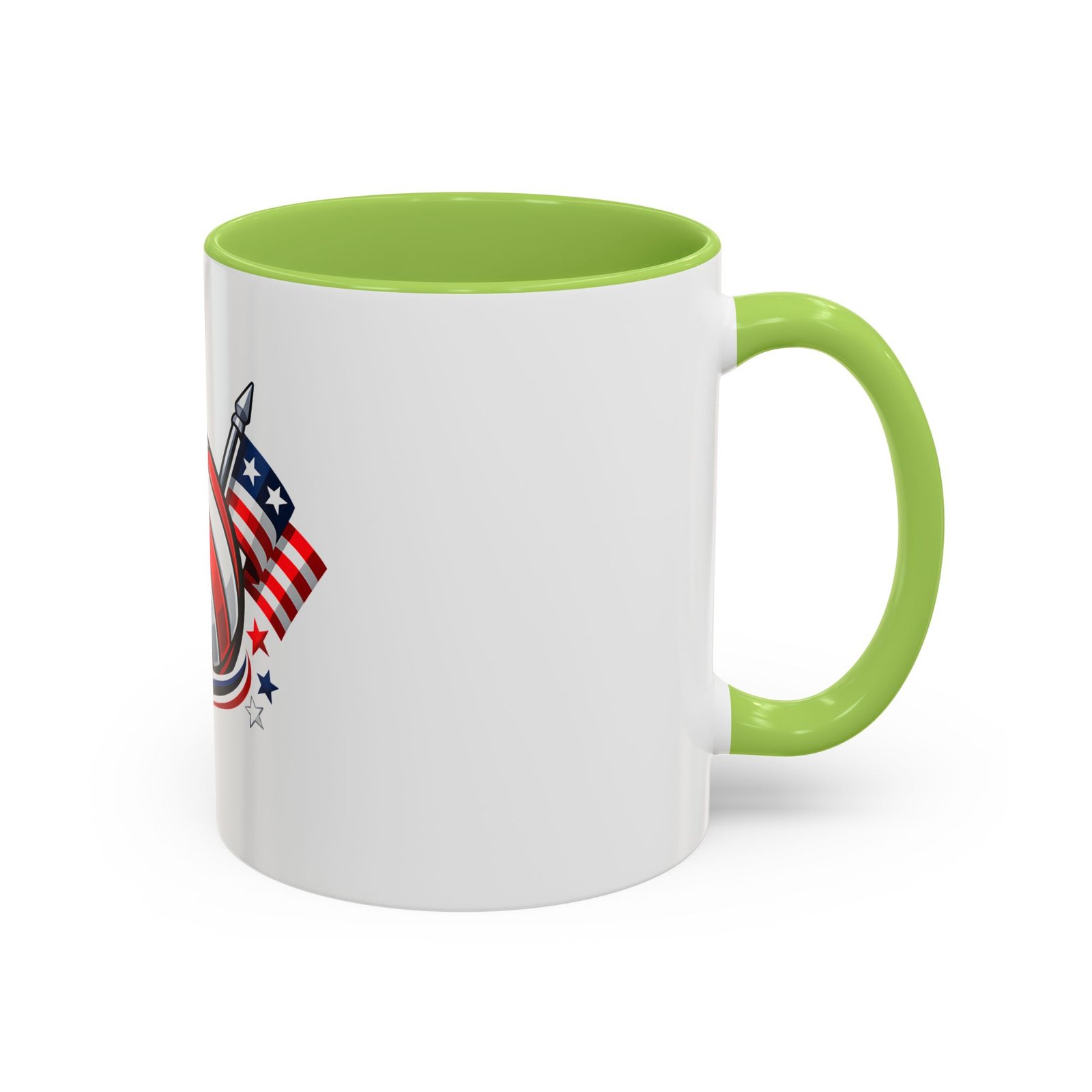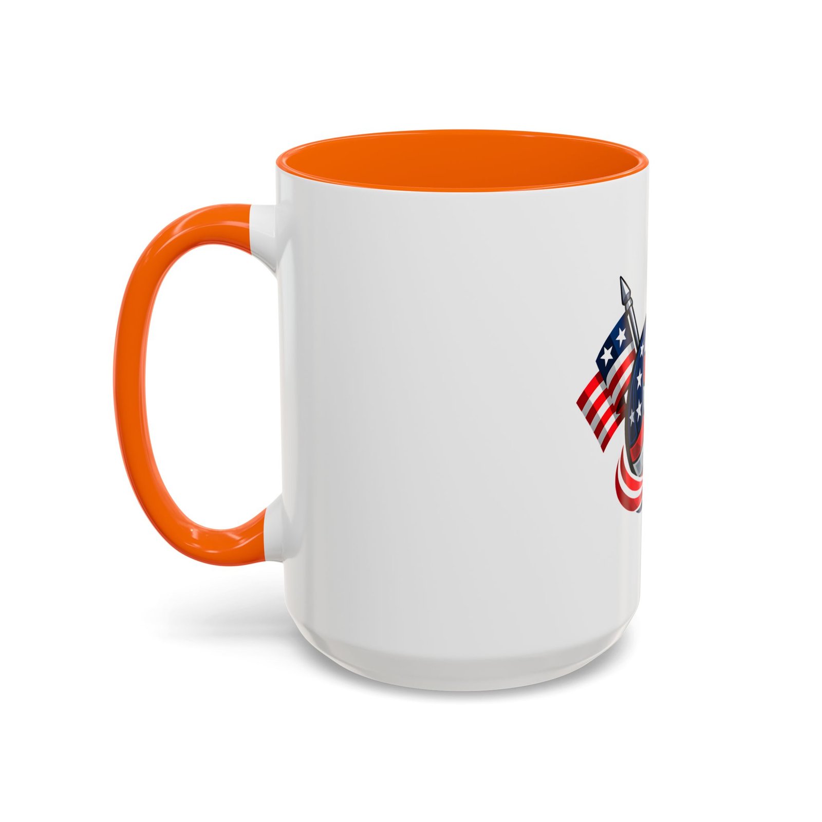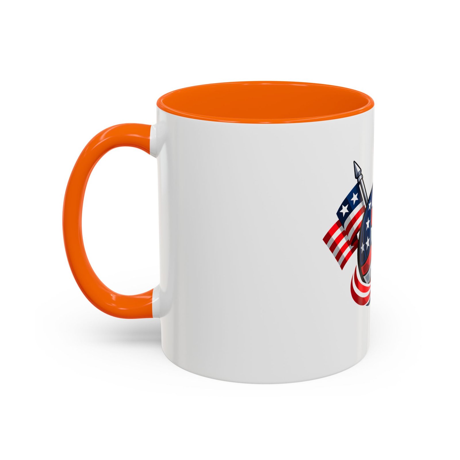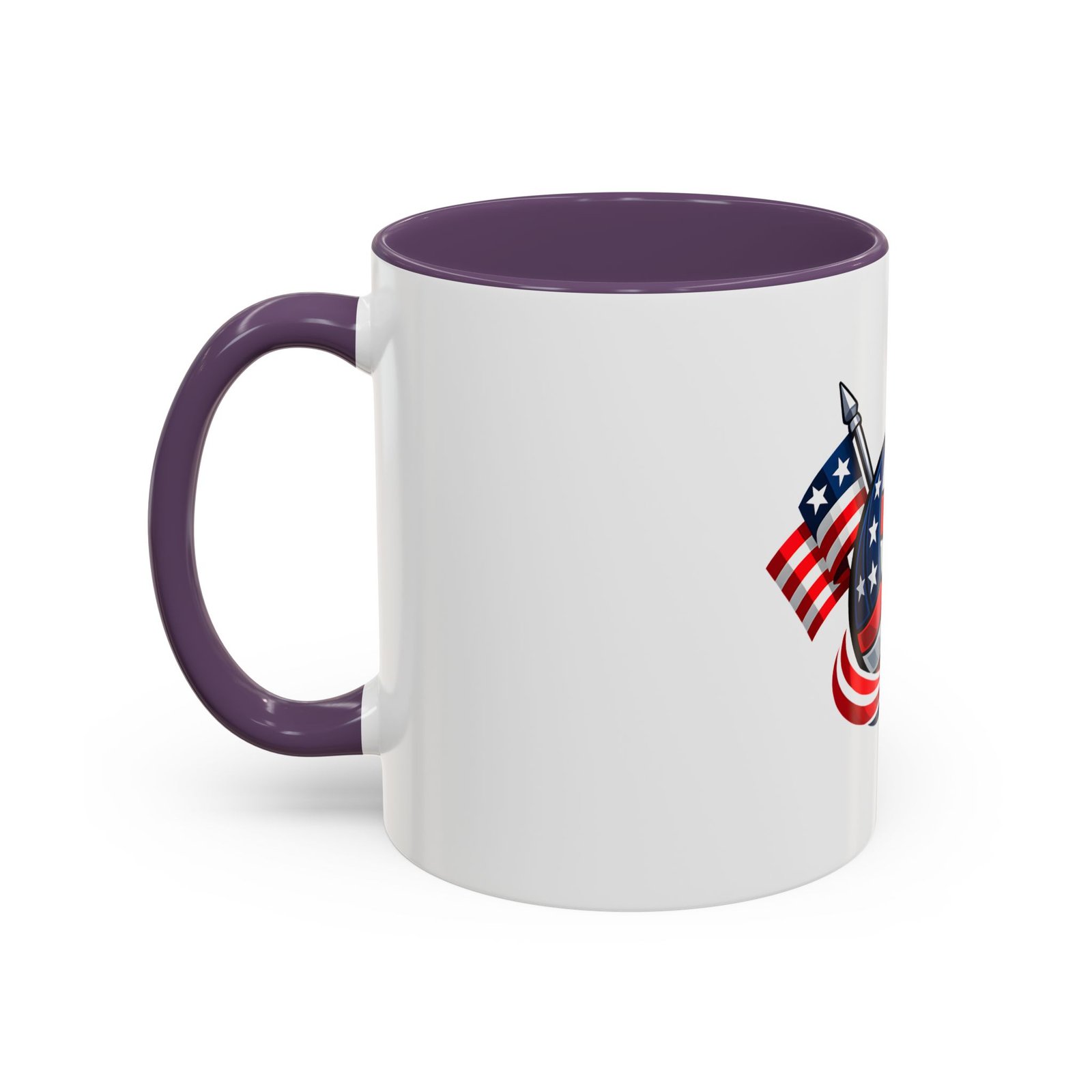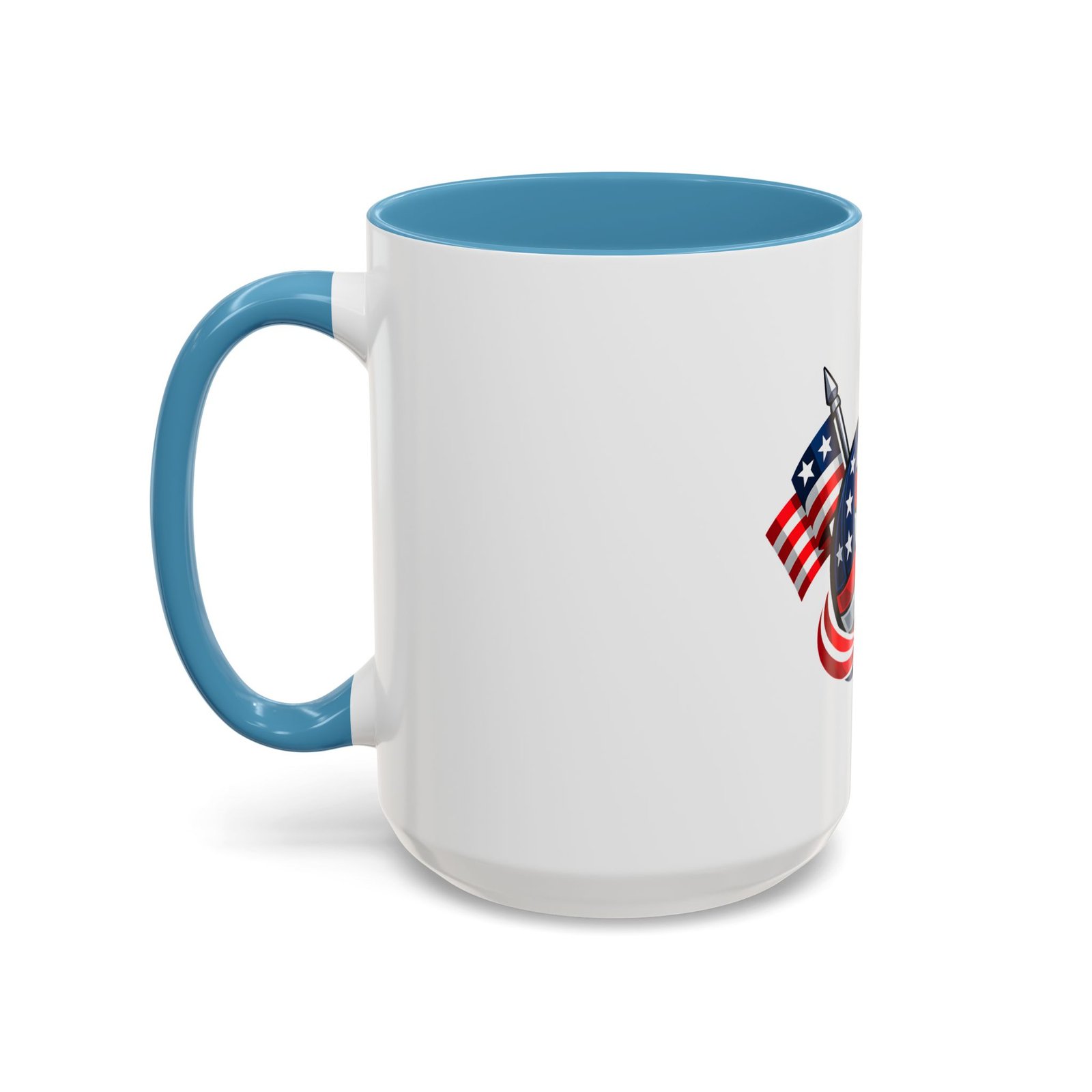 Bright morning energy wrapped in red, white, and blue. This ceramic coffee mug pairs a glossy black interior and handle with a bold patriotic volleyball illustration — stars and stripes woven into the ball with two flags behind it. It feels lively on the counter and confident in your hands: the C-shaped handle gives a familiar grip while the glossy finish makes the colors pop. Use it to celebrate match mornings, team rallies, or quiet moments of pride between practices.