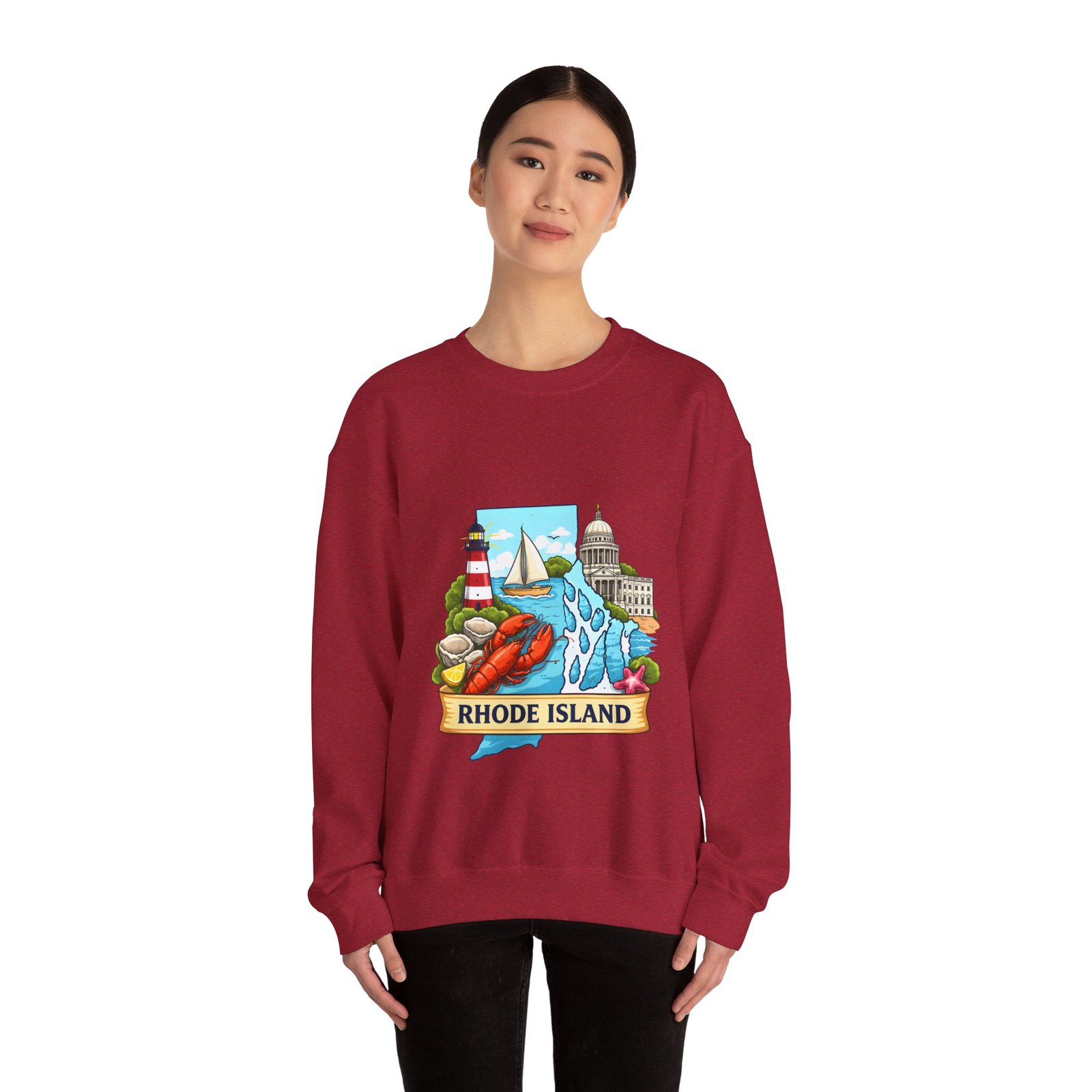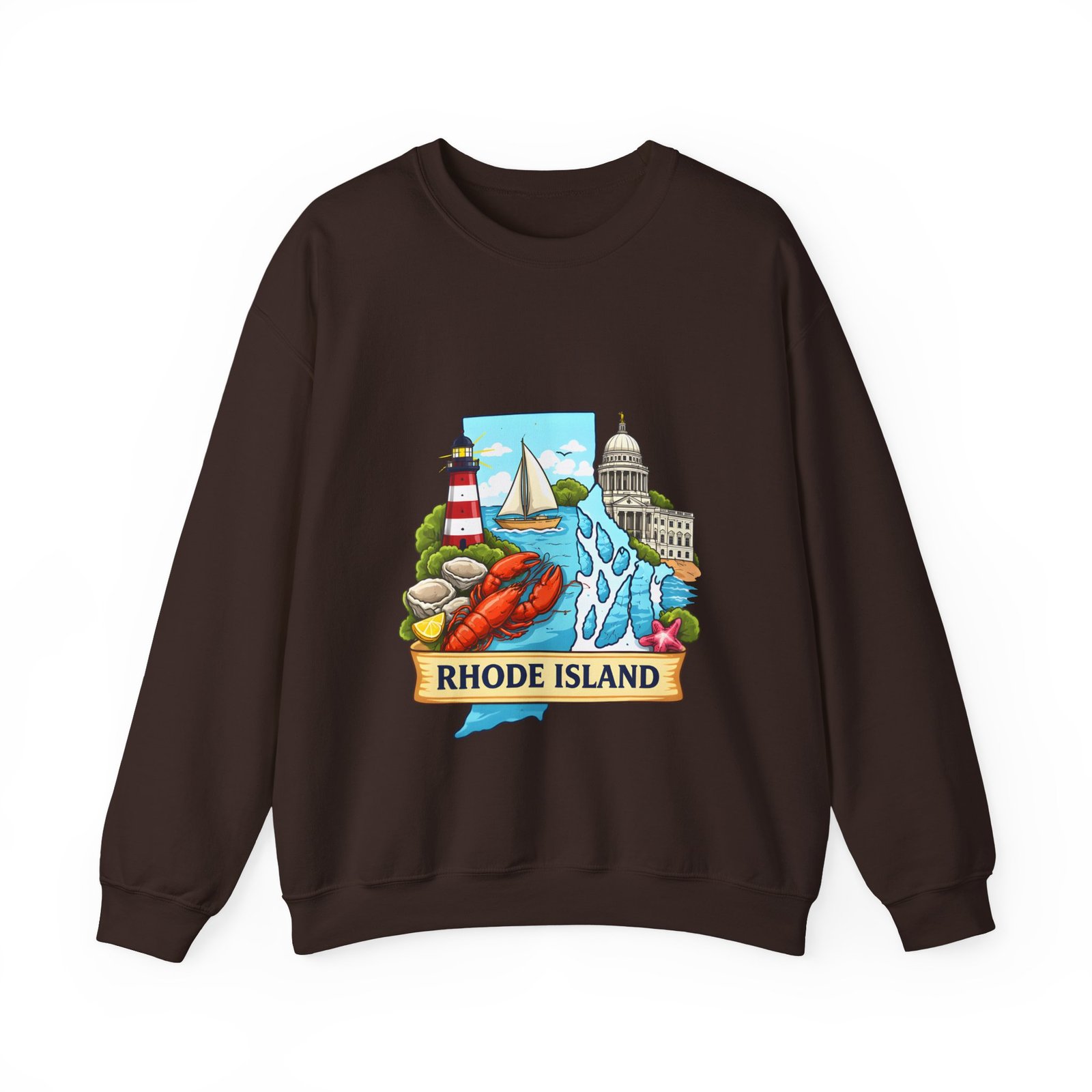 Rhode Island Scenic Crewneck Sweatshirt - Coastal Lighthouse, Sailboat & Capitol DesignRhode Island Scenic Crewneck Sweatshirt – Coastal Lighthouse, Sailboat & Capitol Design