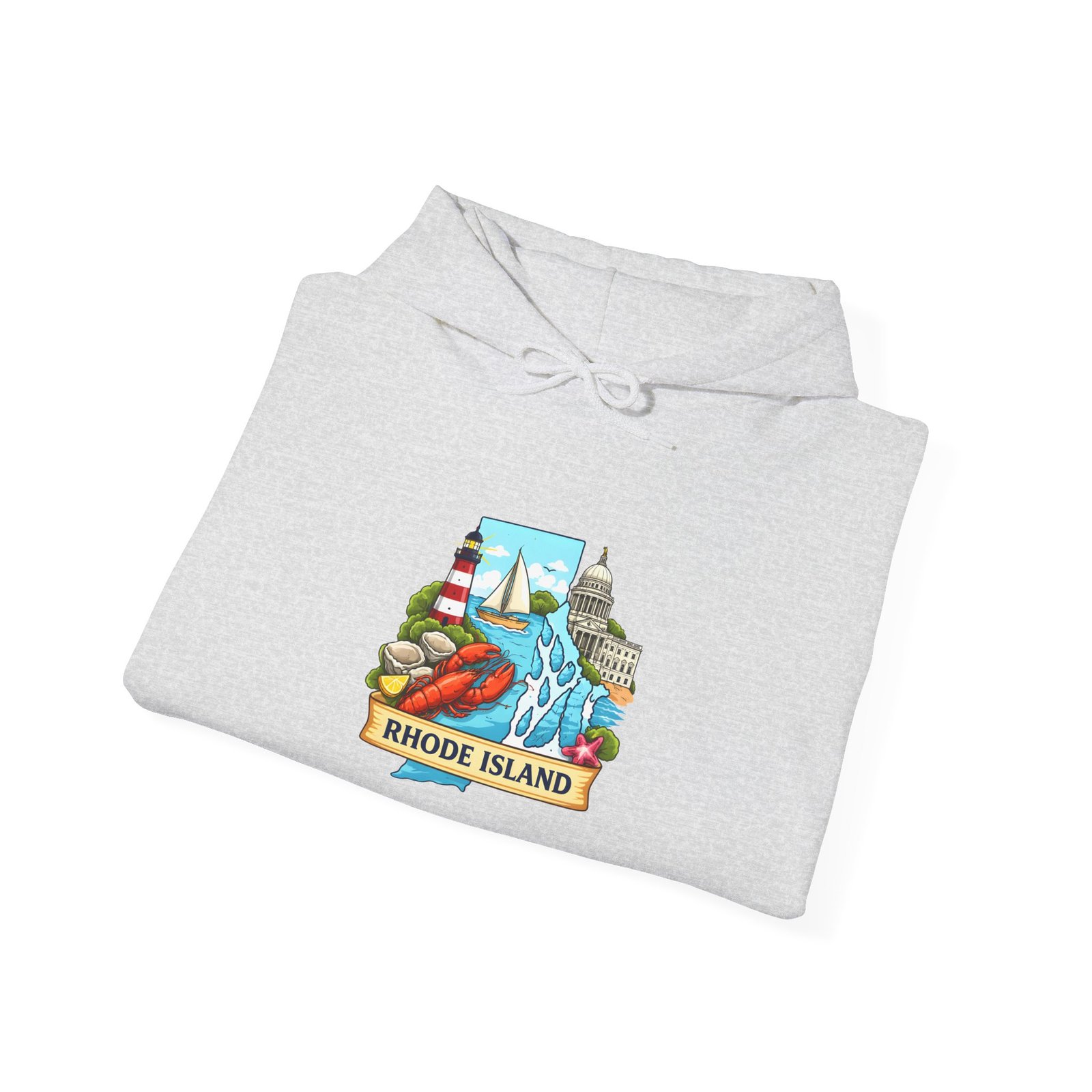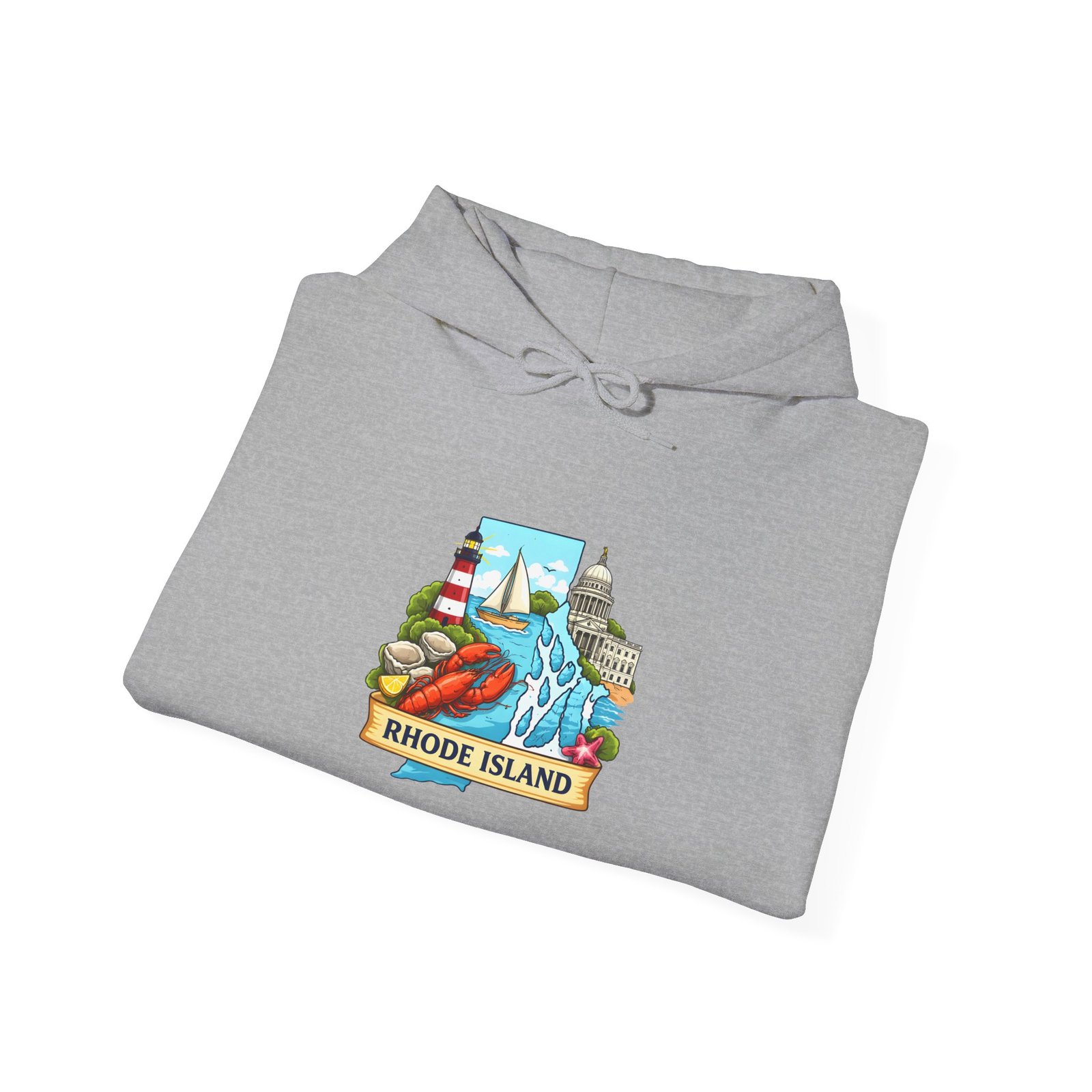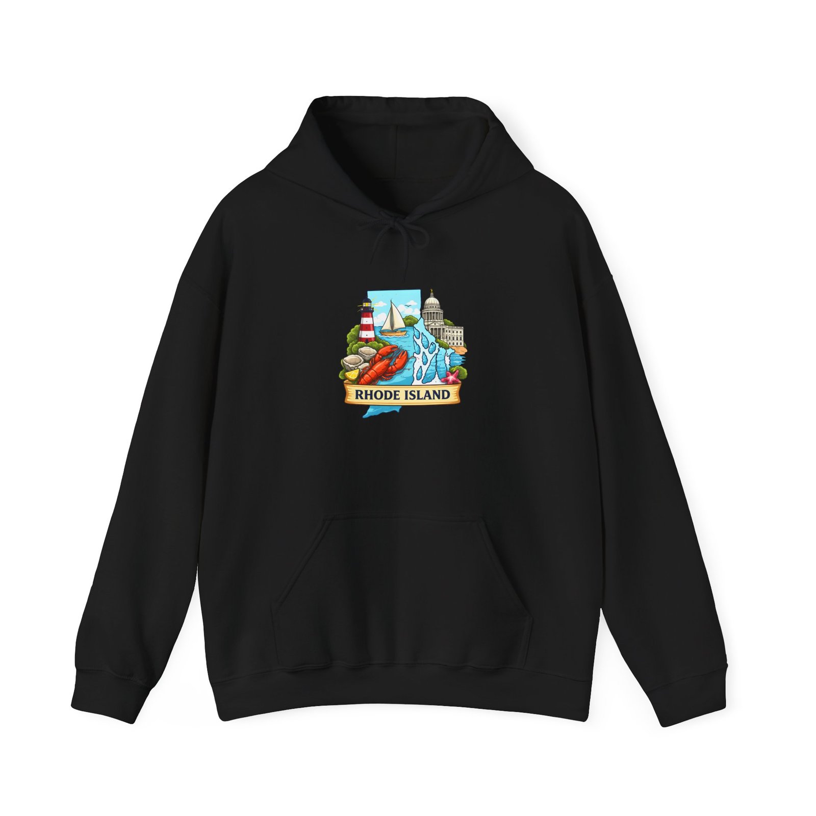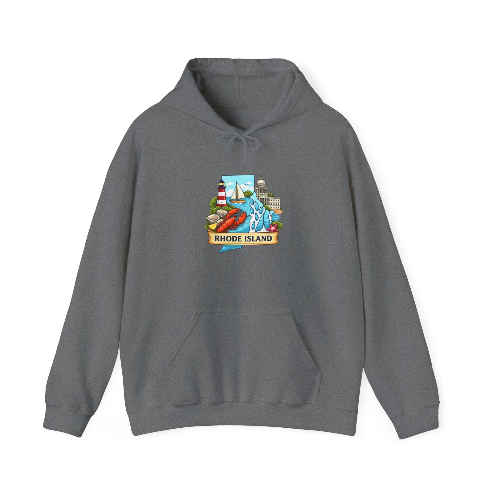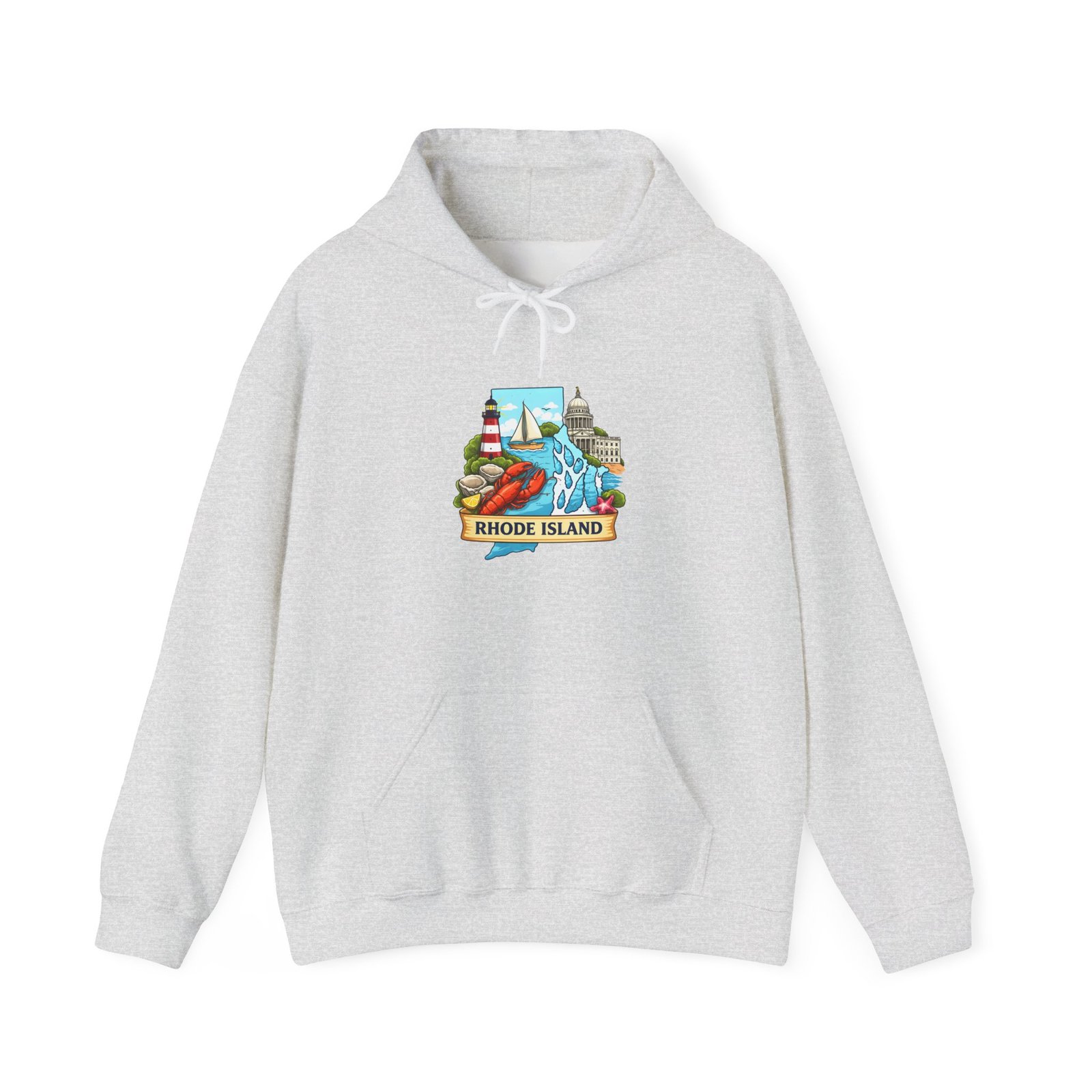This cozy hooded sweatshirt carries a small, vibrant Rhode Island scene right over the heart — lighthouses, waves, and a sunlit shoreline rendered in cheerful, vintage-inspired colors. It’s the kind of sweatshirt you pull on for an early morning coffee run, a foggy beach walk, or when you want to feel quietly rooted to the coast. The medium-heavy 50/50 cotton-poly blend gives a soft, warm hug without feeling bulky. A double-lined hood and color-matched drawcord keep the look clean, while the roomy kangaroo pocket warms chilly hands or holds small essentials. Subtle, high-quality printing keeps the artwork crisp wash after wash; embroidery options are available if you want a textured, heirloom feel.