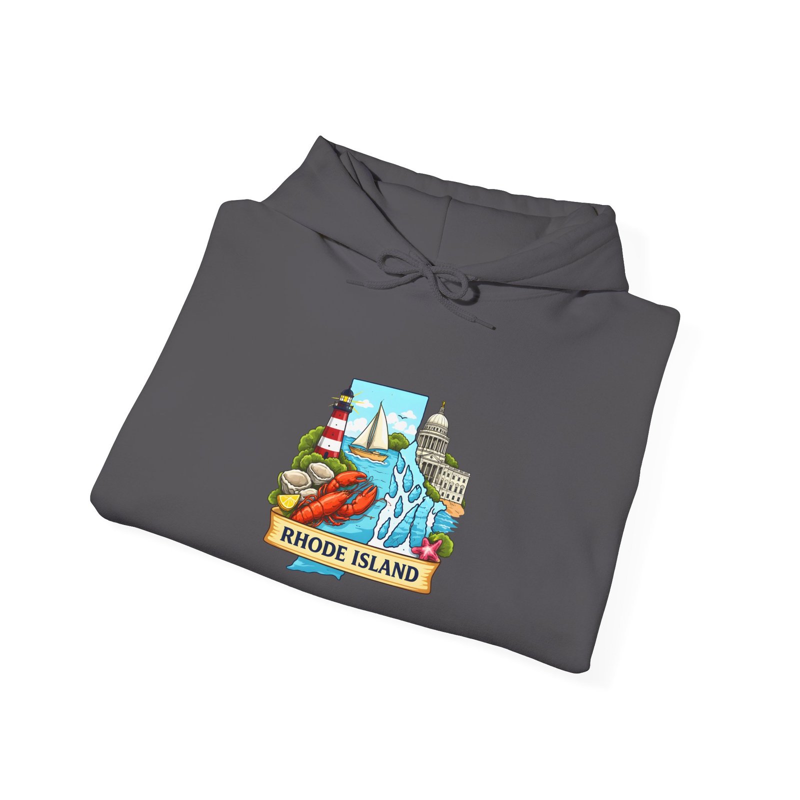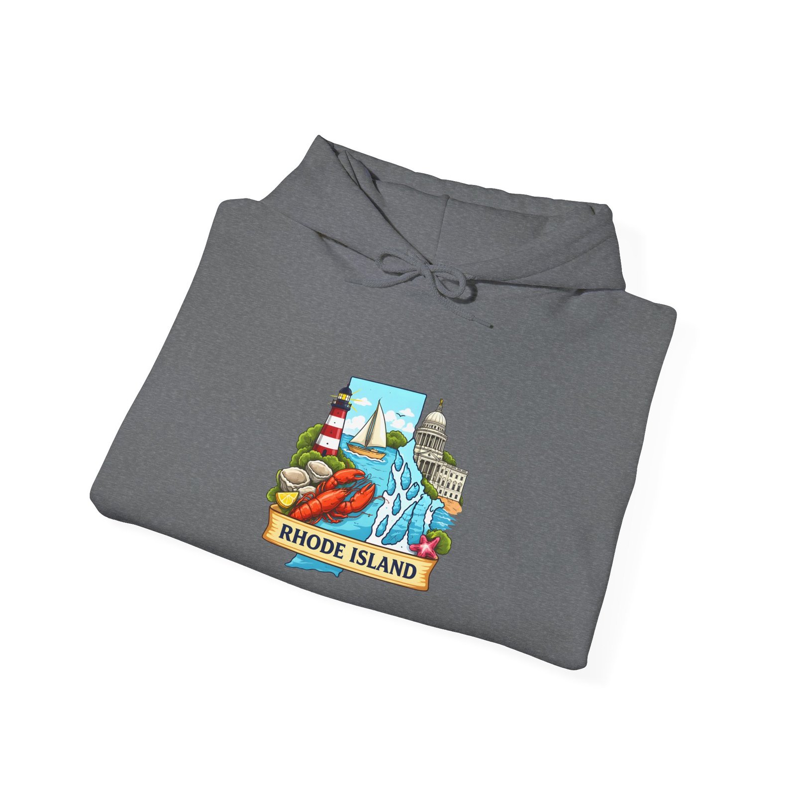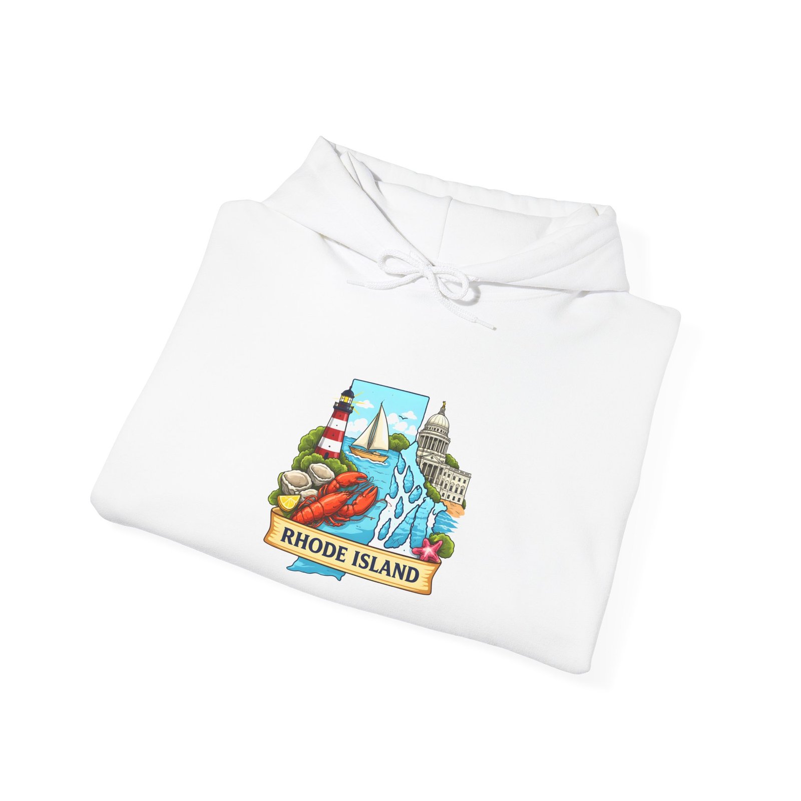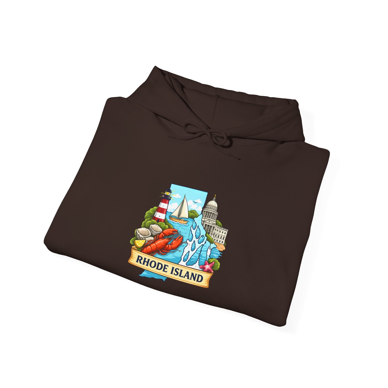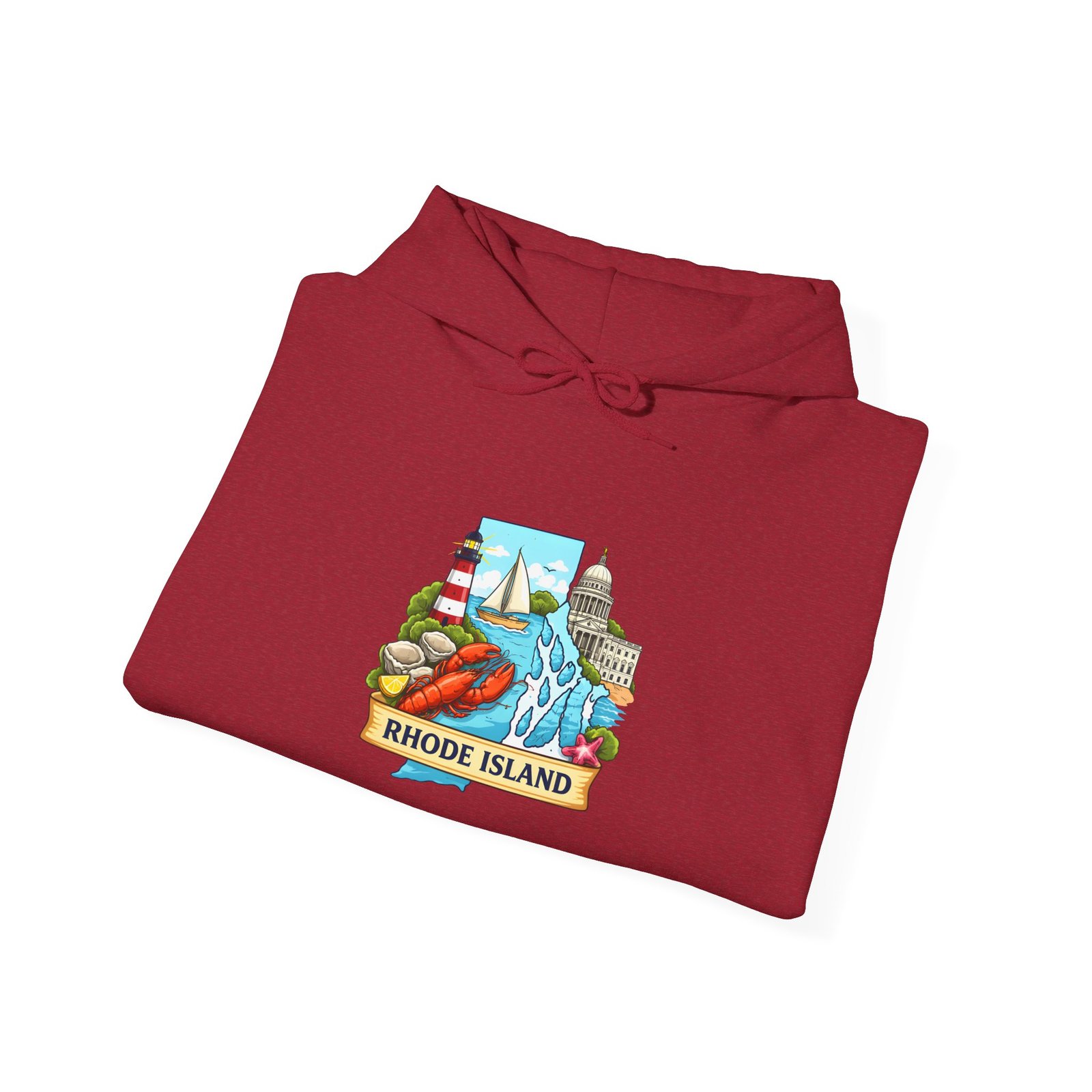 This cozy hooded sweatshirt carries a small, vibrant Rhode Island scene right over the heart — lighthouses, waves, and a sunlit shoreline rendered in cheerful, vintage-inspired colors. It’s the kind of sweatshirt you pull on for an early morning coffee run, a foggy beach walk, or when you want to feel quietly rooted to the coast. The medium-heavy 50/50 cotton-poly blend gives a soft, warm hug without feeling bulky. A double-lined hood and color-matched drawcord keep the look clean, while the roomy kangaroo pocket warms chilly hands or holds small essentials. Subtle, high-quality printing keeps the artwork crisp wash after wash; embroidery options are available if you want a textured, heirloom feel.