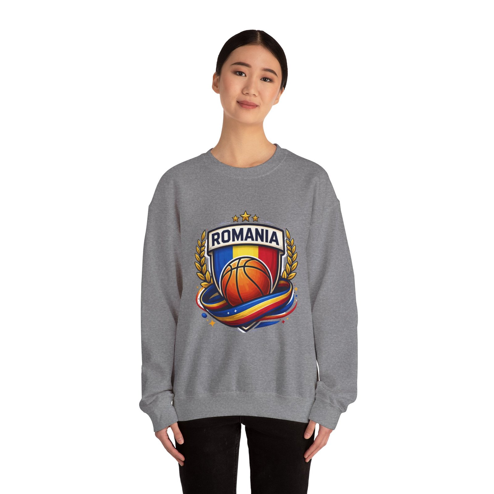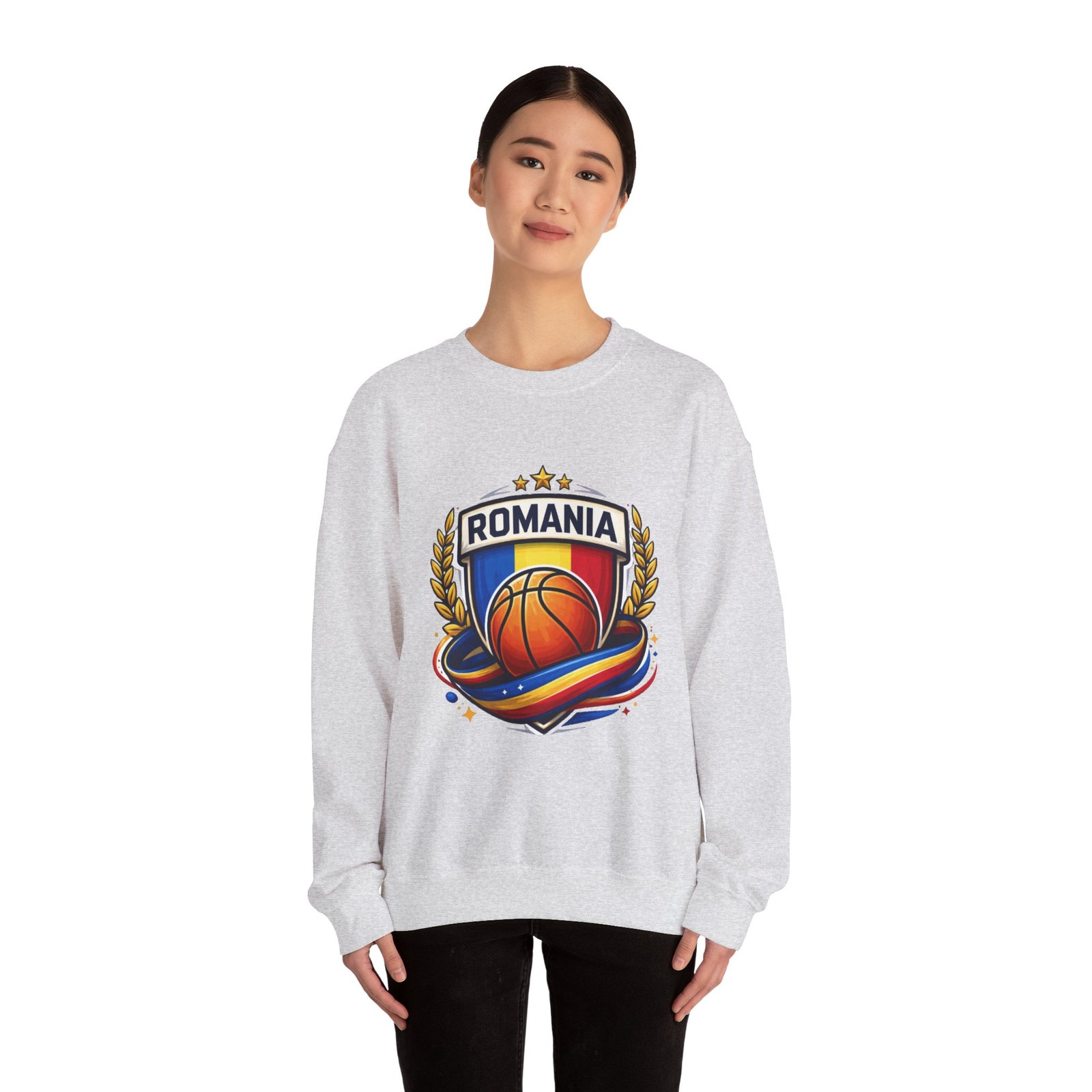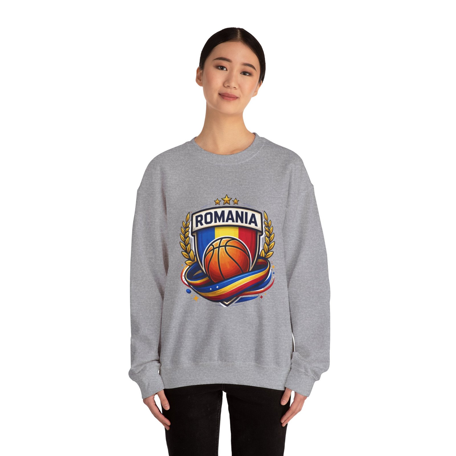 Romania Basketball Crewneck Sweatshirt — Romanian Flag Hoop Team PulloverRomania Basketball Crewneck Sweatshirt — Romanian Flag Hoop Team Pullover