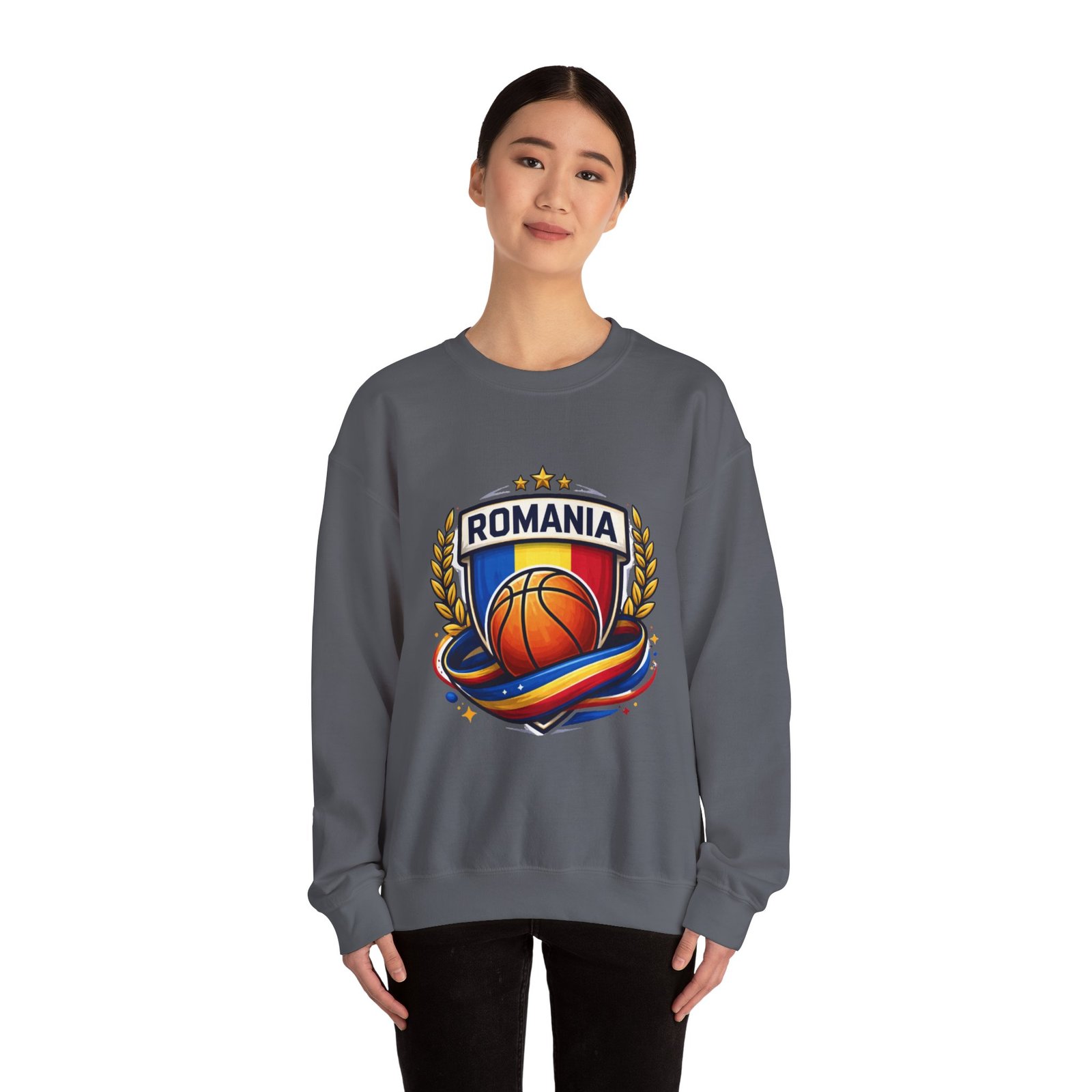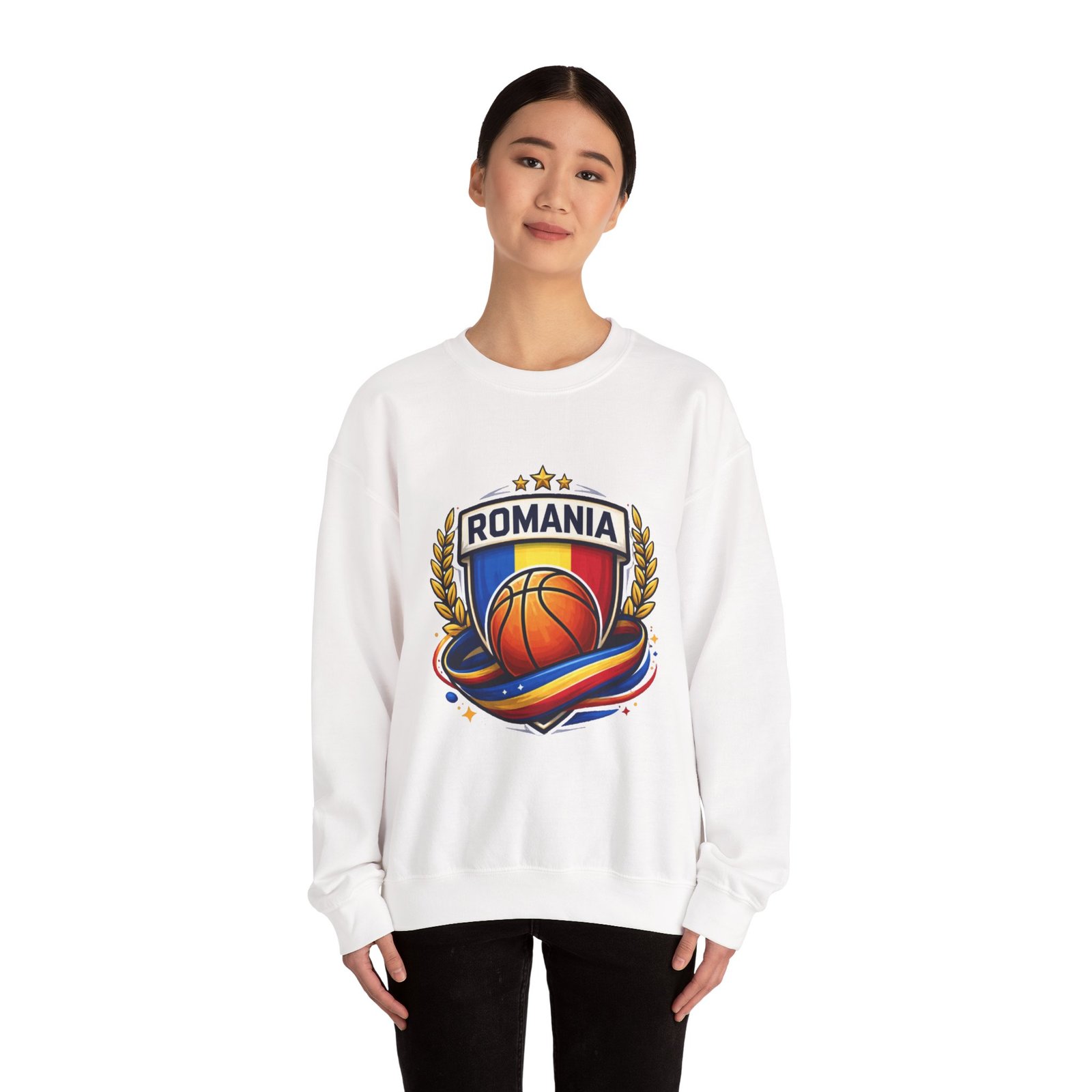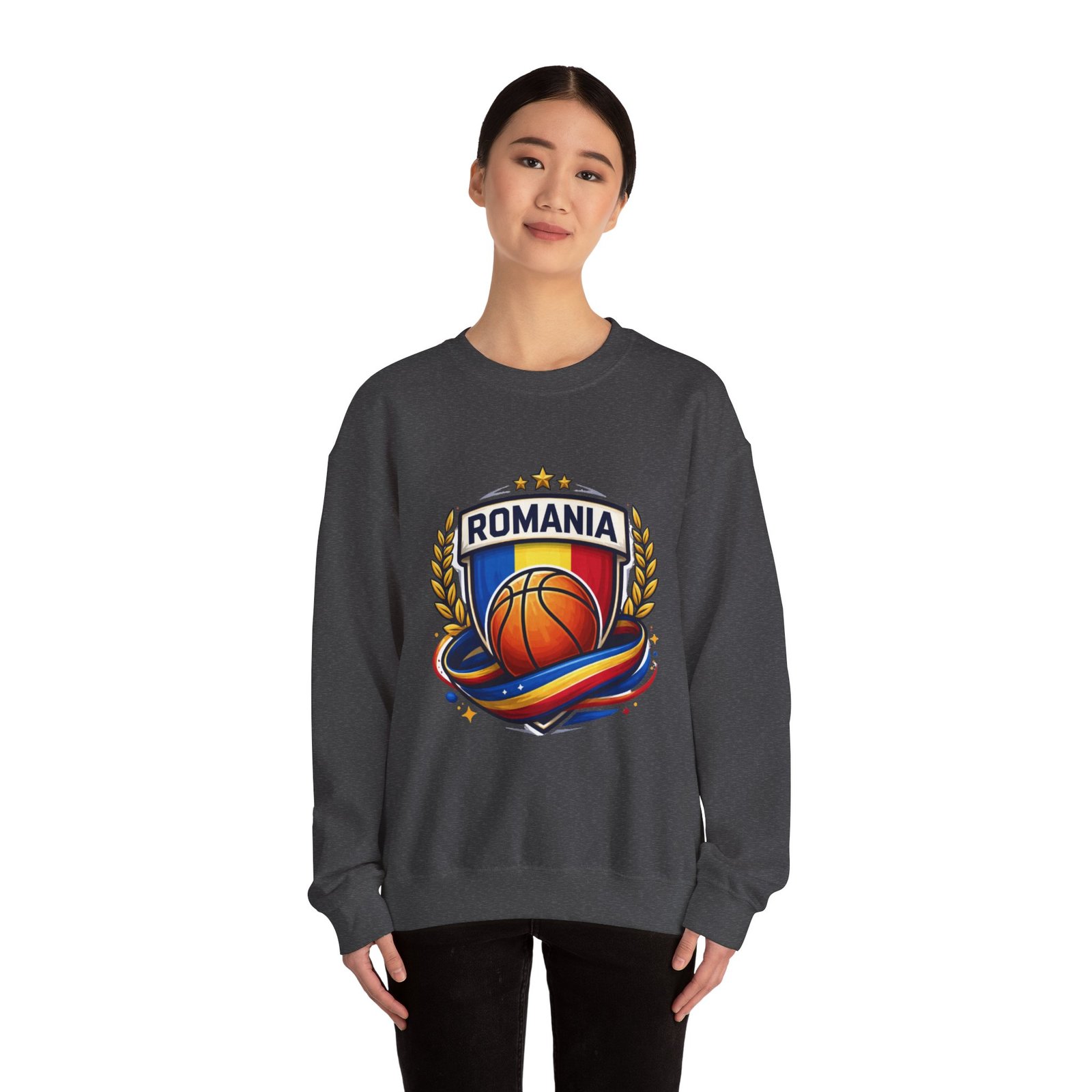 Romania Basketball Crewneck Sweatshirt — Romanian Flag Hoop Team PulloverRomania Basketball Crewneck Sweatshirt — Romanian Flag Hoop Team Pullover