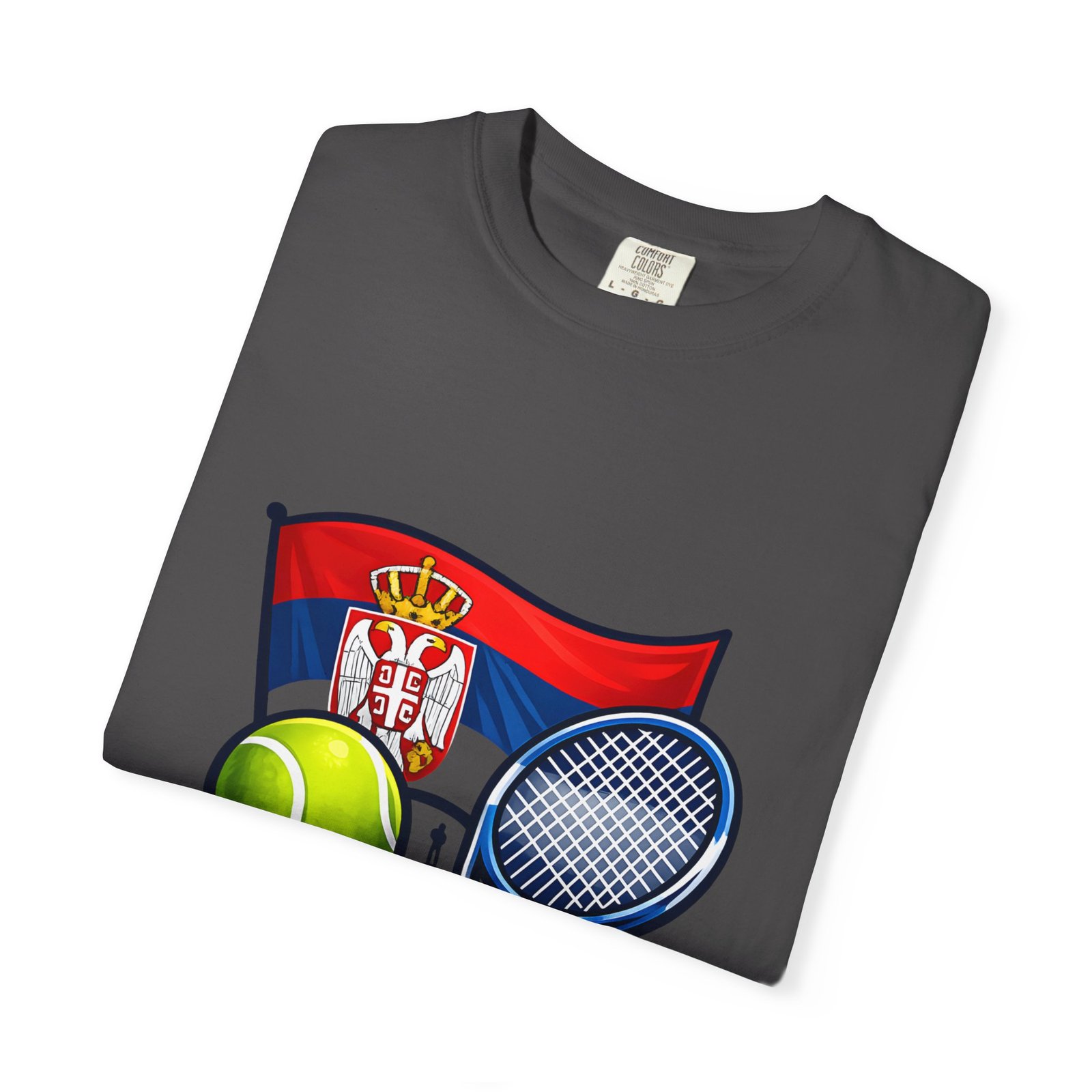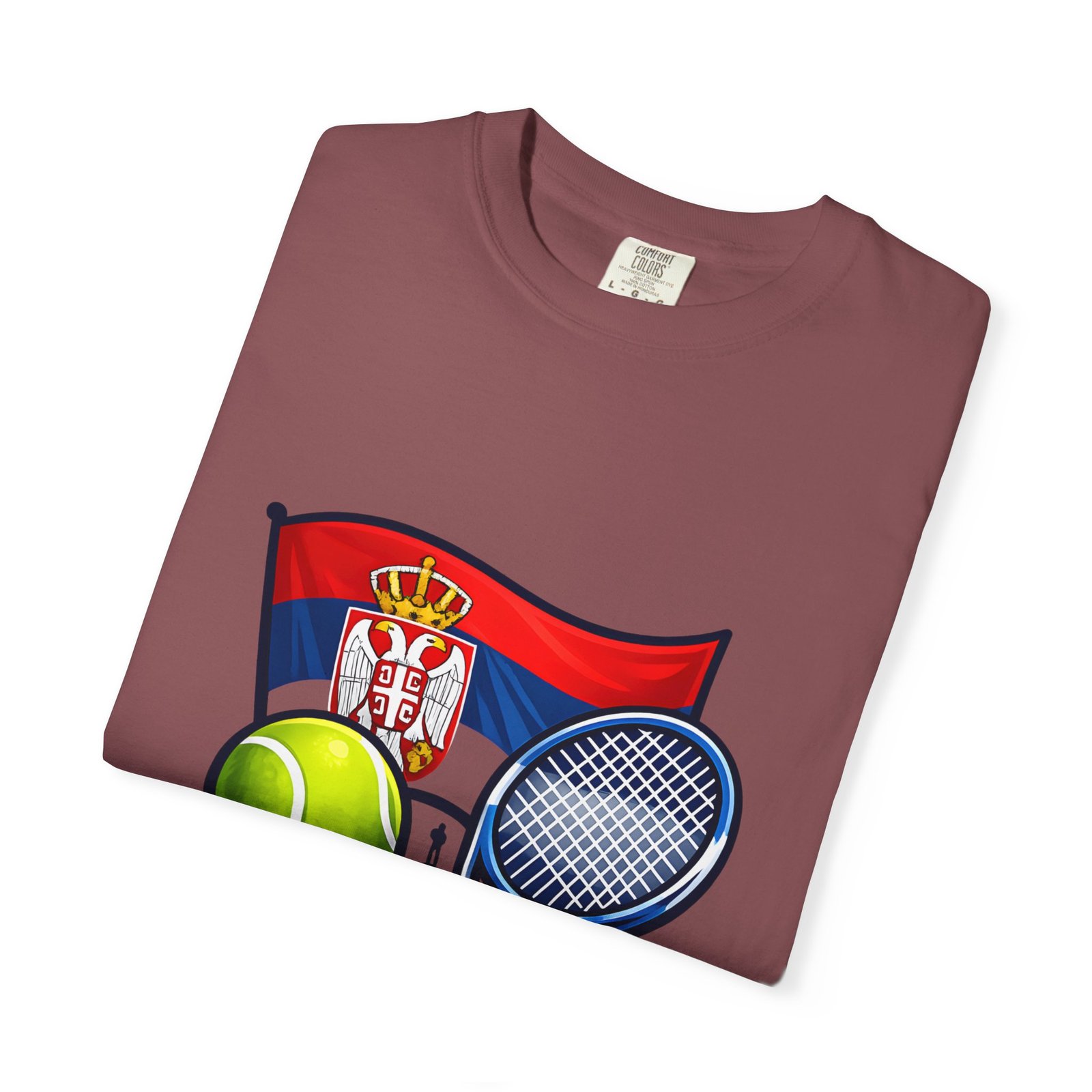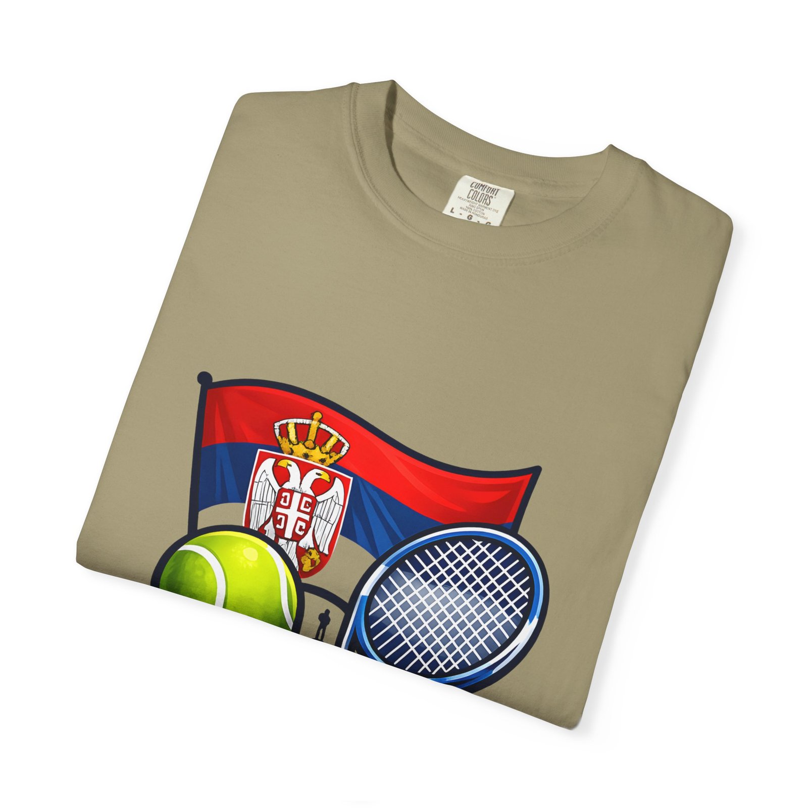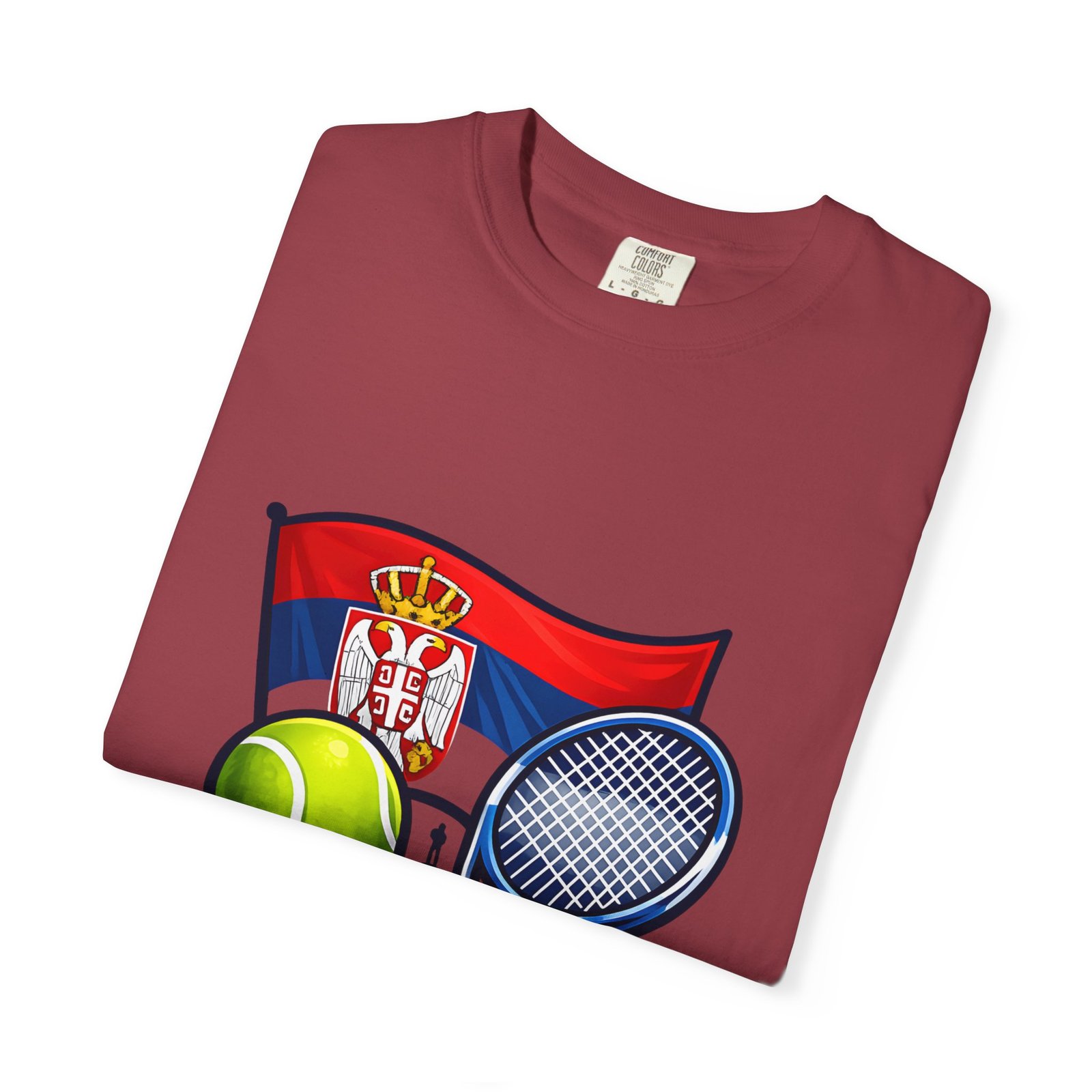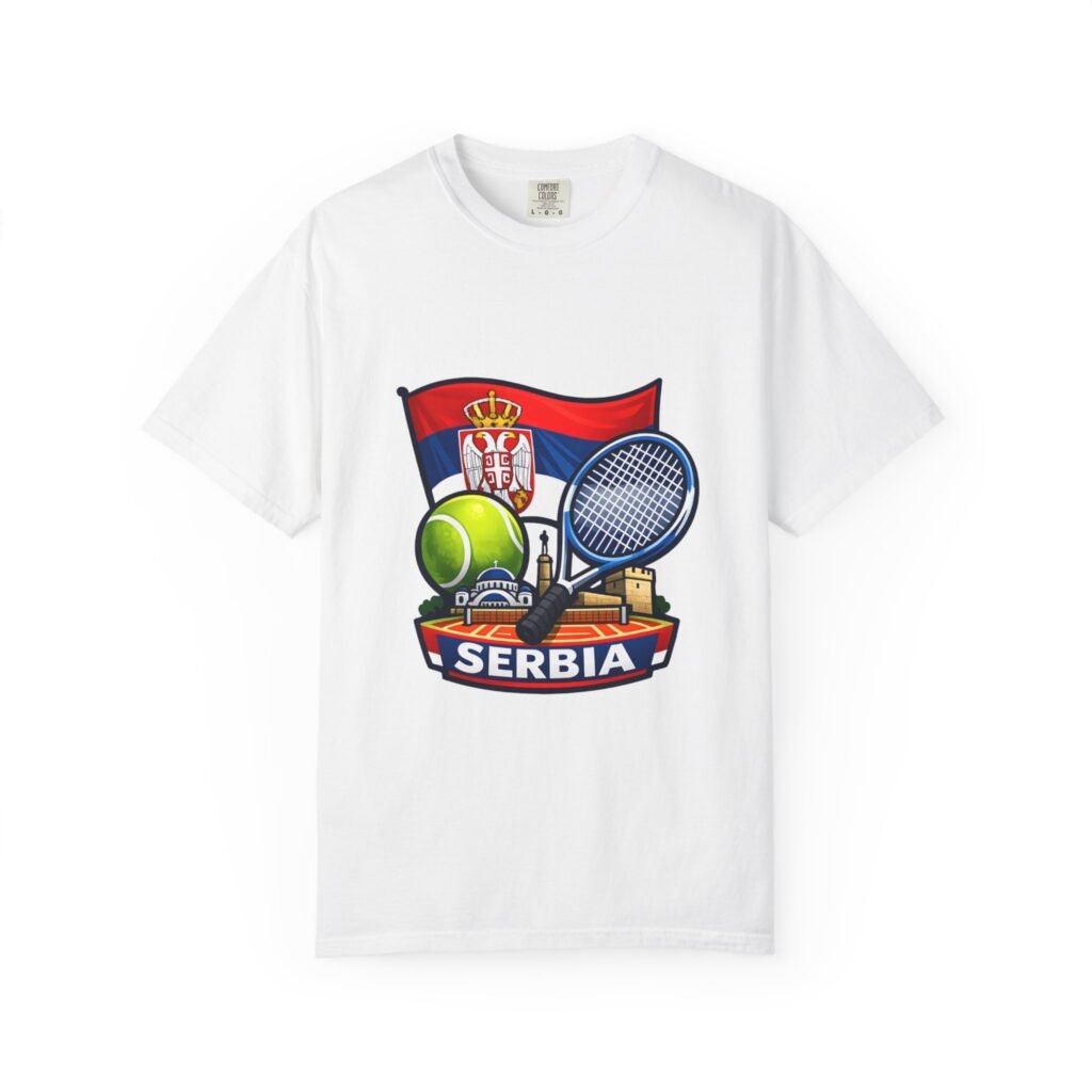 Lightweight yet substantial, this garment-dyed tee carries the quiet comfort of a lived-in favorite and the bold pride of a homeland emblem. The front art blends Serbia’s flag and crest with tennis imagery — rackets, a ball and subtle court details — creating a sporty, national badge you’ll reach for on casual weekends, match days, or when you want to show quiet allegiance. The fabric is soft from garment dyeing, with a relaxed, roomy cut that moves with you. It wears in, not out: colors mellow, seams hold up, and the feel becomes more personal with every wash. Wear it to local tournaments, travel days, or backyard rallies; it sits naturally in an athlete’s rotation or a fan’s everyday lineup.