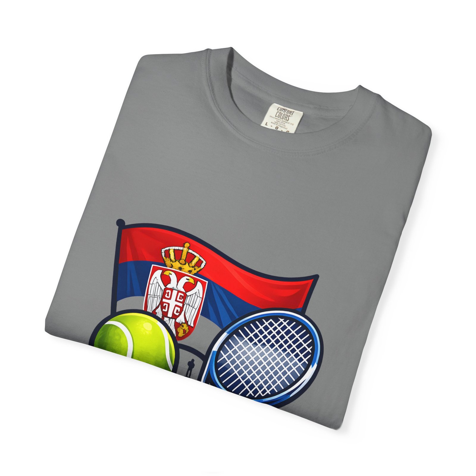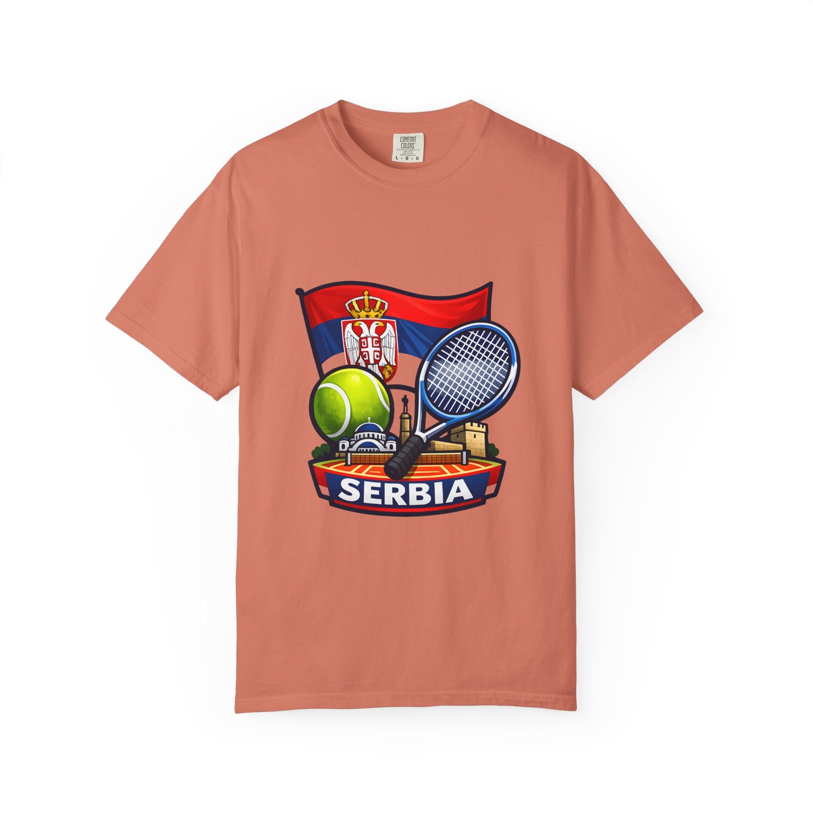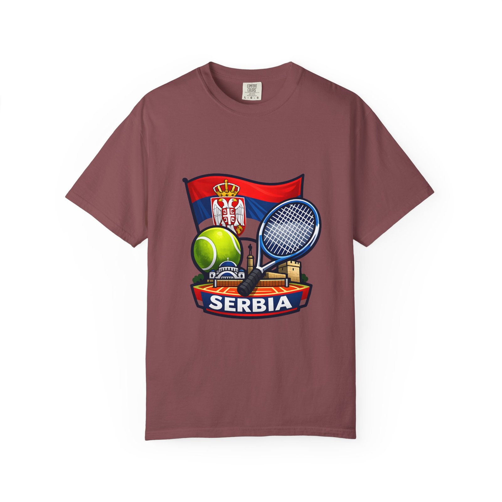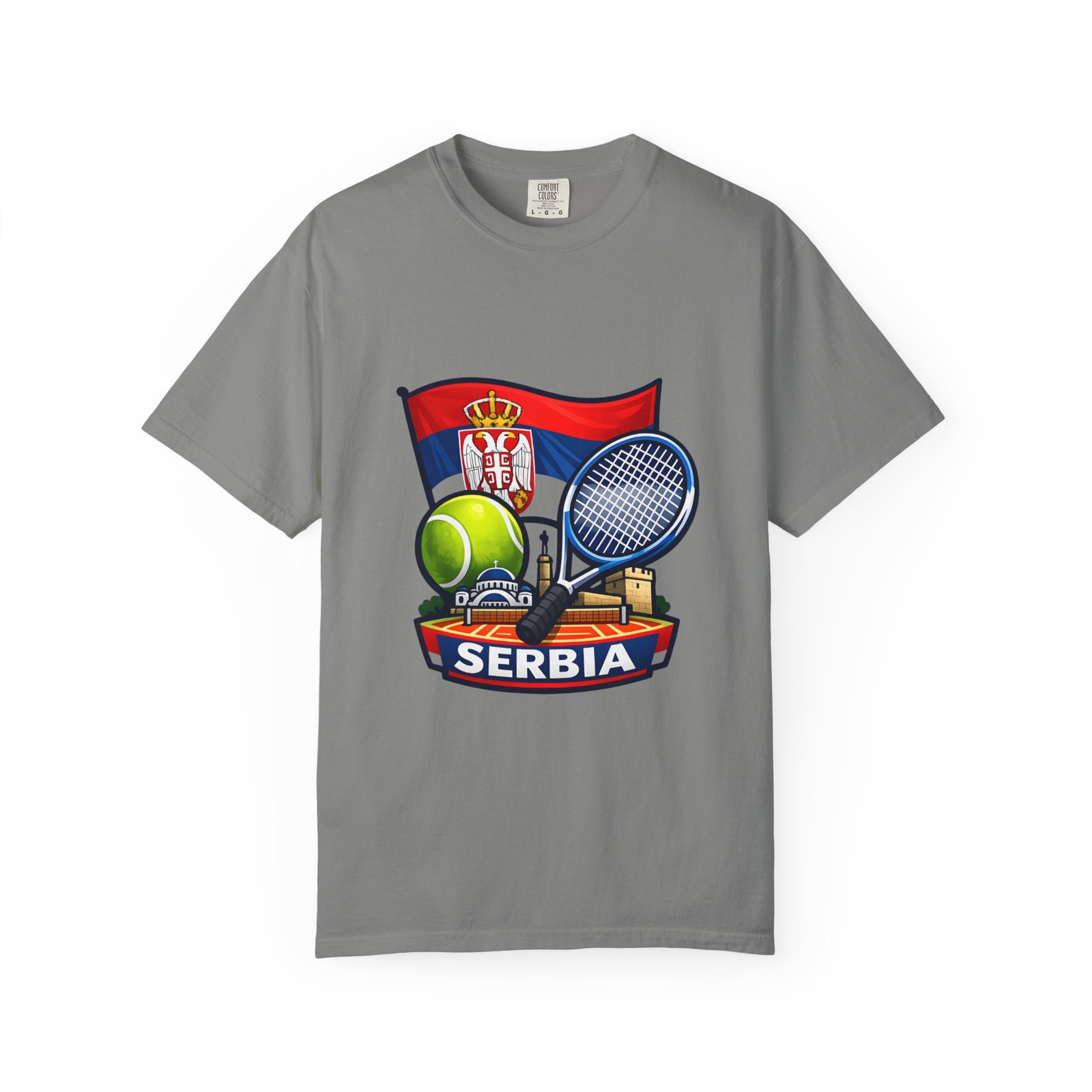 Lightweight yet substantial, this garment-dyed tee carries the quiet comfort of a lived-in favorite and the bold pride of a homeland emblem. The front art blends Serbia’s flag and crest with tennis imagery — rackets, a ball and subtle court details — creating a sporty, national badge you’ll reach for on casual weekends, match days, or when you want to show quiet allegiance. The fabric is soft from garment dyeing, with a relaxed, roomy cut that moves with you. It wears in, not out: colors mellow, seams hold up, and the feel becomes more personal with every wash. Wear it to local tournaments, travel days, or backyard rallies; it sits naturally in an athlete’s rotation or a fan’s everyday lineup.