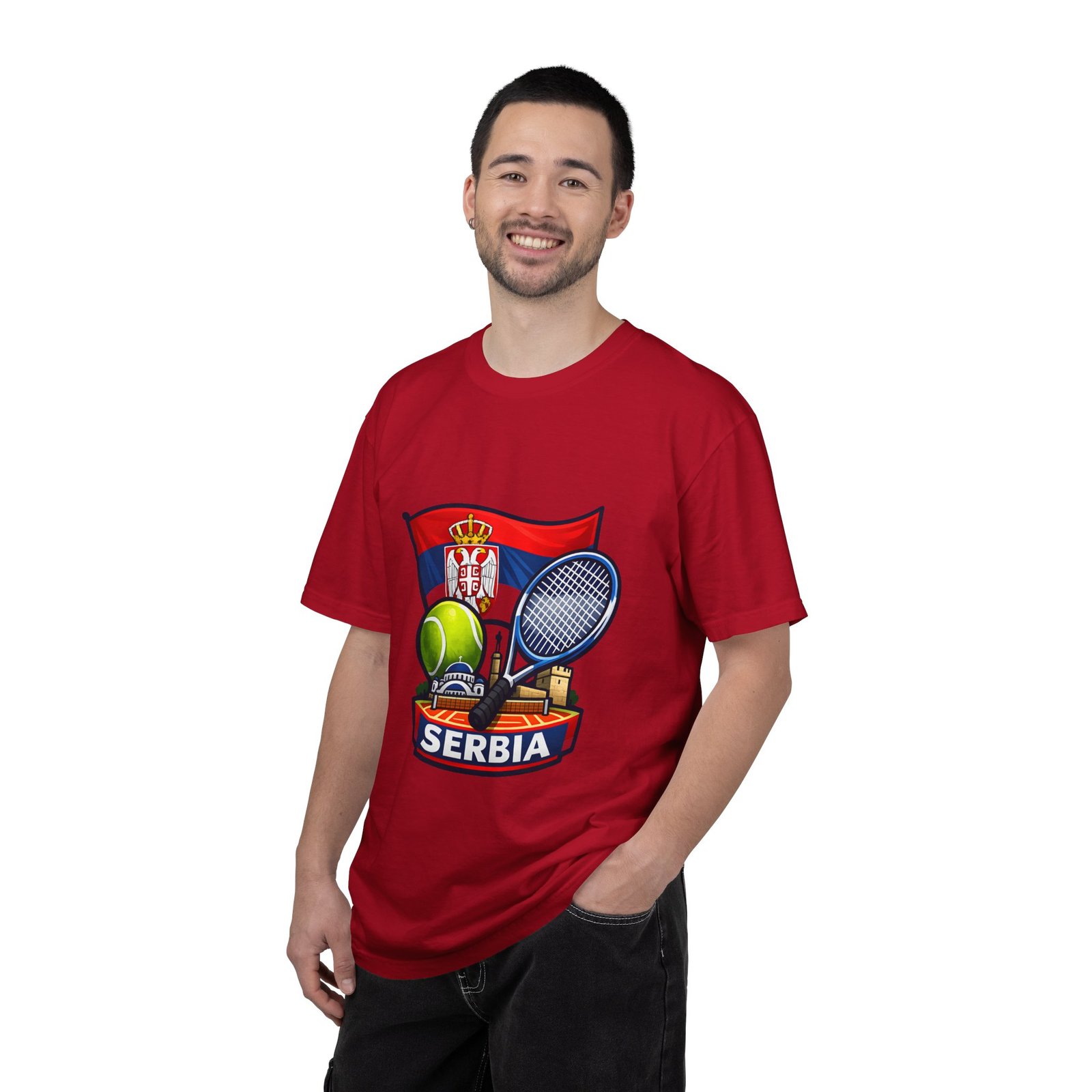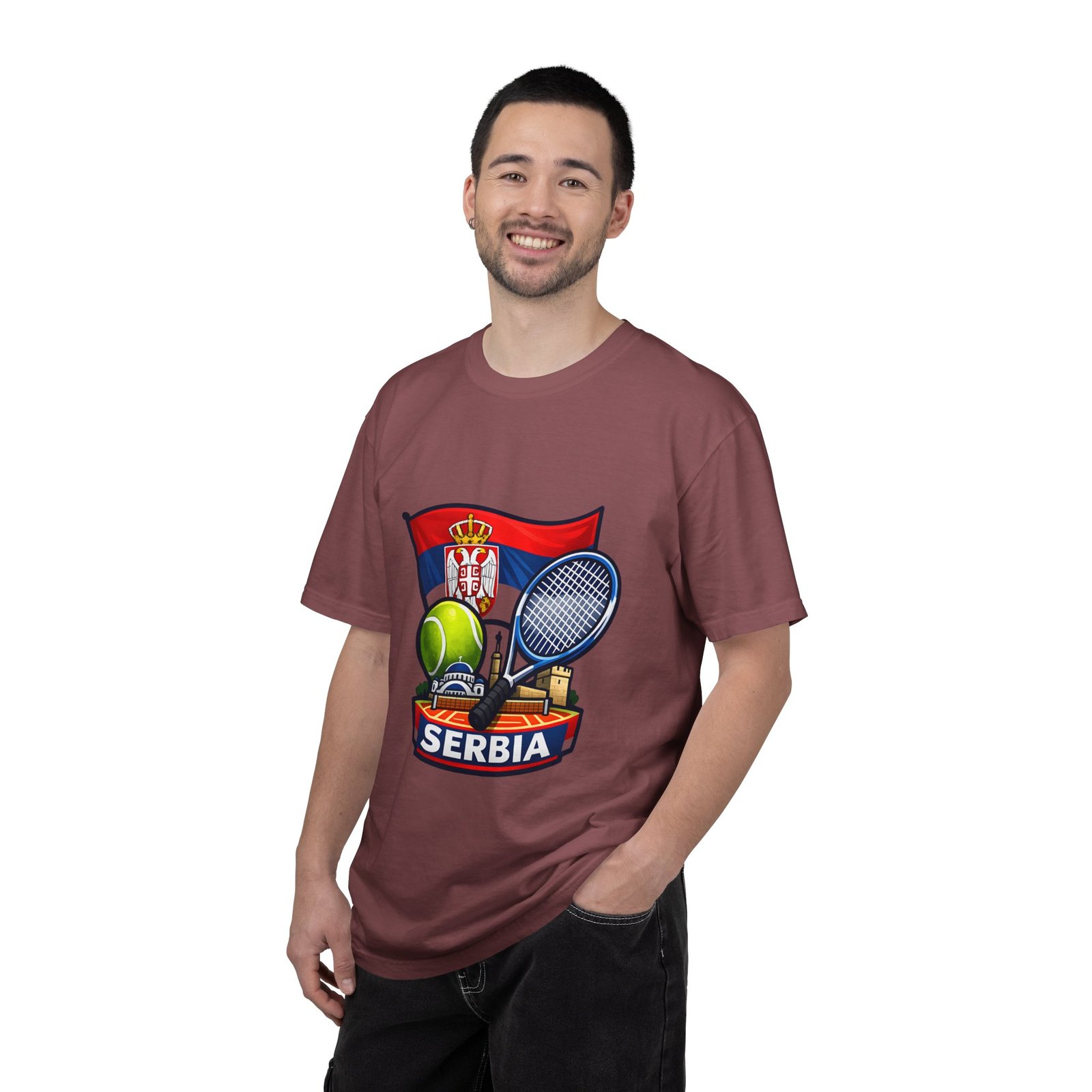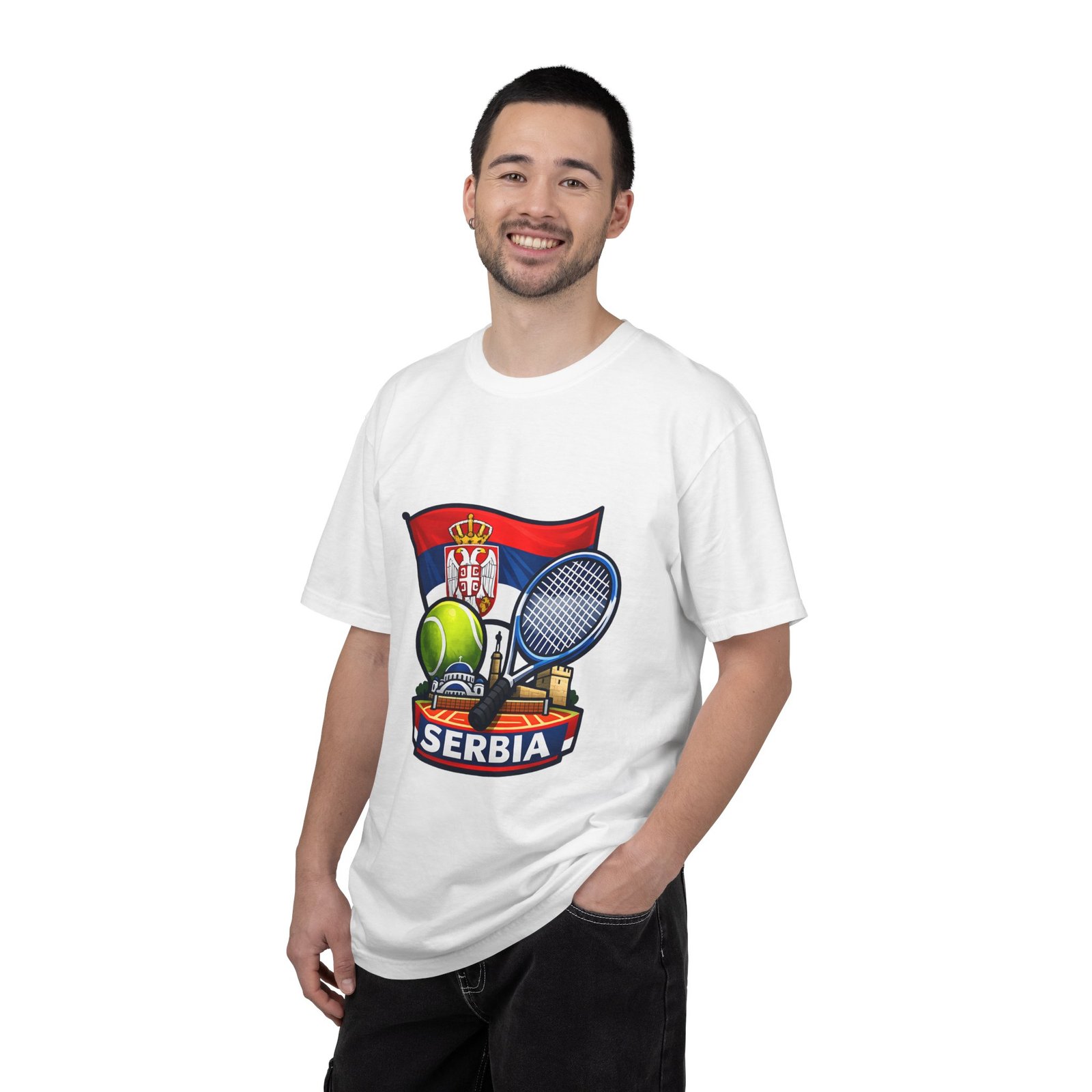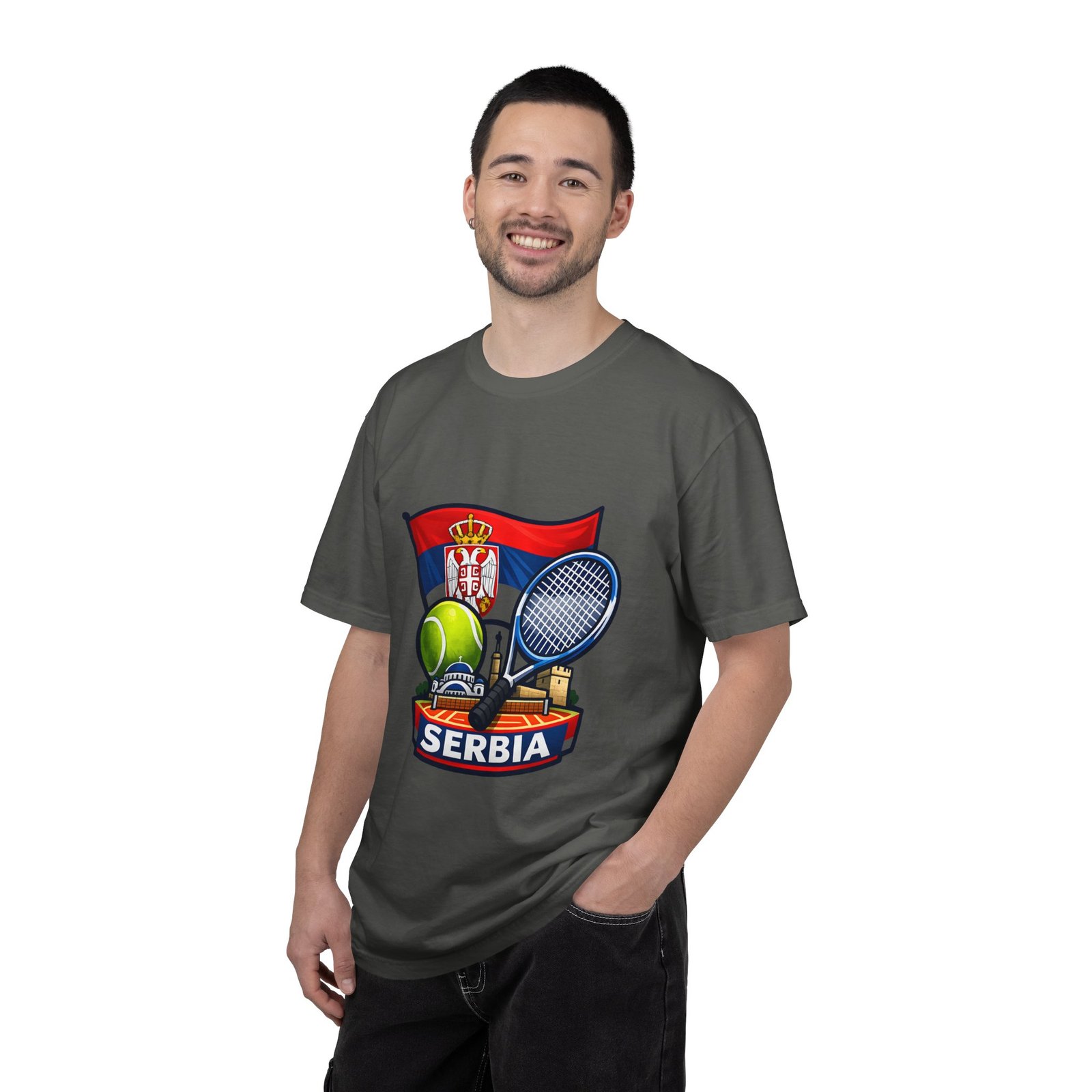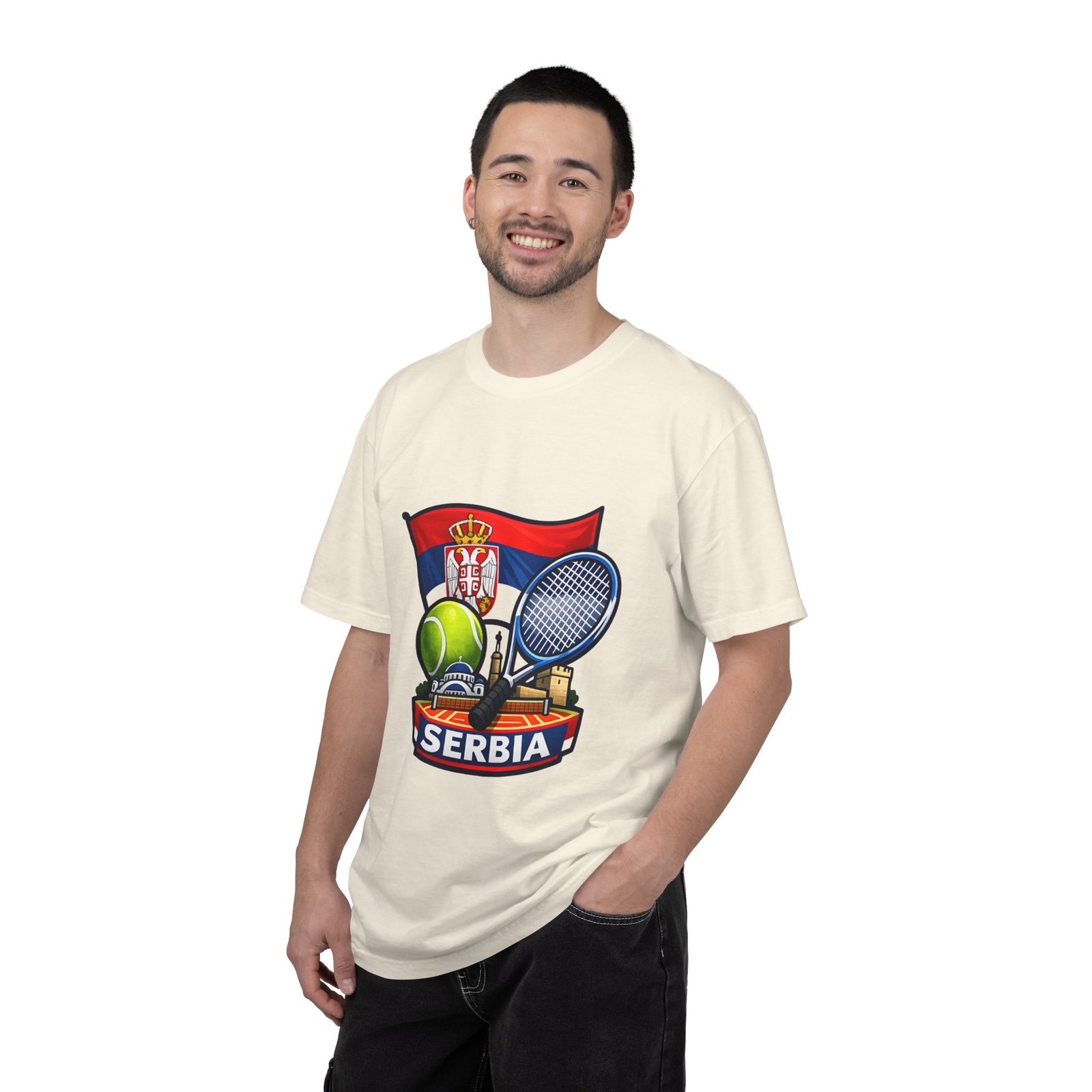 Lightweight yet substantial, this garment-dyed tee carries the quiet comfort of a lived-in favorite and the bold pride of a homeland emblem. The front art blends Serbia’s flag and crest with tennis imagery — rackets, a ball and subtle court details — creating a sporty, national badge you’ll reach for on casual weekends, match days, or when you want to show quiet allegiance. The fabric is soft from garment dyeing, with a relaxed, roomy cut that moves with you. It wears in, not out: colors mellow, seams hold up, and the feel becomes more personal with every wash. Wear it to local tournaments, travel days, or backyard rallies; it sits naturally in an athlete’s rotation or a fan’s everyday lineup.
