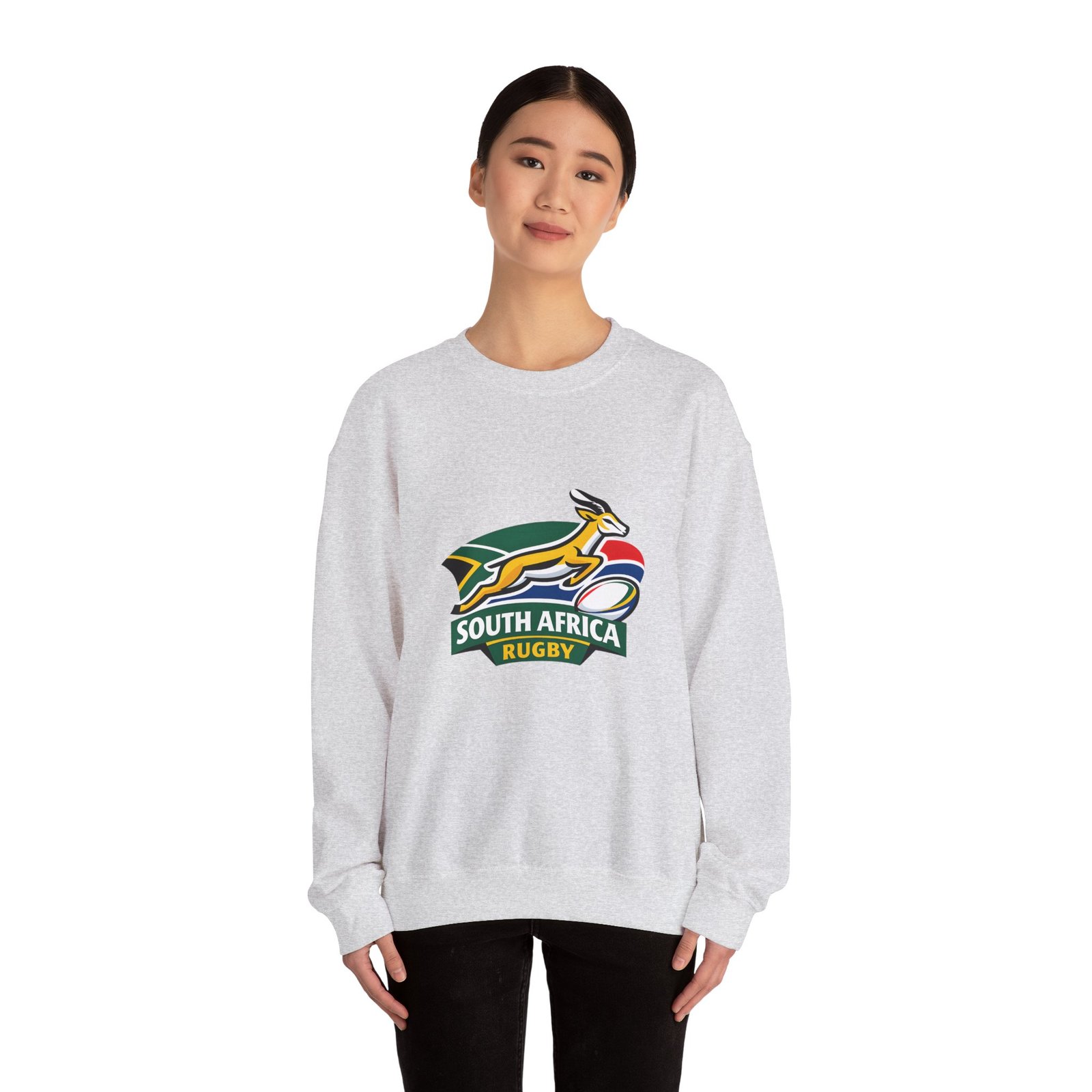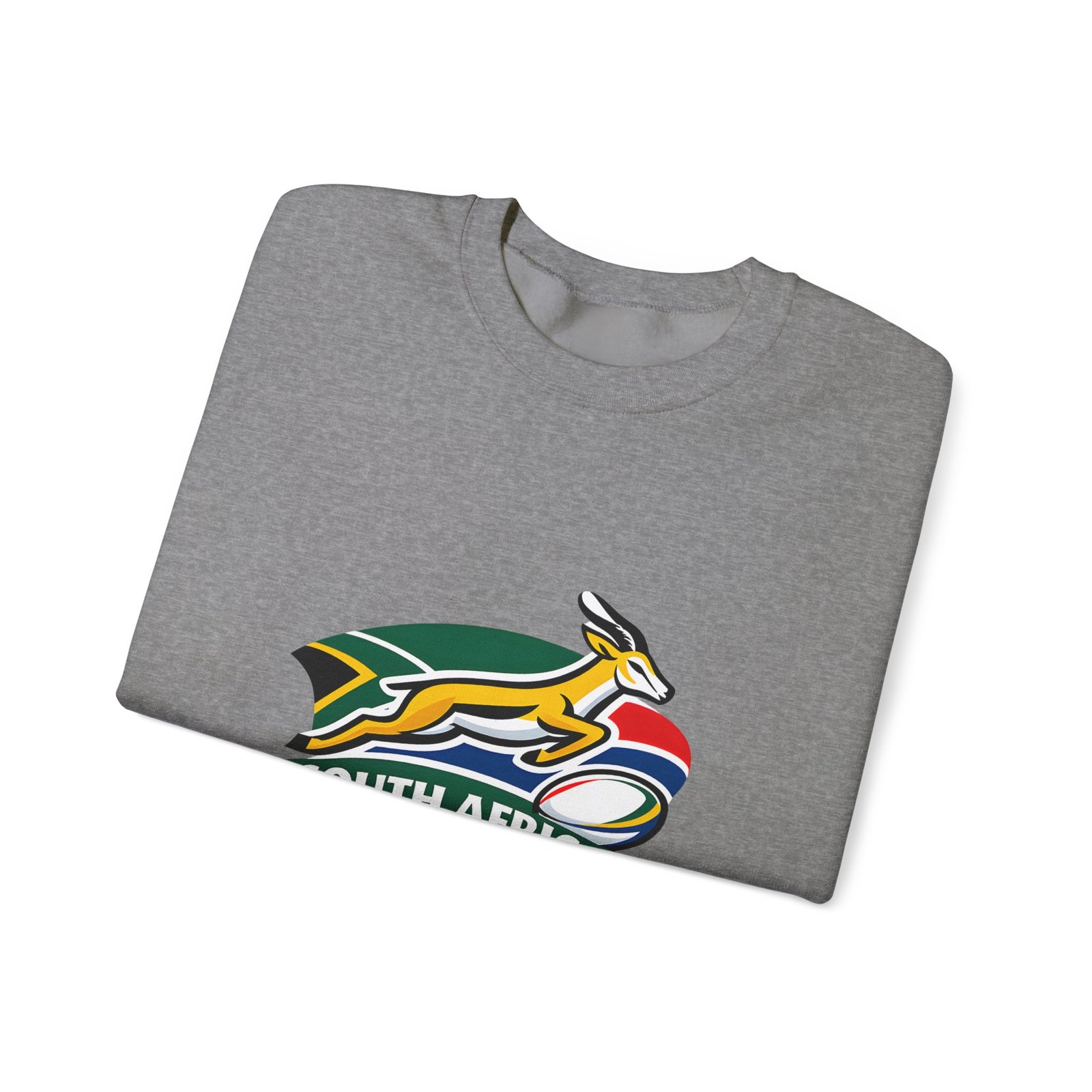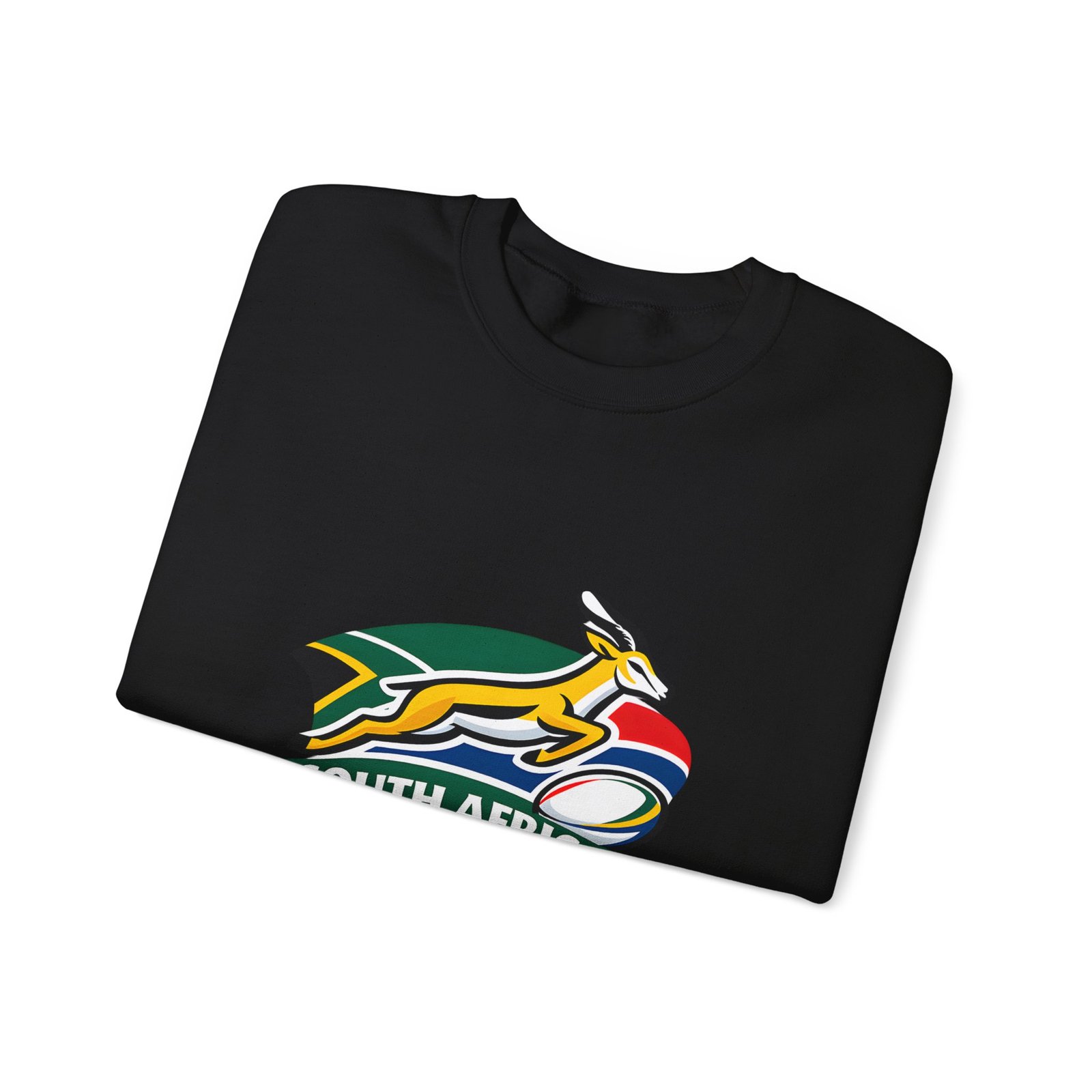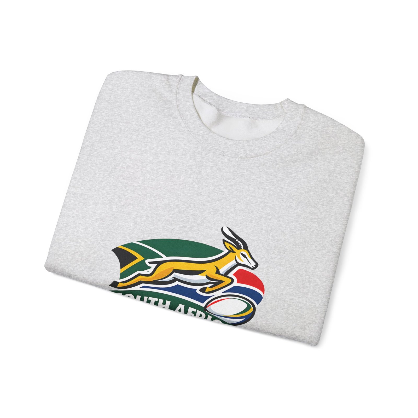 This soft, midweight crewneck carries the quiet confidence of match-day fandom. The clean white sweatshirt features a bold embroidered South Africa rugby emblem on the chest — a leaping springbok over a waving flag — that reads like a badge of belonging. It sits comfortably in the wardrobe: roomy enough for layering, but tailored by a classic crew neckline and ribbed cuffs for a neat silhouette. Wear it to chilly training runs, weekend watch parties, or while running errands; it brings the warmth of shared chants and the calm energy of team pride without shouting. The subtle craft details — tubular knit construction, reinforced double-needle stitching, and a tear-away label — keep it feeling smooth against skin and built to last season after season.