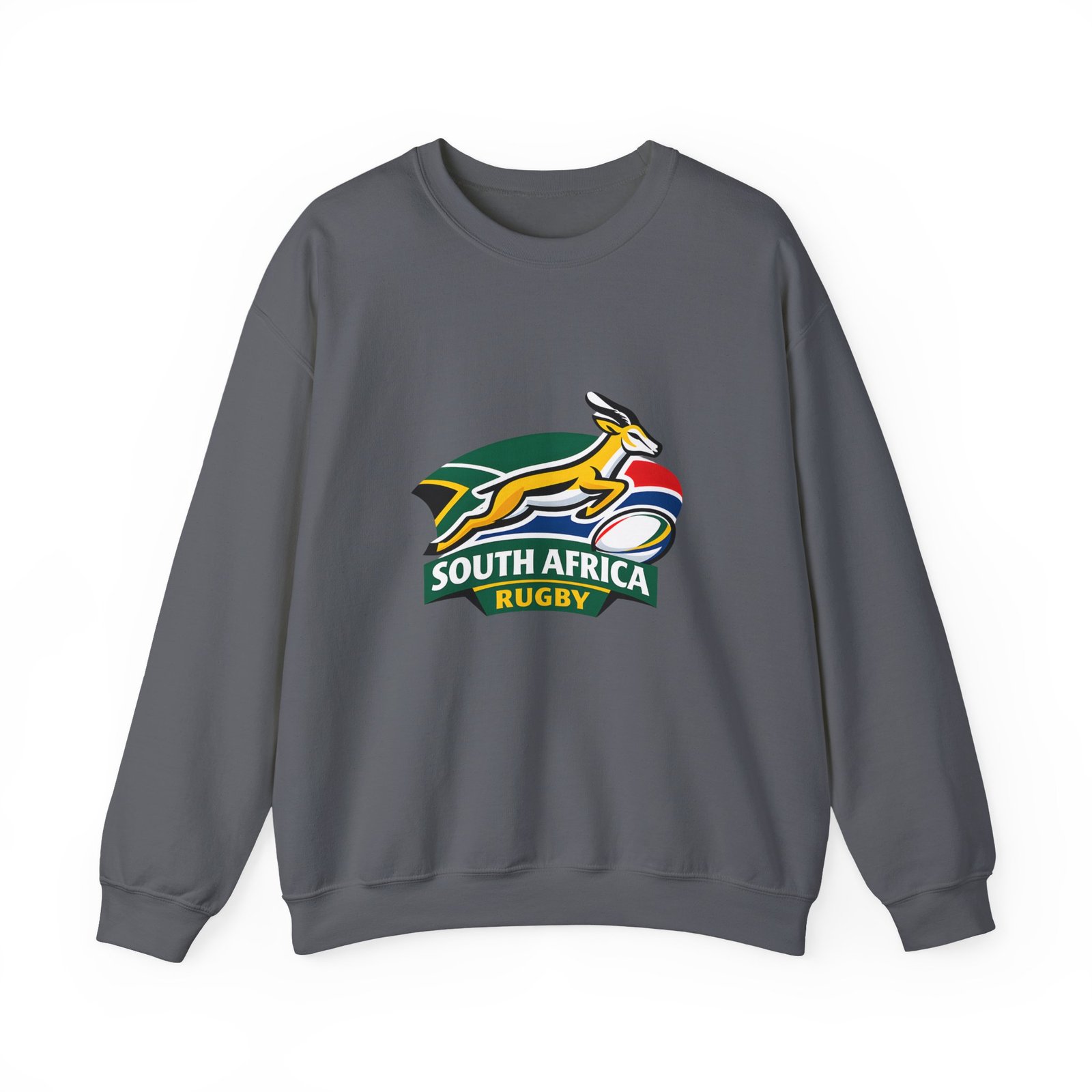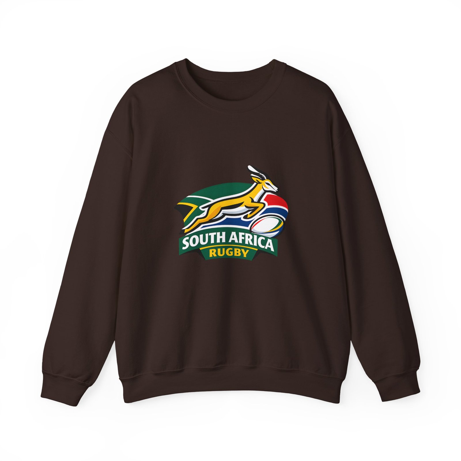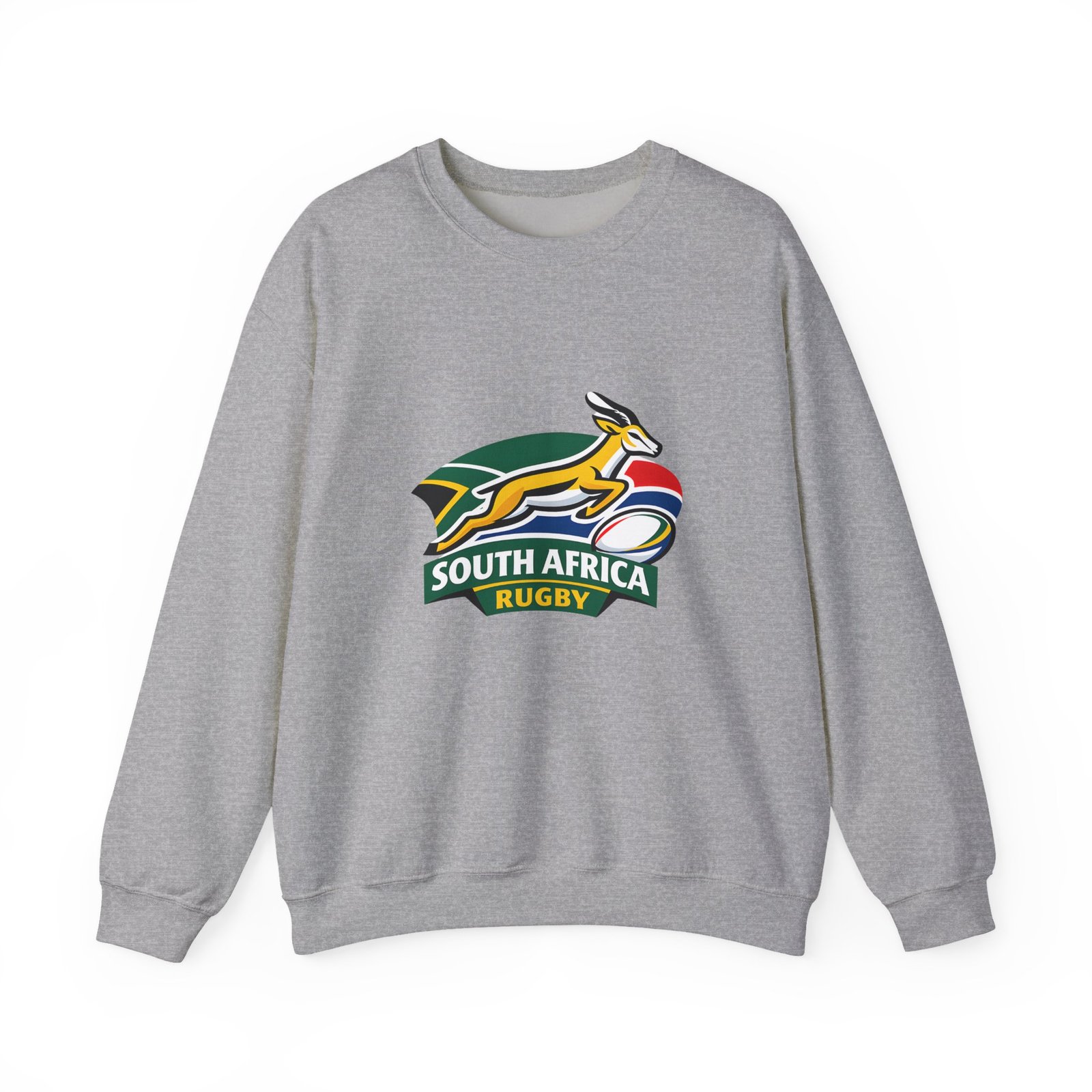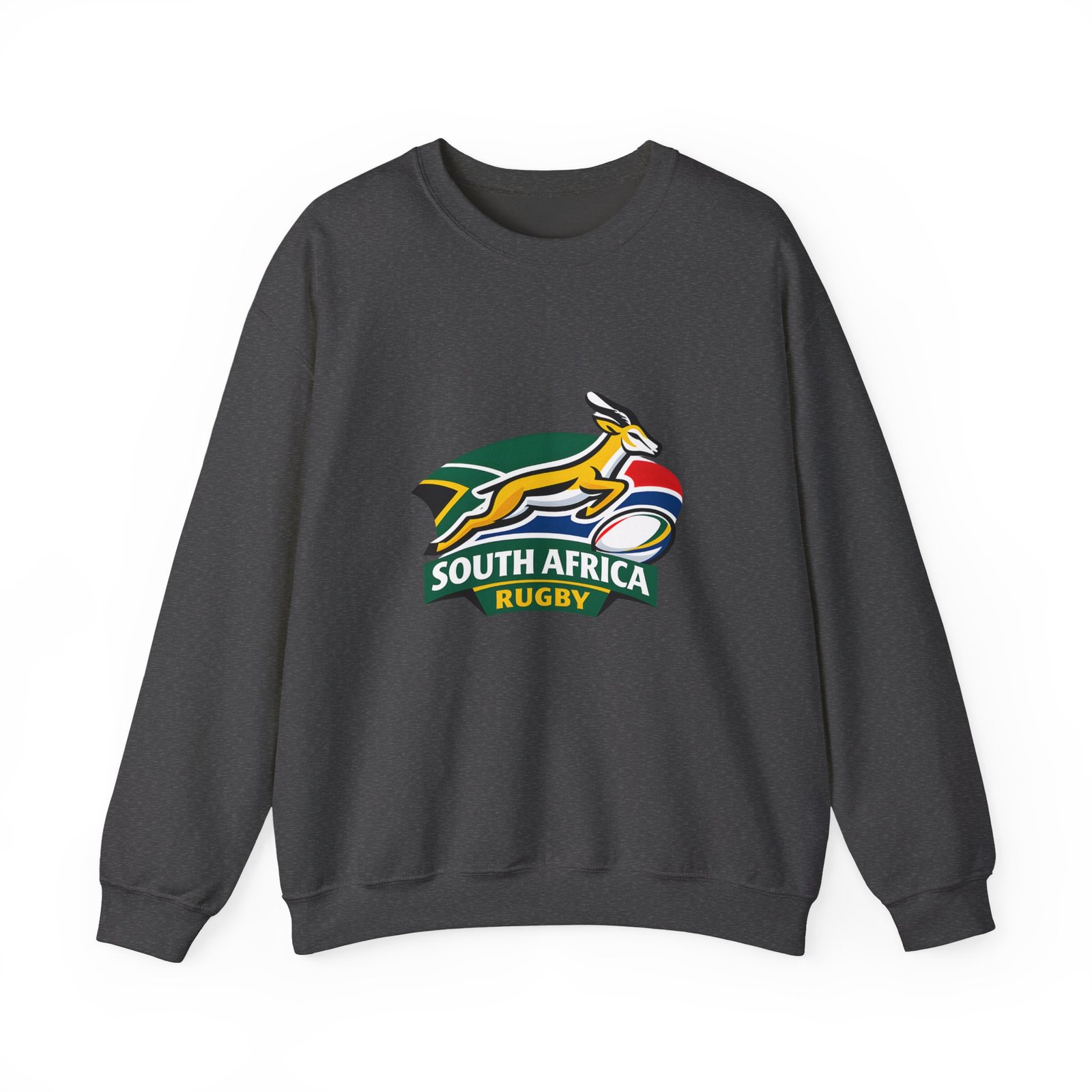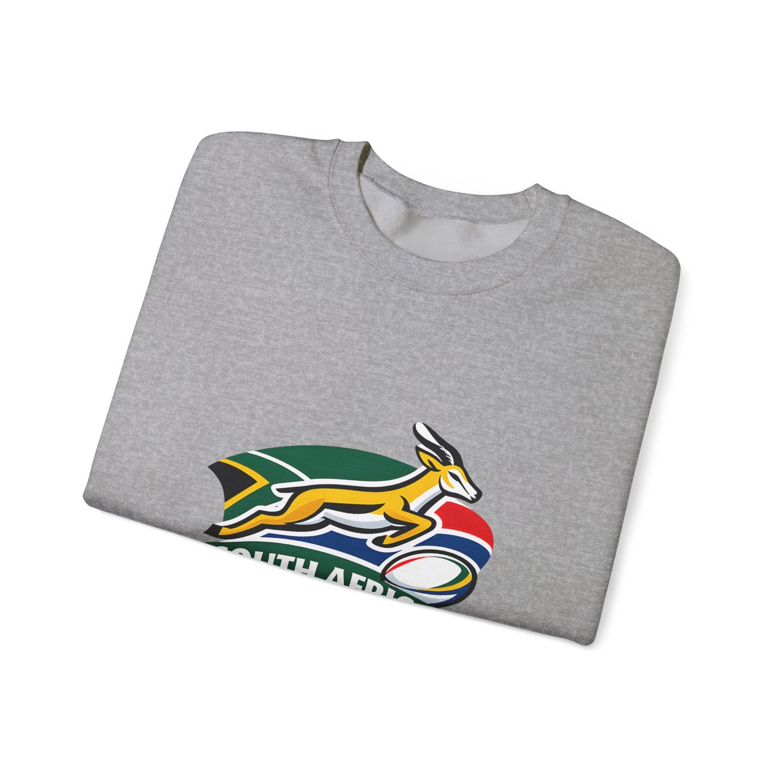 This soft, midweight crewneck carries the quiet confidence of match-day fandom. The clean white sweatshirt features a bold embroidered South Africa rugby emblem on the chest — a leaping springbok over a waving flag — that reads like a badge of belonging. It sits comfortably in the wardrobe: roomy enough for layering, but tailored by a classic crew neckline and ribbed cuffs for a neat silhouette. Wear it to chilly training runs, weekend watch parties, or while running errands; it brings the warmth of shared chants and the calm energy of team pride without shouting. The subtle craft details — tubular knit construction, reinforced double-needle stitching, and a tear-away label — keep it feeling smooth against skin and built to last season after season.