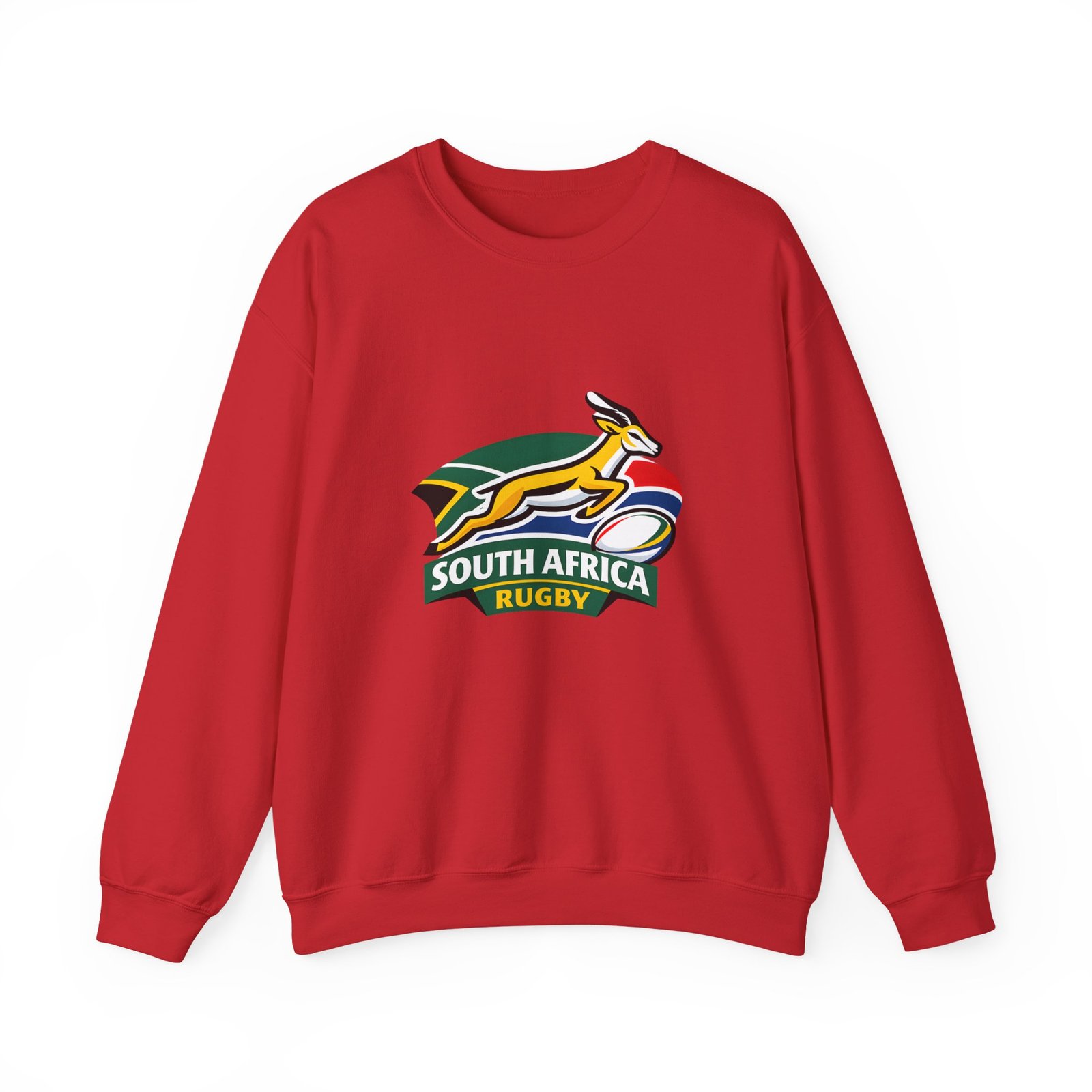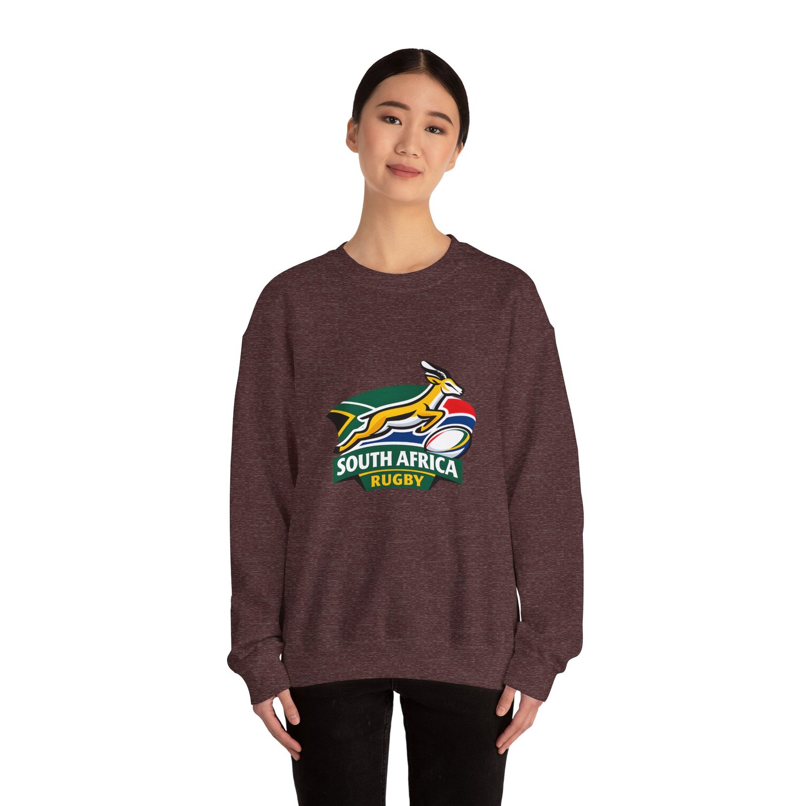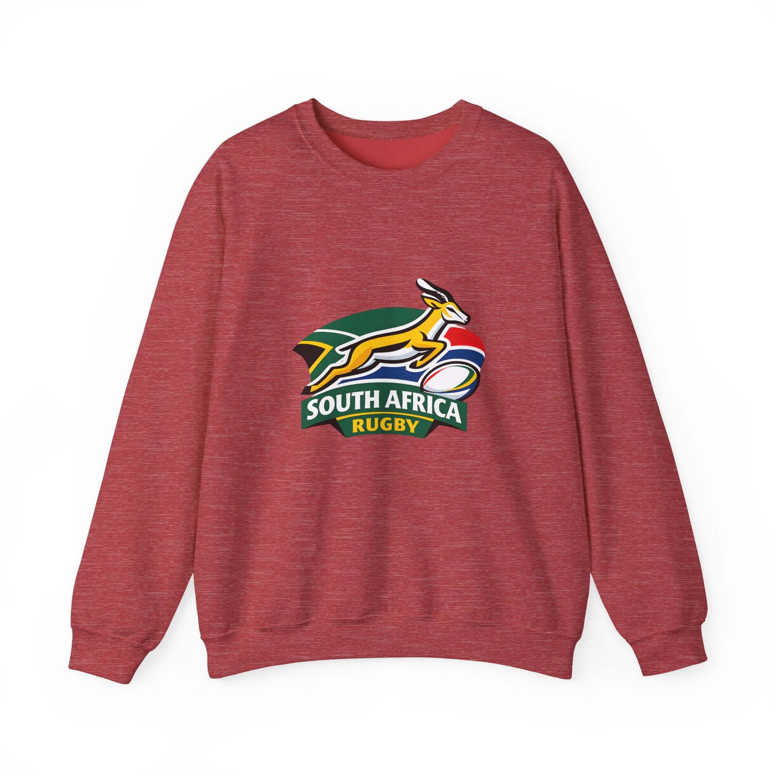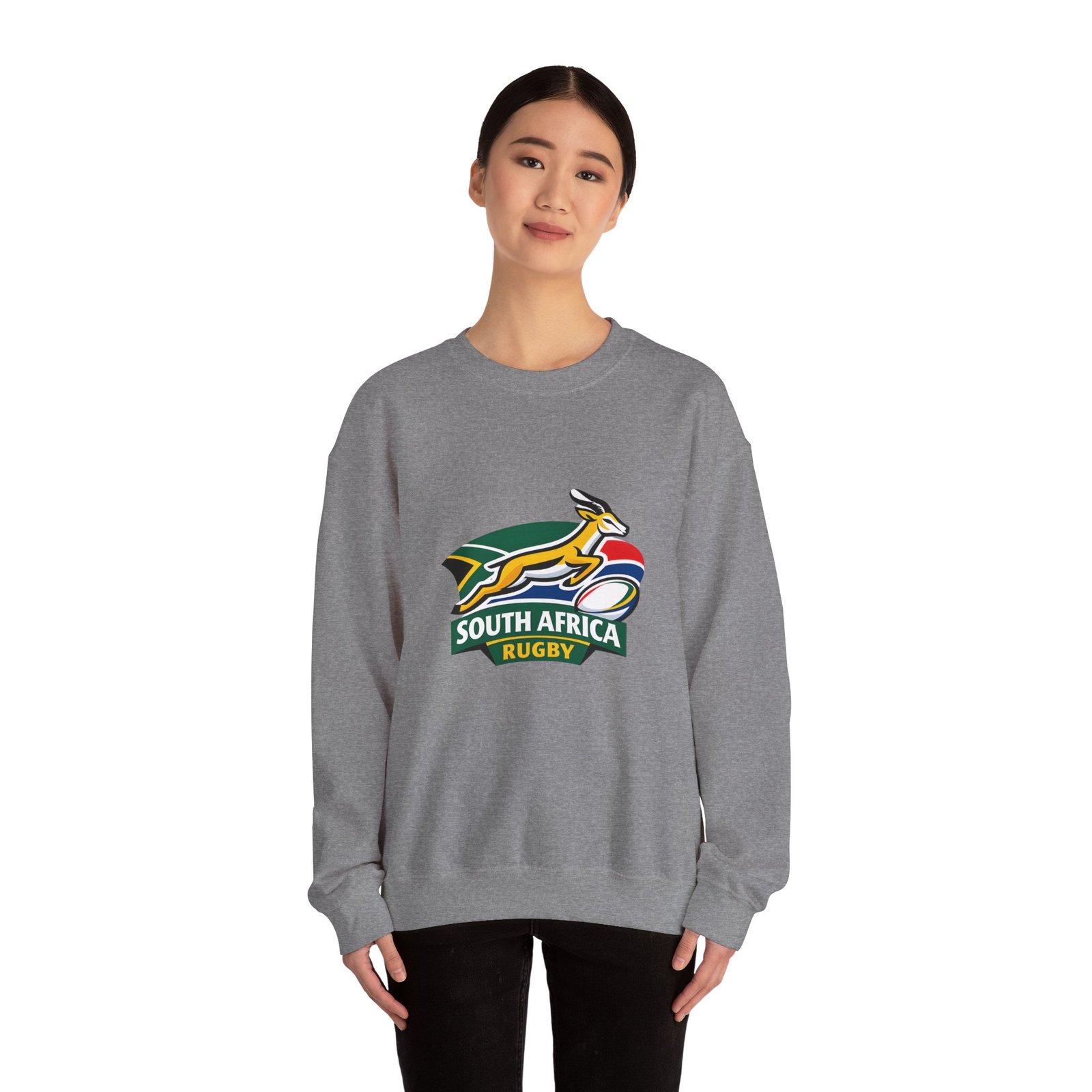 This soft, midweight crewneck carries the quiet confidence of match-day fandom. The clean white sweatshirt features a bold embroidered South Africa rugby emblem on the chest — a leaping springbok over a waving flag — that reads like a badge of belonging. It sits comfortably in the wardrobe: roomy enough for layering, but tailored by a classic crew neckline and ribbed cuffs for a neat silhouette. Wear it to chilly training runs, weekend watch parties, or while running errands; it brings the warmth of shared chants and the calm energy of team pride without shouting. The subtle craft details — tubular knit construction, reinforced double-needle stitching, and a tear-away label — keep it feeling smooth against skin and built to last season after season.