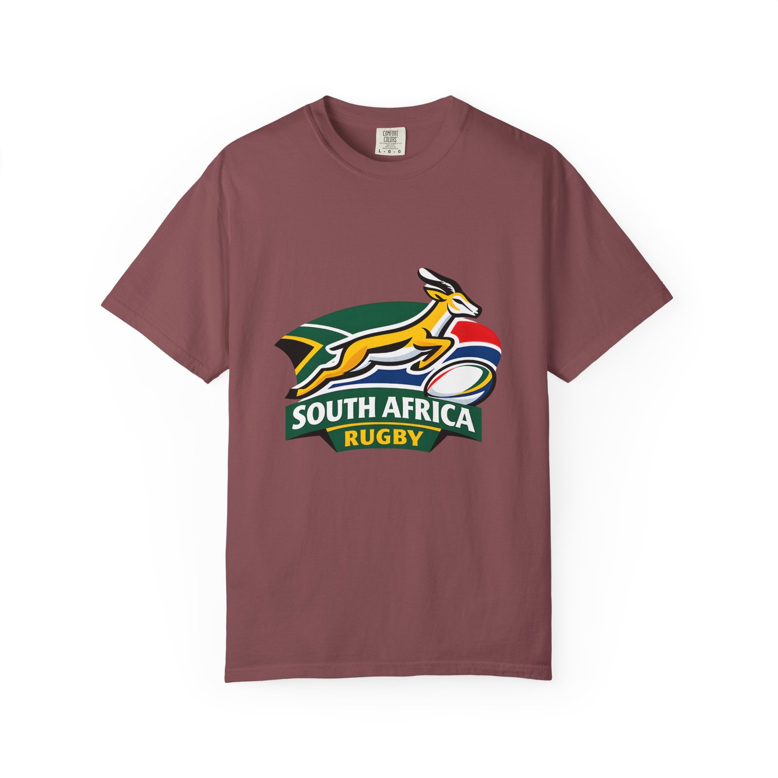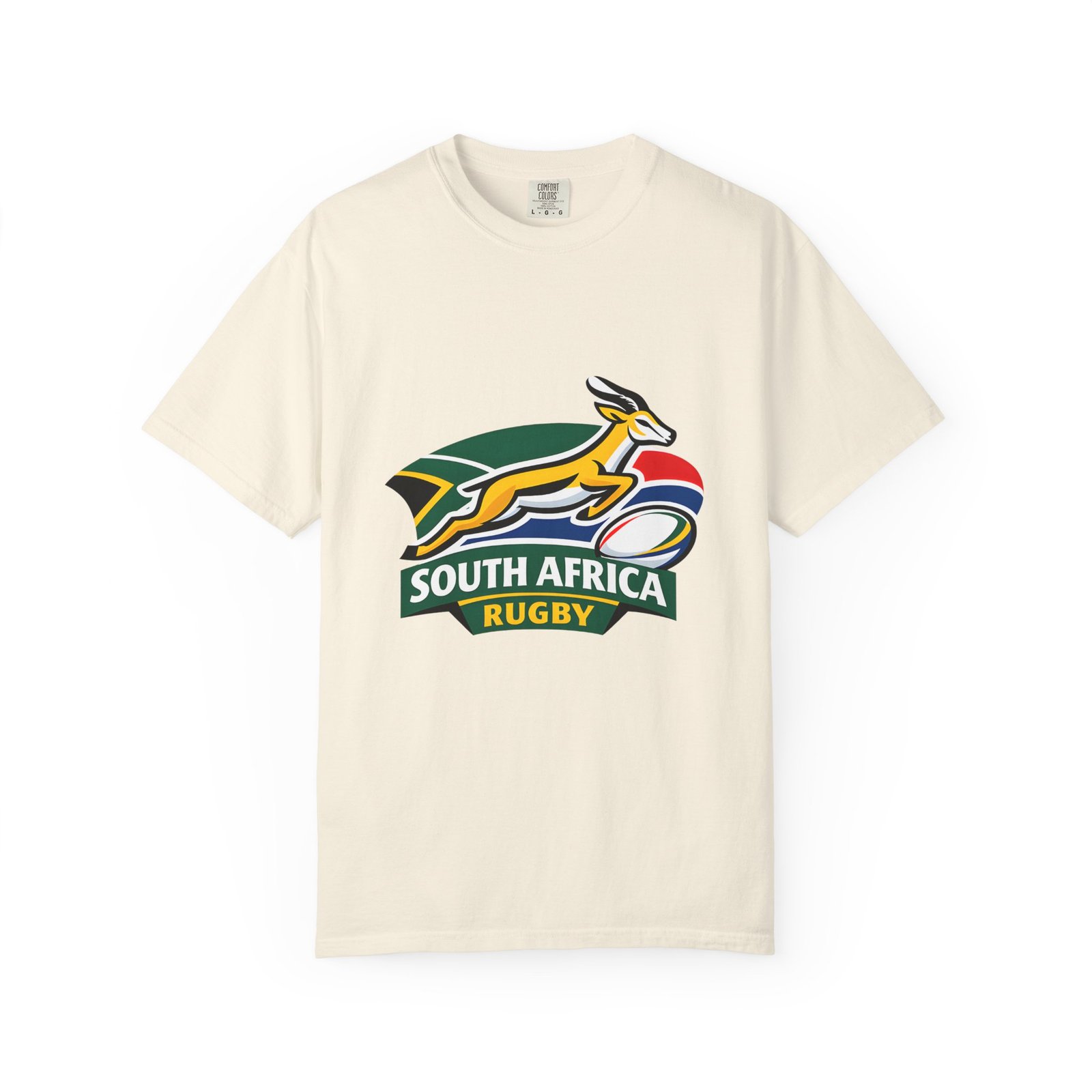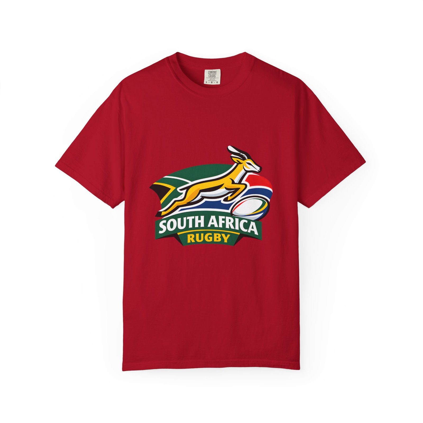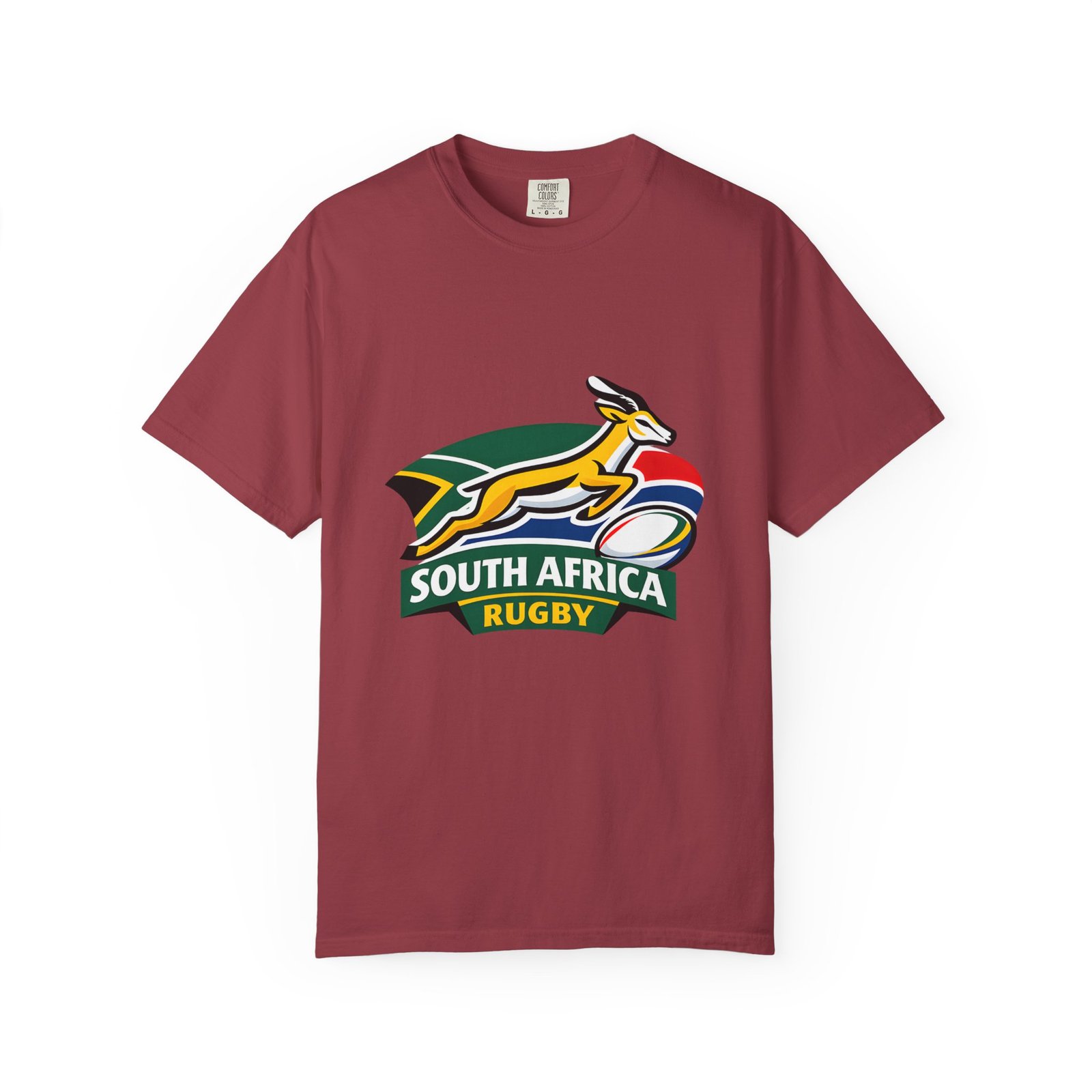 This heavyweight, garment-dyed tee brings relaxed comfort and bold team energy together. The soft, worn-in texture from post-construction dyeing sits against sturdy 6.1 oz cotton, so the shirt feels lived-in from the first wear. Clean lines and double-needle stitching keep the silhouette durable through tailgates, club nights, and long weekends. The South Africa rugby emblem sits centered and proud — a simple statement for match days, backyard scrums, or casual city walks. Available in a wide range of colors and sizes, it drapes with a relaxed fit that layers easily under a jacket or stands alone with jeans and trainers.