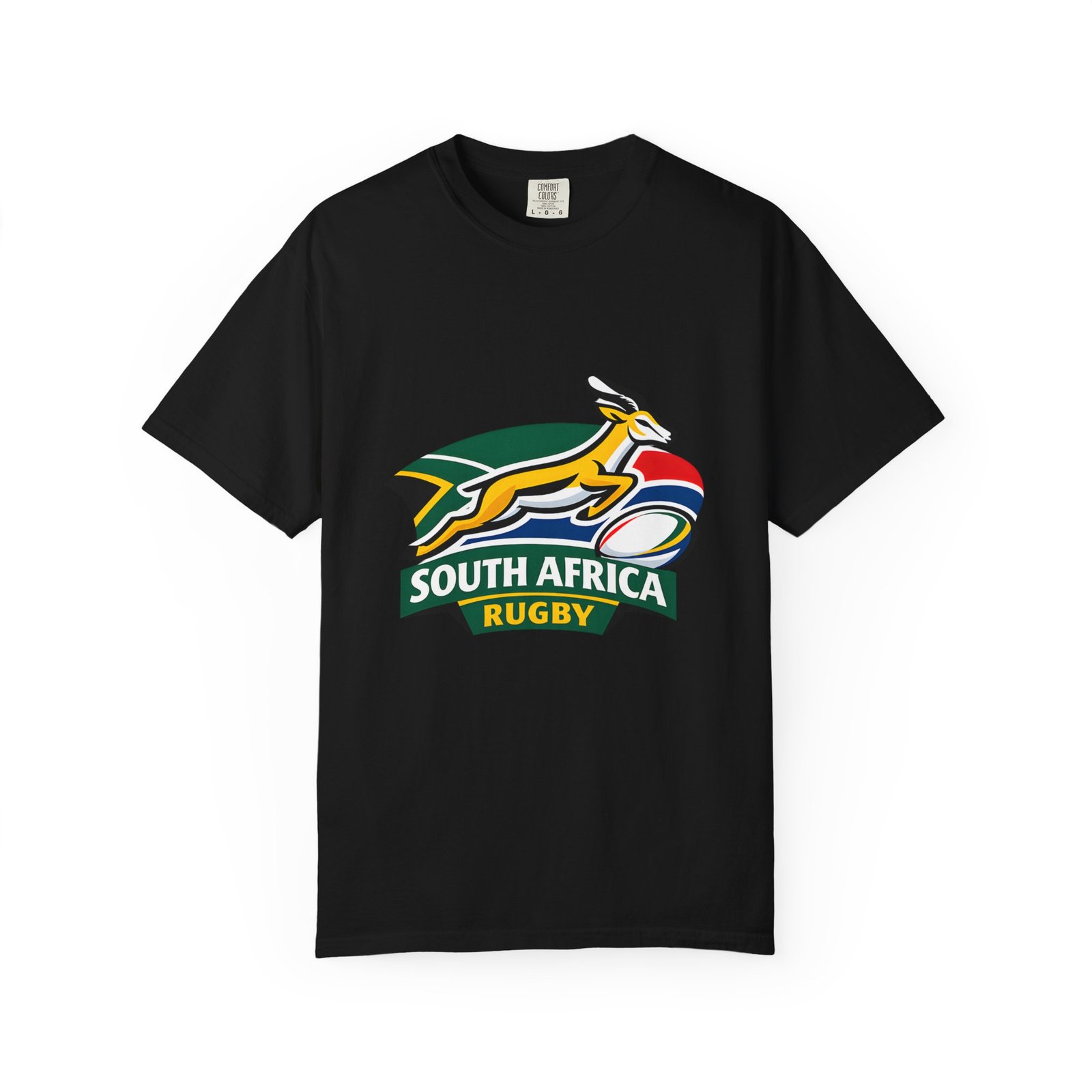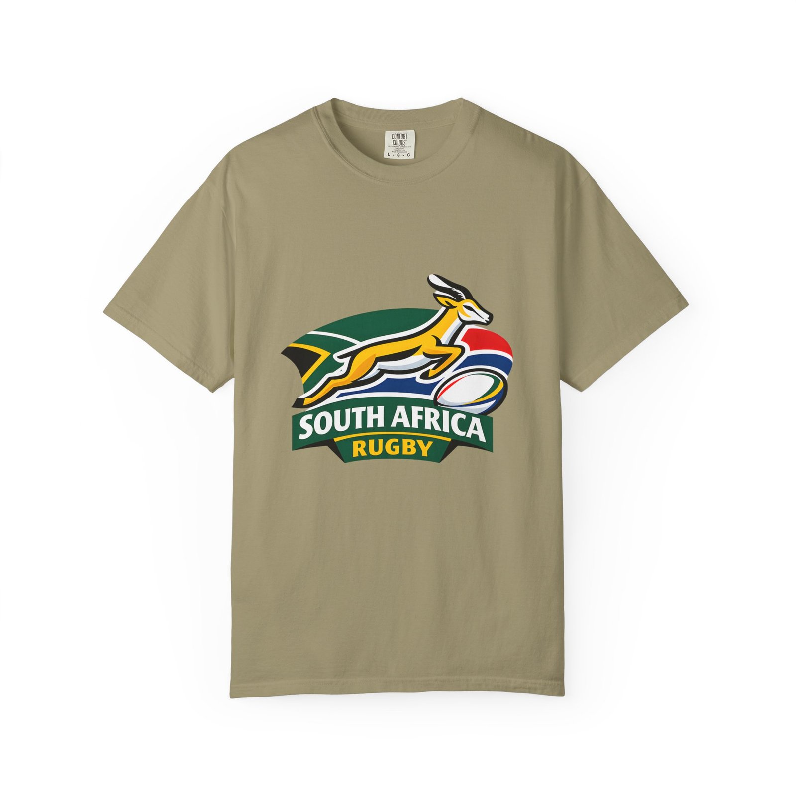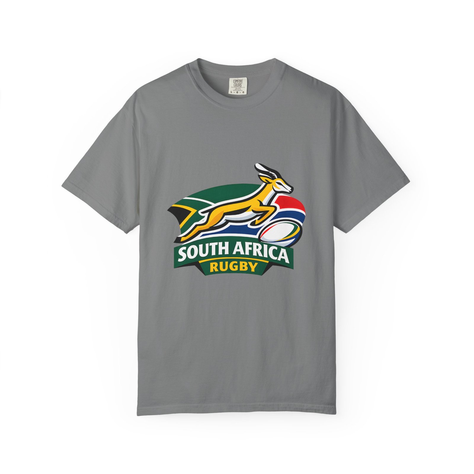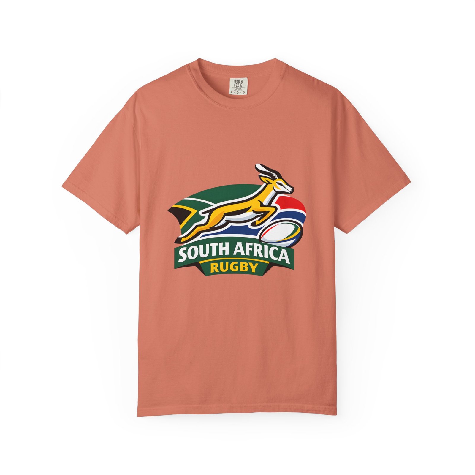 This heavyweight, garment-dyed tee brings relaxed comfort and bold team energy together. The soft, worn-in texture from post-construction dyeing sits against sturdy 6.1 oz cotton, so the shirt feels lived-in from the first wear. Clean lines and double-needle stitching keep the silhouette durable through tailgates, club nights, and long weekends. The South Africa rugby emblem sits centered and proud — a simple statement for match days, backyard scrums, or casual city walks. Available in a wide range of colors and sizes, it drapes with a relaxed fit that layers easily under a jacket or stands alone with jeans and trainers.