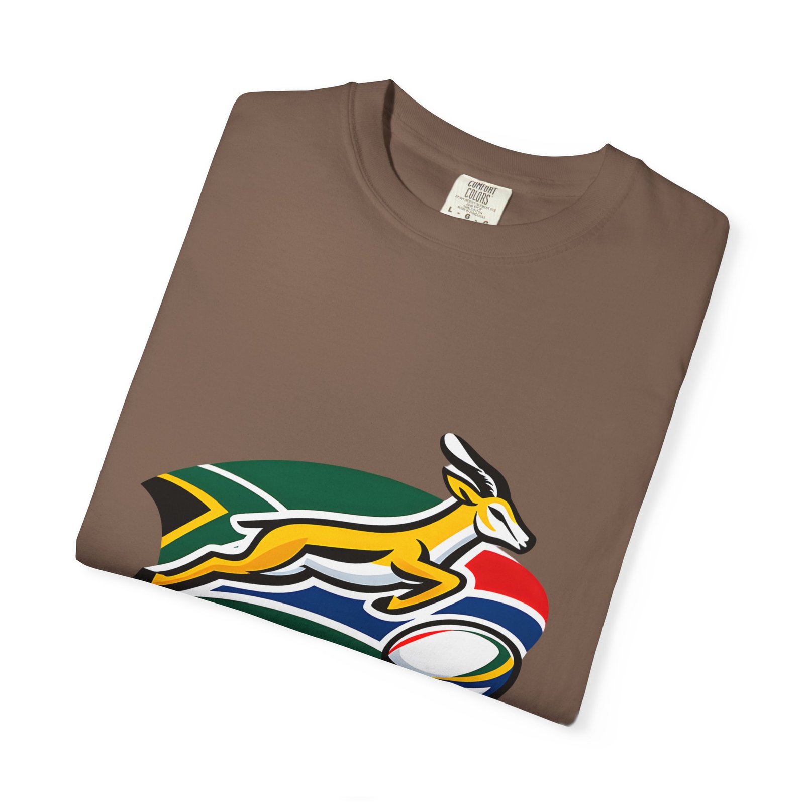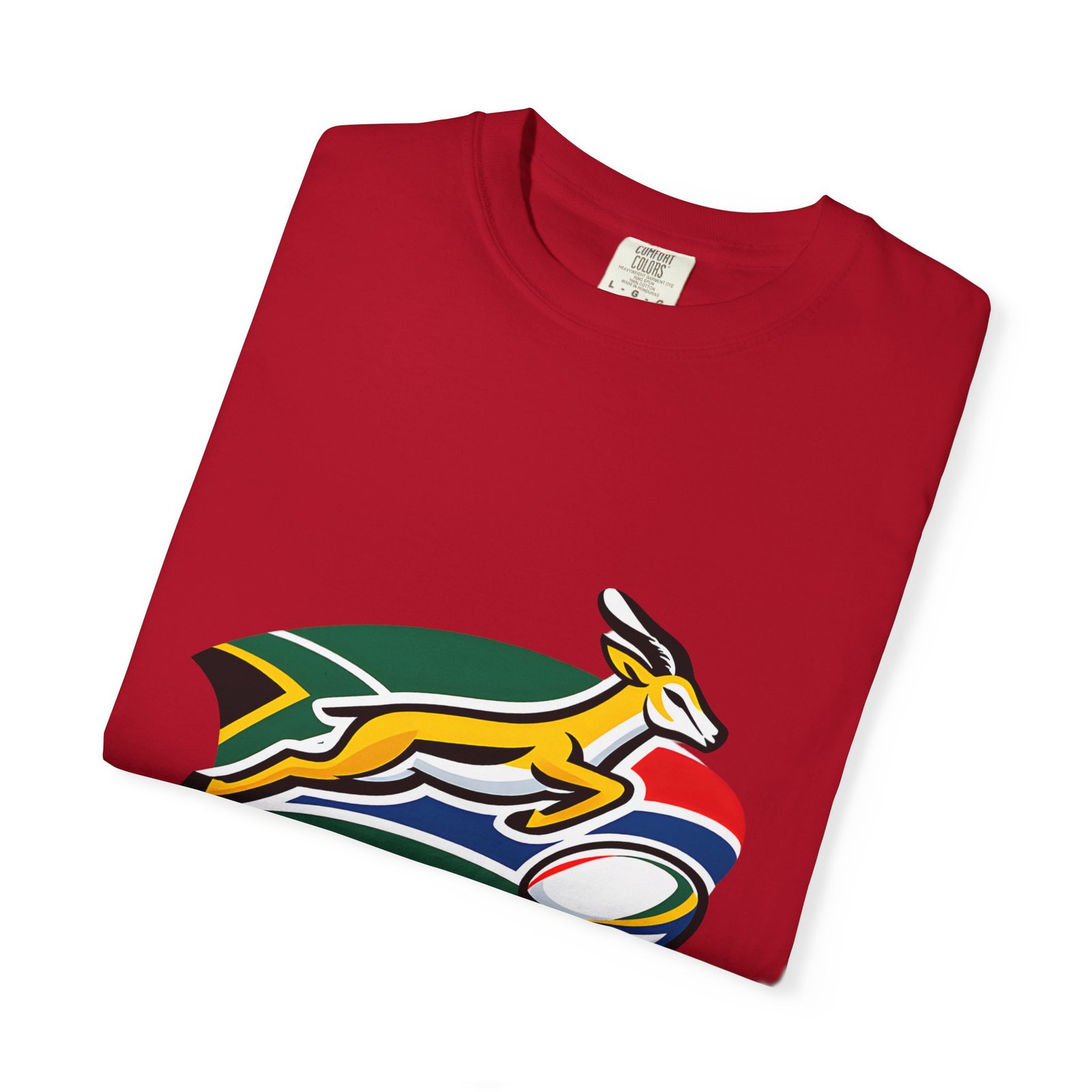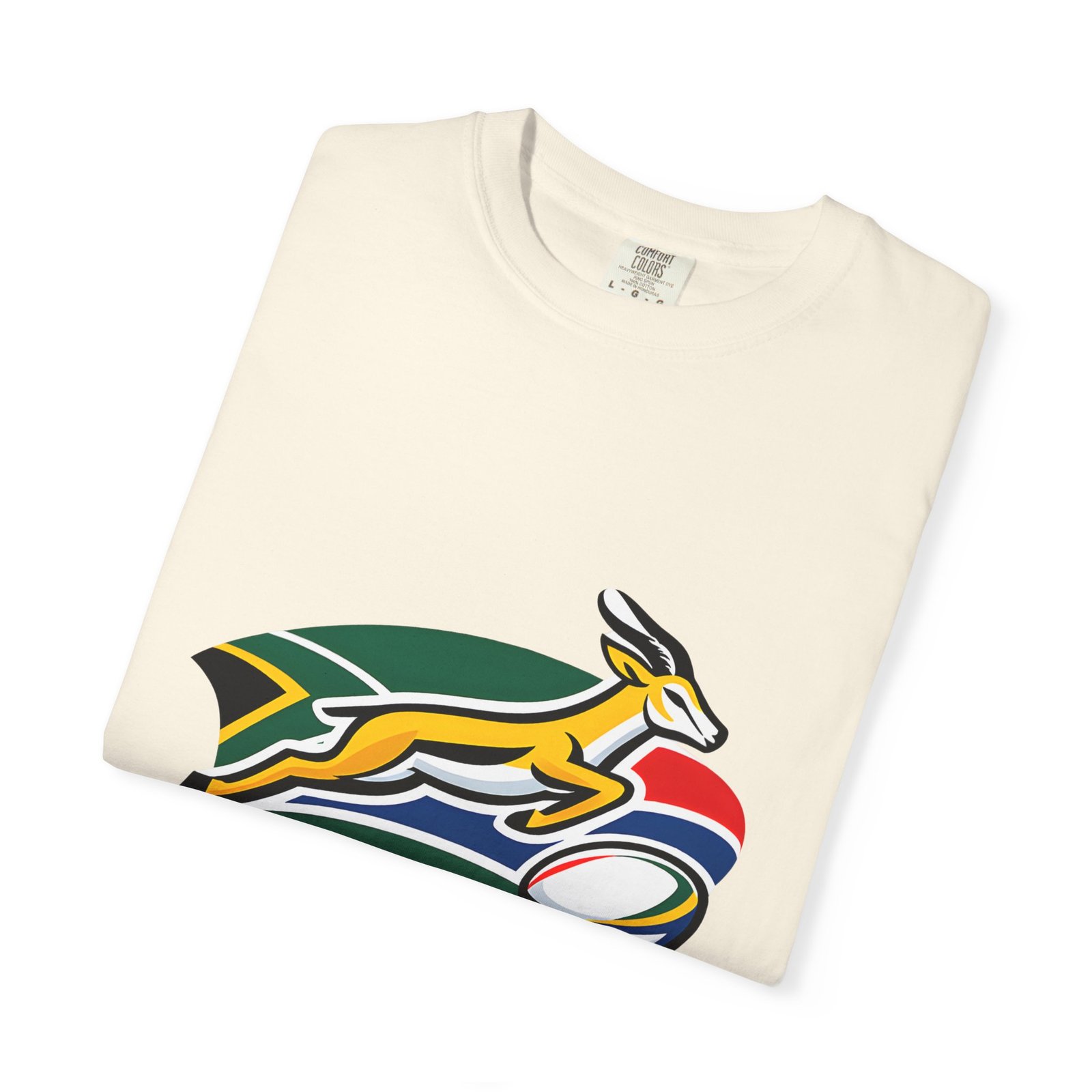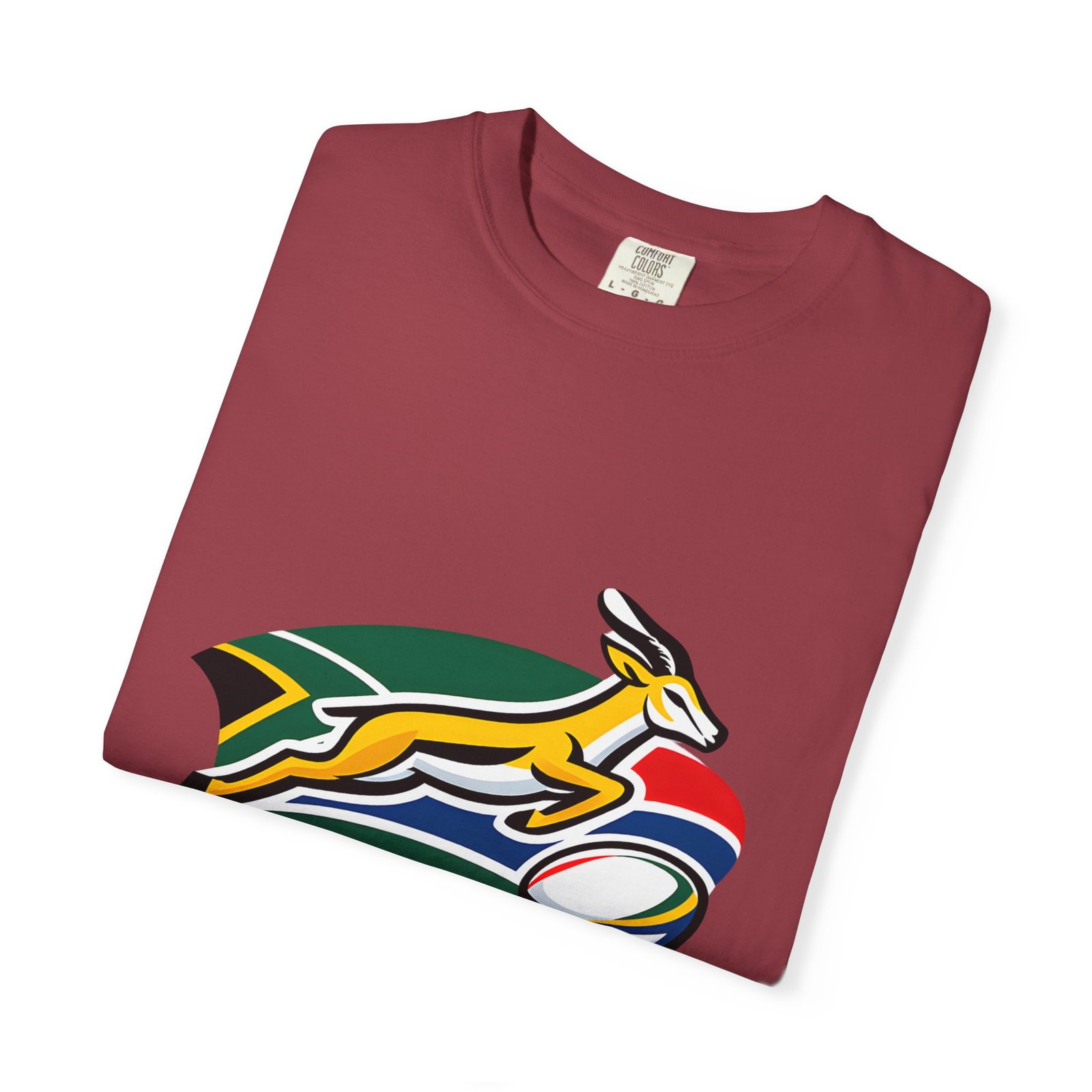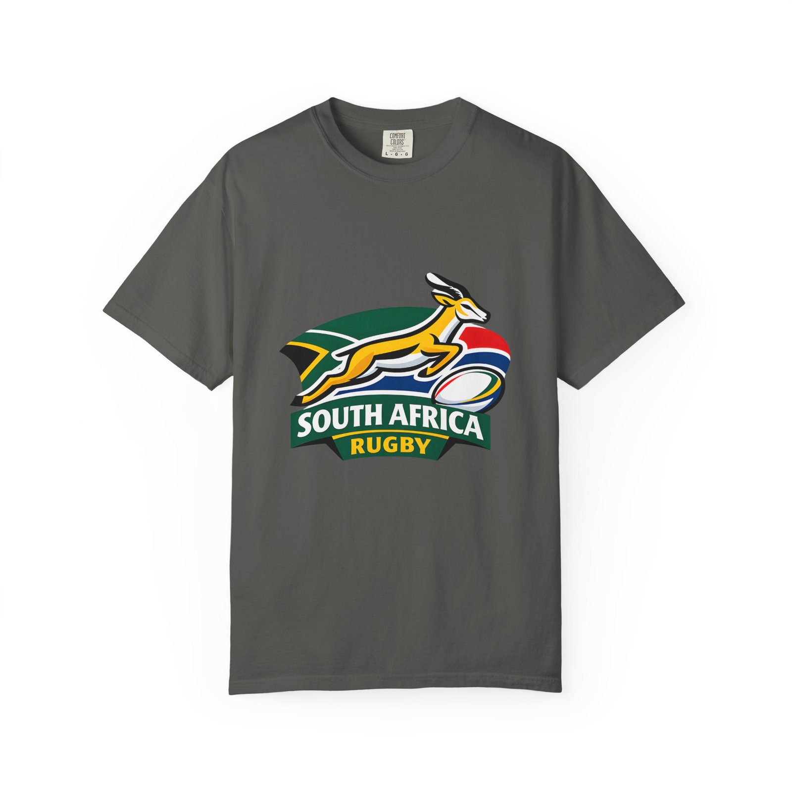This heavyweight, garment-dyed tee brings relaxed comfort and bold team energy together. The soft, worn-in texture from post-construction dyeing sits against sturdy 6.1 oz cotton, so the shirt feels lived-in from the first wear. Clean lines and double-needle stitching keep the silhouette durable through tailgates, club nights, and long weekends. The South Africa rugby emblem sits centered and proud — a simple statement for match days, backyard scrums, or casual city walks. Available in a wide range of colors and sizes, it drapes with a relaxed fit that layers easily under a jacket or stands alone with jeans and trainers.